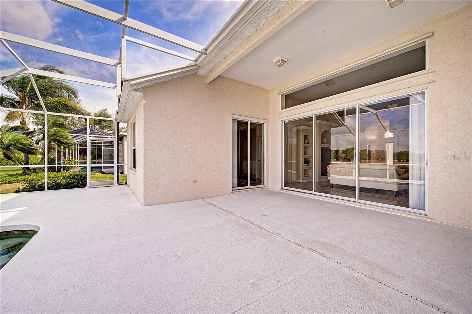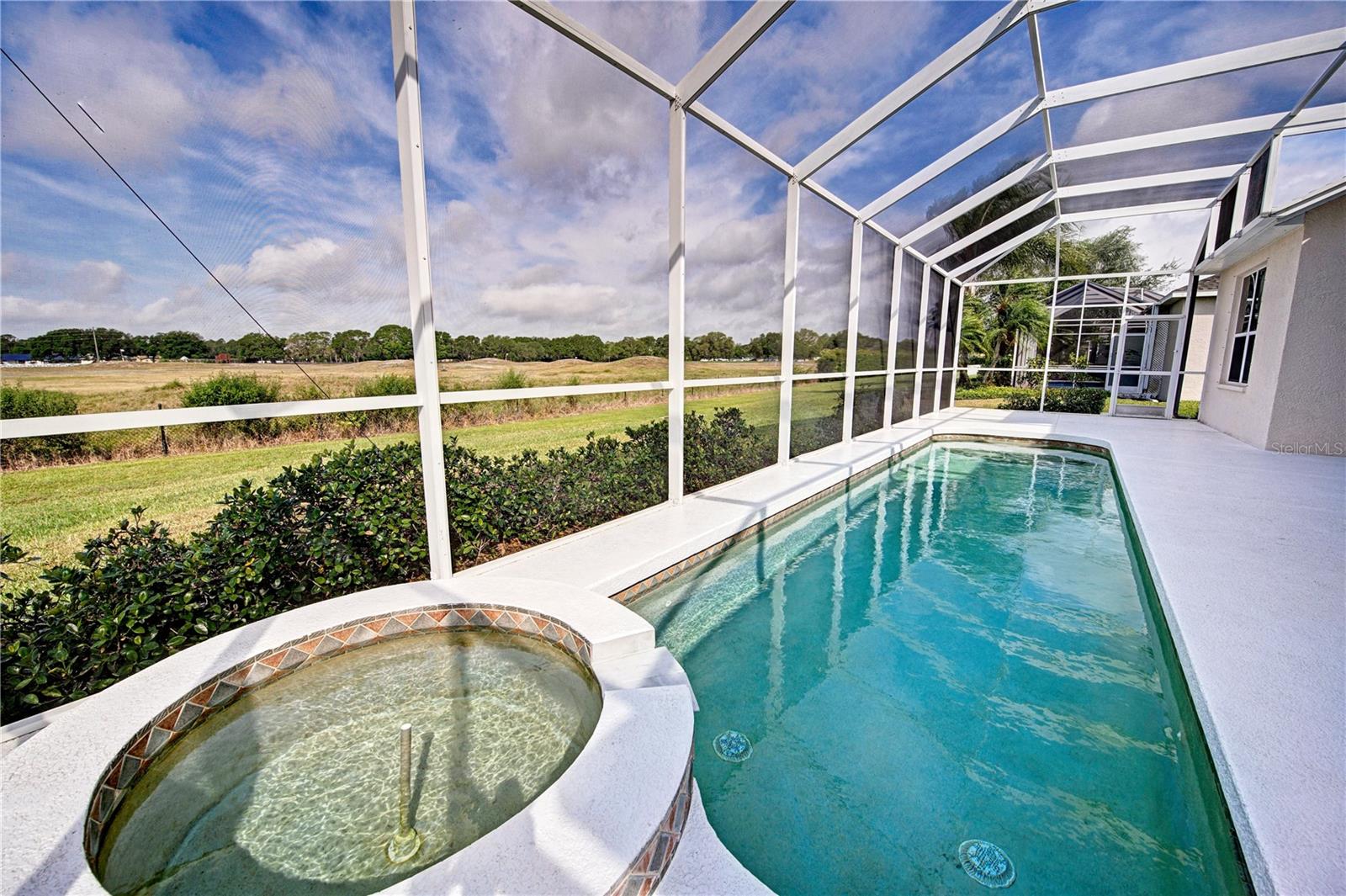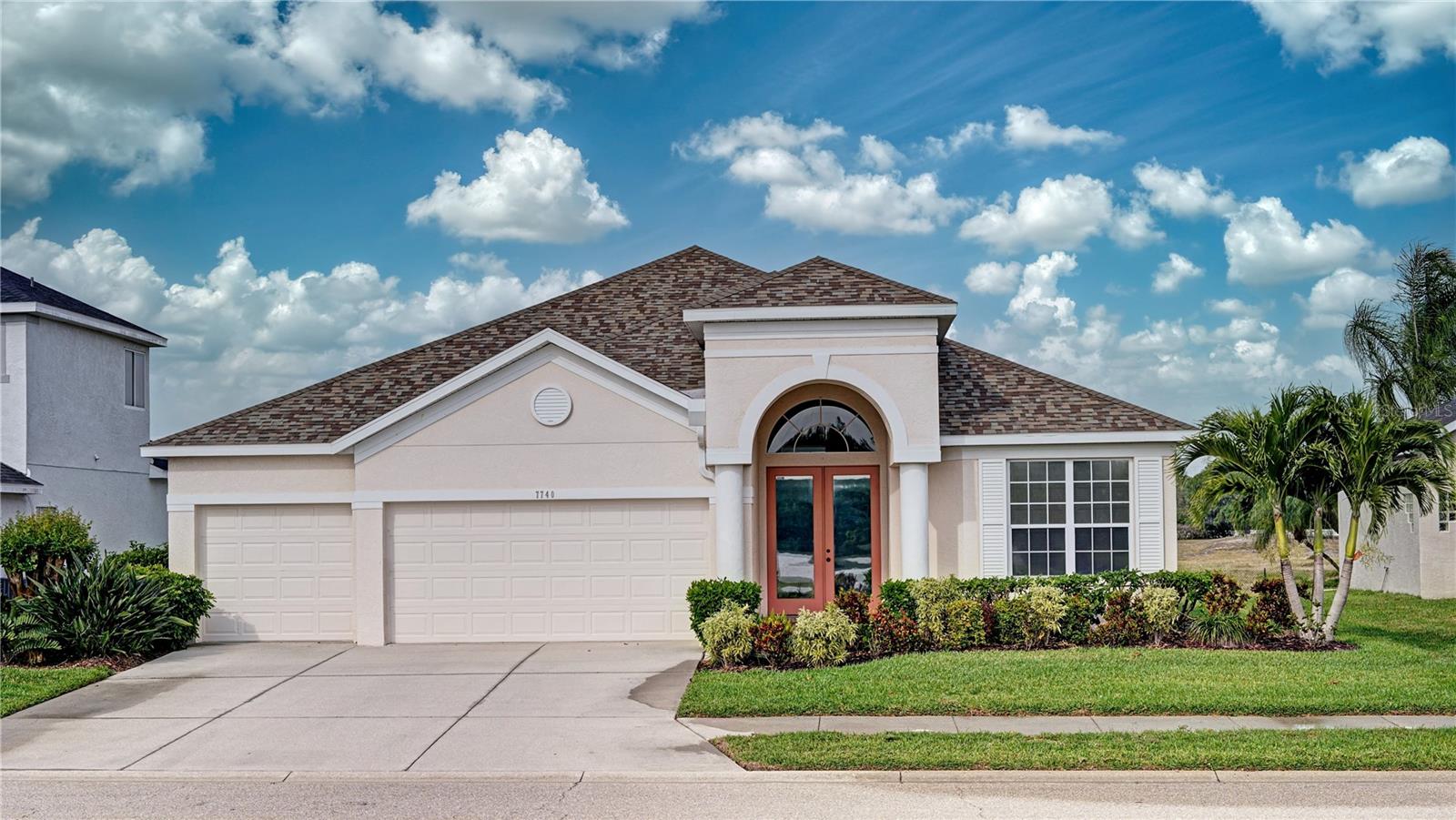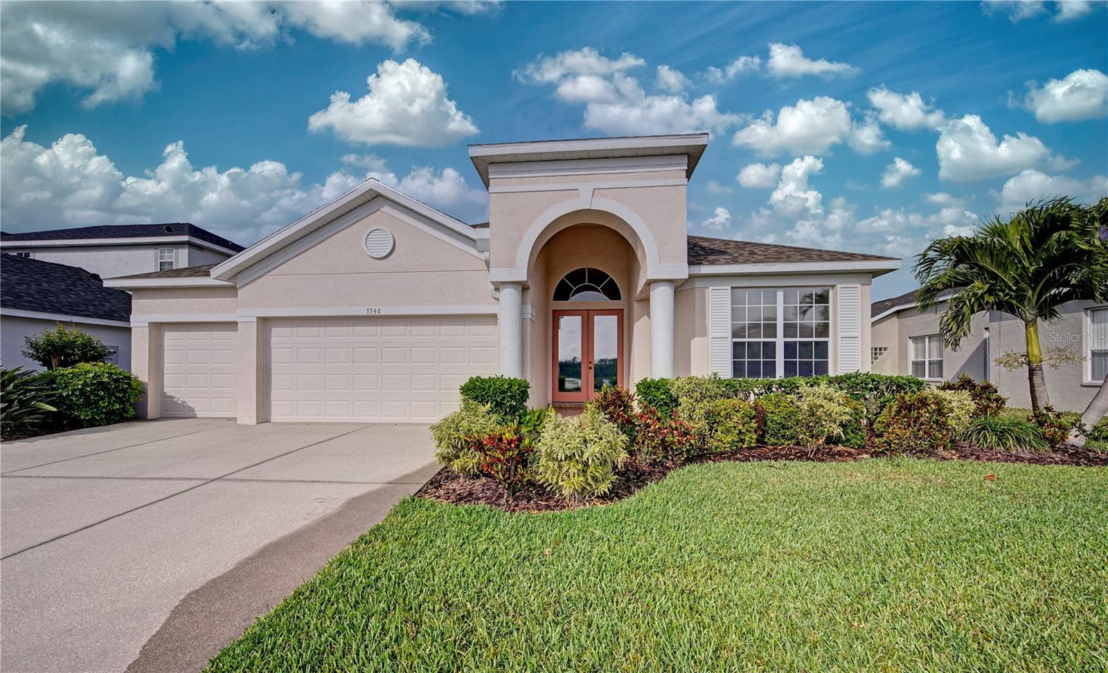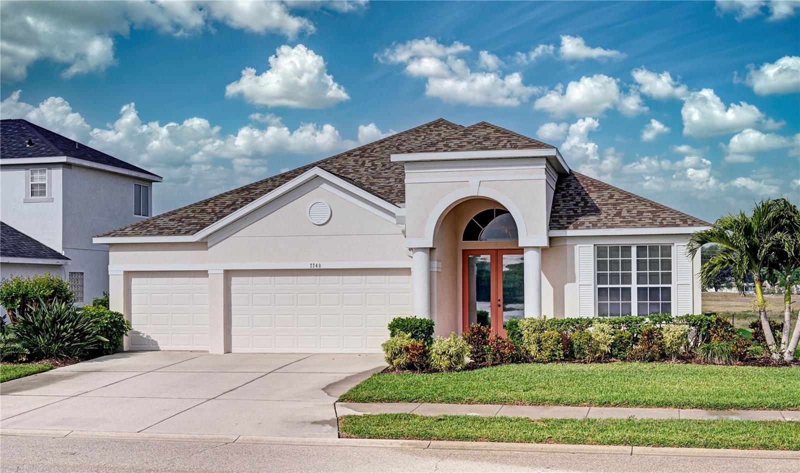 Welcome to 7740 Castleisland Dr, a stunning rare gem located in The Legends at Tatum Ridge, a prestigious gated community offering maintenance-free living, including mowing, trimming, irrigation systems repairs, lake maintenance and much more is included in the low monthly HOA fee. Enjoy peace of mind with this home's meticulously maintained systems, including a 1-year-old roof, recently re-screened pool cage, modern PEX plumbing, a new AC, a new hot water heater, and the stainless steel kitchen appliances are just 2 years old. This 3-bedroom, 3-bathroom split plan ensures privacy for you, your family, and your guests. Inside, you'll find a versatile den that serves as a secluded retreat, easily adaptable as a guest suite or executive office to meet your unique needs. The fusion of hardwood floors and tile throughout the living spaces and bathrooms adds warmth and sophistication, creating an inviting ambiance for all. Additional features include a spacious 3-car garage, a separate laundry room, and a covered lanai with a lap-style pool overlooking the beautiful Tatum Ridge Golf Links. The front view showcases a picturesque lake, with no neighbors blocking the view from the front or back of the house. All appliances, including the washer and dryer, are included, and most furniture is available under a separate contract. The seller is downsizing and motivated to sell.