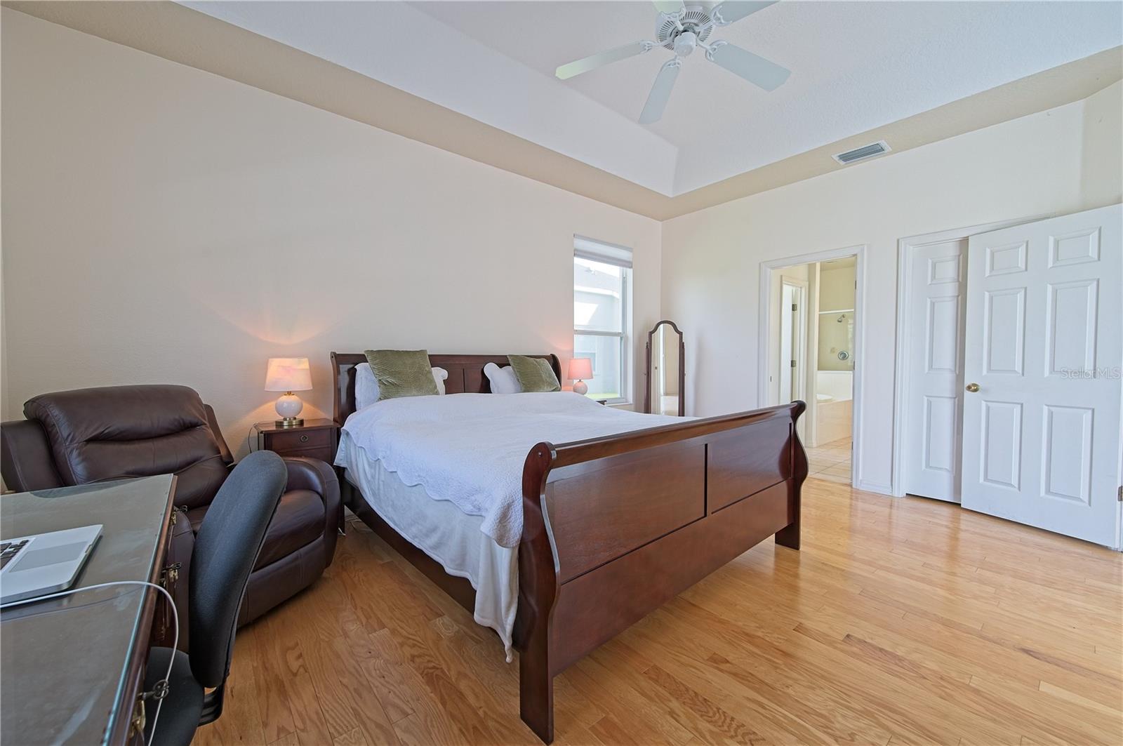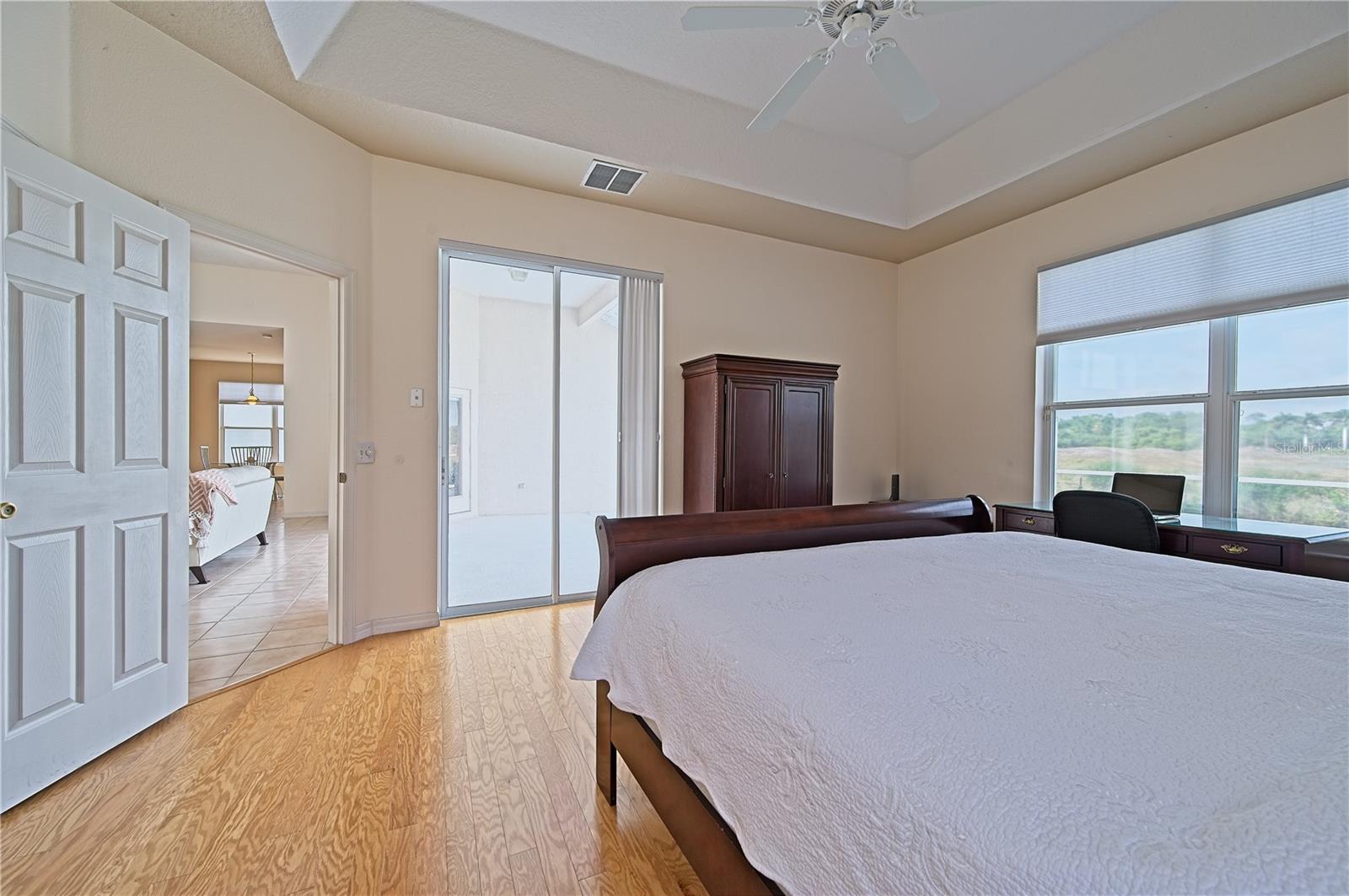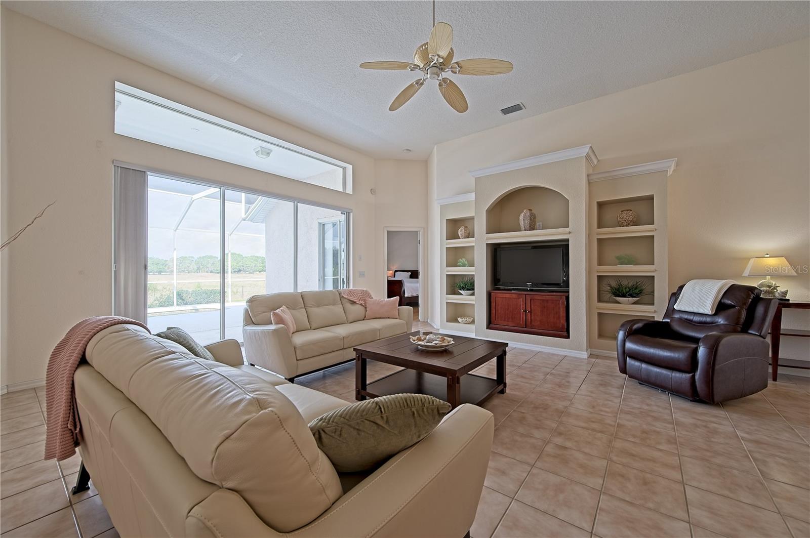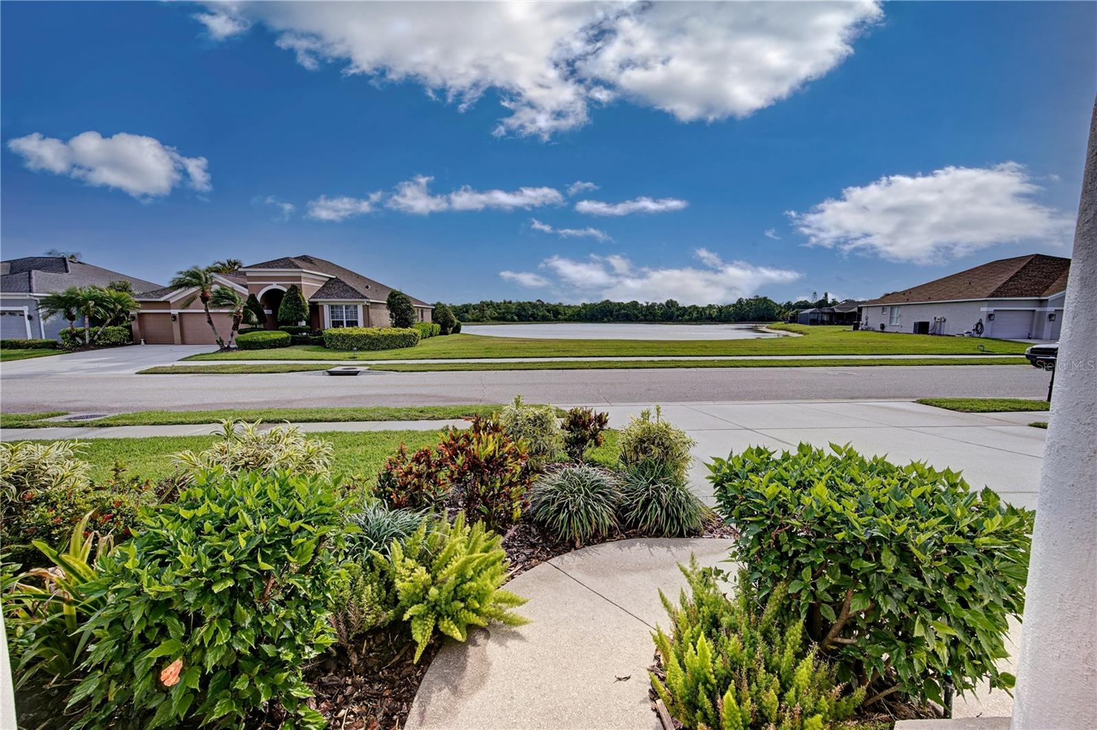 Welcome to 7740 Castleisland Dr, a stunning rare gem located in The Legends at Tatum Ridge, a prestigious gated community offering maintenance-free living, including mowing, trimming, irrigation systems repairs, lake maintenance and much more is included in the low monthly HOA fee. Enjoy peace of mind with this home's meticulously maintained systems, including a 1-year-old roof, recently re-screened pool cage, modern PEX plumbing, a new AC, a new hot water heater, and the stainless steel kitchen appliances are just 2 years old. This 3-bedroom, 3-bathroom split plan ensures privacy for you, your family, and your guests. Inside, you'll find a versatile den that serves as a secluded retreat, easily adaptable as a guest suite or executive office to meet your unique needs. The fusion of hardwood floors and tile throughout the living spaces and bathrooms adds warmth and sophistication, creating an inviting ambiance for all. Additional features include a spacious 3-car garage, a separate laundry room, and a covered lanai with a lap-style pool overlooking the beautiful Tatum Ridge Golf Links. The front view showcases a picturesque lake, with no neighbors blocking the view from the front or back of the house. All appliances, including the washer and dryer, are included, and most furniture is available under a separate contract. The seller is downsizing and motivated to sell.