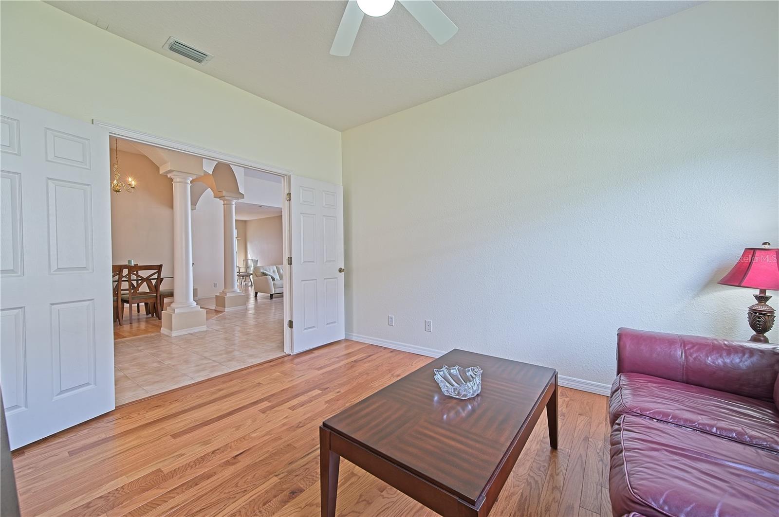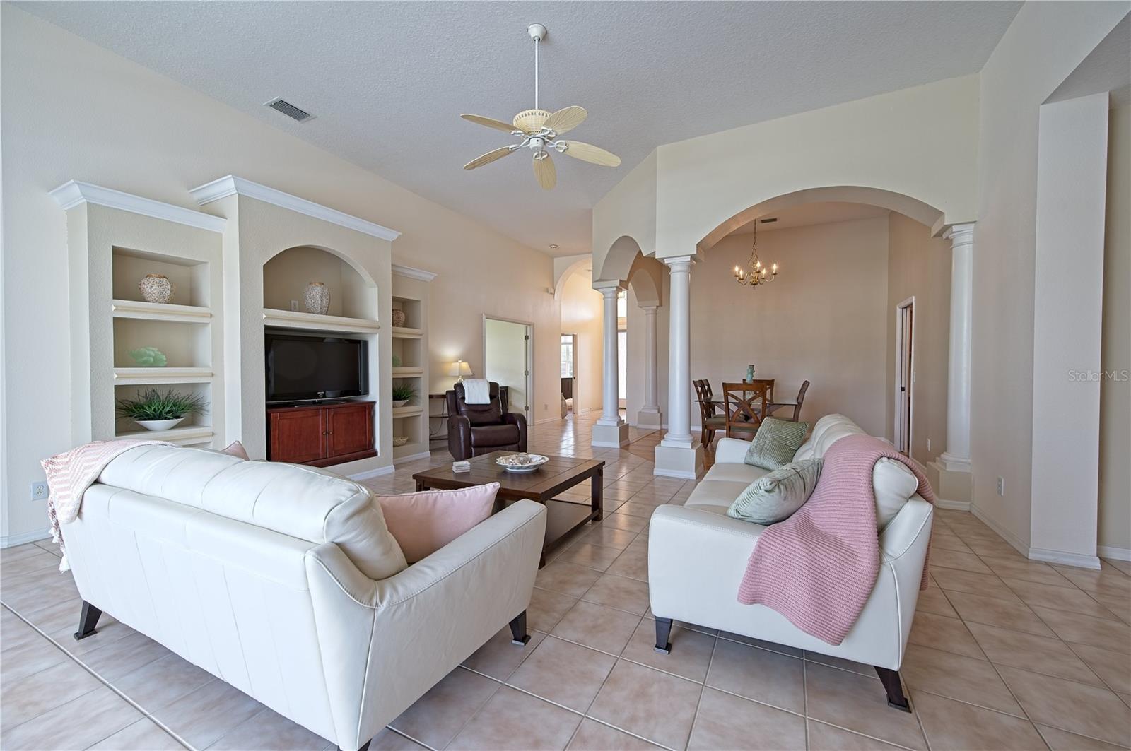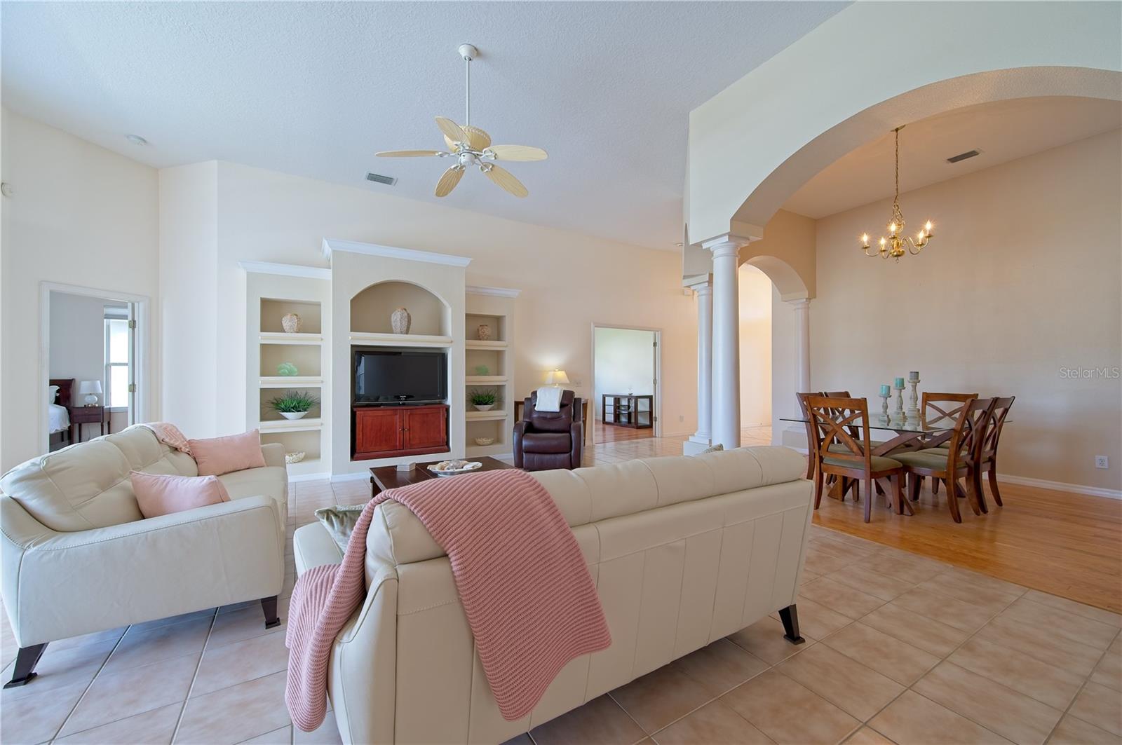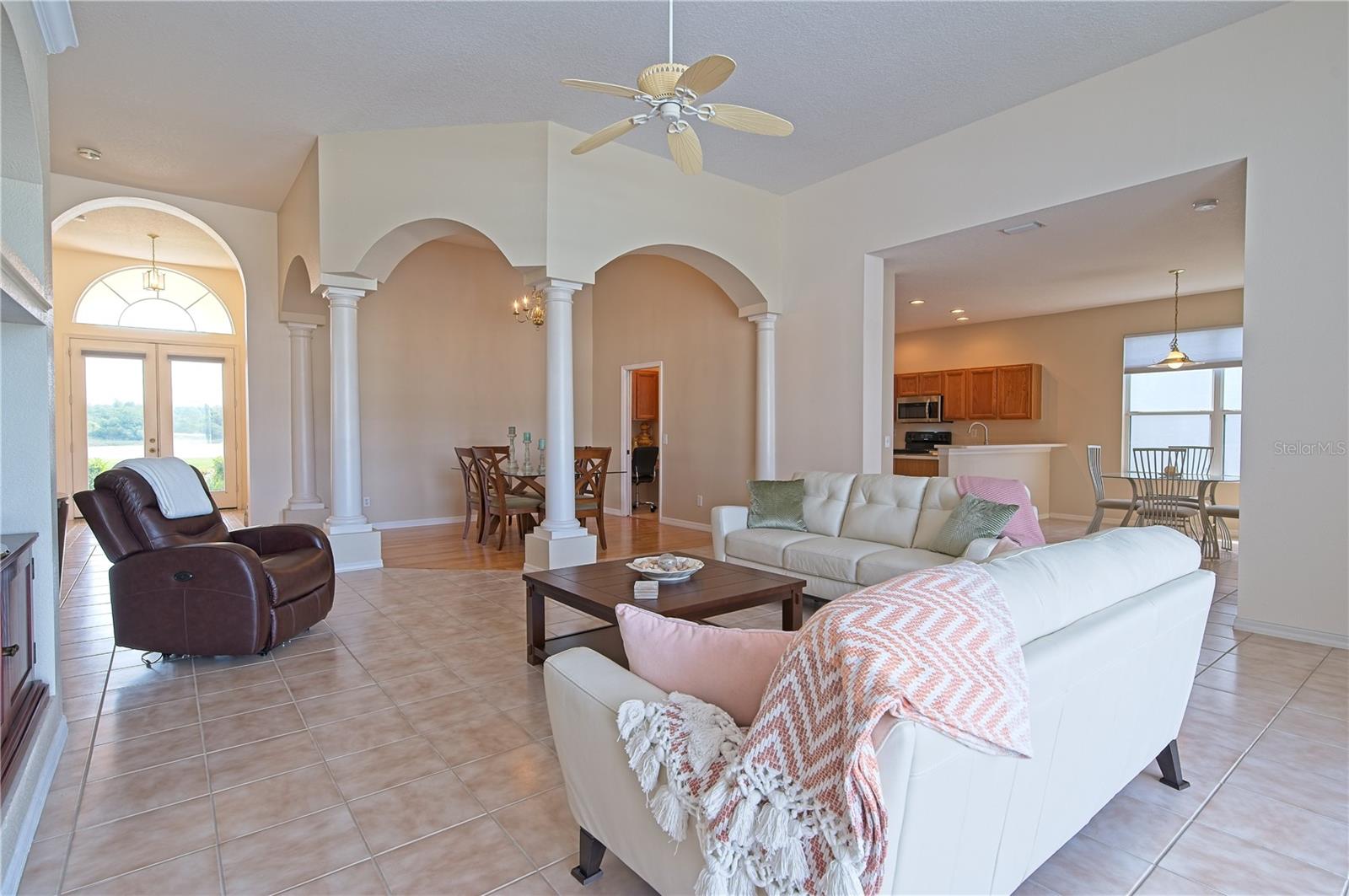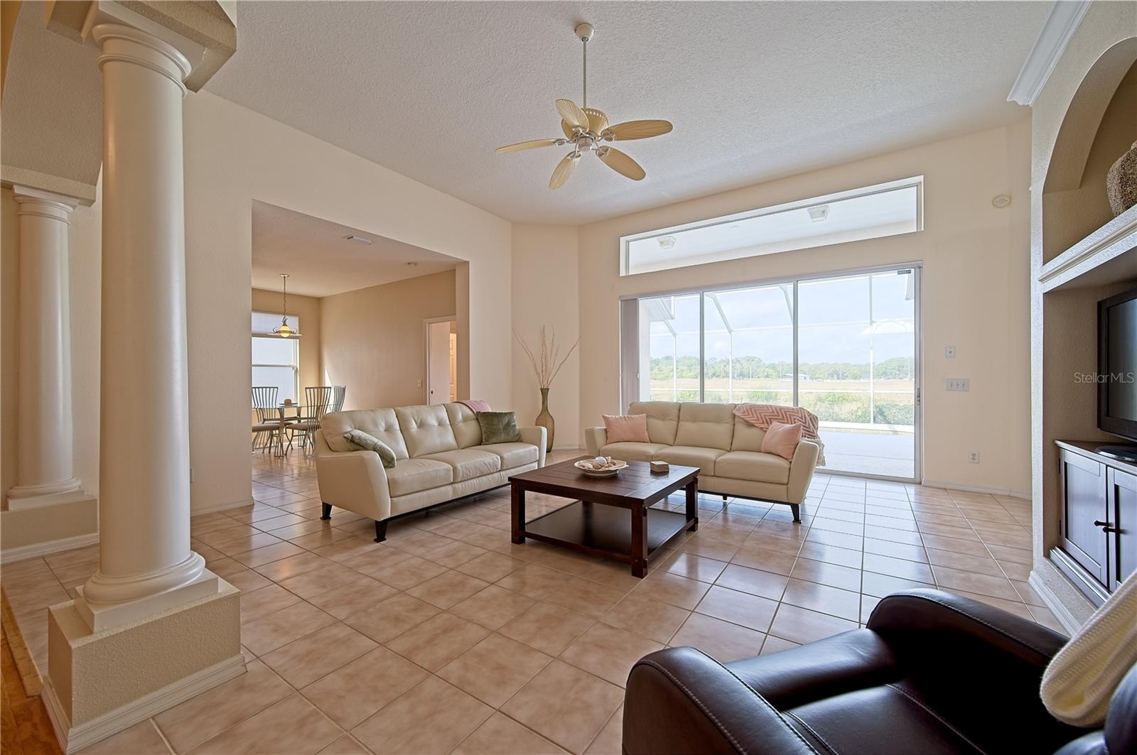 Welcome to 7740 Castleisland Dr, a stunning rare gem located in The Legends at Tatum Ridge, a prestigious gated community offering maintenance-free living, including mowing, trimming, irrigation systems repairs, lake maintenance and much more is included in the low monthly HOA fee. Enjoy peace of mind with this home's meticulously maintained systems, including a 1-year-old roof, recently re-screened pool cage, modern PEX plumbing, a new AC, a new hot water heater, and the stainless steel kitchen appliances are just 2 years old. This 3-bedroom, 3-bathroom split plan ensures privacy for you, your family, and your guests. Inside, you'll find a versatile den that serves as a secluded retreat, easily adaptable as a guest suite or executive office to meet your unique needs. The fusion of hardwood floors and tile throughout the living spaces and bathrooms adds warmth and sophistication, creating an inviting ambiance for all. Additional features include a spacious 3-car garage, a separate laundry room, and a covered lanai with a lap-style pool overlooking the beautiful Tatum Ridge Golf Links. The front view showcases a picturesque lake, with no neighbors blocking the view from the front or back of the house. All appliances, including the washer and dryer, are included, and most furniture is available under a separate contract. The seller is downsizing and motivated to sell.