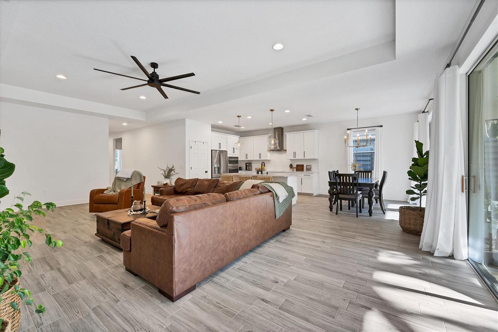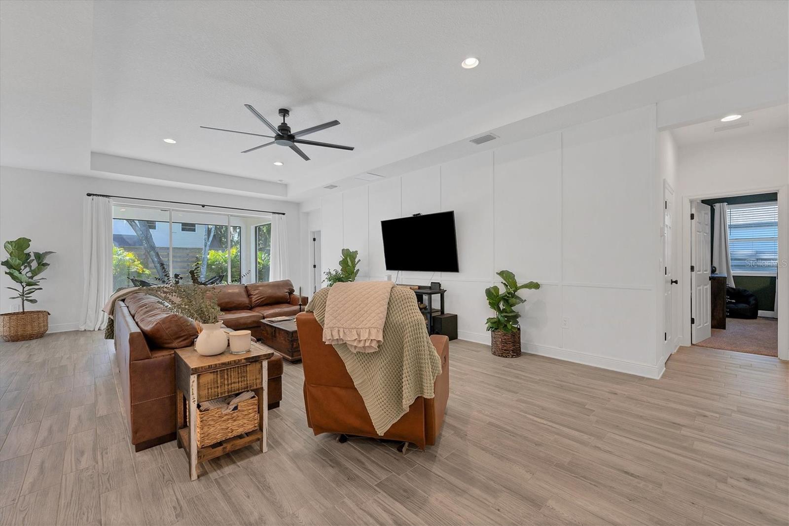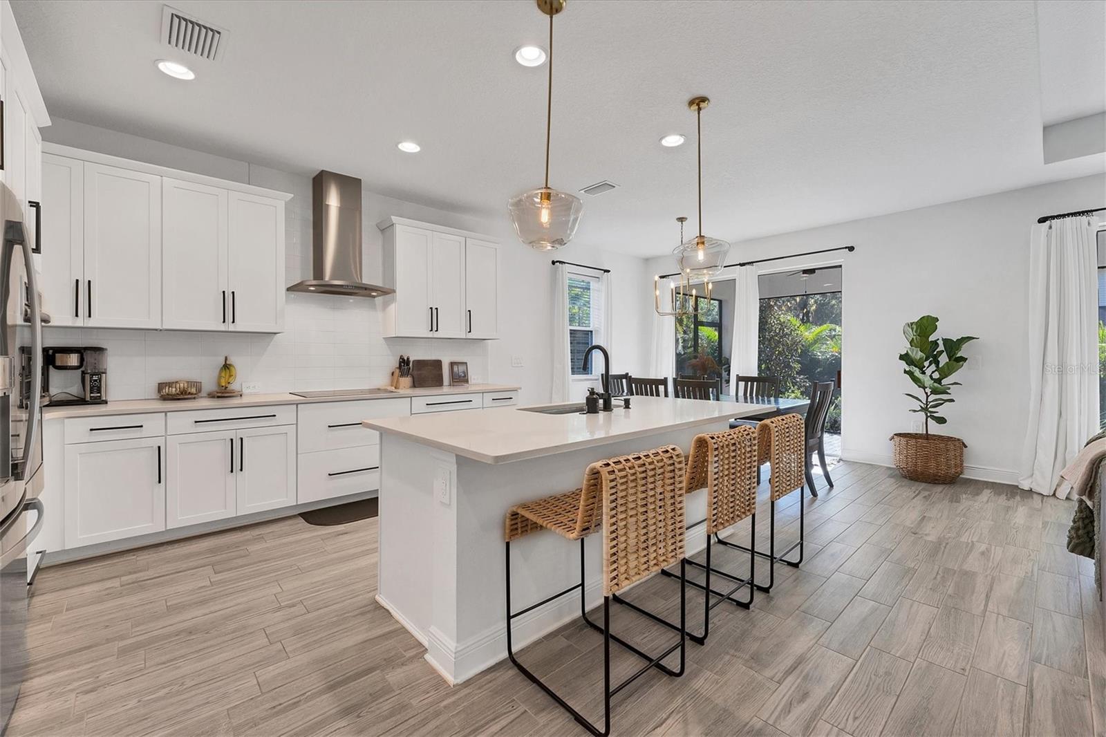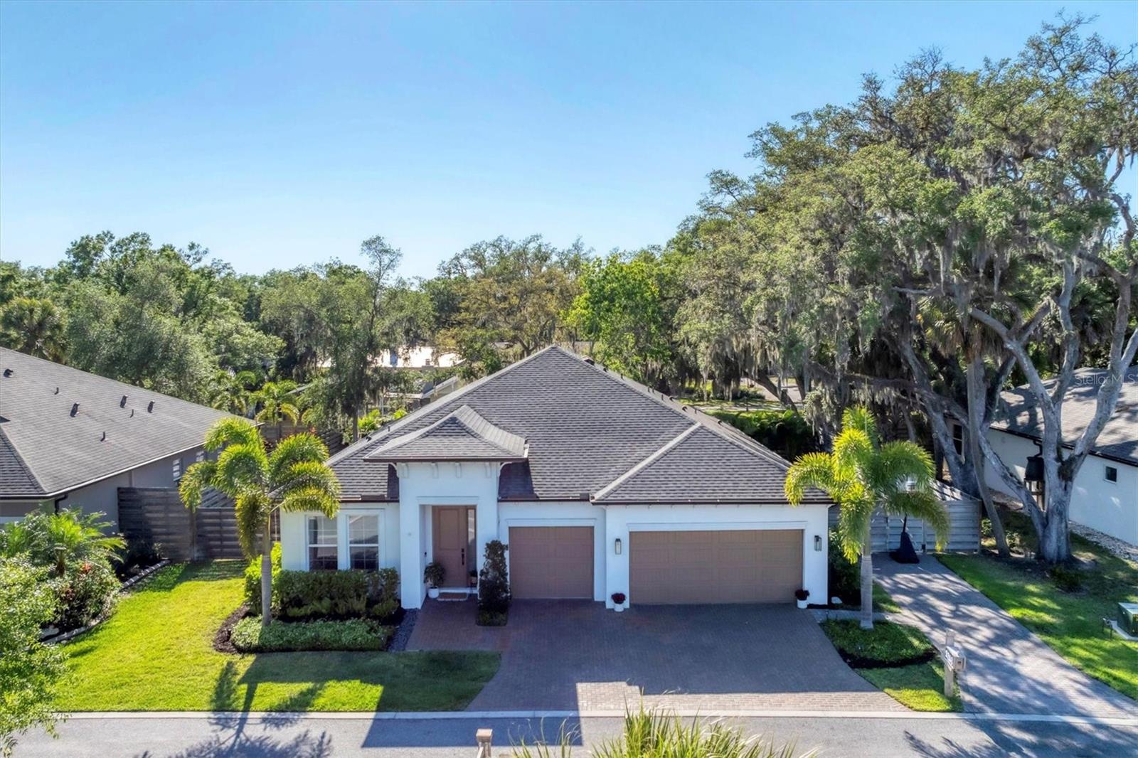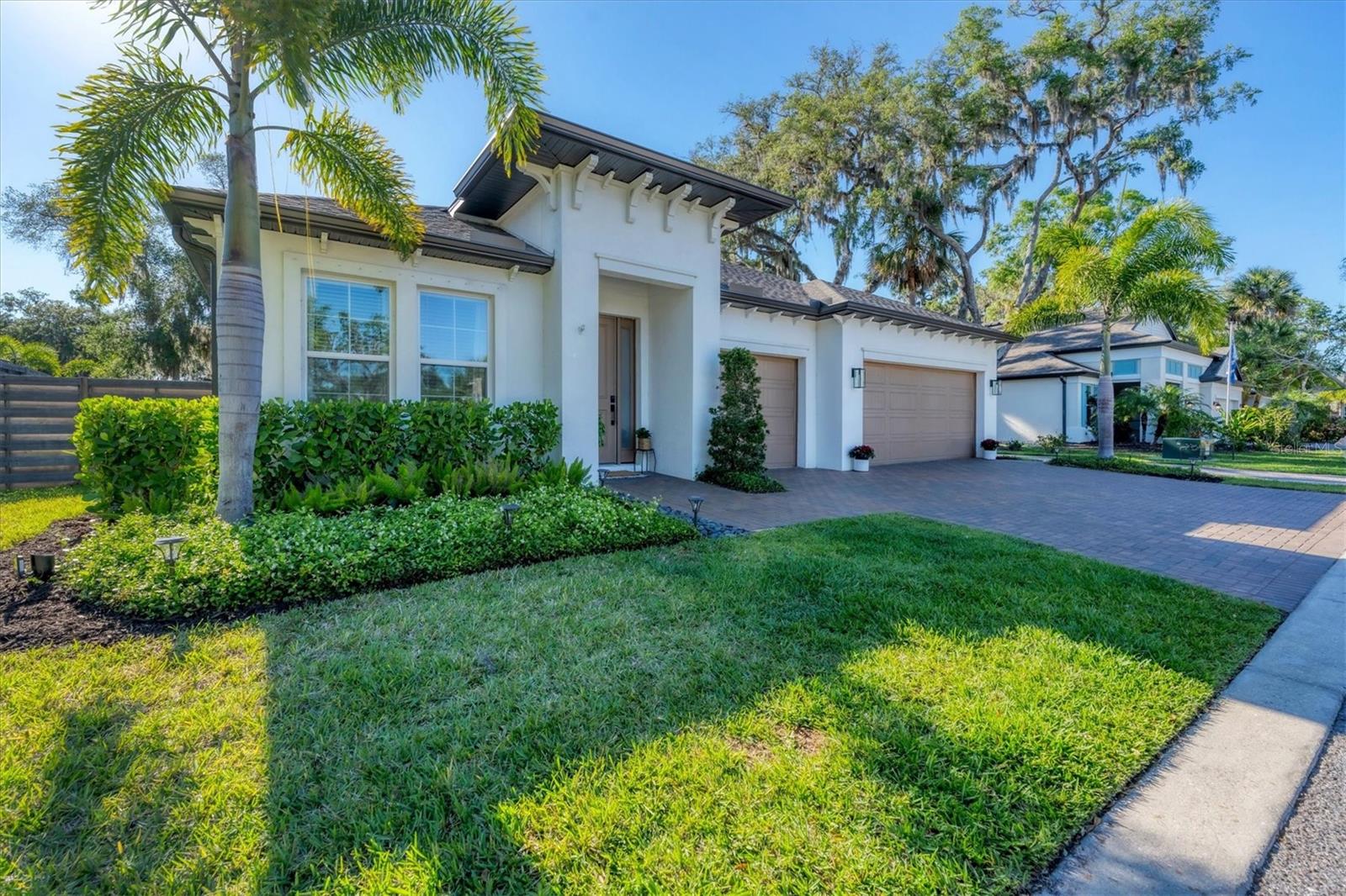 Discover this hidden gem in the exclusive and desirable Sylvan Lea community. Bask in the shade of the mature oak trees throughout which give way to an “Old Florida” feeling with a modern twist. This M & I home built in 2021 features 4 true bedrooms and 3 full bathrooms, with room for a private pool in the fully fenced backyard. The sleek open floor plan and the warm wood tones of the plank tile flooring flow effortlessly throughout the home. An open-air combined living, dining, and gourmet kitchen offer a neutral color palette, modern fixtures, plenty of natural light, and architectural details that create an upscale and luxuriously designed atmosphere. The kitchen dons a generously sized center island with breakfast bar, pantry closet, and stainless GE appliances making this a chef's dream. Relax and unwind in the spacious private owner's suite, which features a modern walk-in shower, his and her vanities, and a grand custom designed walk-in closet. 3 additional large bedrooms feature the warmth and coziness of wall to wall carpeting, and plenty of natural light. The oversized laundry room with high-end washer and dryer is located in the heart of the home and puts function and convenience at the forefront. Step out into the spacious 3 car garage that has its own A/C unit creating the perfect dream garage or home gym. Immerse yourself in the outdoors and dine al fresco on the fully screened in paver patio, surrounded by mature landscaping and privacy fence which creates your own personal paradise. An additional highlight to this home is the newly added paver side-driveway making parking and backyard accessibility a breeze. With low HOA fees and a superb location just east of I-75 this home has an all-access pass to everything Sarasota has to offer- With world-class beaches, a plethora of new parks with miles of hiking, and biking trails, fine dining, a downtown offering plenty of nightlife, and the ever expanding UTC mall, one will be enjoying the Florida lifestyle in no time! Seller offering a home warranty for buyers piece of mind.