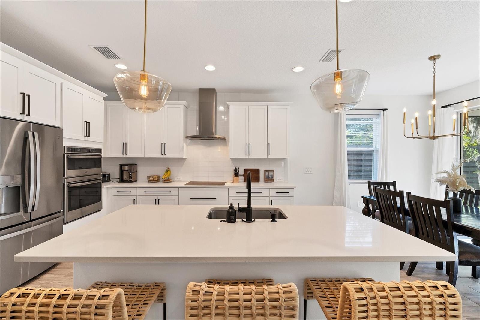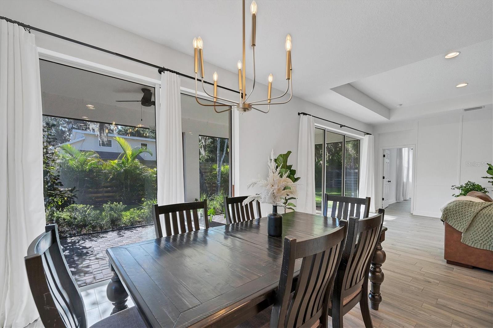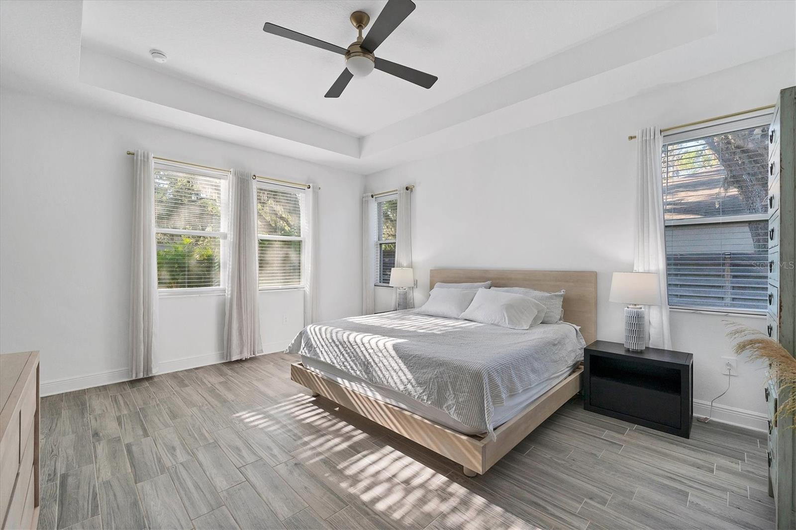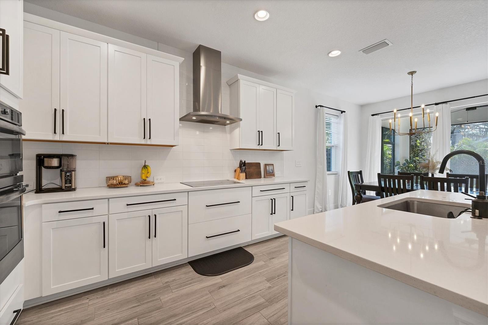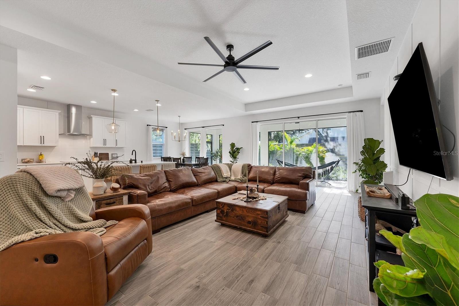 Discover this hidden gem in the exclusive and desirable Sylvan Lea community. Bask in the shade of the mature oak trees throughout which give way to an “Old Florida” feeling with a modern twist. This M & I home built in 2021 features 4 true bedrooms and 3 full bathrooms, with room for a private pool in the fully fenced backyard. The sleek open floor plan and the warm wood tones of the plank tile flooring flow effortlessly throughout the home. An open-air combined living, dining, and gourmet kitchen offer a neutral color palette, modern fixtures, plenty of natural light, and architectural details that create an upscale and luxuriously designed atmosphere. The kitchen dons a generously sized center island with breakfast bar, pantry closet, and stainless GE appliances making this a chef's dream. Relax and unwind in the spacious private owner's suite, which features a modern walk-in shower, his and her vanities, and a grand custom designed walk-in closet. 3 additional large bedrooms feature the warmth and coziness of wall to wall carpeting, and plenty of natural light. The oversized laundry room with high-end washer and dryer is located in the heart of the home and puts function and convenience at the forefront. Step out into the spacious 3 car garage that has its own A/C unit creating the perfect dream garage or home gym. Immerse yourself in the outdoors and dine al fresco on the fully screened in paver patio, surrounded by mature landscaping and privacy fence which creates your own personal paradise. An additional highlight to this home is the newly added paver side-driveway making parking and backyard accessibility a breeze. With low HOA fees and a superb location just east of I-75 this home has an all-access pass to everything Sarasota has to offer- With world-class beaches, a plethora of new parks with miles of hiking, and biking trails, fine dining, a downtown offering plenty of nightlife, and the ever expanding UTC mall, one will be enjoying the Florida lifestyle in no time! Seller offering a home warranty for buyers piece of mind.