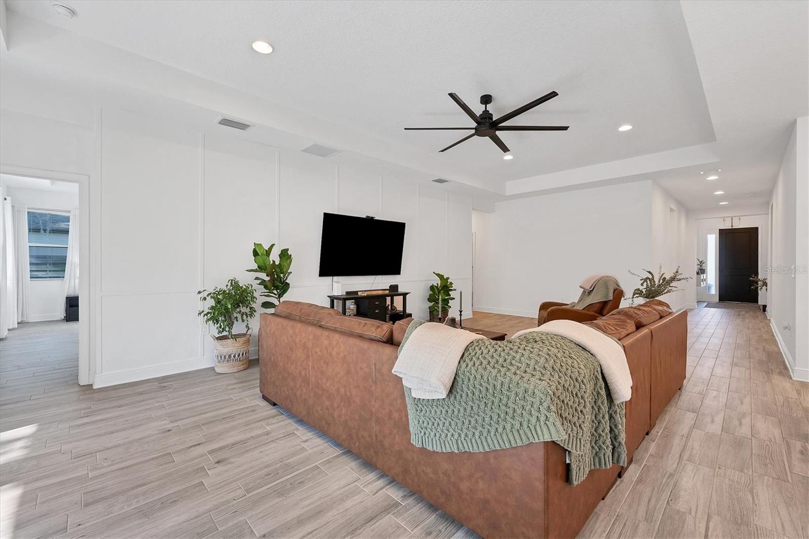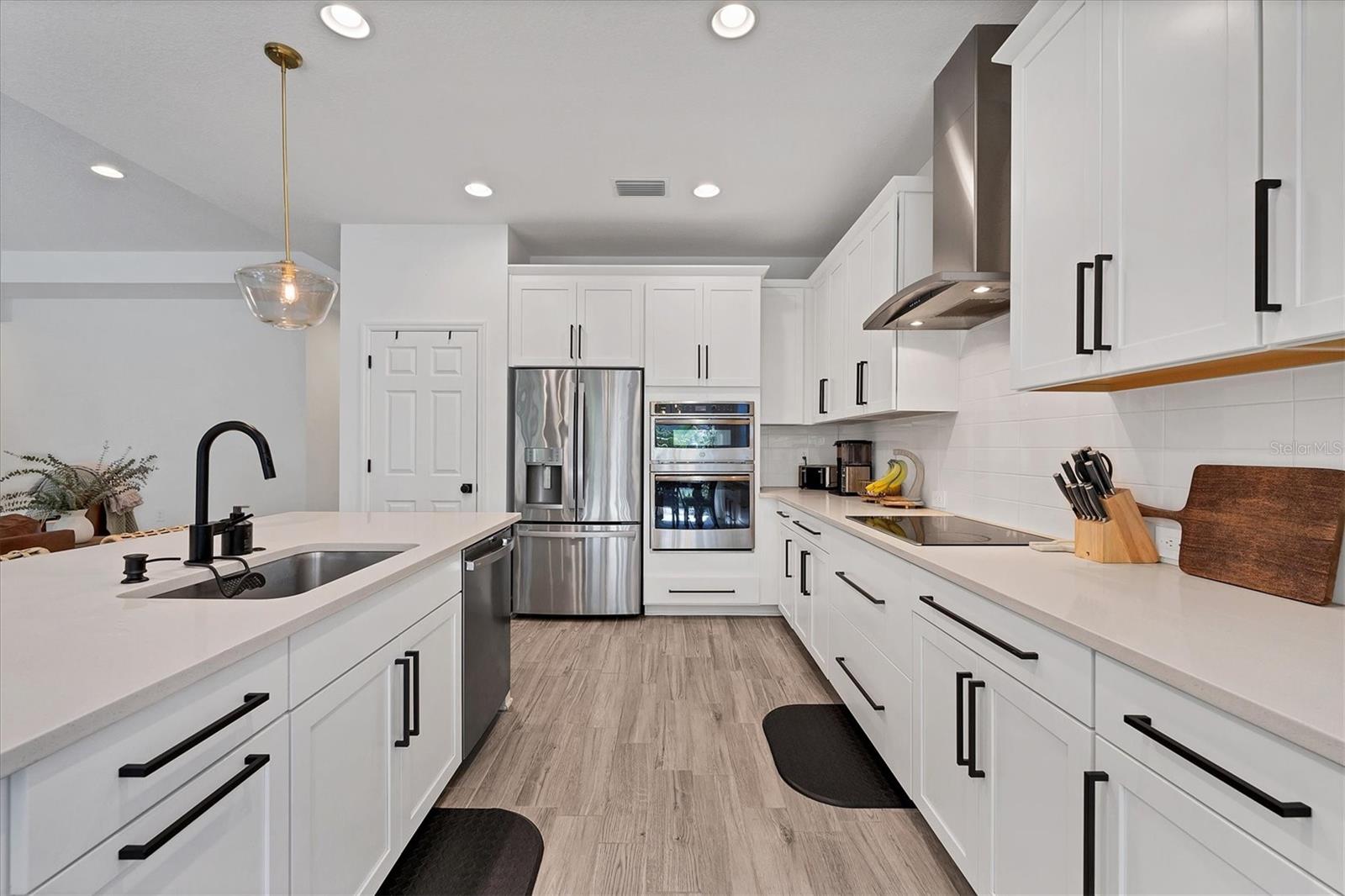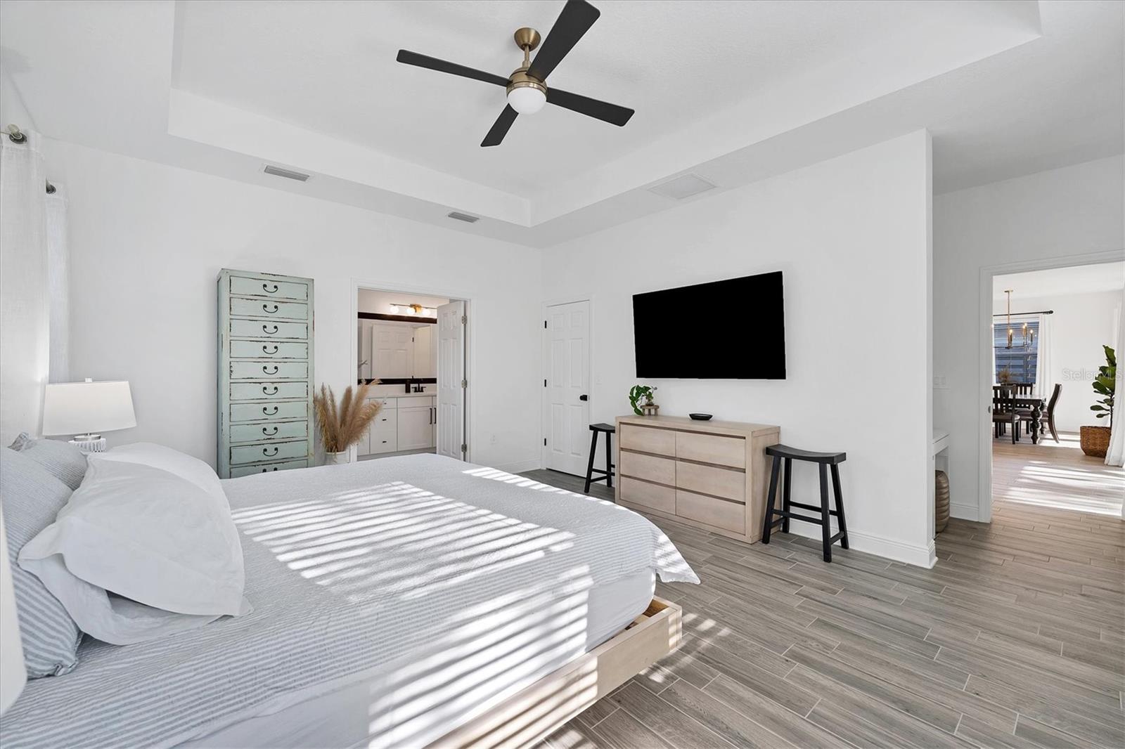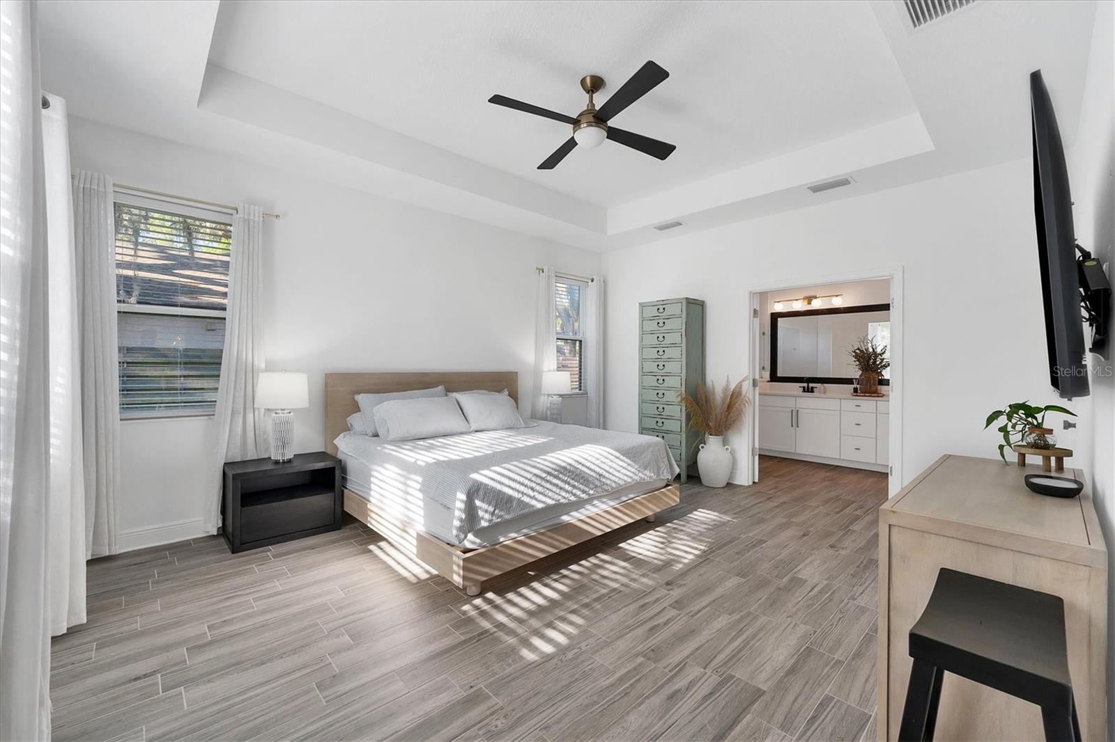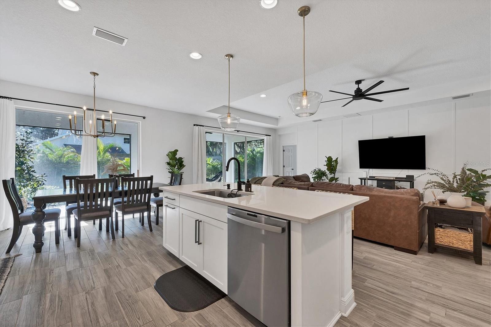 Discover this hidden gem in the exclusive and desirable Sylvan Lea community. Bask in the shade of the mature oak trees throughout which give way to an “Old Florida” feeling with a modern twist. This M & I home built in 2021 features 4 true bedrooms and 3 full bathrooms, with room for a private pool in the fully fenced backyard. The sleek open floor plan and the warm wood tones of the plank tile flooring flow effortlessly throughout the home. An open-air combined living, dining, and gourmet kitchen offer a neutral color palette, modern fixtures, plenty of natural light, and architectural details that create an upscale and luxuriously designed atmosphere. The kitchen dons a generously sized center island with breakfast bar, pantry closet, and stainless GE appliances making this a chef's dream. Relax and unwind in the spacious private owner's suite, which features a modern walk-in shower, his and her vanities, and a grand custom designed walk-in closet. 3 additional large bedrooms feature the warmth and coziness of wall to wall carpeting, and plenty of natural light. The oversized laundry room with high-end washer and dryer is located in the heart of the home and puts function and convenience at the forefront. Step out into the spacious 3 car garage that has its own A/C unit creating the perfect dream garage or home gym. Immerse yourself in the outdoors and dine al fresco on the fully screened in paver patio, surrounded by mature landscaping and privacy fence which creates your own personal paradise. An additional highlight to this home is the newly added paver side-driveway making parking and backyard accessibility a breeze. With low HOA fees and a superb location just east of I-75 this home has an all-access pass to everything Sarasota has to offer- With world-class beaches, a plethora of new parks with miles of hiking, and biking trails, fine dining, a downtown offering plenty of nightlife, and the ever expanding UTC mall, one will be enjoying the Florida lifestyle in no time! Seller offering a home warranty for buyers piece of mind.