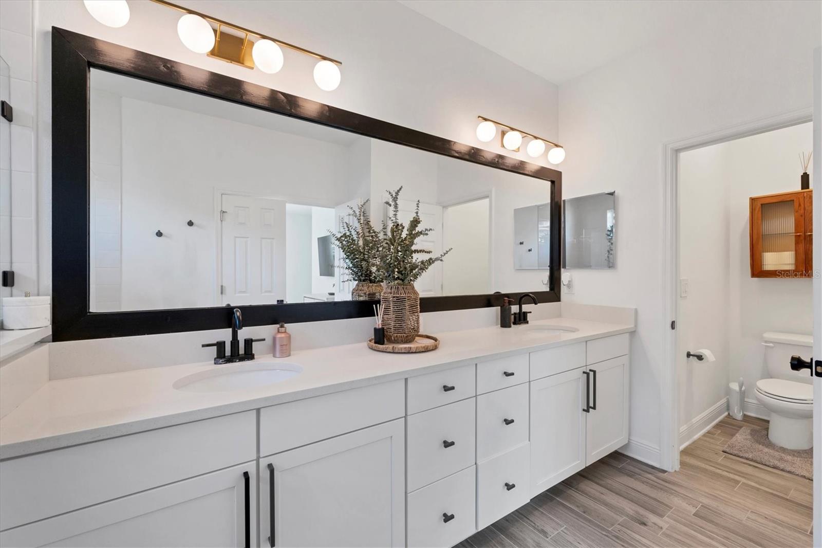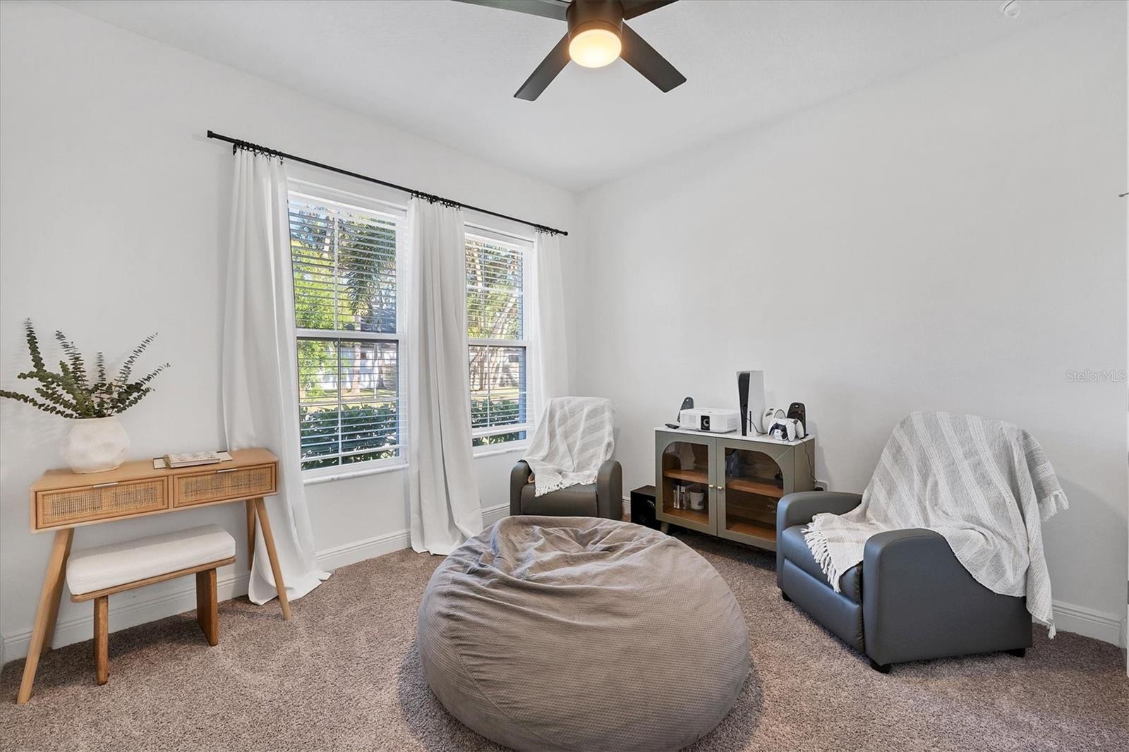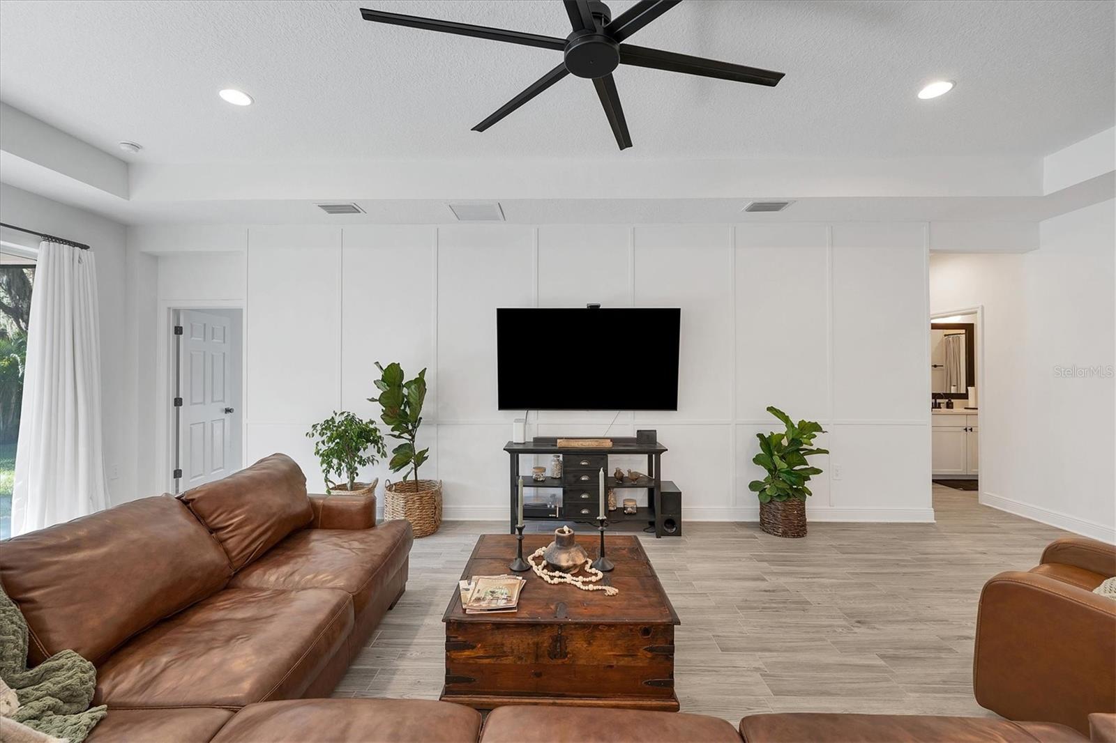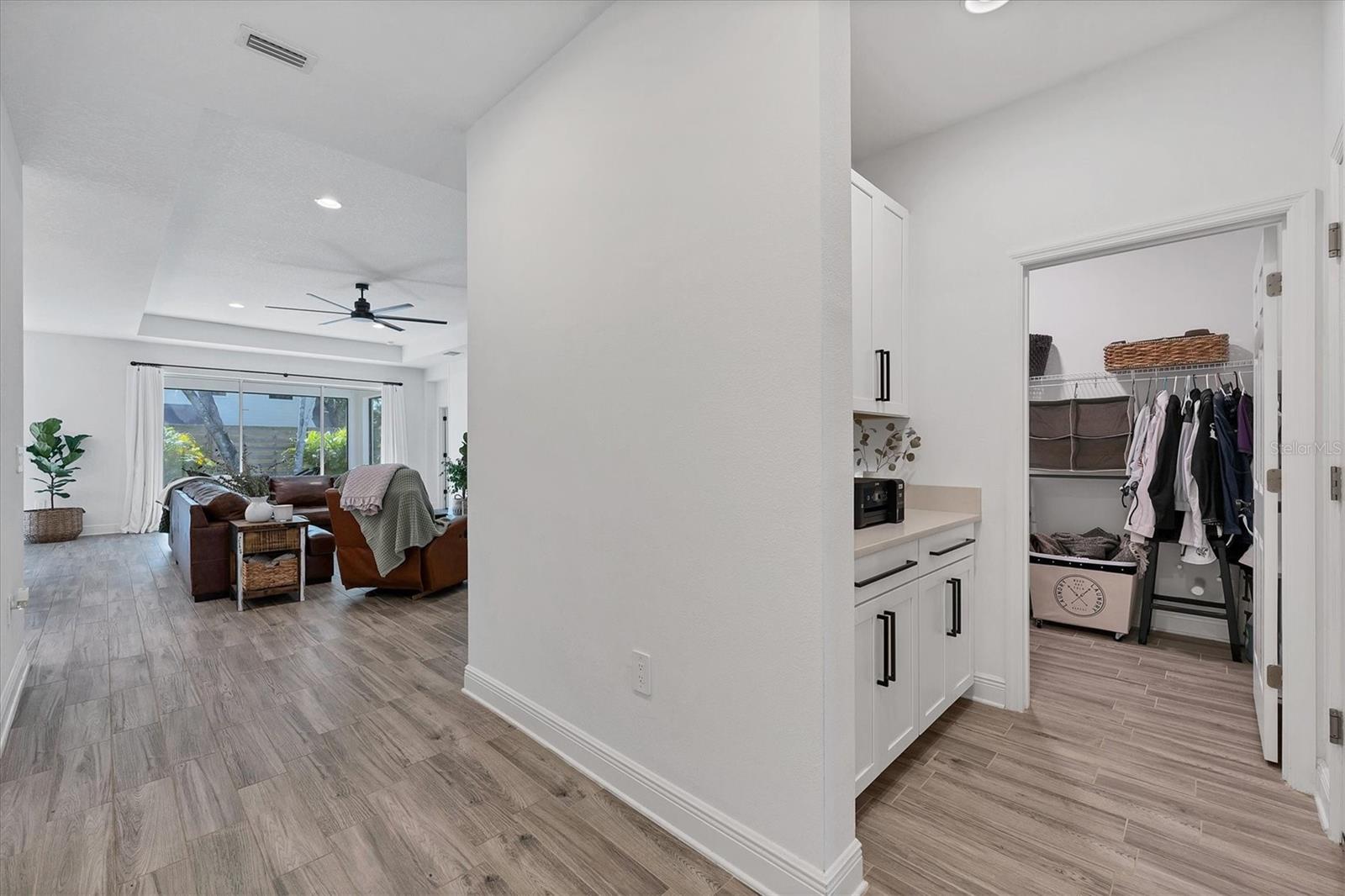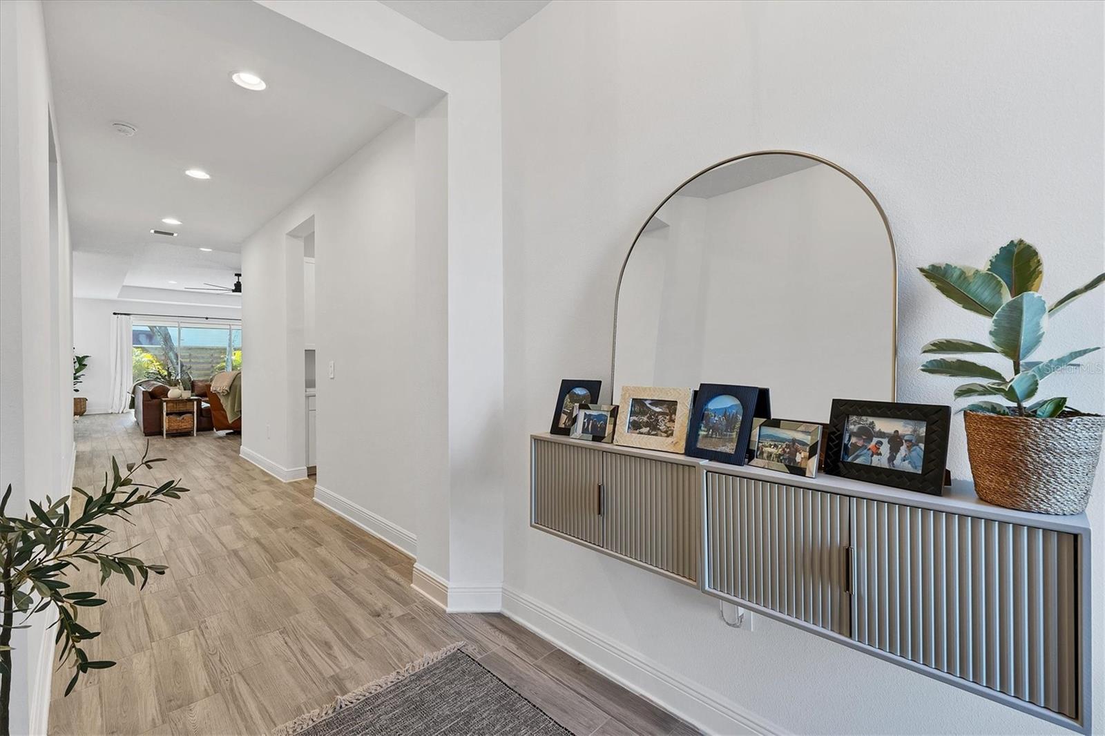 Discover this hidden gem in the exclusive and desirable Sylvan Lea community. Bask in the shade of the mature oak trees throughout which give way to an “Old Florida” feeling with a modern twist. This M & I home built in 2021 features 4 true bedrooms and 3 full bathrooms, with room for a private pool in the fully fenced backyard. The sleek open floor plan and the warm wood tones of the plank tile flooring flow effortlessly throughout the home. An open-air combined living, dining, and gourmet kitchen offer a neutral color palette, modern fixtures, plenty of natural light, and architectural details that create an upscale and luxuriously designed atmosphere. The kitchen dons a generously sized center island with breakfast bar, pantry closet, and stainless GE appliances making this a chef's dream. Relax and unwind in the spacious private owner's suite, which features a modern walk-in shower, his and her vanities, and a grand custom designed walk-in closet. 3 additional large bedrooms feature the warmth and coziness of wall to wall carpeting, and plenty of natural light. The oversized laundry room with high-end washer and dryer is located in the heart of the home and puts function and convenience at the forefront. Step out into the spacious 3 car garage that has its own A/C unit creating the perfect dream garage or home gym. Immerse yourself in the outdoors and dine al fresco on the fully screened in paver patio, surrounded by mature landscaping and privacy fence which creates your own personal paradise. An additional highlight to this home is the newly added paver side-driveway making parking and backyard accessibility a breeze. With low HOA fees and a superb location just east of I-75 this home has an all-access pass to everything Sarasota has to offer- With world-class beaches, a plethora of new parks with miles of hiking, and biking trails, fine dining, a downtown offering plenty of nightlife, and the ever expanding UTC mall, one will be enjoying the Florida lifestyle in no time! Seller offering a home warranty for buyers piece of mind.
