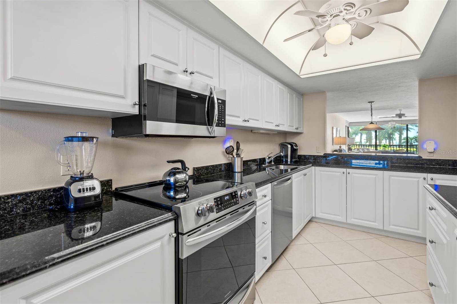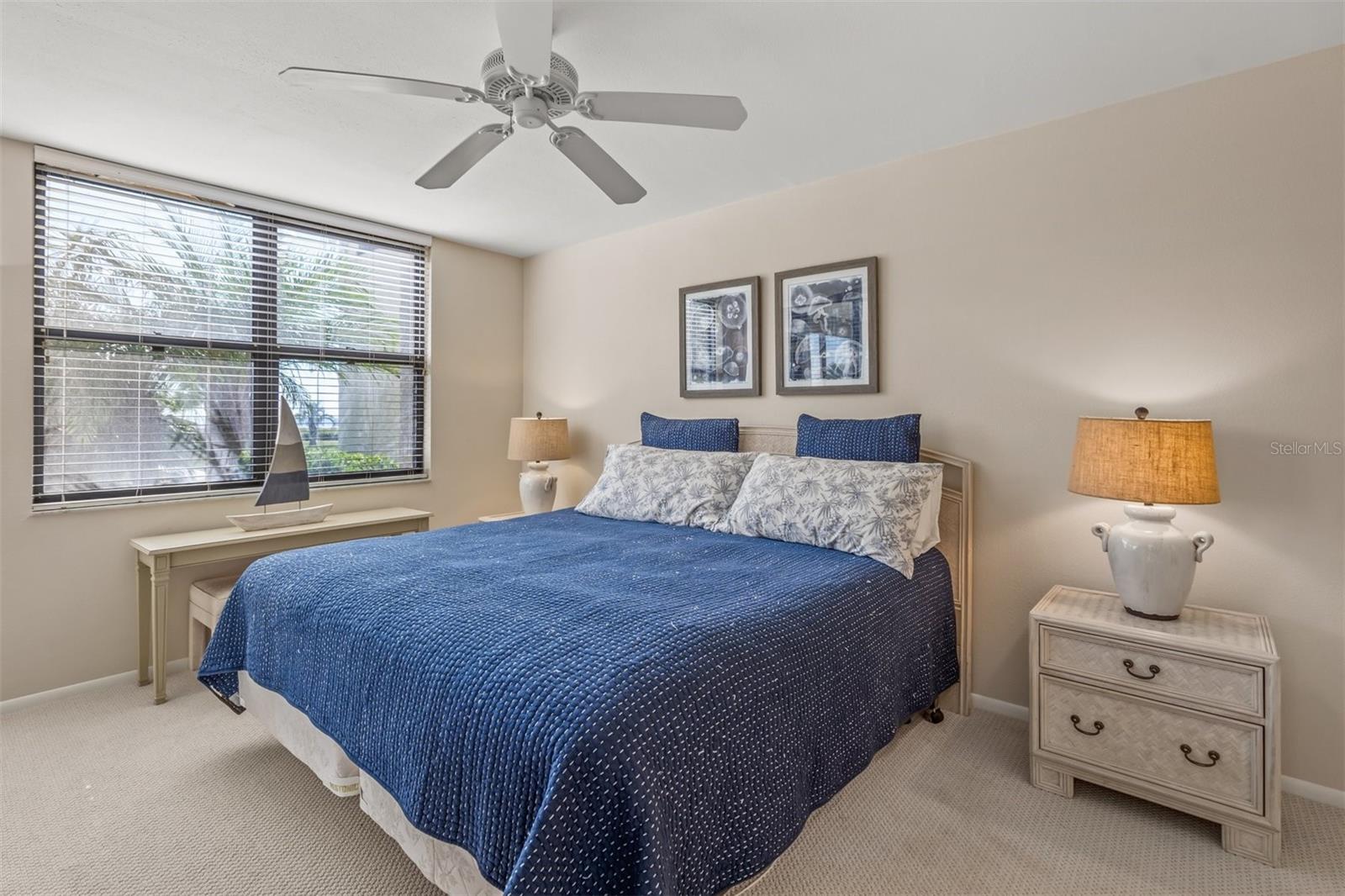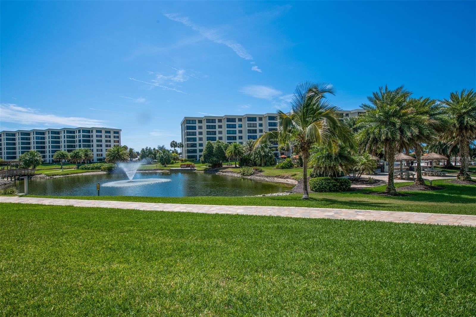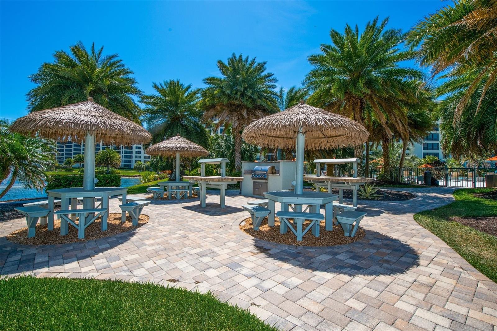 Rarely available, first-floor condominium located in the highly desirable building E at the Gulf & Bay Club. No waiting for the elevator and just a casual stroll directly out your door to the Gulf-front pool, one of the many barbecue grills and picnic areas, and most importantly, the crystal white sands of world-famous Siesta Key Beach. This nicely maintained and easy-to-care-for unit is light and bright. The living area has views overlooking the lush tropical landscaping, fountain-lit pond, waterside pool, and azure blue waters of the Gulf of Mexico. Double louvered doors allow privacy to the guest bedroom and bath plus laundry room. The laundry room easily accommodates a full-sized washer and dryer as well as extra storage. The kitchen has eat-in space with ample storage and all new kitchen appliances were installed in 2021 and 2022. The Gulf & Bay Club exemplifies the best of resort-style living with 800 feet of direct beachfront plus numerous amenities including but not limited to newer pickleball courts, tennis courts, a fitness center with sauna and spa, three swimming pools, basketball, racquetball, barbecue grills, picnic areas, two clubhouses, charging stations for electric cars, 24-hour security, and a guard-gated entry.