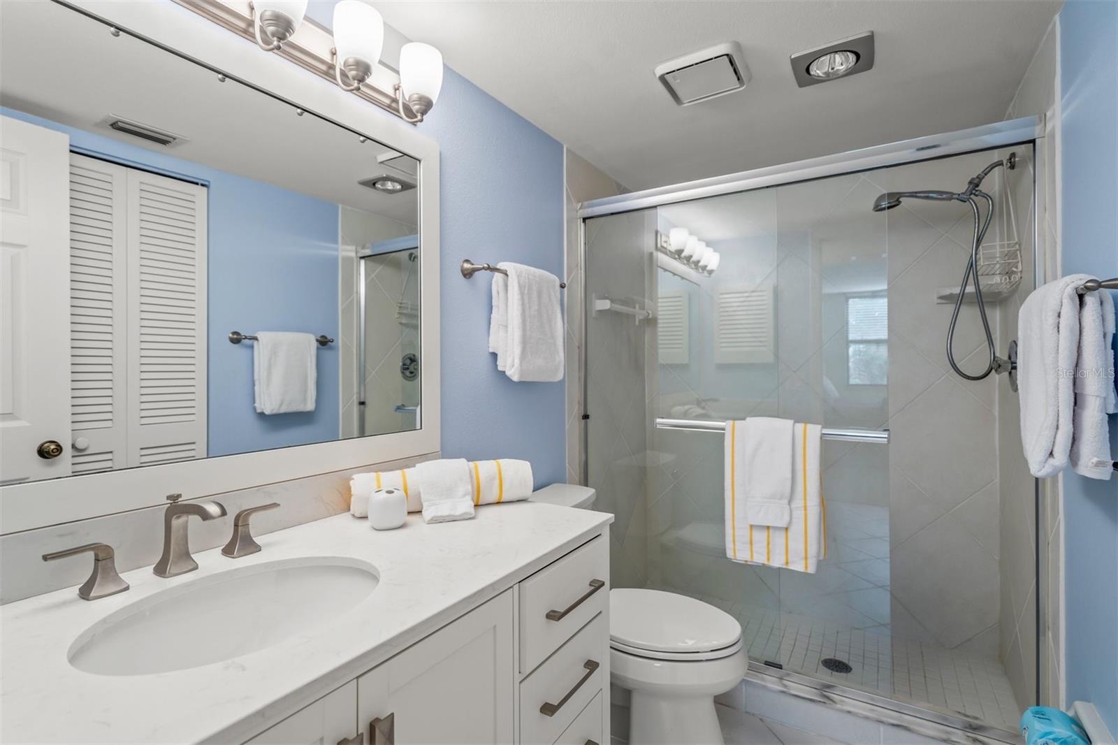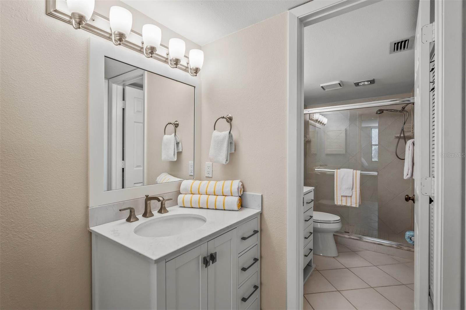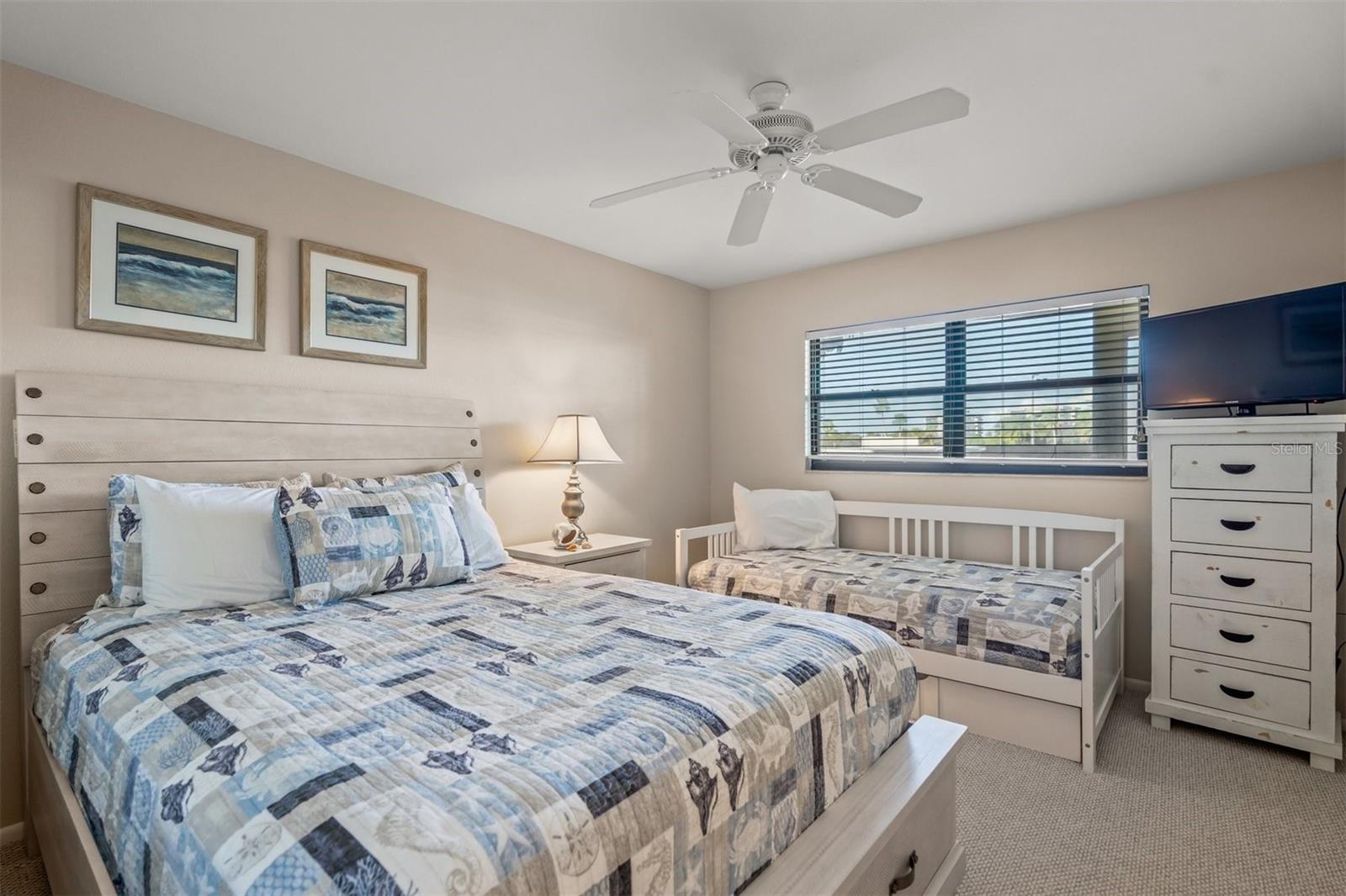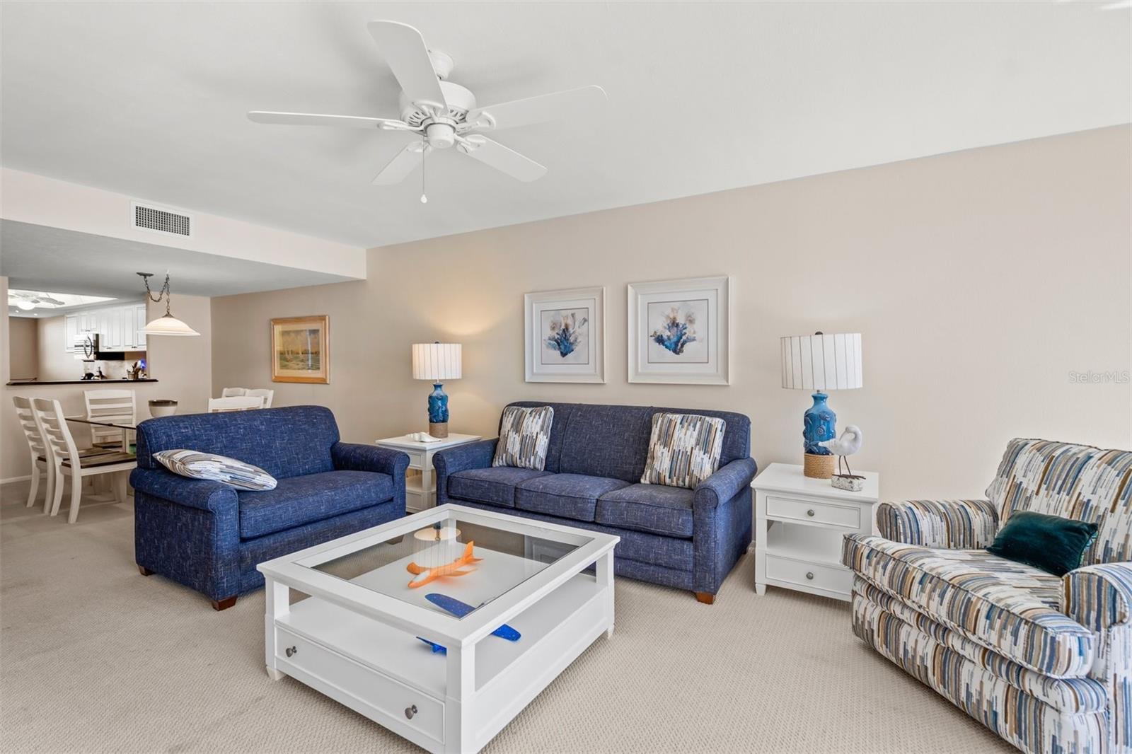 Rarely available, first-floor condominium located in the highly desirable building E at the Gulf & Bay Club. No waiting for the elevator and just a casual stroll directly out your door to the Gulf-front pool, one of the many barbecue grills and picnic areas, and most importantly, the crystal white sands of world-famous Siesta Key Beach. This nicely maintained and easy-to-care-for unit is light and bright. The living area has views overlooking the lush tropical landscaping, fountain-lit pond, waterside pool, and azure blue waters of the Gulf of Mexico. Double louvered doors allow privacy to the guest bedroom and bath plus laundry room. The laundry room easily accommodates a full-sized washer and dryer as well as extra storage. The kitchen has eat-in space with ample storage and all new kitchen appliances were installed in 2021 and 2022. The Gulf & Bay Club exemplifies the best of resort-style living with 800 feet of direct beachfront plus numerous amenities including but not limited to newer pickleball courts, tennis courts, a fitness center with sauna and spa, three swimming pools, basketball, racquetball, barbecue grills, picnic areas, two clubhouses, charging stations for electric cars, 24-hour security, and a guard-gated entry.