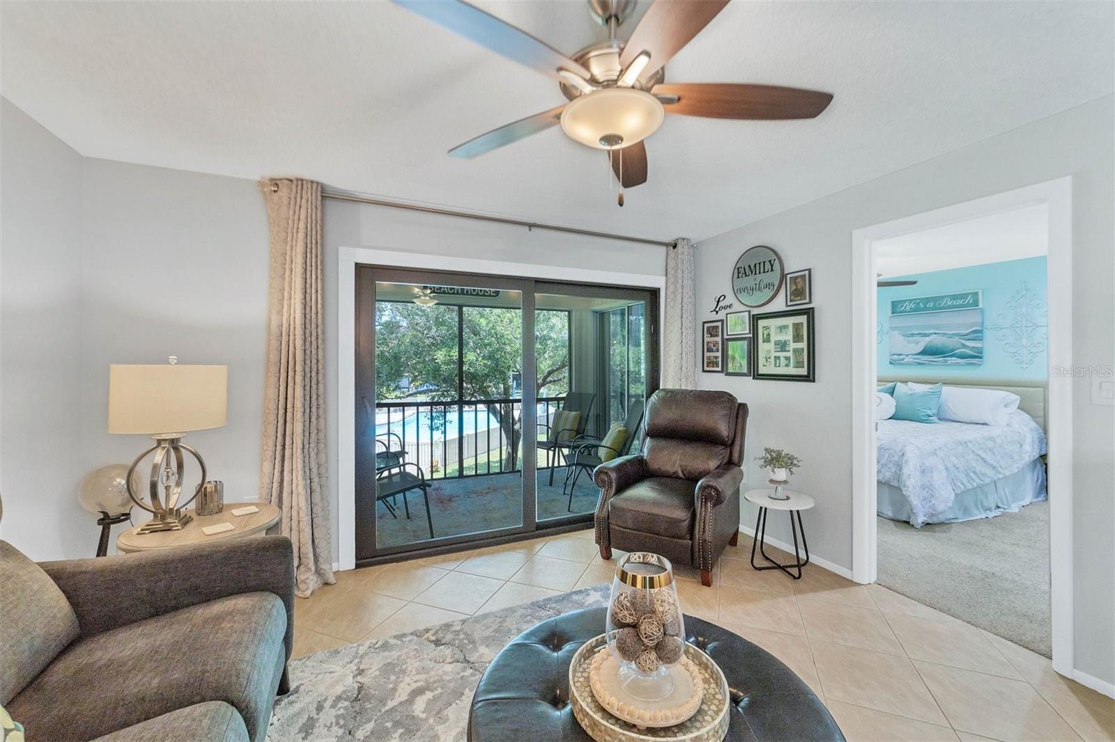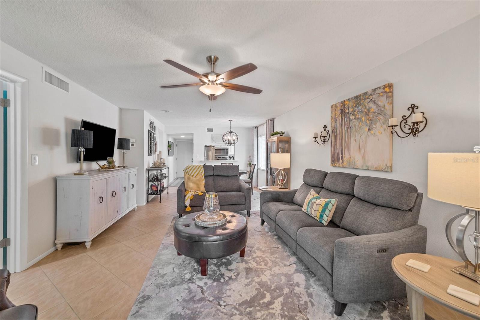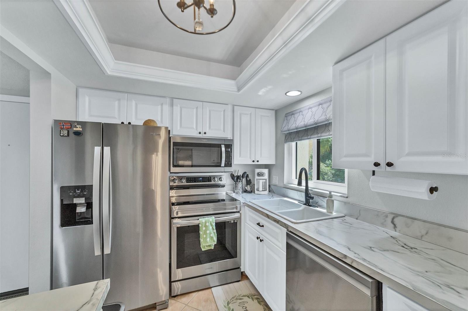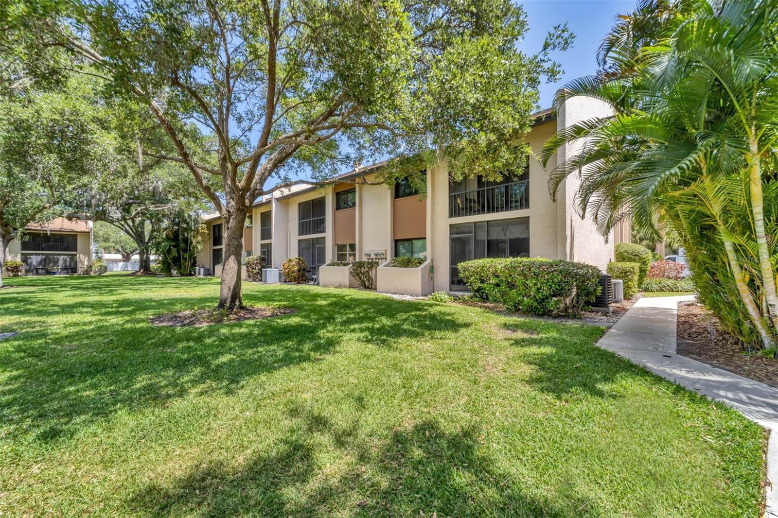 Price reduced on this Meticulously maintained and exquisitely upgraded, this 2 Bed 2 bath end unit condo is filled with lots of natural light. When you open the front door you are greeted by a freshly painted interior. There are so many new features awaiting you in this great unit. For peace of mind IMPACT WINDOWS were installed in 2022. Meal prep is a pleasure in the spotless upgraded kitchen, with new in 2023 stainless appliances and garbage disposal. Both bathrooms were tastefully upgraded also in 2023. All light fittings and the super quiet ceiling fans new in 2021. Laundry is a breeze with a new in 2021 water heater and stackable washer and dryer in 2023. The lanai overlooking the gardens and sparkling pool, is the ideal spot to enjoy your morning coffee or evening cocktail. Open the front door and rear sliders and enjoy the beautiful breezes. This vibrant 55+ community offers access to a year round heated pool, fitness center, clubhouse, shuffleboard, a grilling area. A number of scheduled activities are available if you wish to participate. All of this centrally located, within a short drive to the beautiful beaches of Siesta Key, downtown Sarasota, and many fine local shopping and restaurants.