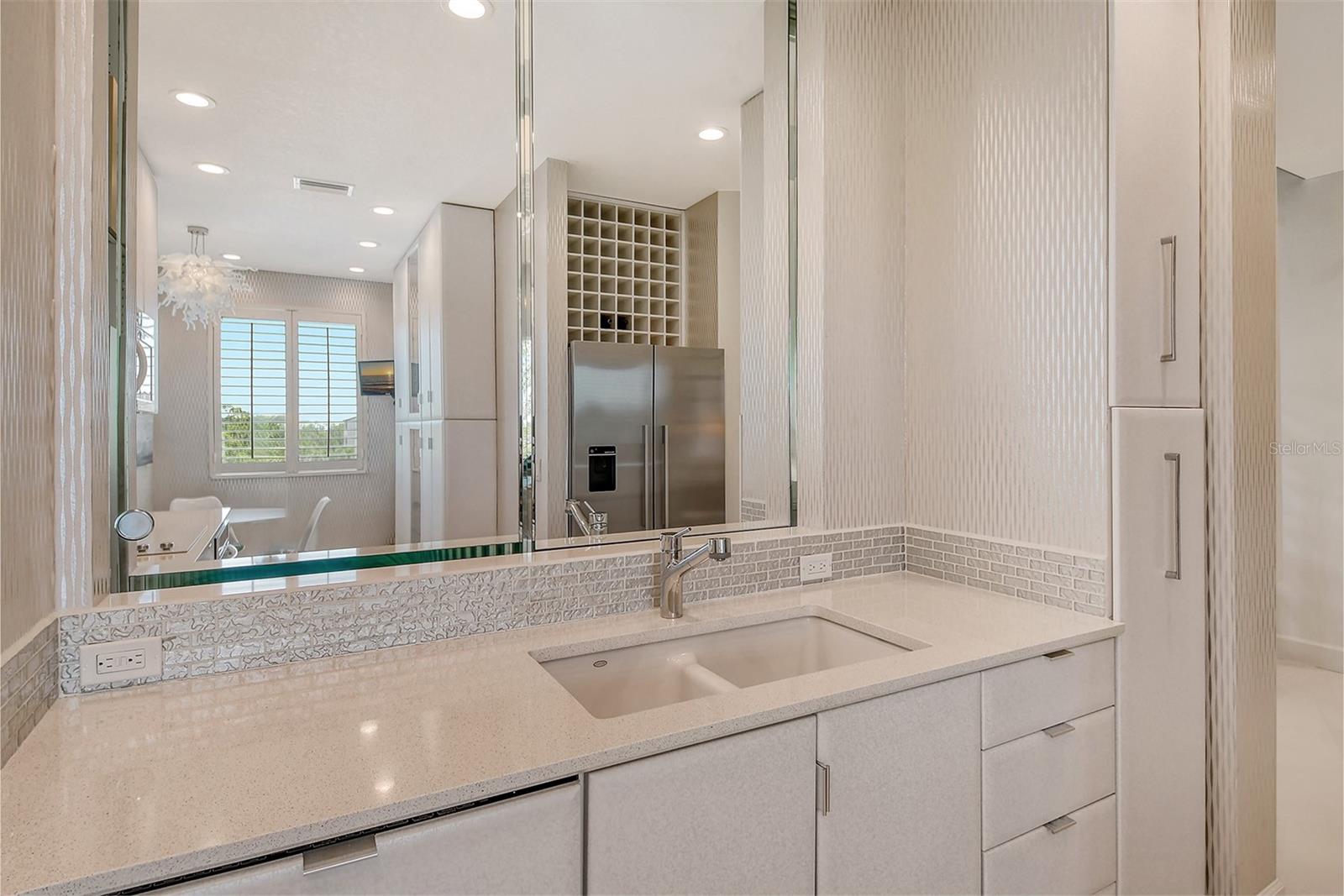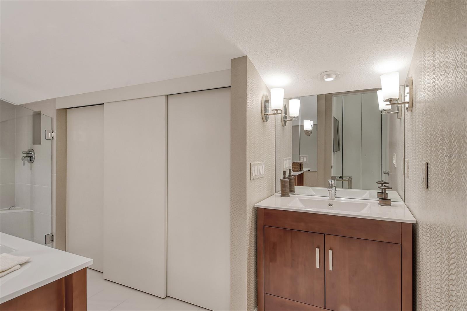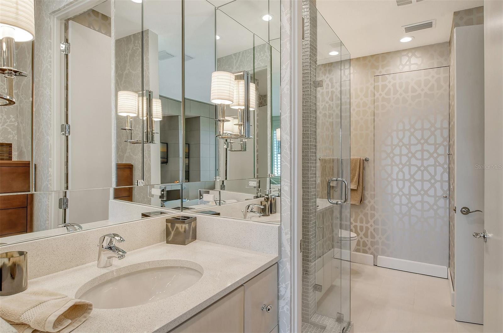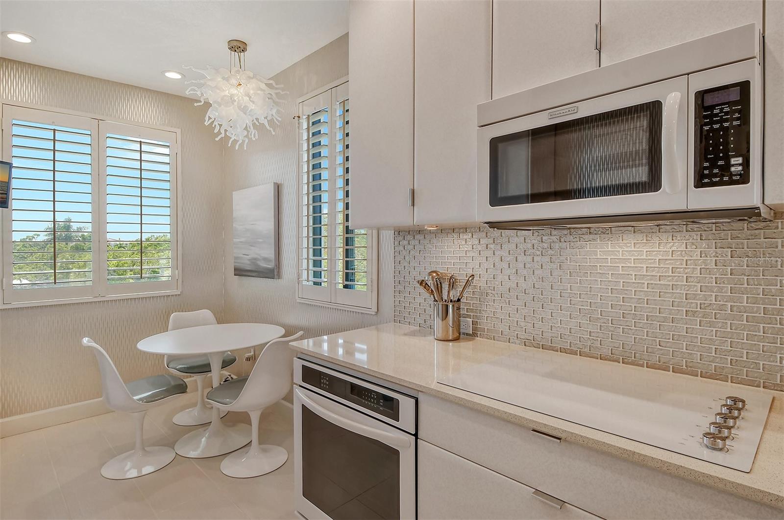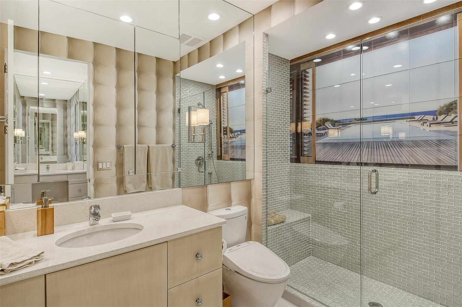 Treetop Retreat on the Bay! Welcome to living your perfect Siesta Key lifestyle. This turnkey furnished condo is situated bayside, the views from this bay view condo are of lush trees and thick tropical foilage and flowers. This condo has a tree-house feeling., The living room ceiling is 23 feet high! There is a spiral staircase made of matte-finish metal and frosted glass. The glass stair treads are lit and at night- the staircase looks like a piece of floating modern sculpture. The loft is elegant, done in creamy taupe and upholstered furniture and fine wall coverings with a Murphy bed. The loft could be a third bedroom with a full bath and closet. A larger aqua painting over the electric fireplace raises and lowers by remote control to reveal a flat-screen tv The flooring throughout is a combination of porcelain textured tile (heated floors) and wool sisal carpeting. The design of this unique tree house condo makes it like no other. The dining area has a view of the bay! Soaring ceilings fill the space with natural light-You can make this a great vacation get-a-way or investment property. Pet friendly , with pickle ball and tennis courts, bar-b-ques, 2 heated pools,2 spas, deeded private beach, fishing pier and clubhouse. Hop the trolley to Siesta Key Village for great shopping, dining and lively night life. The best of Island living starts here!