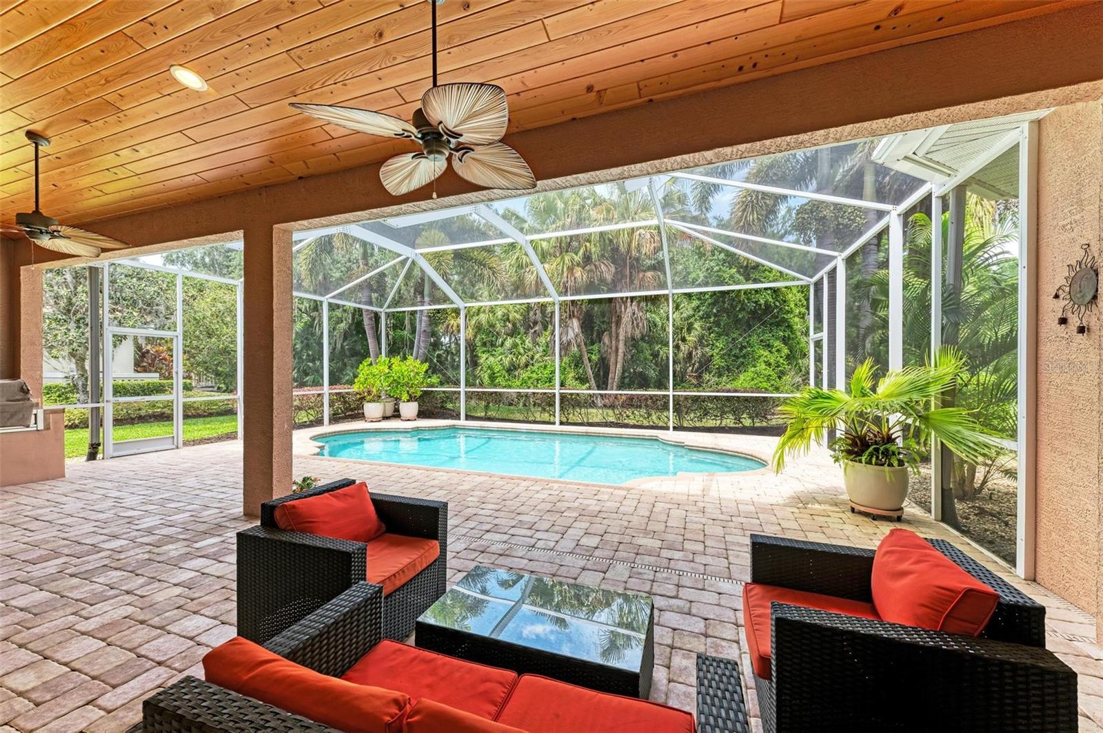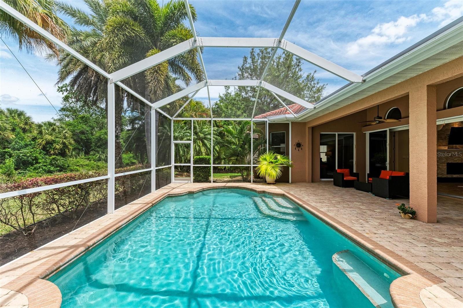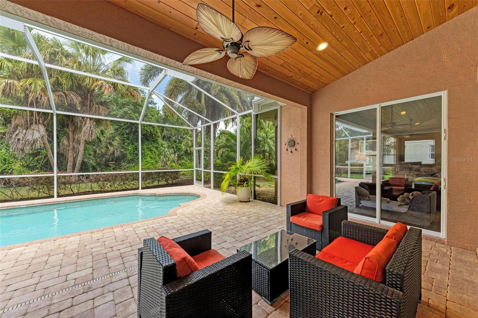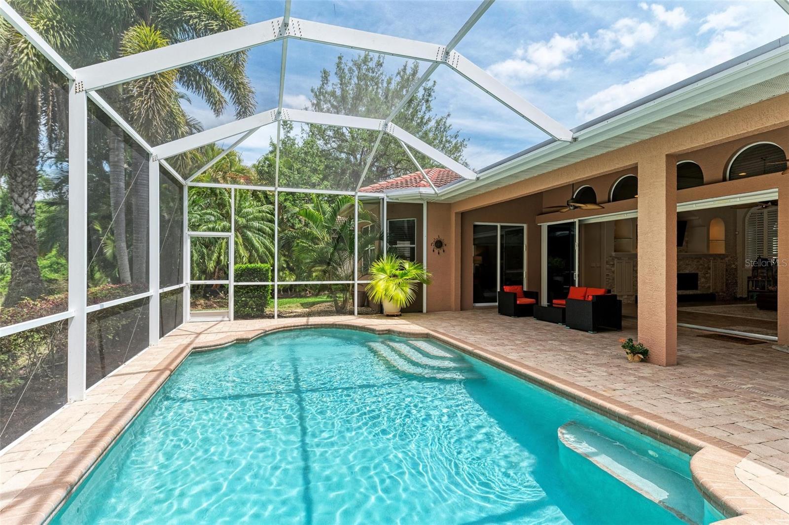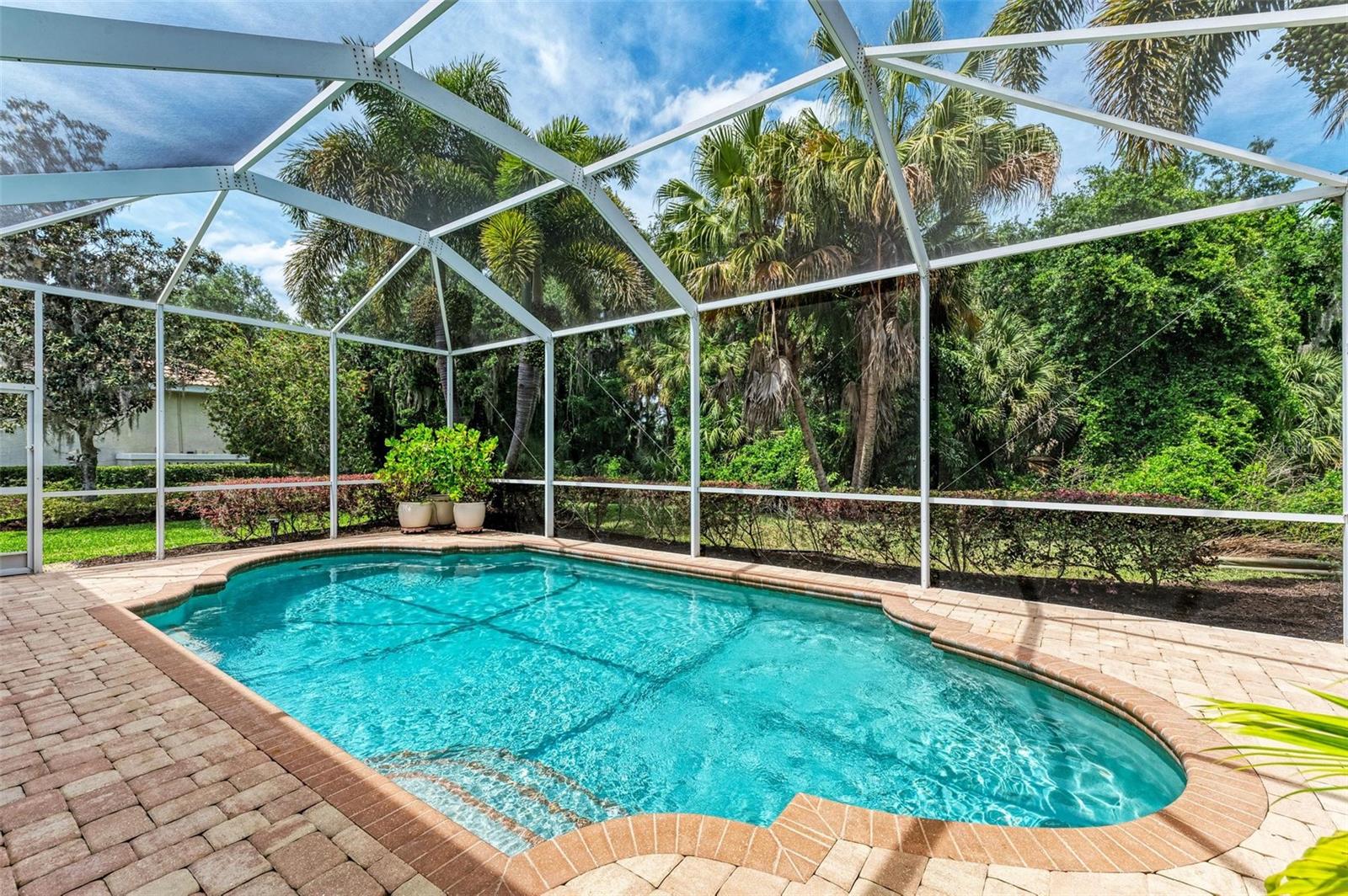 NEW POOL HEATER JUST INSTALLED. The home was constructed by John Cannon. Nestled in the gated community of The Hammocks, this timeless beauty awaits you. Meticulously maintained, this 3-bedroom, 3-bath oasis boasts soaring ceilings and an open floor plan, creating a spacious and inviting atmosphere. The heart of the home is the Gi-NORMOUS chef's kitchen, equipped with stainless steel appliances, a natural gas stove, ample storage space, and a sizable pantry. Unique cypress wood accents add a touch of elegance to the ceiling, making every meal preparation a delight. Entertain guests in the formal dining room with 12-foot tray ceilings or unwind in the impressive family room. A dedicated office space with wood floors and plantation shutters provides the perfect environment for productivity. Step outside through the wall of sliders to discover the serene paver brick patio and heated saltwater pool area, surrounded by lush landscaping and a picturesque preserve. The patio ceiling, adorned with honeyed cypress wood, adds to the ambiance of outdoor relaxation. Recent upgrades include a new pool heater, electric fireplace installation, and conversion to a heated saltwater pool, ensuring year-round comfort and enjoyment. Additionally, each bedroom offers wood flooring, ample closet space, and privacy, making this home ideal for families or guests. Complete with a 3-car garage, freshly painted exterior, and landscape lighting, this home exudes curb appeal and sophistication. Experience the tranquility of country living while being just minutes away from Downtown Sarasota, beaches, dining, and shopping. Don't miss the opportunity to make this exceptional property your own!