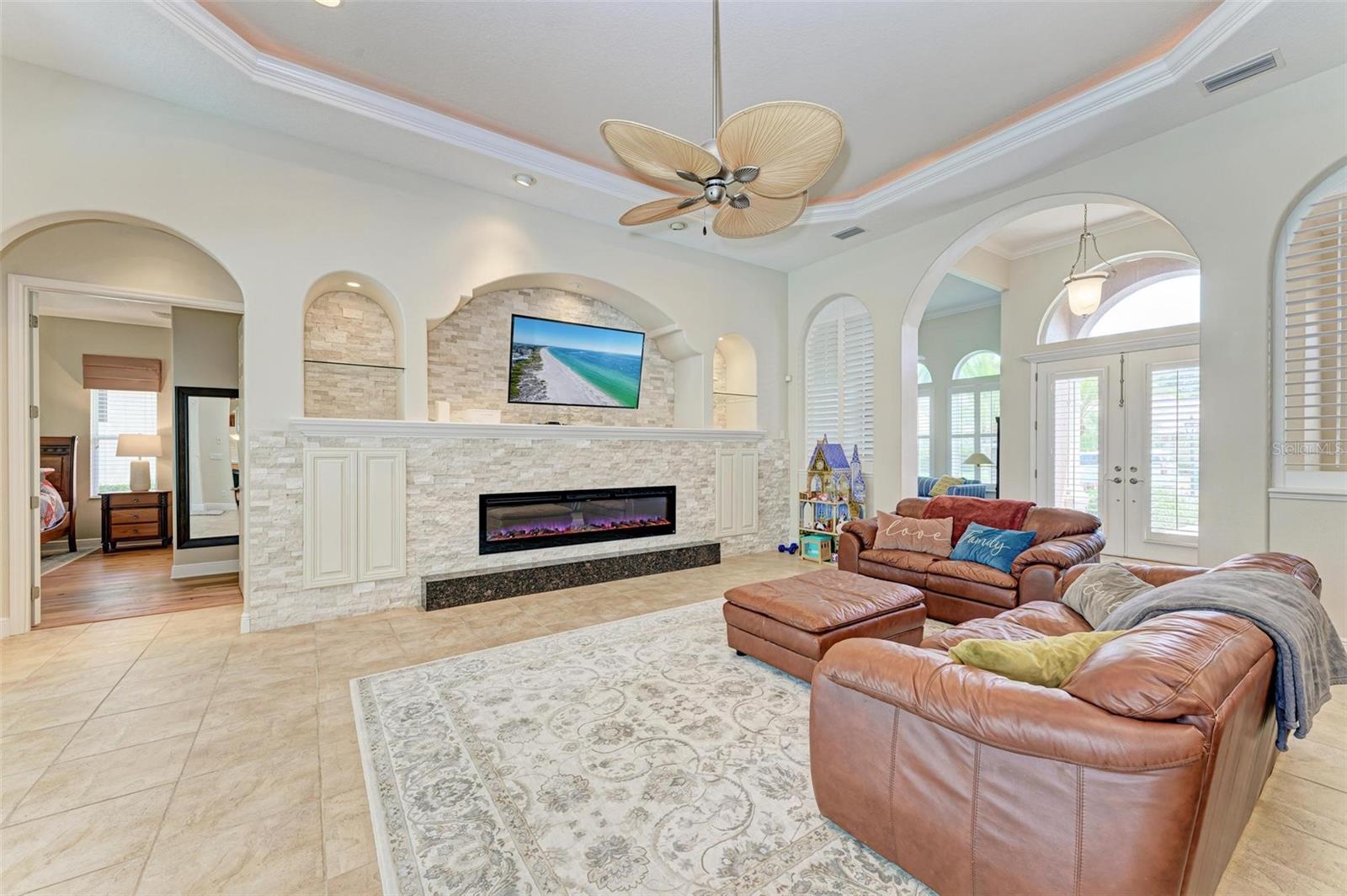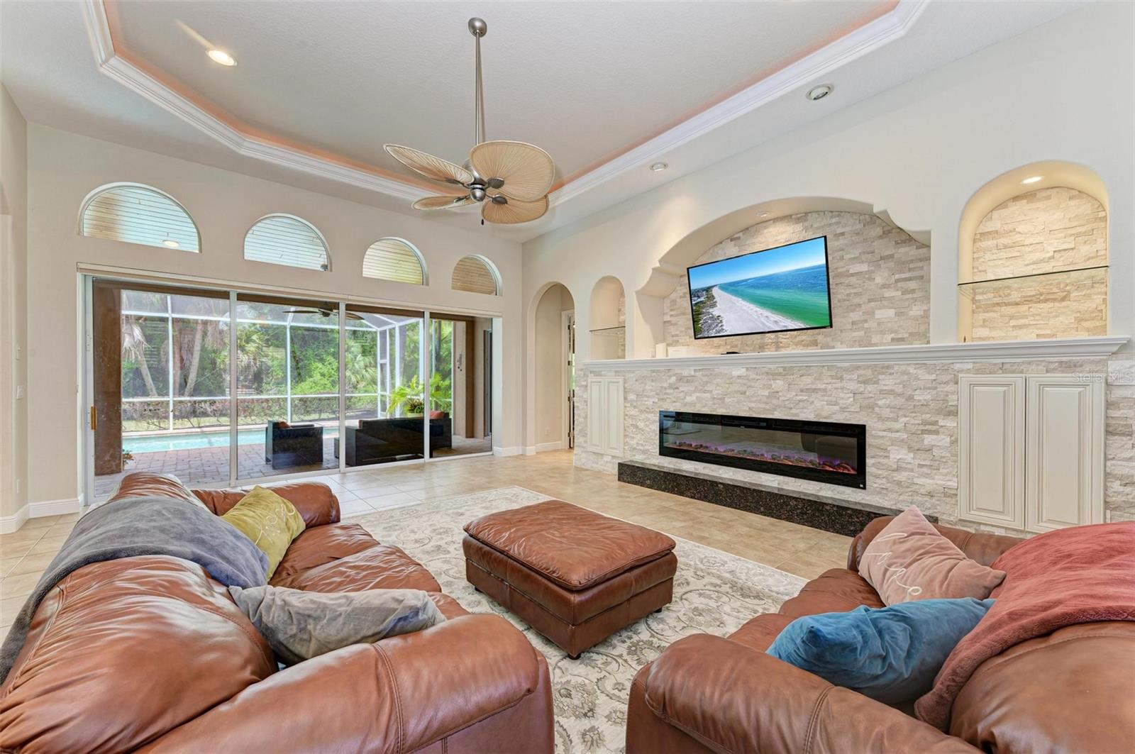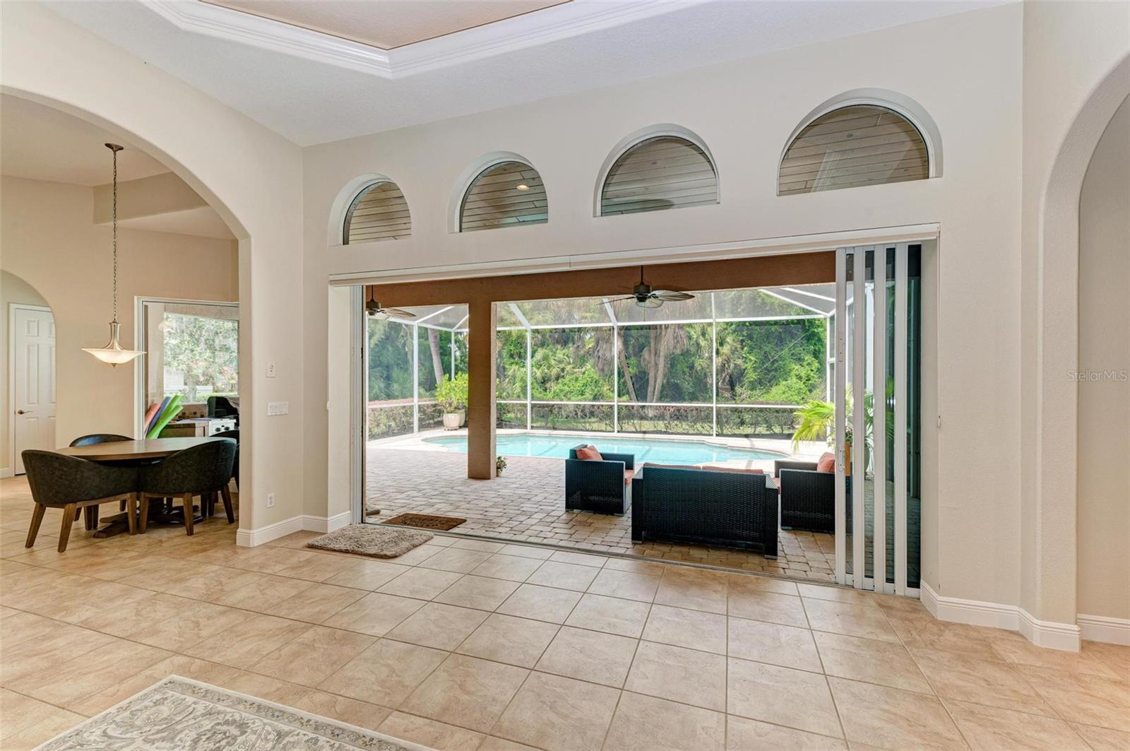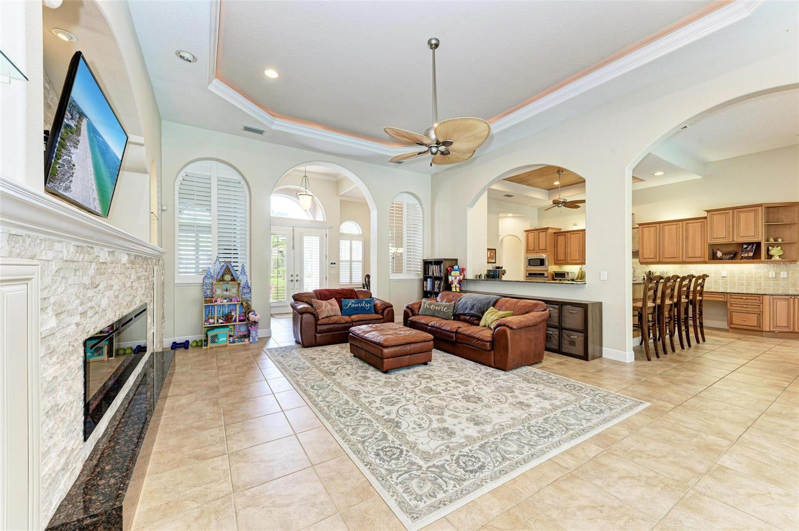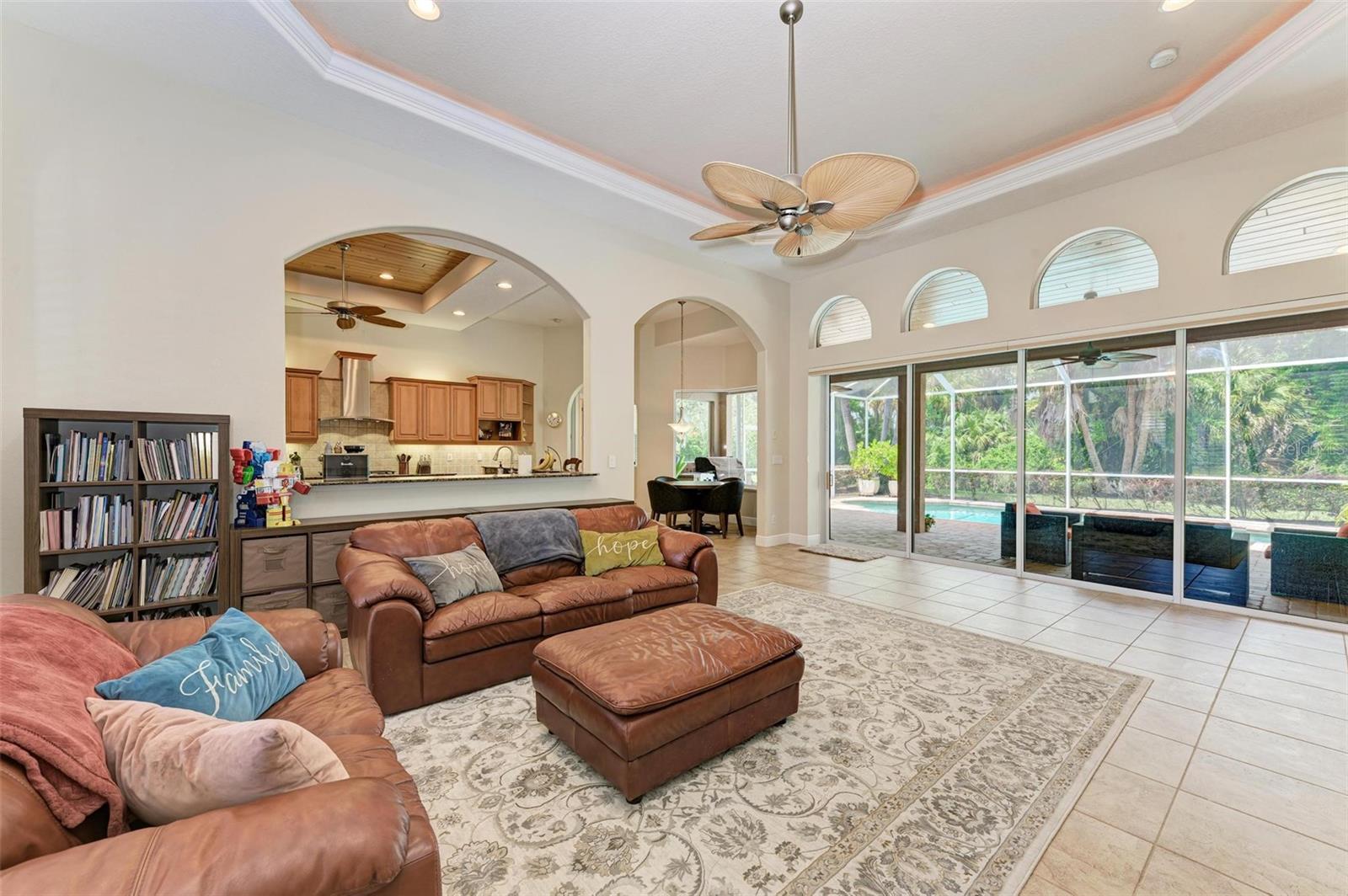 NEW POOL HEATER JUST INSTALLED. The home was constructed by John Cannon. Nestled in the gated community of The Hammocks, this timeless beauty awaits you. Meticulously maintained, this 3-bedroom, 3-bath oasis boasts soaring ceilings and an open floor plan, creating a spacious and inviting atmosphere. The heart of the home is the Gi-NORMOUS chef's kitchen, equipped with stainless steel appliances, a natural gas stove, ample storage space, and a sizable pantry. Unique cypress wood accents add a touch of elegance to the ceiling, making every meal preparation a delight. Entertain guests in the formal dining room with 12-foot tray ceilings or unwind in the impressive family room. A dedicated office space with wood floors and plantation shutters provides the perfect environment for productivity. Step outside through the wall of sliders to discover the serene paver brick patio and heated saltwater pool area, surrounded by lush landscaping and a picturesque preserve. The patio ceiling, adorned with honeyed cypress wood, adds to the ambiance of outdoor relaxation. Recent upgrades include a new pool heater, electric fireplace installation, and conversion to a heated saltwater pool, ensuring year-round comfort and enjoyment. Additionally, each bedroom offers wood flooring, ample closet space, and privacy, making this home ideal for families or guests. Complete with a 3-car garage, freshly painted exterior, and landscape lighting, this home exudes curb appeal and sophistication. Experience the tranquility of country living while being just minutes away from Downtown Sarasota, beaches, dining, and shopping. Don't miss the opportunity to make this exceptional property your own!