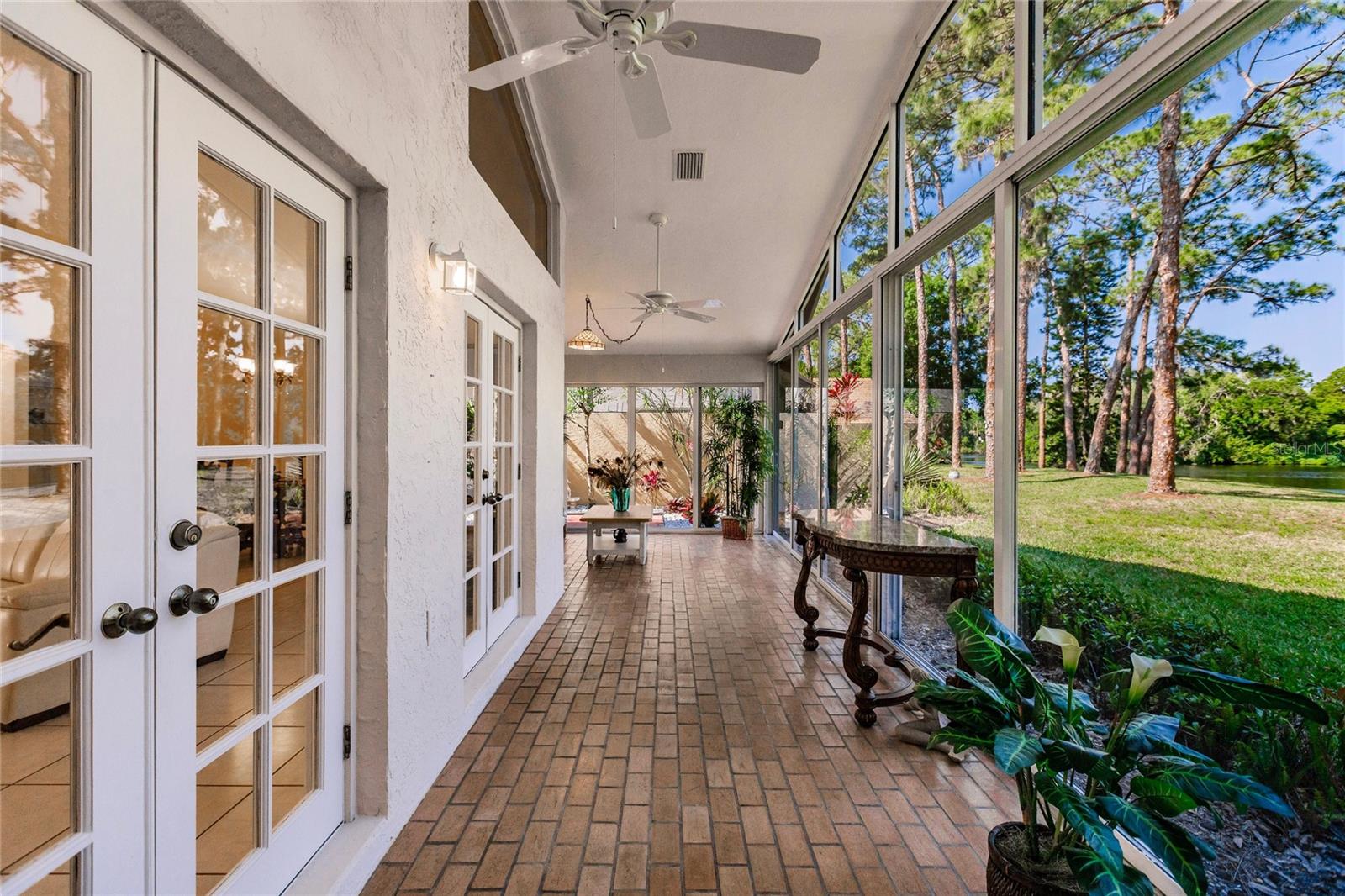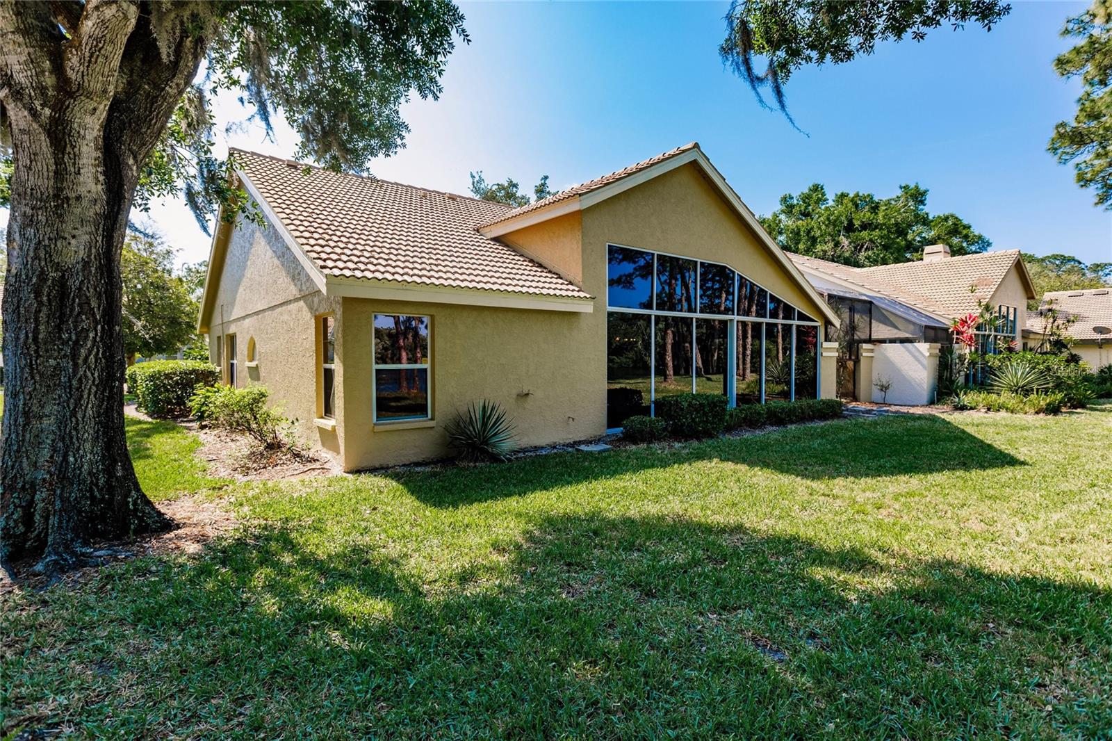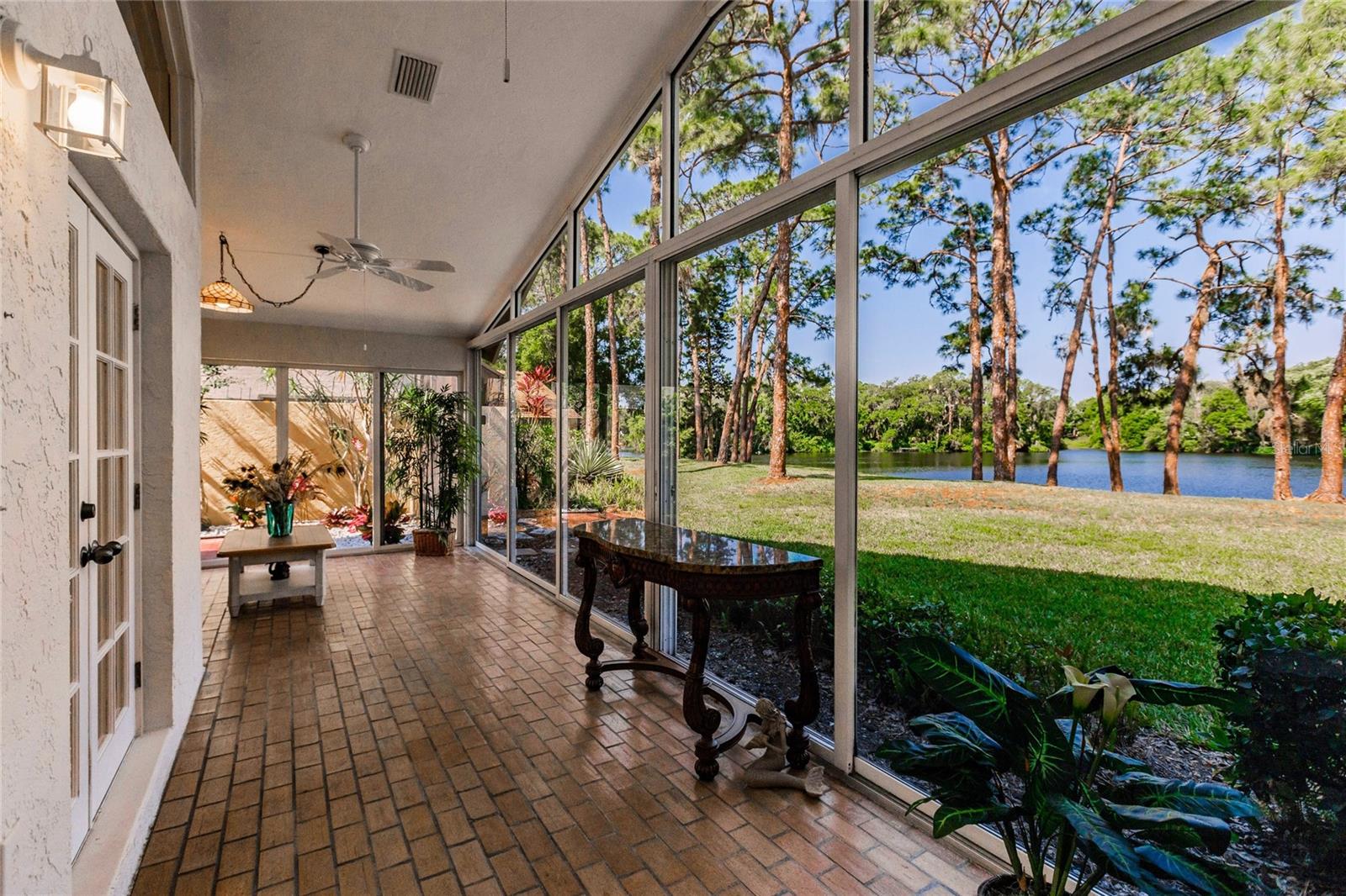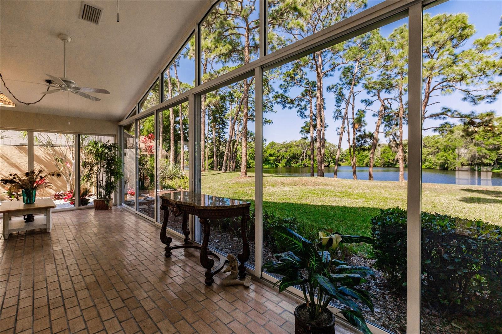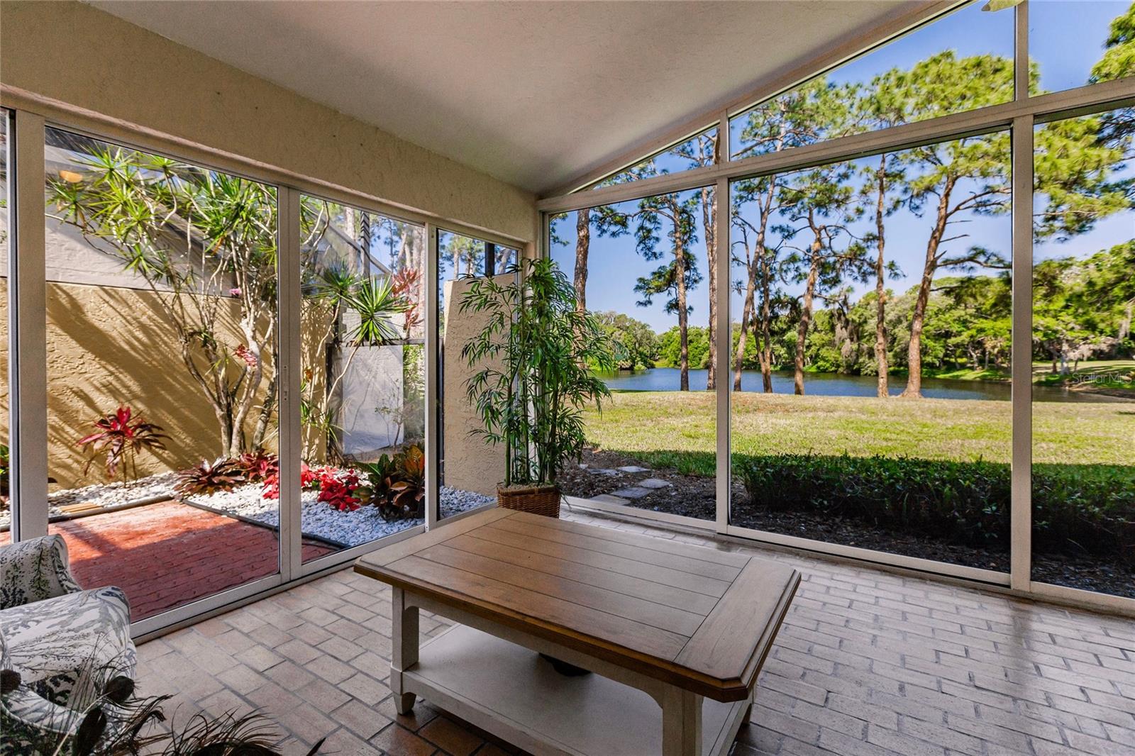 A villa with a view! Not just any view, but possibly the best view in Tivoli Village!!! When you enter this villa, pause and take in the open airiness of the Great Room with the soaring vaulted ceiling. Then wander out either set of the double French doors onto the glass enclosed Florida Room to gaze out on Lake DeSoto, one of the largest spring-fed lakes in the community, and set against the background of the natural beauty of the Florida landscape. This home provides an unparalleled sense of privacy while feeling like the flora and fauna are part of the décor. Enjoy the constant parade of cranes, heron, spoonbills, ospreys and the occasional bald eagle. From there, continue the tour to the enclosed private, screened side courtyard that runs the entire width of the villa. With pavers, tropical landscaping, and orchids, it’s the perfect place to take the party outdoors. Going back inside though the sliding glass doors to the eat-in Kitchen you’ll find a Bosch dishwasher, a newer LG refrigerator and microwave (2022). The Kitchen is open to the Great Room and has access to the formal eating area. The Laundry Room, off the Kitchen, is complete with a newer Samsung washer & dryer (2023). As you continue the tour to the ensuite Owners’ suite, note that all windows have Plantation Shutters. The Owners’ bathroom is complete with a double vanity with framed mirror, separate shower and garden tub and a linen closet in the hall. The other two Bedrooms share a Bathroom and a second linen closet. The HOA is responsible for the maintenance, repair and replacement of the exterior surfaces of the residential villas, including the tile roofs as well as painting the exterior walls (2023); maintenance of the lush grounds include mowing, trimming shrubs, fertilization and lawn pest control, annual trimming of large trees and management of the reclaimed water irrigation system. The quarterly HOA fee also includes insurance for the exterior and roof of each villa. (See HOA docs for specific details.) The Master Association maintains the streets, the street lights, the lakes and the gatehouse. With a professionally managed HOA taking on these responsibilities, you have more free time to enjoy the monthly social hour, launch your kayak or canoe at the community dock or cast a line and fish to your heart's content. Perhaps spend your day birdwatching while hiking along the lake trail which features a wooden bridge, a gazebo and the island preserve. The nearby Longwood Park offers tennis, pickle ball, basketball, baseball, a picnic pavilion and a playground. Located not far from the bustle of University Parkway, when you turn onto Longwood Run, you’ll enter a world where things slow down and you’ll want to feast your eyes on the colorful and well-manicured landscaping and majestic oak trees. Tivoli Village/Longwood Villas is located near both UTC Mall and Benderson Park and is convenient to I-75, Lakewood Ranch Mainstreet, SRQ airport, the Asolo Theater, the Ringling Museum, downtown Sarasota, shopping, restaurants, and of course, our world-renowned beaches. This lovingly cared for villa is ready for a new Owners’ vision and personal touch. This one-of-a-kind view can’t be duplicated! It’s a must see! Schedule your private showing today!!!