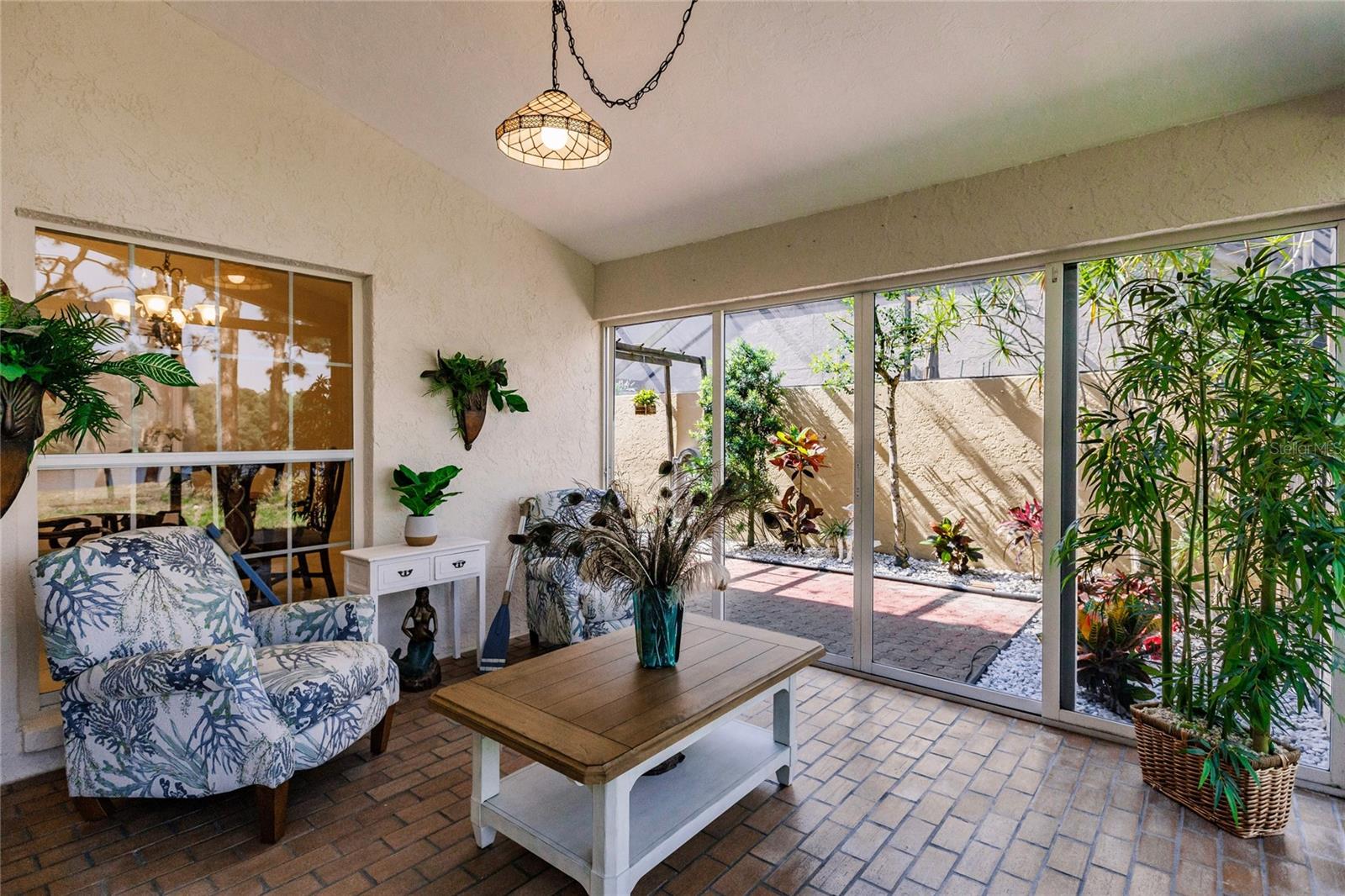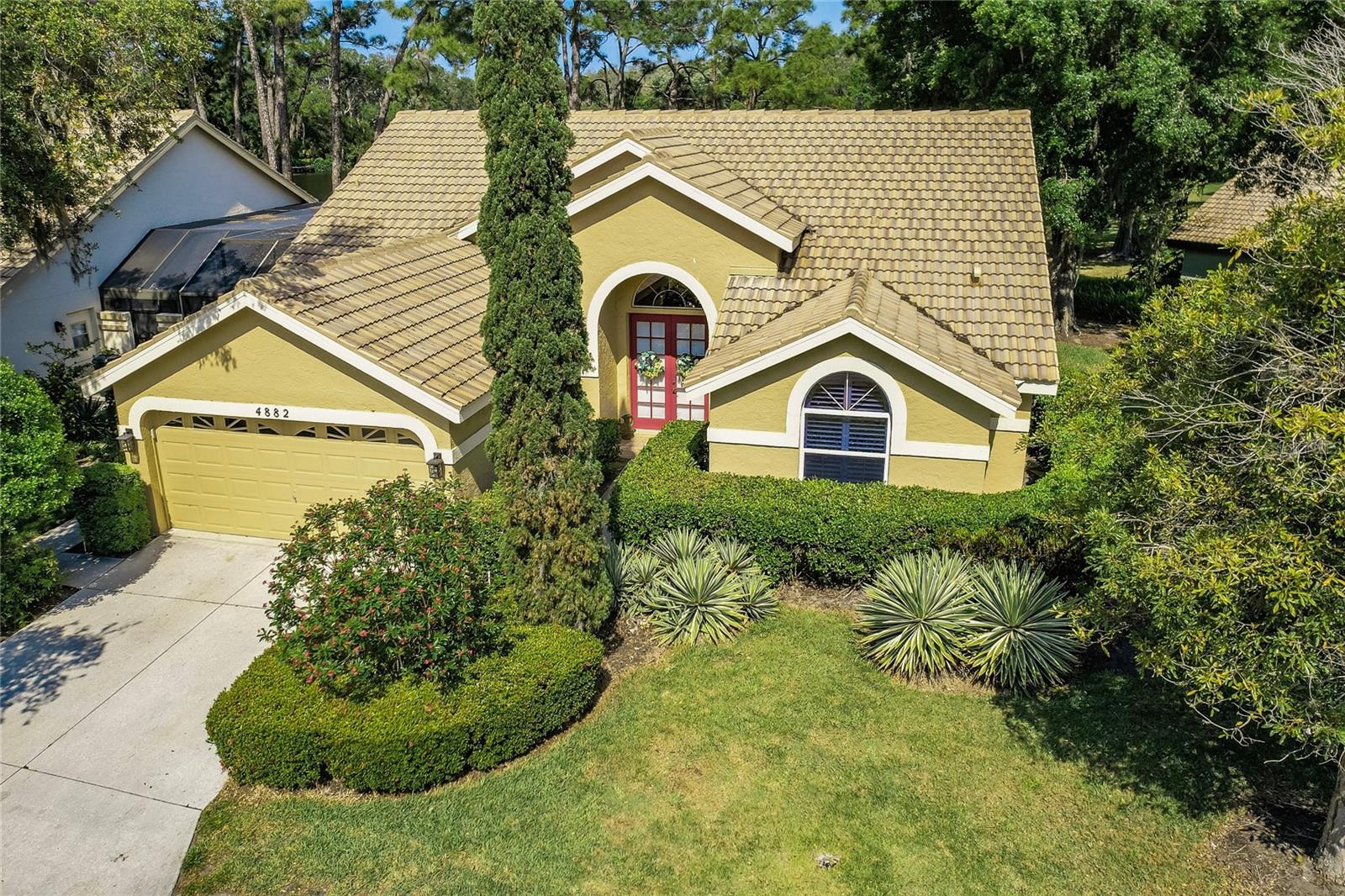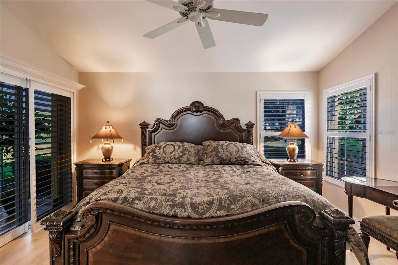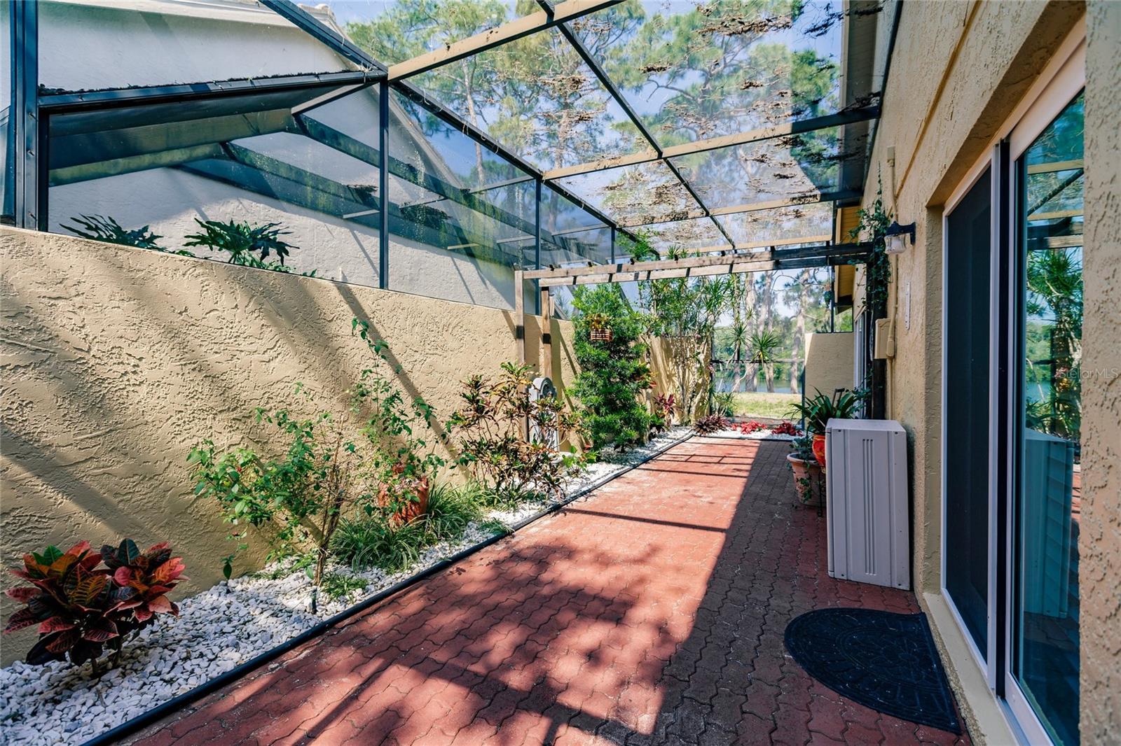A villa with a view! Not just any view, but possibly the best view in Tivoli Village!!! When you enter this villa, pause and take in the open airiness of the Great Room with the soaring vaulted ceiling. Then wander out either set of the double French doors onto the glass enclosed Florida Room to gaze out on Lake DeSoto, one of the largest spring-fed lakes in the community, and set against the background of the natural beauty of the Florida landscape. This home provides an unparalleled sense of privacy while feeling like the flora and fauna are part of the décor. Enjoy the constant parade of cranes, heron, spoonbills, ospreys and the occasional bald eagle. From there, continue the tour to the enclosed private, screened side courtyard that runs the entire width of the villa. With pavers, tropical landscaping, and orchids, it’s the perfect place to take the party outdoors. Going back inside though the sliding glass doors to the eat-in Kitchen you’ll find a Bosch dishwasher, a newer LG refrigerator and microwave (2022). The Kitchen is open to the Great Room and has access to the formal eating area. The Laundry Room, off the Kitchen, is complete with a newer Samsung washer & dryer (2023). As you continue the tour to the ensuite Owners’ suite, note that all windows have Plantation Shutters. The Owners’ bathroom is complete with a double vanity with framed mirror, separate shower and garden tub and a linen closet in the hall. The other two Bedrooms share a Bathroom and a second linen closet. The HOA is responsible for the maintenance, repair and replacement of the exterior surfaces of the residential villas, including the tile roofs as well as painting the exterior walls (2023); maintenance of the lush grounds include mowing, trimming shrubs, fertilization and lawn pest control, annual trimming of large trees and management of the reclaimed water irrigation system. The quarterly HOA fee also includes insurance for the exterior and roof of each villa. (See HOA docs for specific details.) The Master Association maintains the streets, the street lights, the lakes and the gatehouse. With a professionally managed HOA taking on these responsibilities, you have more free time to enjoy the monthly social hour, launch your kayak or canoe at the community dock or cast a line and fish to your heart's content. Perhaps spend your day birdwatching while hiking along the lake trail which features a wooden bridge, a gazebo and the island preserve. The nearby Longwood Park offers tennis, pickle ball, basketball, baseball, a picnic pavilion and a playground. Located not far from the bustle of University Parkway, when you turn onto Longwood Run, you’ll enter a world where things slow down and you’ll want to feast your eyes on the colorful and well-manicured landscaping and majestic oak trees. Tivoli Village/Longwood Villas is located near both UTC Mall and Benderson Park and is convenient to I-75, Lakewood Ranch Mainstreet, SRQ airport, the Asolo Theater, the Ringling Museum, downtown Sarasota, shopping, restaurants, and of course, our world-renowned beaches. This lovingly cared for villa is ready for a new Owners’ vision and personal touch. This one-of-a-kind view can’t be duplicated! It’s a must see! Schedule your private showing today!!!