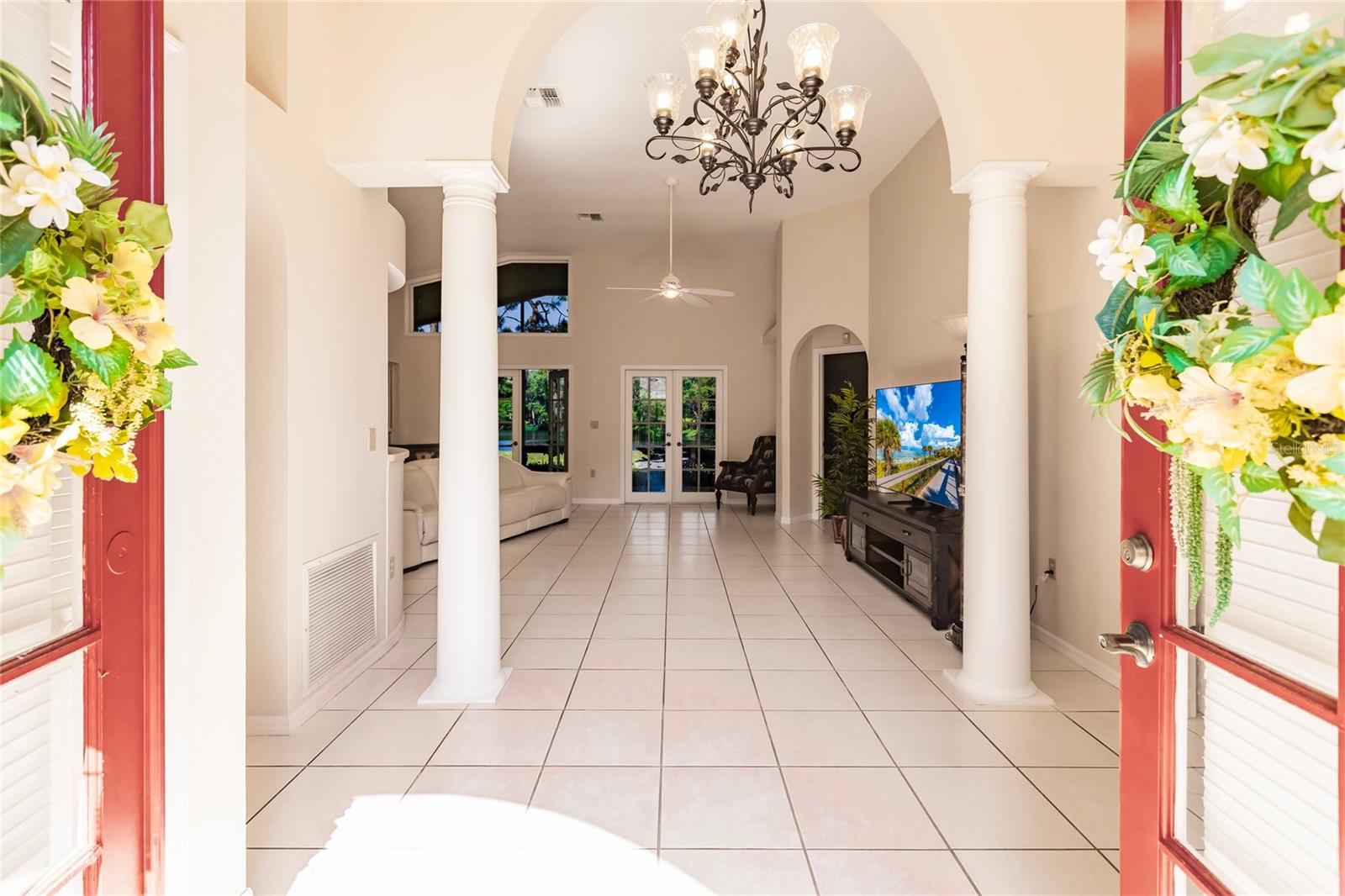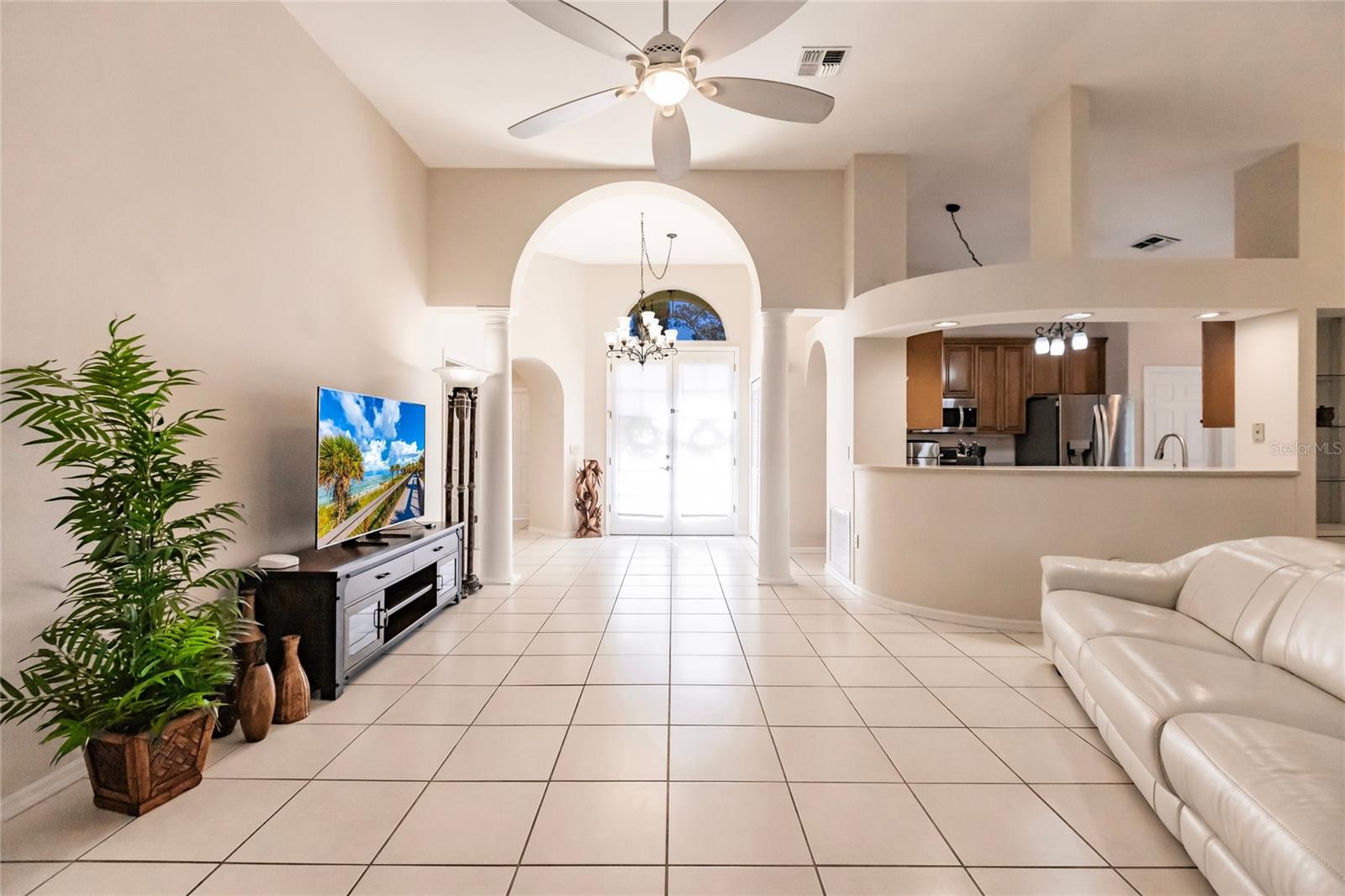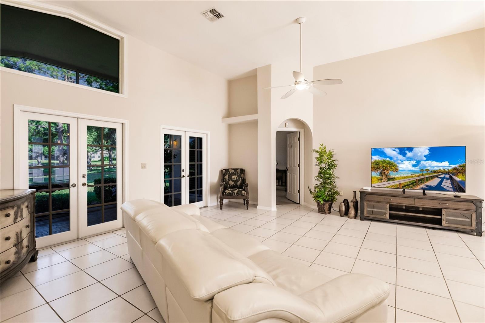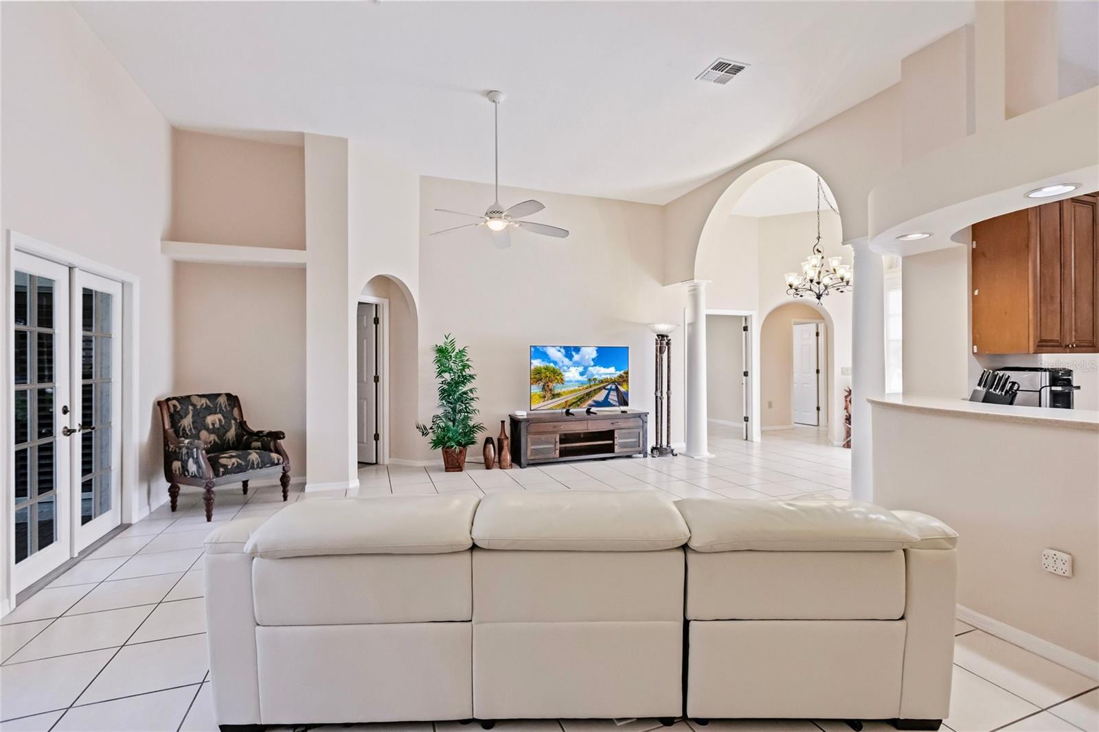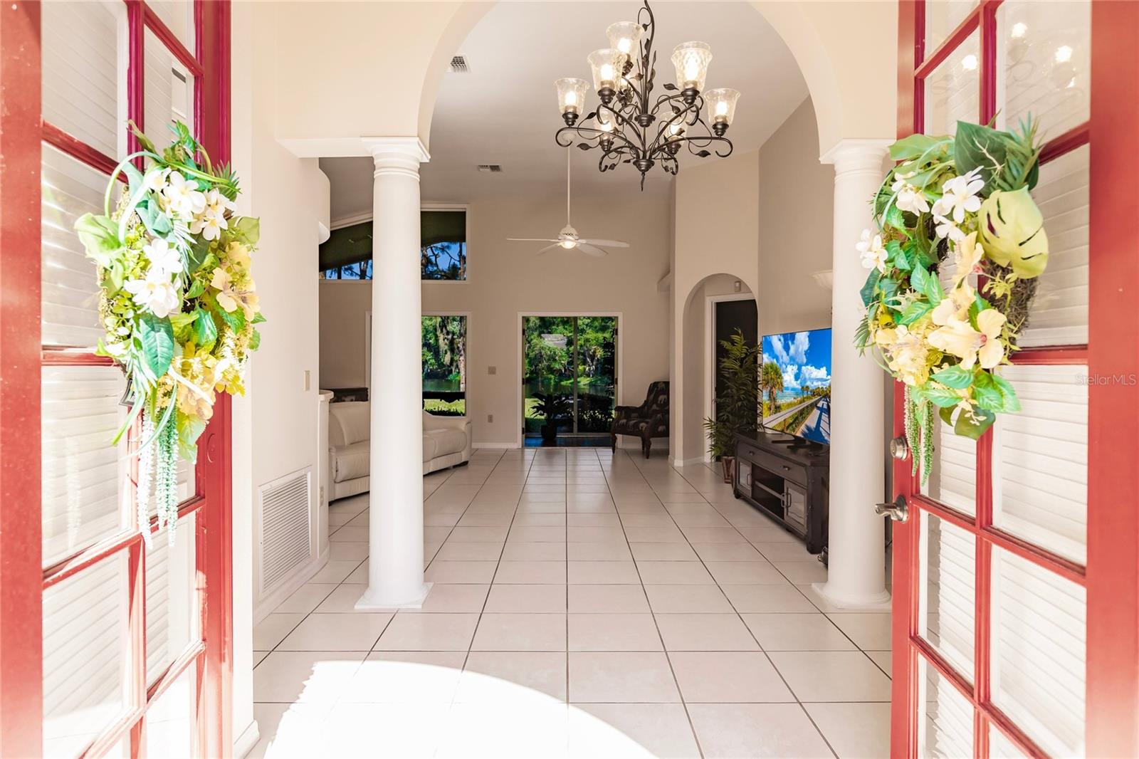 A villa with a view! Not just any view, but possibly the best view in Tivoli Village!!! When you enter this villa, pause and take in the open airiness of the Great Room with the soaring vaulted ceiling. Then wander out either set of the double French doors onto the glass enclosed Florida Room to gaze out on Lake DeSoto, one of the largest spring-fed lakes in the community, and set against the background of the natural beauty of the Florida landscape. This home provides an unparalleled sense of privacy while feeling like the flora and fauna are part of the décor. Enjoy the constant parade of cranes, heron, spoonbills, ospreys and the occasional bald eagle. From there, continue the tour to the enclosed private, screened side courtyard that runs the entire width of the villa. With pavers, tropical landscaping, and orchids, it’s the perfect place to take the party outdoors. Going back inside though the sliding glass doors to the eat-in Kitchen you’ll find a Bosch dishwasher, a newer LG refrigerator and microwave (2022). The Kitchen is open to the Great Room and has access to the formal eating area. The Laundry Room, off the Kitchen, is complete with a newer Samsung washer & dryer (2023). As you continue the tour to the ensuite Owners’ suite, note that all windows have Plantation Shutters. The Owners’ bathroom is complete with a double vanity with framed mirror, separate shower and garden tub and a linen closet in the hall. The other two Bedrooms share a Bathroom and a second linen closet. The HOA is responsible for the maintenance, repair and replacement of the exterior surfaces of the residential villas, including the tile roofs as well as painting the exterior walls (2023); maintenance of the lush grounds include mowing, trimming shrubs, fertilization and lawn pest control, annual trimming of large trees and management of the reclaimed water irrigation system. The quarterly HOA fee also includes insurance for the exterior and roof of each villa. (See HOA docs for specific details.) The Master Association maintains the streets, the street lights, the lakes and the gatehouse. With a professionally managed HOA taking on these responsibilities, you have more free time to enjoy the monthly social hour, launch your kayak or canoe at the community dock or cast a line and fish to your heart's content. Perhaps spend your day birdwatching while hiking along the lake trail which features a wooden bridge, a gazebo and the island preserve. The nearby Longwood Park offers tennis, pickle ball, basketball, baseball, a picnic pavilion and a playground. Located not far from the bustle of University Parkway, when you turn onto Longwood Run, you’ll enter a world where things slow down and you’ll want to feast your eyes on the colorful and well-manicured landscaping and majestic oak trees. Tivoli Village/Longwood Villas is located near both UTC Mall and Benderson Park and is convenient to I-75, Lakewood Ranch Mainstreet, SRQ airport, the Asolo Theater, the Ringling Museum, downtown Sarasota, shopping, restaurants, and of course, our world-renowned beaches. This lovingly cared for villa is ready for a new Owners’ vision and personal touch. This one-of-a-kind view can’t be duplicated! It’s a must see! Schedule your private showing today!!!