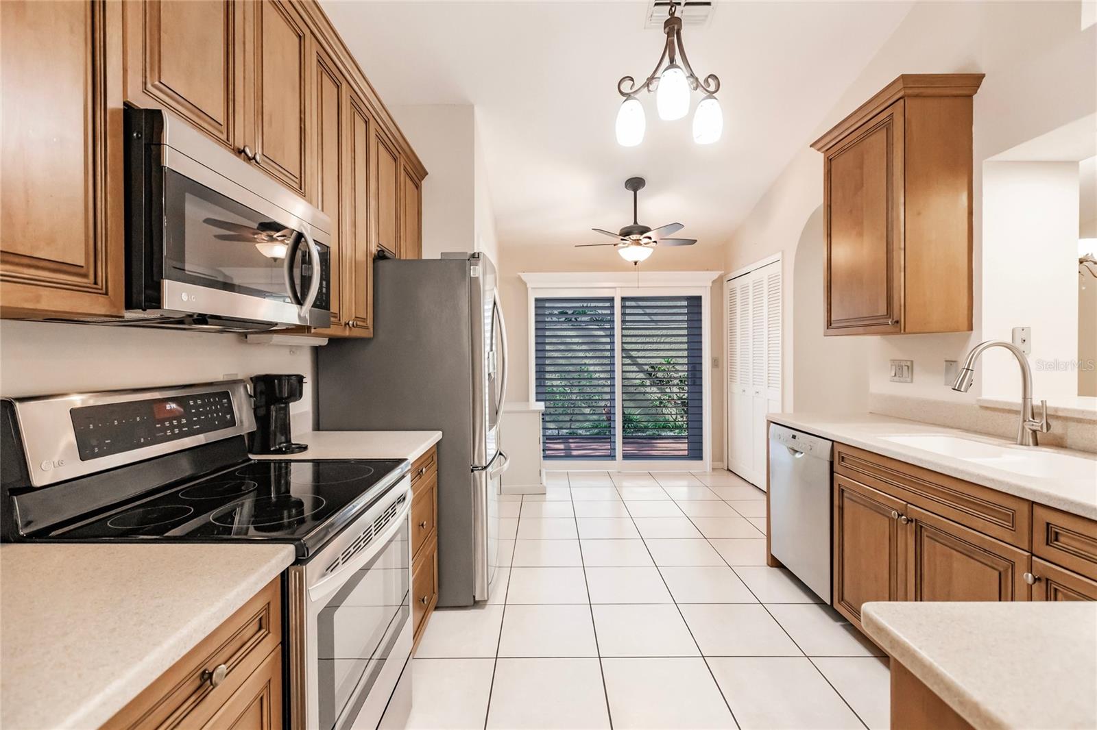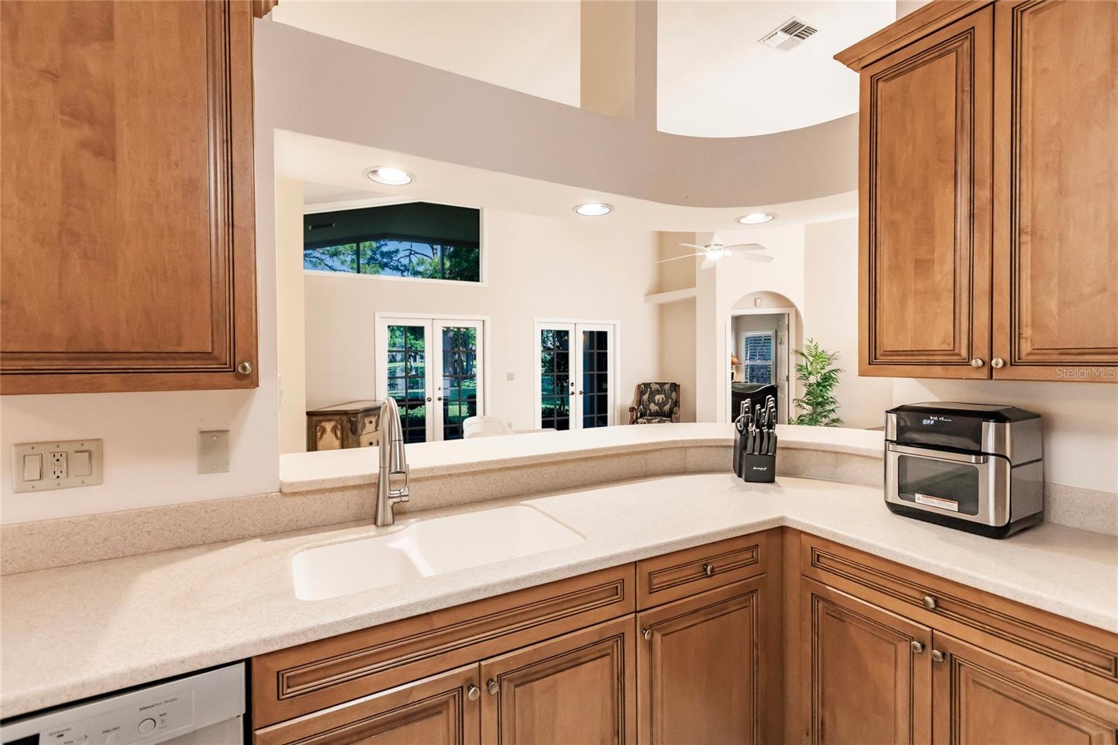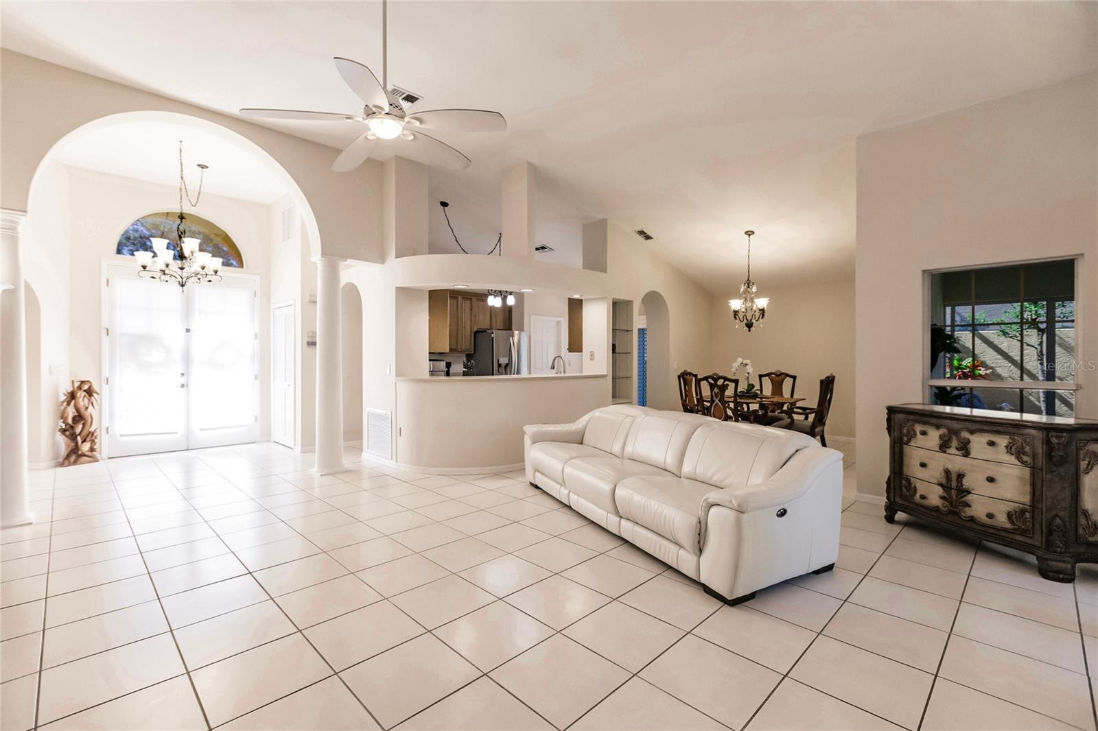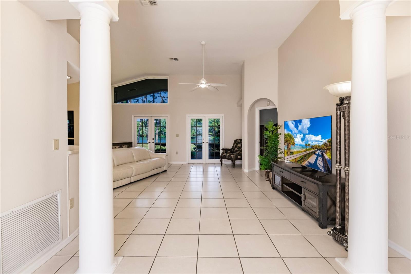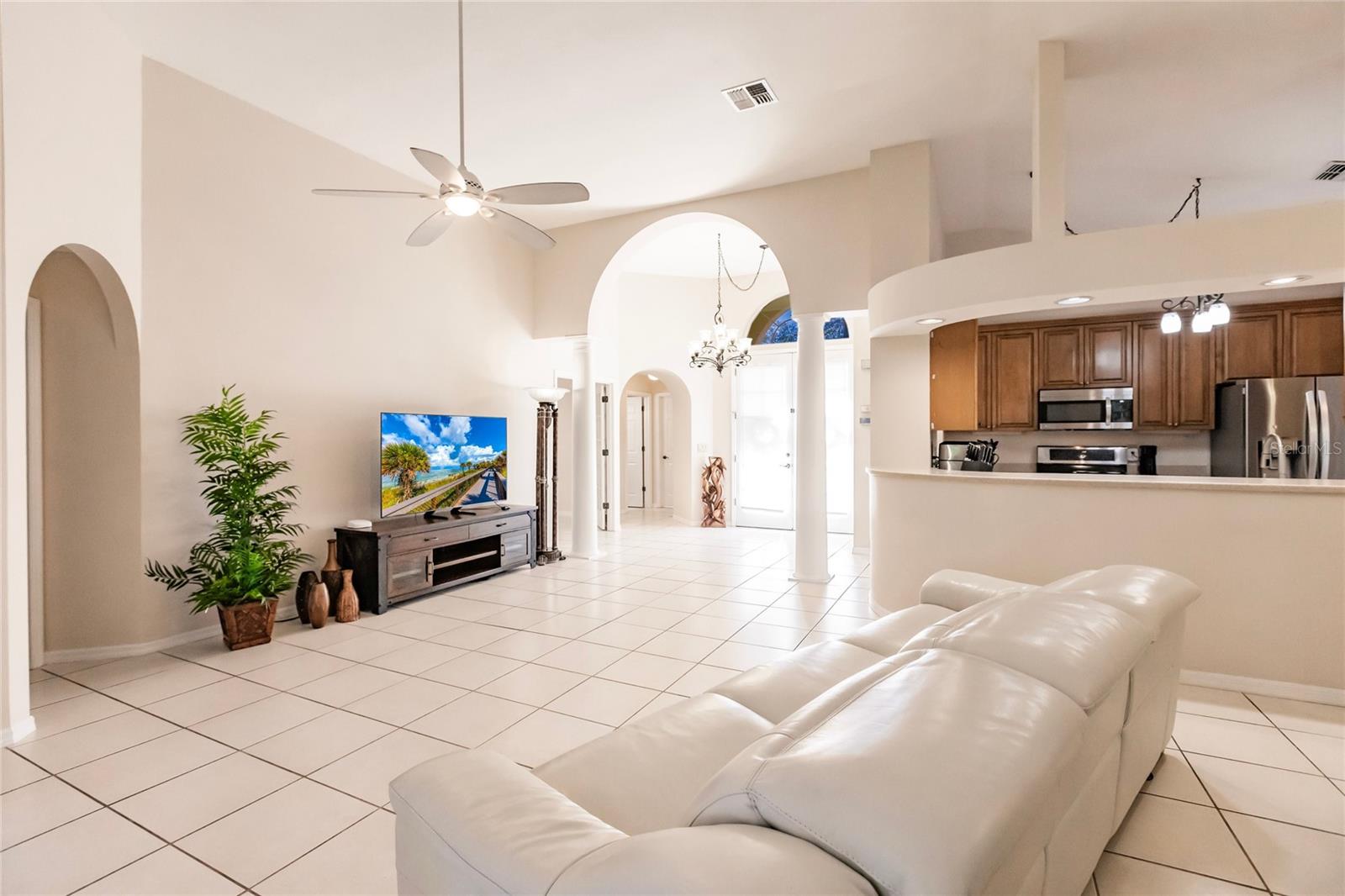 A villa with a view! Not just any view, but possibly the best view in Tivoli Village!!! When you enter this villa, pause and take in the open airiness of the Great Room with the soaring vaulted ceiling. Then wander out either set of the double French doors onto the glass enclosed Florida Room to gaze out on Lake DeSoto, one of the largest spring-fed lakes in the community, and set against the background of the natural beauty of the Florida landscape. This home provides an unparalleled sense of privacy while feeling like the flora and fauna are part of the décor. Enjoy the constant parade of cranes, heron, spoonbills, ospreys and the occasional bald eagle. From there, continue the tour to the enclosed private, screened side courtyard that runs the entire width of the villa. With pavers, tropical landscaping, and orchids, it’s the perfect place to take the party outdoors. Going back inside though the sliding glass doors to the eat-in Kitchen you’ll find a Bosch dishwasher, a newer LG refrigerator and microwave (2022). The Kitchen is open to the Great Room and has access to the formal eating area. The Laundry Room, off the Kitchen, is complete with a newer Samsung washer & dryer (2023). As you continue the tour to the ensuite Owners’ suite, note that all windows have Plantation Shutters. The Owners’ bathroom is complete with a double vanity with framed mirror, separate shower and garden tub and a linen closet in the hall. The other two Bedrooms share a Bathroom and a second linen closet. The HOA is responsible for the maintenance, repair and replacement of the exterior surfaces of the residential villas, including the tile roofs as well as painting the exterior walls (2023); maintenance of the lush grounds include mowing, trimming shrubs, fertilization and lawn pest control, annual trimming of large trees and management of the reclaimed water irrigation system. The quarterly HOA fee also includes insurance for the exterior and roof of each villa. (See HOA docs for specific details.) The Master Association maintains the streets, the street lights, the lakes and the gatehouse. With a professionally managed HOA taking on these responsibilities, you have more free time to enjoy the monthly social hour, launch your kayak or canoe at the community dock or cast a line and fish to your heart's content. Perhaps spend your day birdwatching while hiking along the lake trail which features a wooden bridge, a gazebo and the island preserve. The nearby Longwood Park offers tennis, pickle ball, basketball, baseball, a picnic pavilion and a playground. Located not far from the bustle of University Parkway, when you turn onto Longwood Run, you’ll enter a world where things slow down and you’ll want to feast your eyes on the colorful and well-manicured landscaping and majestic oak trees. Tivoli Village/Longwood Villas is located near both UTC Mall and Benderson Park and is convenient to I-75, Lakewood Ranch Mainstreet, SRQ airport, the Asolo Theater, the Ringling Museum, downtown Sarasota, shopping, restaurants, and of course, our world-renowned beaches. This lovingly cared for villa is ready for a new Owners’ vision and personal touch. This one-of-a-kind view can’t be duplicated! It’s a must see! Schedule your private showing today!!!