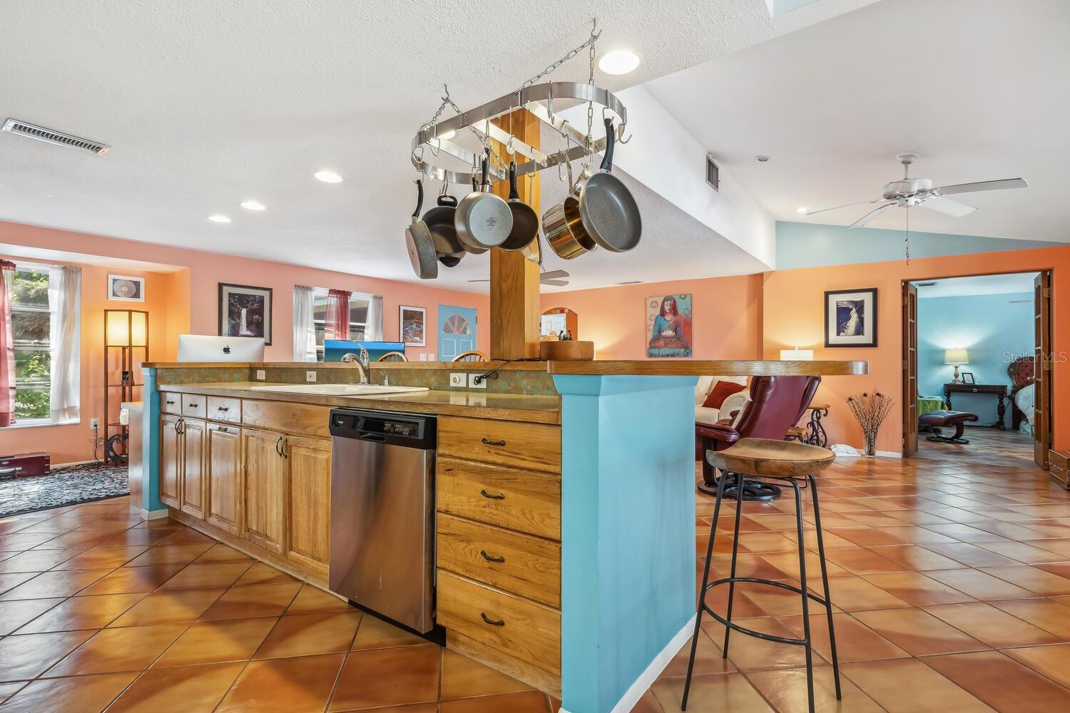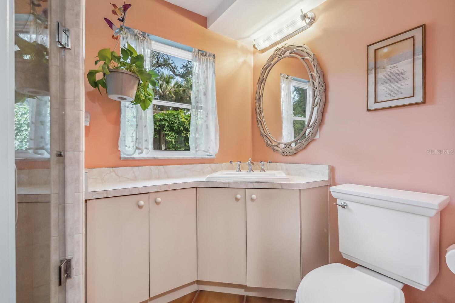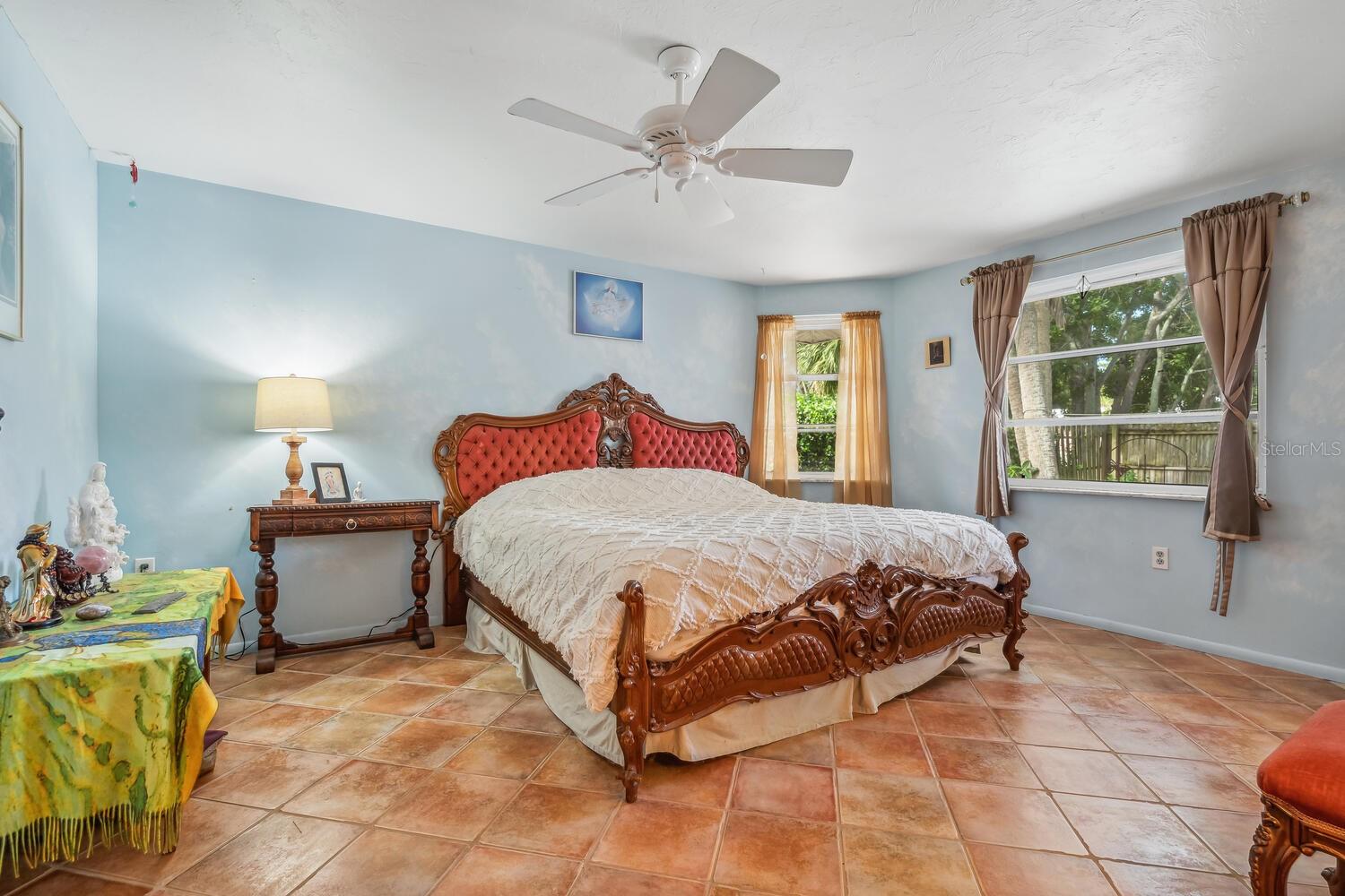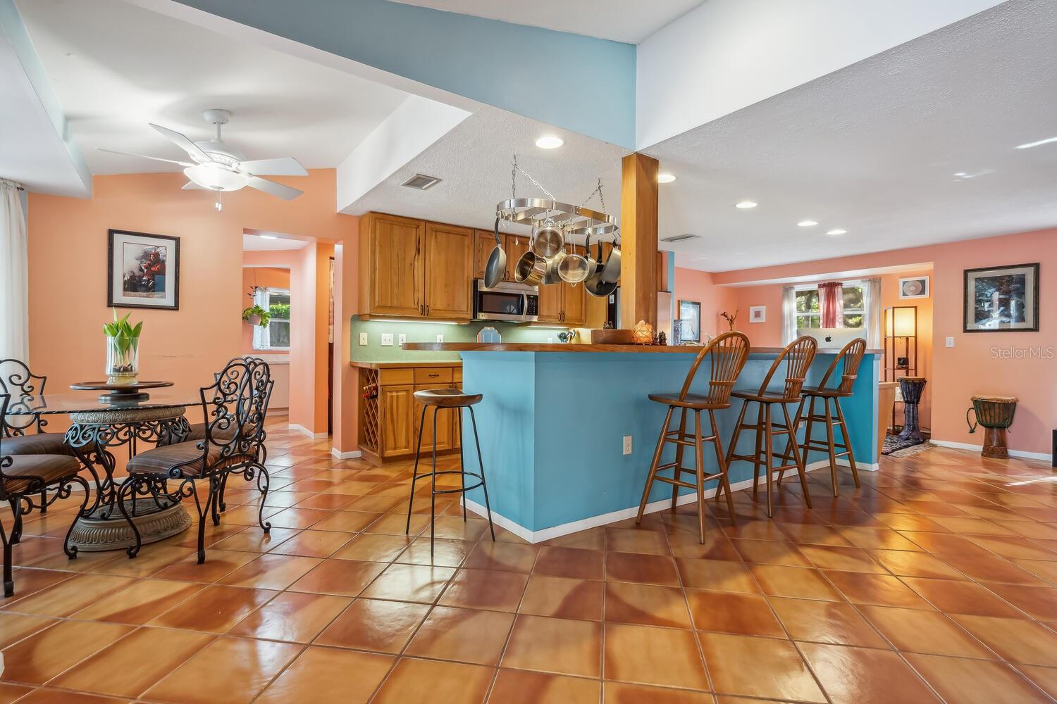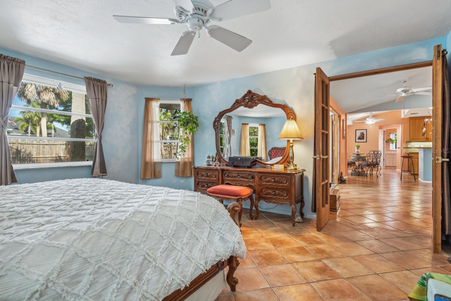 Quietly located along a canopy road of grand oaks, this 3 Bedroom, 3 Bath home is ready for your updating ideas. Imbued with the rich vibrance of Siesta Key, this particular location is a favorite for those who value its peaceful ambiance. Terracotta flooring runs throughout with an open Great room, Kitchen and Lanai; a harmonious connection between indoor and outdoor spaces. The open Kitchen features stainless steel appliances, complemented by a spacious bar top area ideal for hosting gatherings, alongside a convenient built-in desk space. Stepping into the primary suite reveals a welcoming sanctuary with double doors, two closets, dual sinks, and a luxurious tub accompanied by a separate shower. The third bedroom, cleverly designed with a split plan layout, features its own private back door entrance and a charming loft space within the room. The enchanting backyard oasis beckons with palm trees, a Chicago brick patio, and soothing gentle sea breezes. Featuring block construction and a metal roof, the property is also accessible via Sandy Beach Ave, offering plentiful additional parking and the potential for expansion and versatile access. Come and add your signature to this hidden jewel and make it your Siesta Key home.