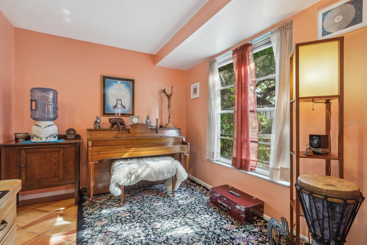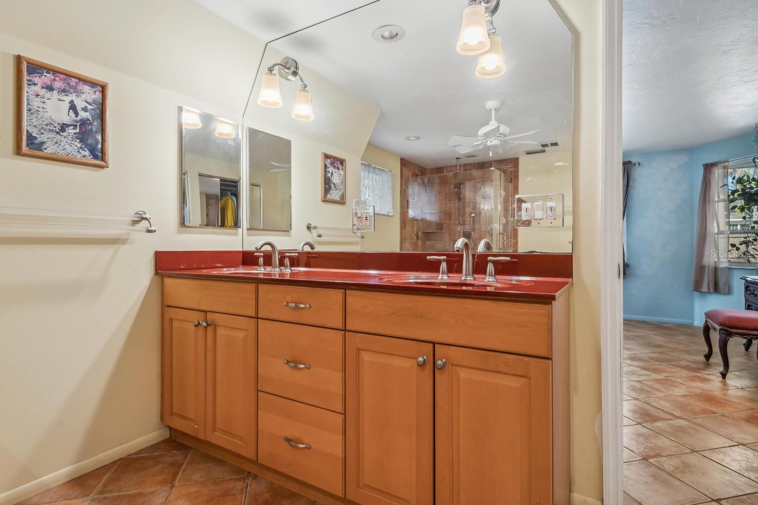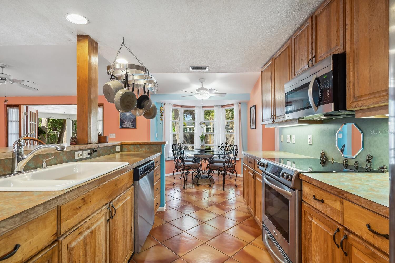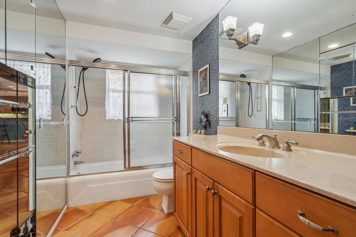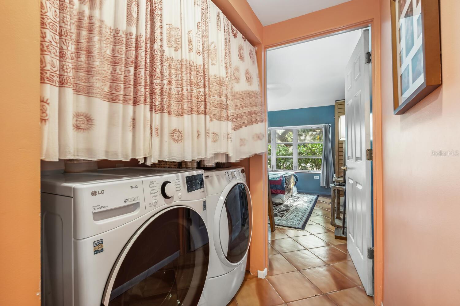 Quietly located along a canopy road of grand oaks, this 3 Bedroom, 3 Bath home is ready for your updating ideas. Imbued with the rich vibrance of Siesta Key, this particular location is a favorite for those who value its peaceful ambiance. Terracotta flooring runs throughout with an open Great room, Kitchen and Lanai; a harmonious connection between indoor and outdoor spaces. The open Kitchen features stainless steel appliances, complemented by a spacious bar top area ideal for hosting gatherings, alongside a convenient built-in desk space. Stepping into the primary suite reveals a welcoming sanctuary with double doors, two closets, dual sinks, and a luxurious tub accompanied by a separate shower. The third bedroom, cleverly designed with a split plan layout, features its own private back door entrance and a charming loft space within the room. The enchanting backyard oasis beckons with palm trees, a Chicago brick patio, and soothing gentle sea breezes. Featuring block construction and a metal roof, the property is also accessible via Sandy Beach Ave, offering plentiful additional parking and the potential for expansion and versatile access. Come and add your signature to this hidden jewel and make it your Siesta Key home.