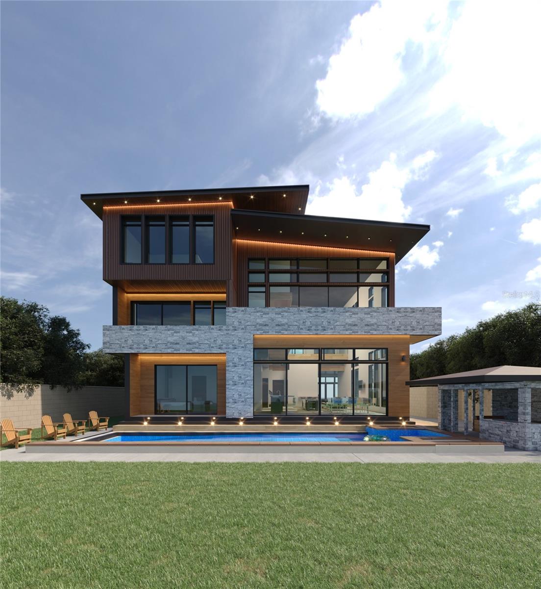 Under Construction. This is a unique opportunity to purchase a custom-designed home that allows you to be part of the creation process, offered at $4,500,000 and scheduled for completion near July of 2024. The mid-century modern home boasts 4,706 square feet under air with a total building area of 6,242 square feet. Situated west of Tamiami Trail in North Sarasota, the property is conveniently located between Indian Beach and Indian Beach Park, offering easy access to Sarasota’s entertainment district, upscale dining venues, Marina Jack Park, St. Armands Circle, Lido Beach, and the Sarasota/Bradenton Airport. The main floor features ceramic tile throughout, a spacious open floor plan, custom kitchen cabinets, luxurious quartz countertops, and high-end stainless steel appliances, including a gas cooktop and a kitchen island overlooking the living area. The dining and living spaces are ideal for hosting family gatherings or social events, featuring a soaring 24-foot high ceiling. The primary bedroom on the first floor includes an ensuite bath, a custom-designed walk-in closet, and glass sliding doors opening to the pool deck. The custom-built pool area boasts an outdoor kitchen and dining space, seamlessly extending the indoor living space. Venture to the second floor, where custom hardwood floors grace the second primary bedroom with an ensuite bath and custom vanity, alongside a study, computer networking control room, two office spaces, and a guest bedroom. Glass sliders from the bedrooms and offices lead to expansive second-floor decks. On the third floor, you'll find two additional primary bedrooms with ensuite baths, custom-designed walk-in closets, and high-quality finishes throughout. Indulge in the audio-visual movie theater room with plush seating and a game room offering views of the lower living space. The home features impact glass windows and doors, LED lighting, and a spacious three-car garage at the front. For more details on interior finishes, fixtures, appliances, exterior renderings, floor plans, and elevations, contact the agent.