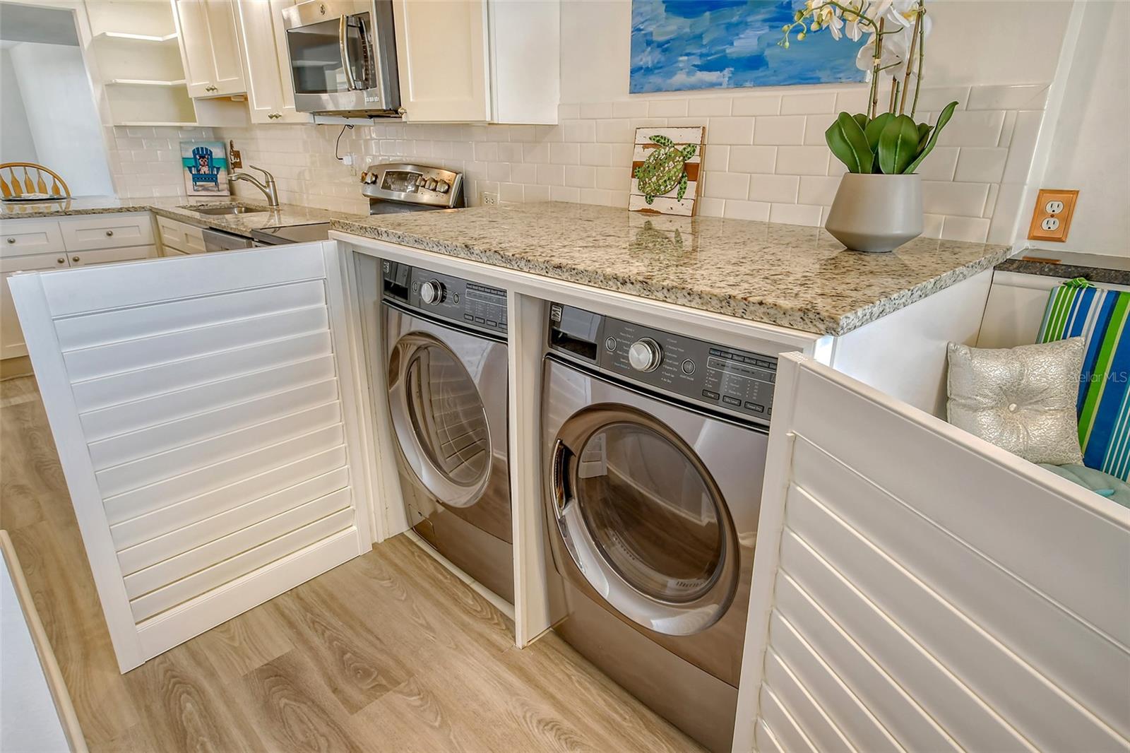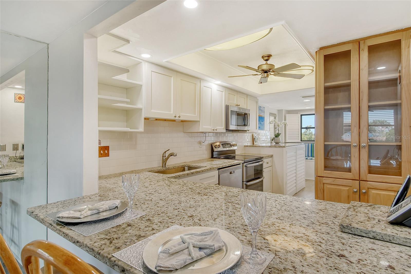 Bay views to watch the sunrise. Enjoy spectacular sunsets on the beach. Deeded beach access. Gulf to Bay communities offers beach and boat docks (lifts allowed), two heated pools, tennis, pickleball, two fitness rooms, saunas, shuffleboard courts, billiards, library, club house, social room, gas grills on grilling patios, bike and kayak storage area. New luxury vinyl flooring. Kitchen has solid surface countertops, stainless appliance, laundry in residence (full size washer and dryer), and electric fireplace. The seller has removed the popcorn on the ceilings. Freshly painted. New front door. Lanai has electric blinds. Owners Suite has walk-in closet and bath with twin vanities. Carport, monthly rentals (8 leases a year), pet friendly (30lbs), on-site management and rental program. Close to three of Siesta Key's favorite restaurants. Free Trolley to Siesta Village. IMMEDIATE POSSESSION!