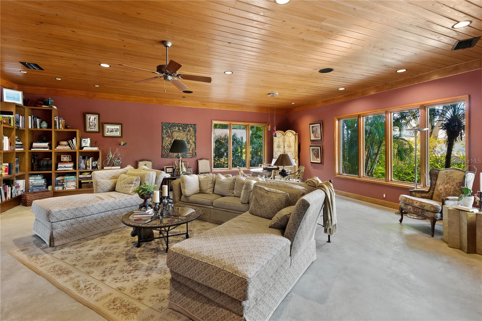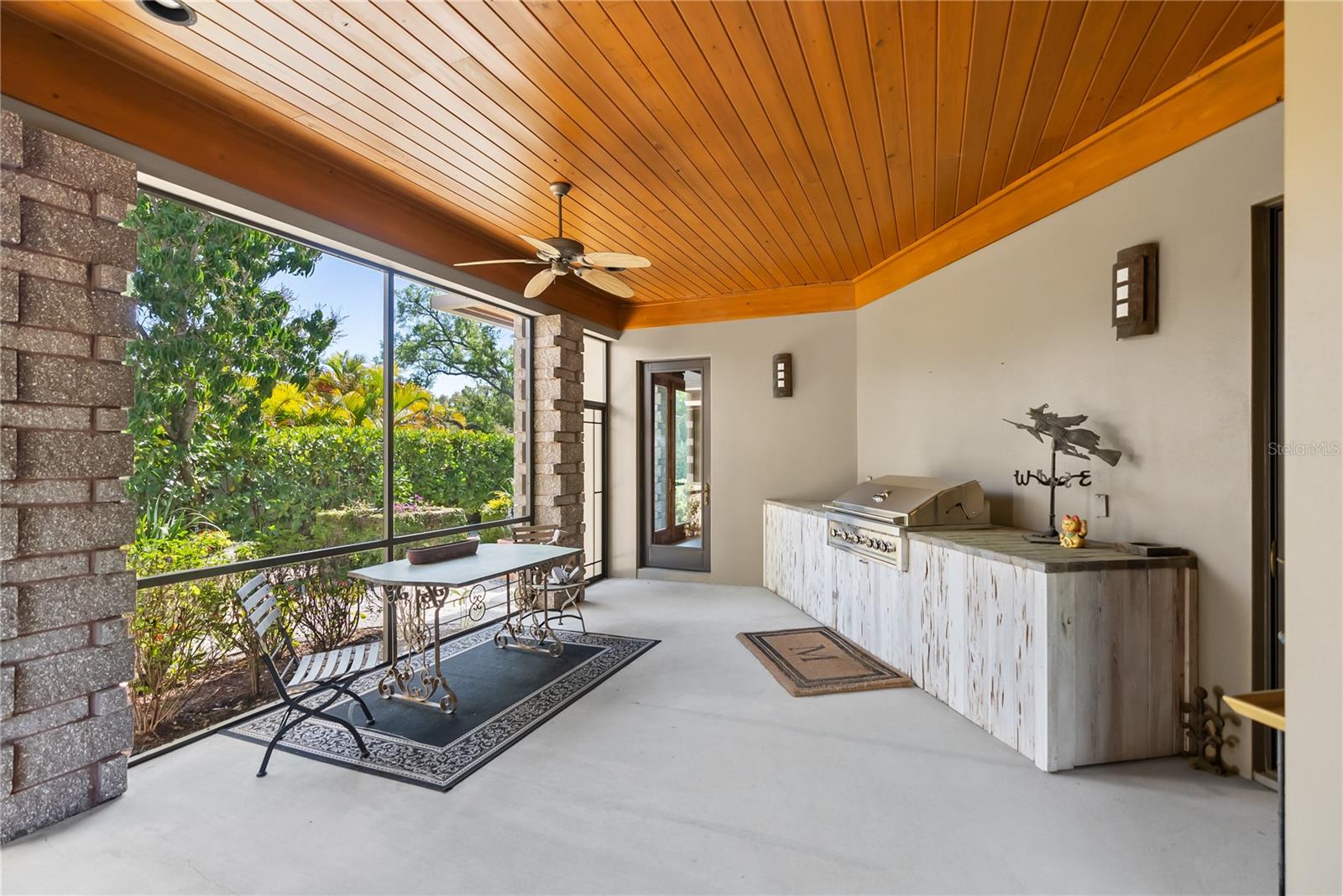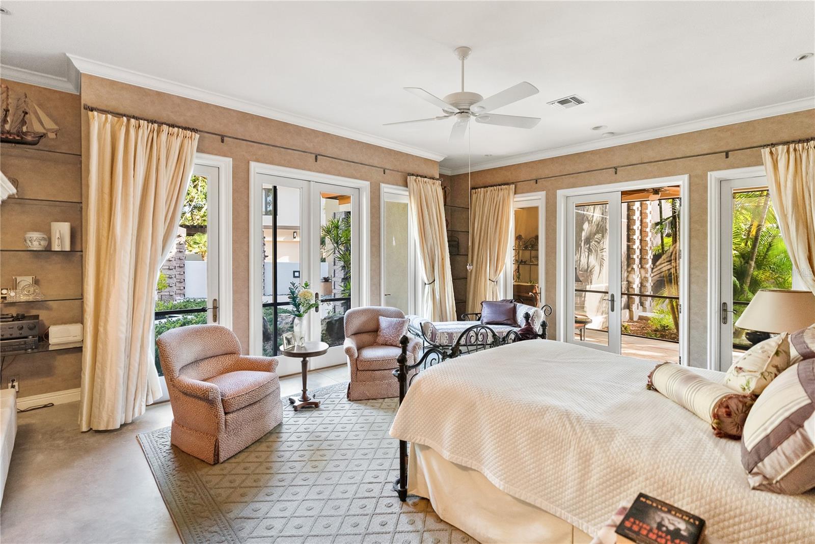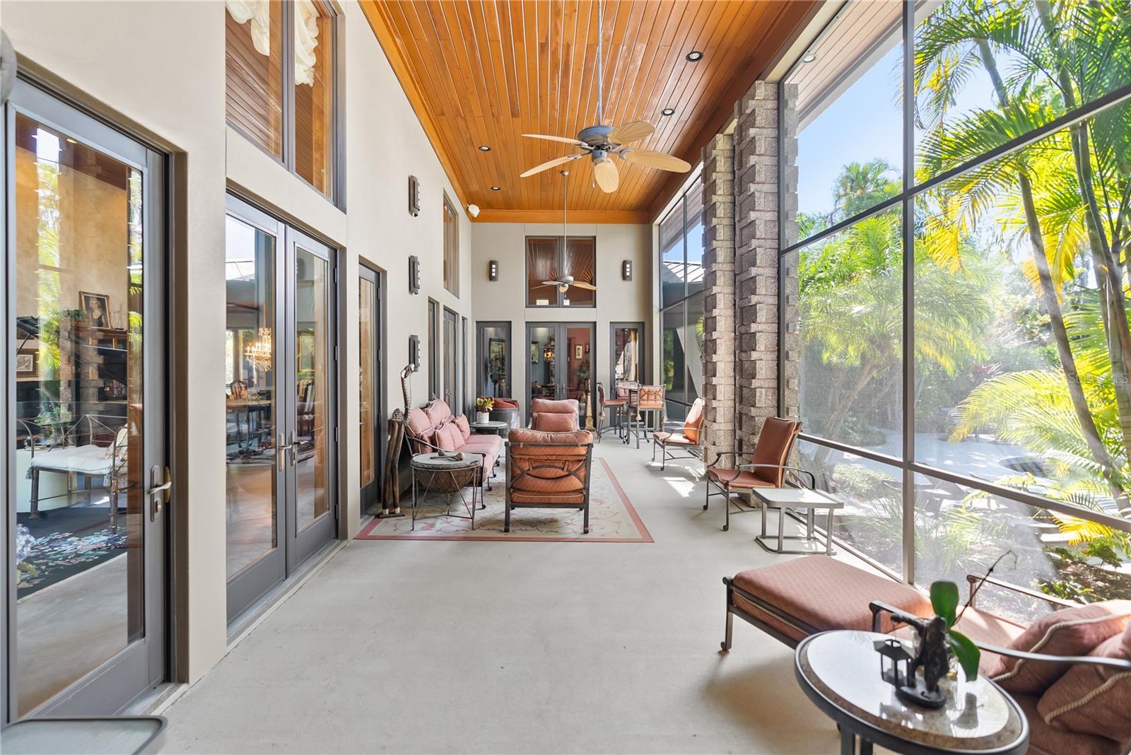 This unique home is designed to assemble your family and friends, to share good food, and to enjoy the good life. Esteemed architect John Potvin imagined three separate buildings connected by covered lanais to provide complete privacy when desired, balanced with grand convivial spaces for connection that magnetically attract you to all the action when you want to socialize. The home exudes elegance, but also remains warm and approachable incorporating casual tropical elements with stone columns, metal pergolas, and concrete textures, ultimately resulting in a relaxed oasis like no other. A stucco wall surrounds the perimeter, providing exceptional privacy enabling you to unwind with the ambient sound of the fountain, while surrounded by luscious green foliage in a peaceful atmosphere.