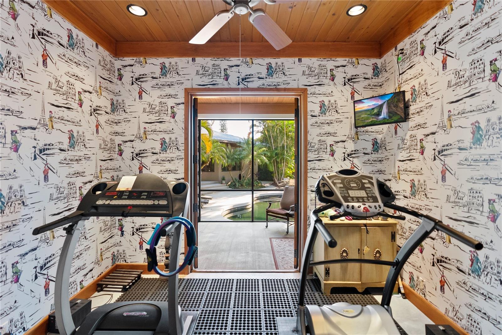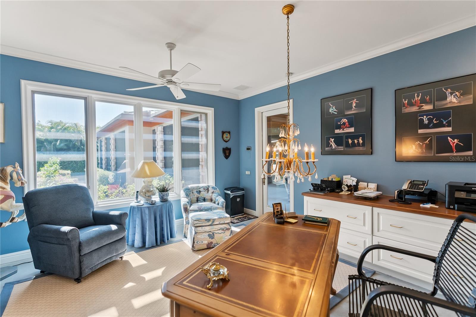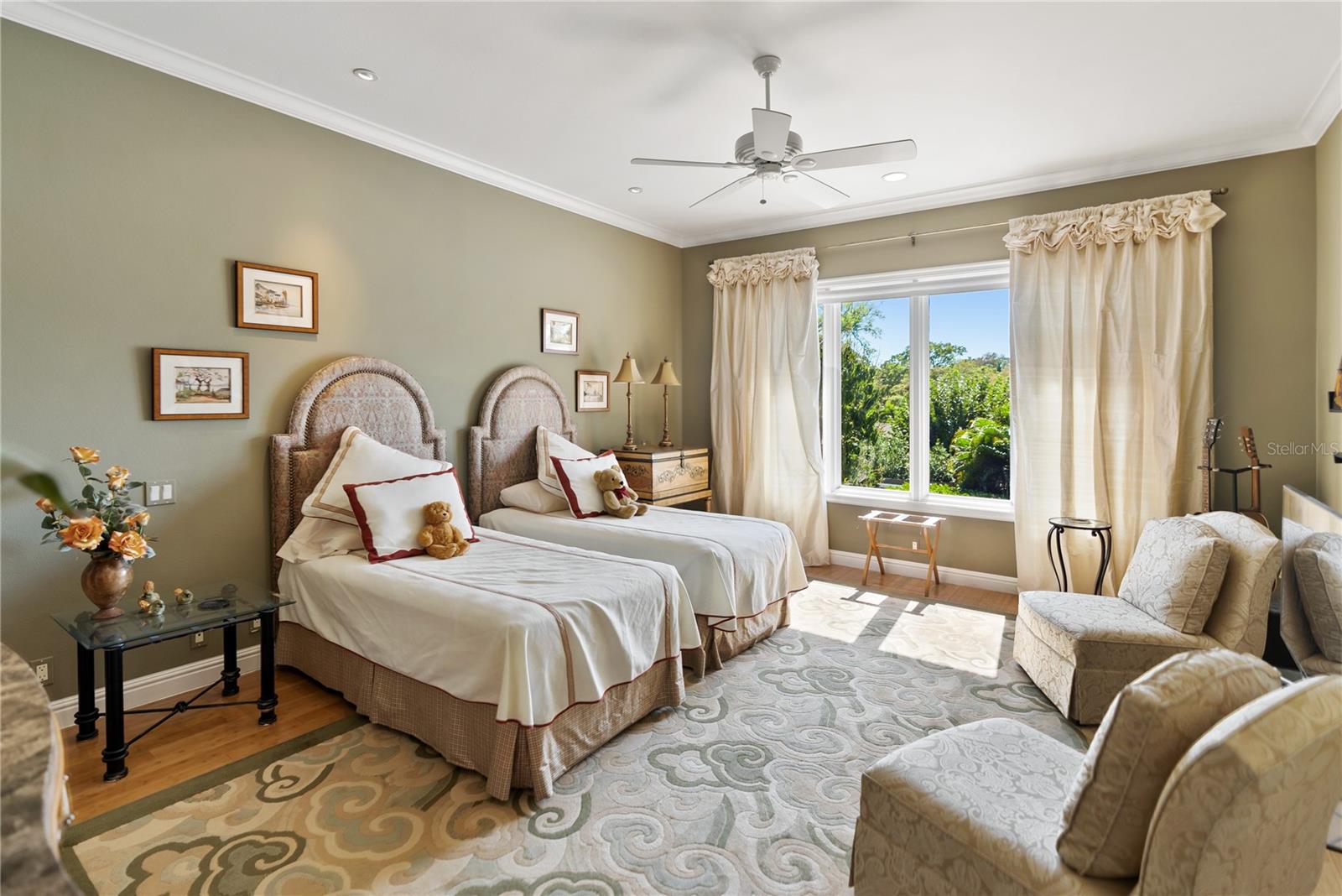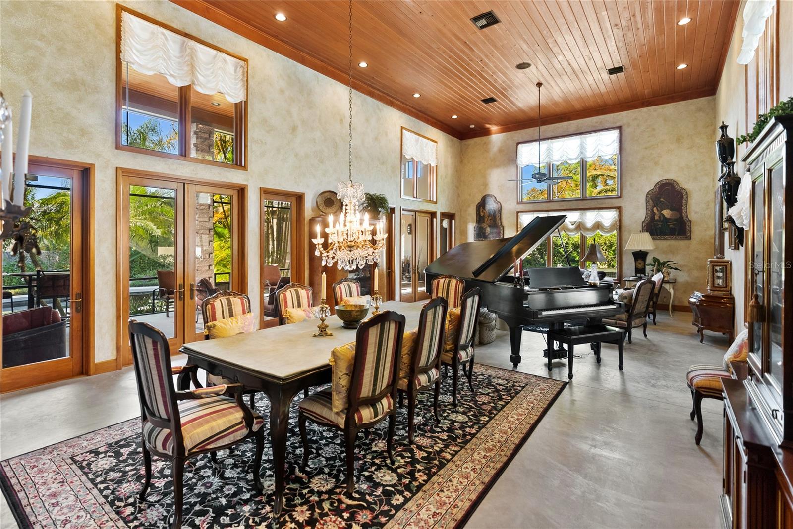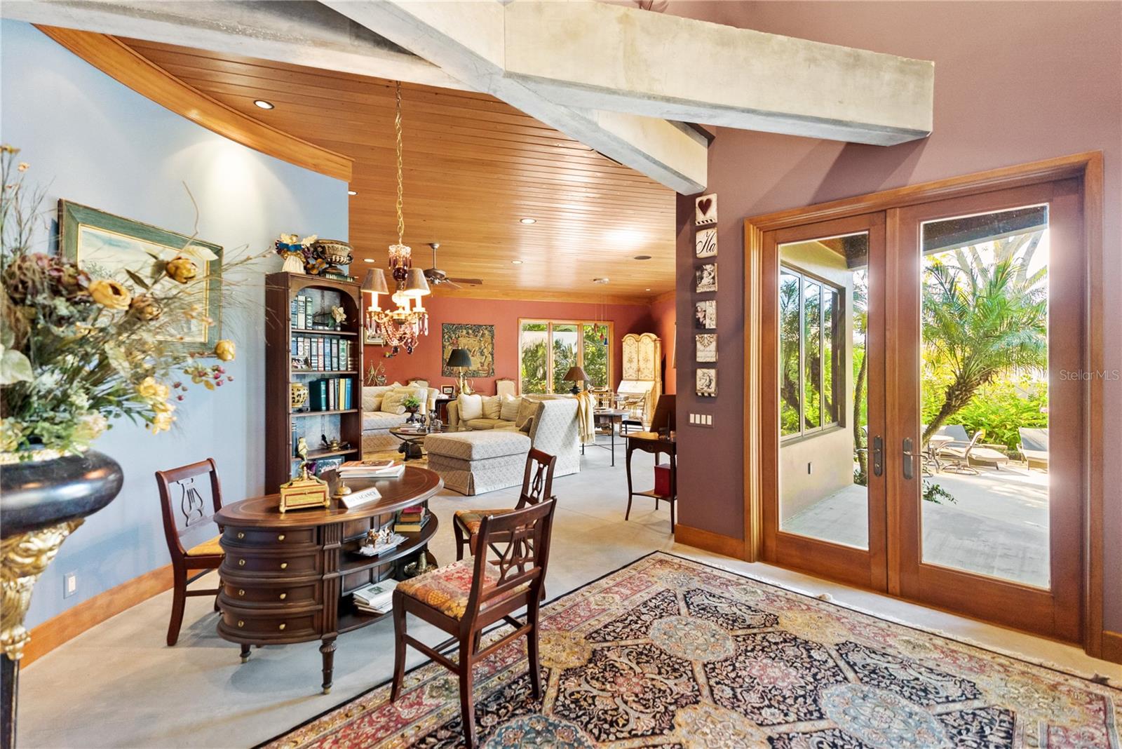 This unique home is designed to assemble your family and friends, to share good food, and to enjoy the good life. Esteemed architect John Potvin imagined three separate buildings connected by covered lanais to provide complete privacy when desired, balanced with grand convivial spaces for connection that magnetically attract you to all the action when you want to socialize. The home exudes elegance, but also remains warm and approachable incorporating casual tropical elements with stone columns, metal pergolas, and concrete textures, ultimately resulting in a relaxed oasis like no other. A stucco wall surrounds the perimeter, providing exceptional privacy enabling you to unwind with the ambient sound of the fountain, while surrounded by luscious green foliage in a peaceful atmosphere.