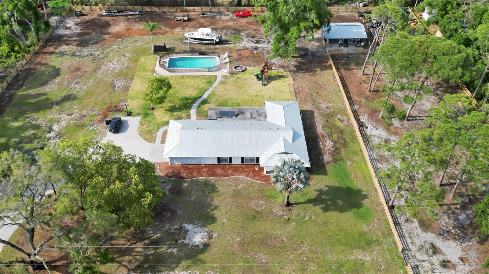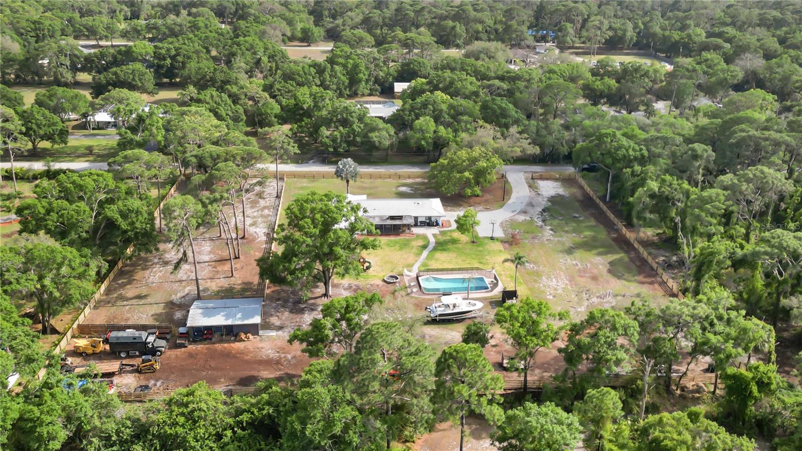 Welcome to your slice of paradise at 2255 61st Street, located in the heart of beautiful Sarasota, Florida. Upon arriving to this exquisite completely remodeled fully fenced property a brand new electric gate welcomes you. This property is centrally located on over 2 acres offering a blend of contemporary luxury and timeless elegance, perfectly situated in the sought-after neighborhood, Desoto Acres. Step inside this meticulously designed residence and be greeted by an abundance of natural light dancing through the spacious rooms. With 4 bedrooms plus bonus room and 2 bathrooms, this home provides ample space for relaxation and entertainment. The open-concept layout seamlessly connects the living, dining, and kitchen areas, creating an ideal space for hosting gatherings or simply unwinding after a long day. The gourmet kitchen is a culinary enthusiast's dream, featuring state-of-the-art appliances, sleek countertops, and custom cabinetry. Whether you're hosting a lavish dinner party or enjoying a casual meal with loved ones, this space is sure to inspire your inner chef. Unwind in the opulent master suite, complete with a lavish ensuite bathroom, featuring a double rainfall shower head walk in shower accompanied with a center drain freestanding tub with 45-gallons of water capacity equipped with 8 Water jets and 0.75HP water pump provide a luxurious experience. Each additional bedroom boasts its own unique charm, providing comfort and privacy for family and guests alike. Outside, soak up the Florida sunshine or lounge by the sparkling pool, or grab a cold one and sit back and relax on on the screened in patio. Have horses, pigs, or chickens? There is plenty of room for them as this property sits on over 2.5 acres with 2 barn stalls, full tack and feed room. Conveniently located just minutes from pristine beaches, world-class dining, Sarasota/Bradenton airport and shopping destinations, this home offers the perfect blend of luxury and convenience. Whether you're seeking a peaceful retreat or an entertainer's paradise, this property is sure to exceed your expectations. Don't miss your opportunity to experience resort-style living in Sarasota's most coveted community. Schedule your private showing today and discover the endless possibilities awaiting you.