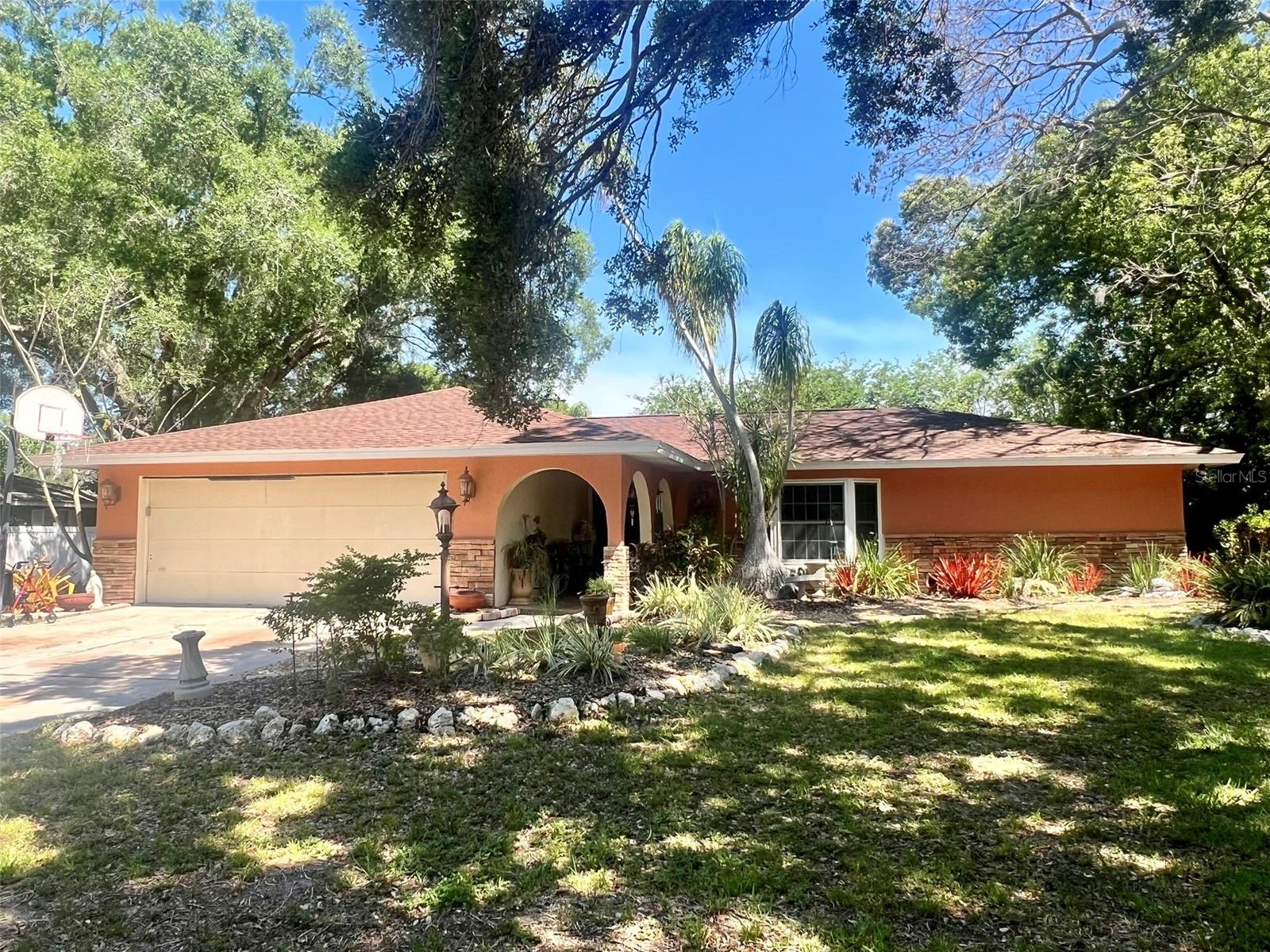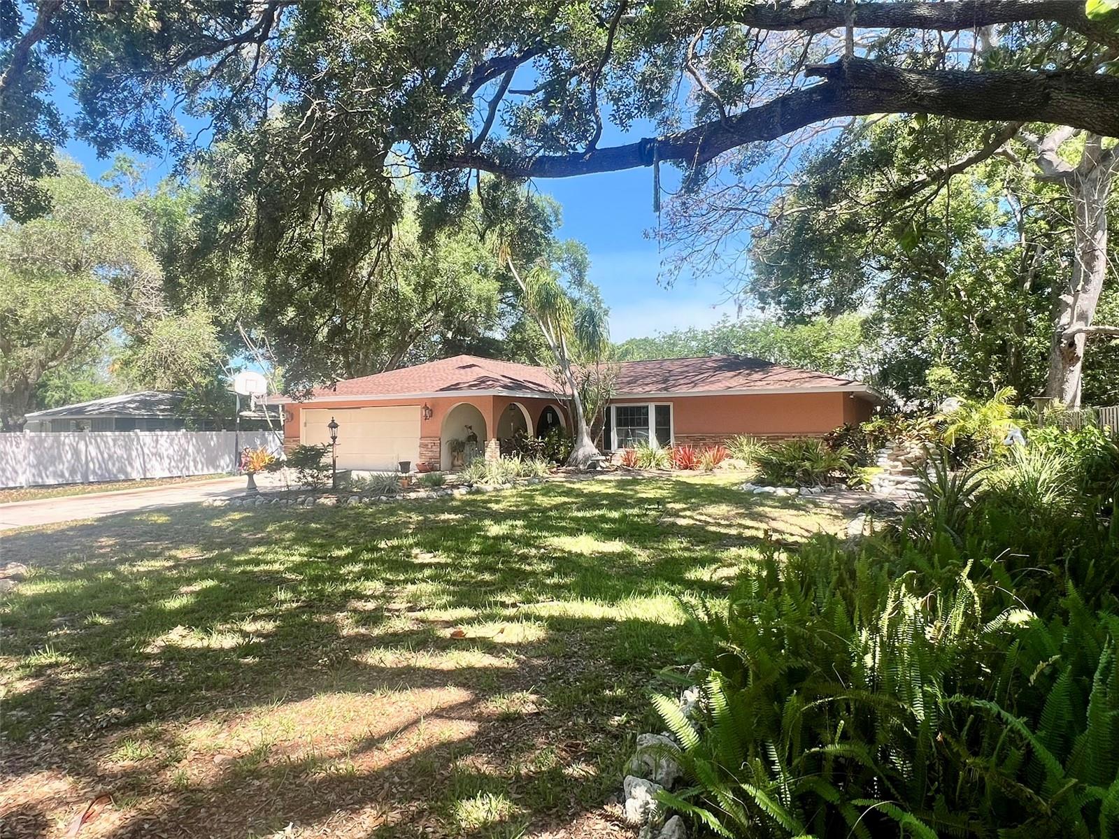 Paradise found! Take up residence at this unique enclave of highly desirable large lot single family homes located in a non-deed restricted area close to Phillippi Shores Elementary, Brookside Middle, Riverview High School and the heart of Sarasota! Enjoy the best that Sarasota County has to offer - including its top ranked beaches (Siesta, Lido, St Armands, Longboat), shopping, restaurants, entertainment venues like the Van Wezel and Florida Studio Theater, golf courses, marinas, nature preserves, parks & trails, ball and soccer fields, neatly manicured and landscaped open spaces, and so much more! Enjoy this spectacular open floor plan with elements of casual luxury everywhere you turn! Light, bright and airy...your personal luxury retreat from the everyday worries of the world! Upscale home offers high ceilings, L-shaped living room, formal dining area just off the kitchen, Florida/family room, large galley kitchen with breakfast bar; large carpeted master bedroom with en-suite bath and walk-in closet; two additional guest BRs with carpeted floors, guest bathroom, KIT with newer white appliances, sliding glass doors off the living room and dining area leading to the Florida/family room complete with A/C ducts and dual ceiling fans, sliding glass doors from Florida/family room leading out to a backyard patio oasis w/specially built grill and countertop area! Spacious fence enclosed back and side yard with room to play and entertain. Beautifully landscaped front yard with multi-level stone waterfall feature in garden area. All kitchen and laundry room appliances included! And of course a two car attached garage! New roof and new A/C system in 2023! All of this with NO HOA & NO CDD fees! Make it your own personal Florida oasis! Act quickly before this home disappears!