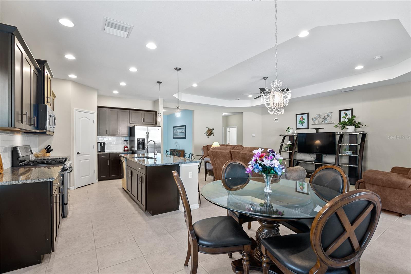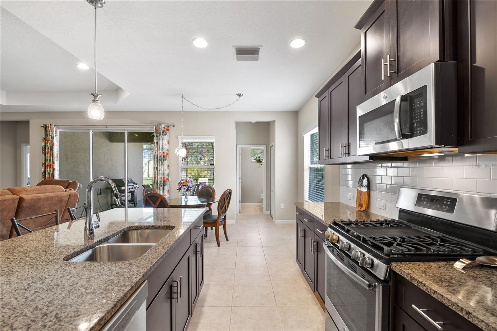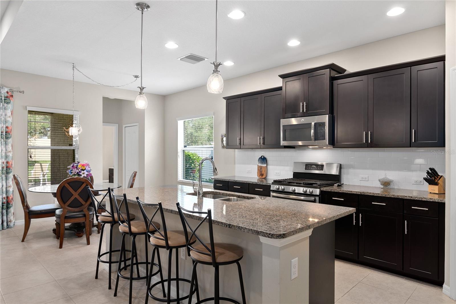 This open-concept home features 3 Bedrooms PLUS a Den with solid double doors that can also be used as an additional guest room, plus 2.5 Baths! As you approach this home, you’ll be greeted by the charming front porch with plenty of room for outdoor seating. Step inside the large foyer and notice the soaring ceilings. To the right is your spacious Den with wood floors and solid double doors for privacy, whether you use it as an office, playroom or an additional guest room. Next, you’ll step into the open Great Room, with tray ceilings and abundant light. The kitchen has beautiful granite countertops, warm cabinet colors, subway tile backsplash, a walk-in pantry and the oversized island has plenty of room to pull up your barstools and be able to entertain your guests, as well as pendant lighting. The stainless-steel appliances include a gas range with griddle, microwave, refrigerator, dishwasher. You also have a separate breakfast nook, a second pantry storage area and a half bath. On the left wing of the home towards the back, you’ll find the Primary Suite which is oversized and has 2 closets, and a spacious Primary Bathroom with walk-in shower and two separate vanities. Situated past the Great Room on the left wing of the home are two more bedrooms as well as a full bath and a very spacious laundry room with soaking sink! If you’re desiring a sunny outdoor area, you found the right home! This beautifully upgraded pavered lanai has been extended and screened in so you can enjoy the sunny outdoors or sit in the shade under the covered porch, and enjoy grilling on your BBQ where the gas is pre-plumbed for your convenience. Both neighbors on each side have fenced yards so it would be easy to adjoin them if you choose to have a fenced yard of your own! The gated community of Woodbrook is truly located convenient to all the shopping and restaurants you could possibly need! Also easy proximity to the interstate for the commuters and quick access to Downtown Sarasota and beaches. The community also offers a beautiful pool, spa, BBQ kitchen area with shaded seating plus a playground. No CDD fees is an added bonus! Schedule your showing today as this home is priced aggressively for a quick sale!