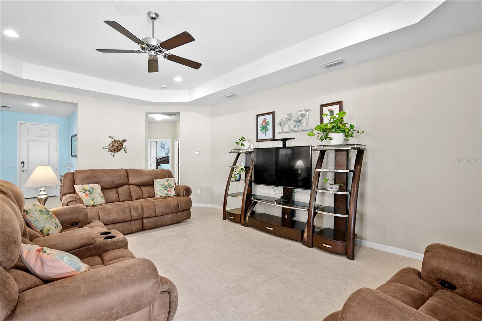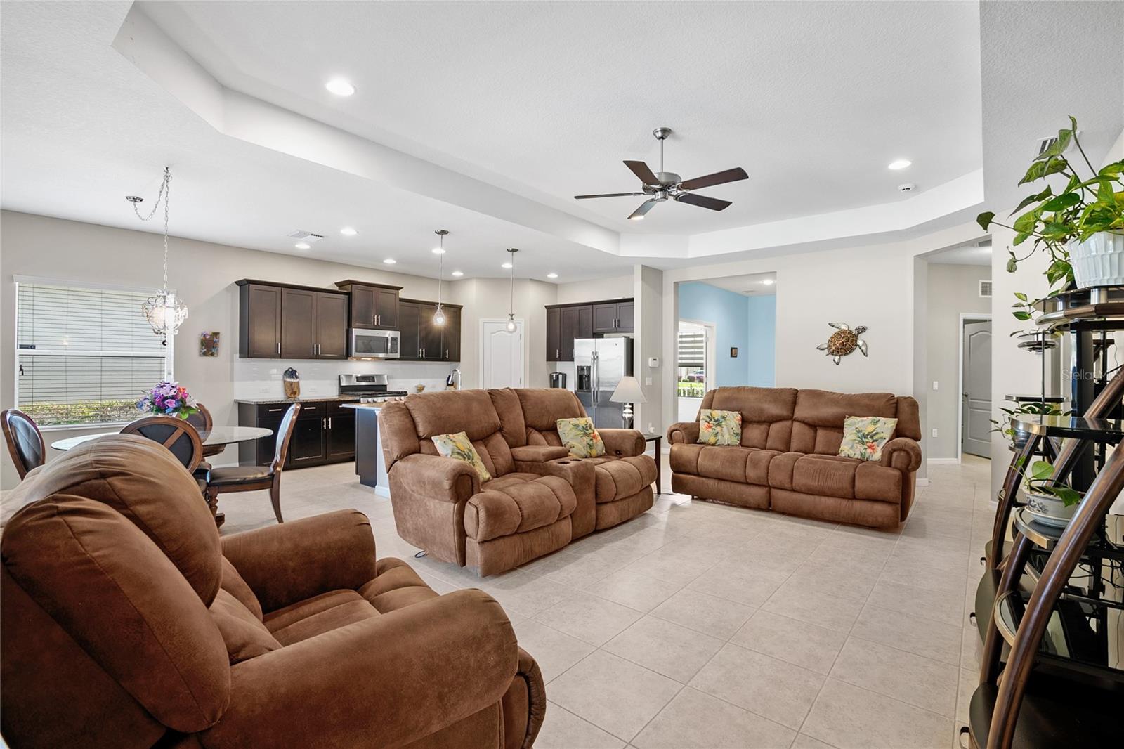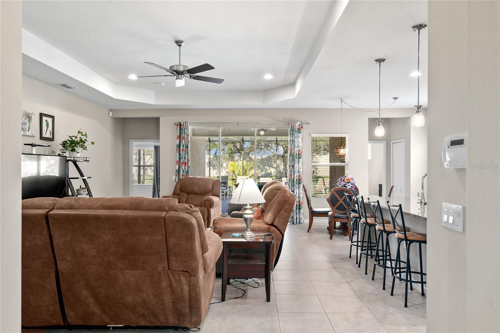 This open-concept home features 3 Bedrooms PLUS a Den with solid double doors that can also be used as an additional guest room, plus 2.5 Baths! As you approach this home, you’ll be greeted by the charming front porch with plenty of room for outdoor seating. Step inside the large foyer and notice the soaring ceilings. To the right is your spacious Den with wood floors and solid double doors for privacy, whether you use it as an office, playroom or an additional guest room. Next, you’ll step into the open Great Room, with tray ceilings and abundant light. The kitchen has beautiful granite countertops, warm cabinet colors, subway tile backsplash, a walk-in pantry and the oversized island has plenty of room to pull up your barstools and be able to entertain your guests, as well as pendant lighting. The stainless-steel appliances include a gas range with griddle, microwave, refrigerator, dishwasher. You also have a separate breakfast nook, a second pantry storage area and a half bath. On the left wing of the home towards the back, you’ll find the Primary Suite which is oversized and has 2 closets, and a spacious Primary Bathroom with walk-in shower and two separate vanities. Situated past the Great Room on the left wing of the home are two more bedrooms as well as a full bath and a very spacious laundry room with soaking sink! If you’re desiring a sunny outdoor area, you found the right home! This beautifully upgraded pavered lanai has been extended and screened in so you can enjoy the sunny outdoors or sit in the shade under the covered porch, and enjoy grilling on your BBQ where the gas is pre-plumbed for your convenience. Both neighbors on each side have fenced yards so it would be easy to adjoin them if you choose to have a fenced yard of your own! The gated community of Woodbrook is truly located convenient to all the shopping and restaurants you could possibly need! Also easy proximity to the interstate for the commuters and quick access to Downtown Sarasota and beaches. The community also offers a beautiful pool, spa, BBQ kitchen area with shaded seating plus a playground. No CDD fees is an added bonus! Schedule your showing today as this home is priced aggressively for a quick sale!
