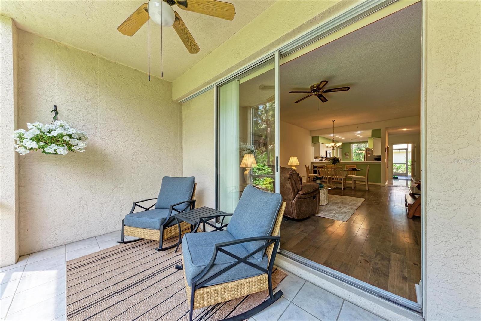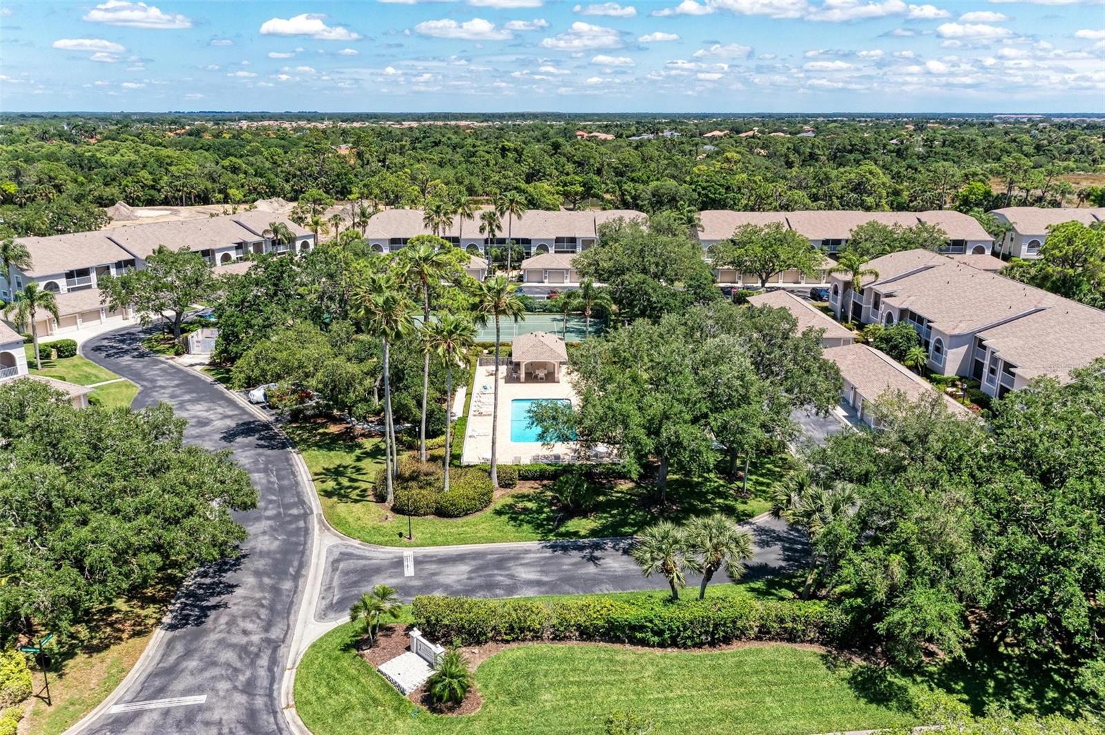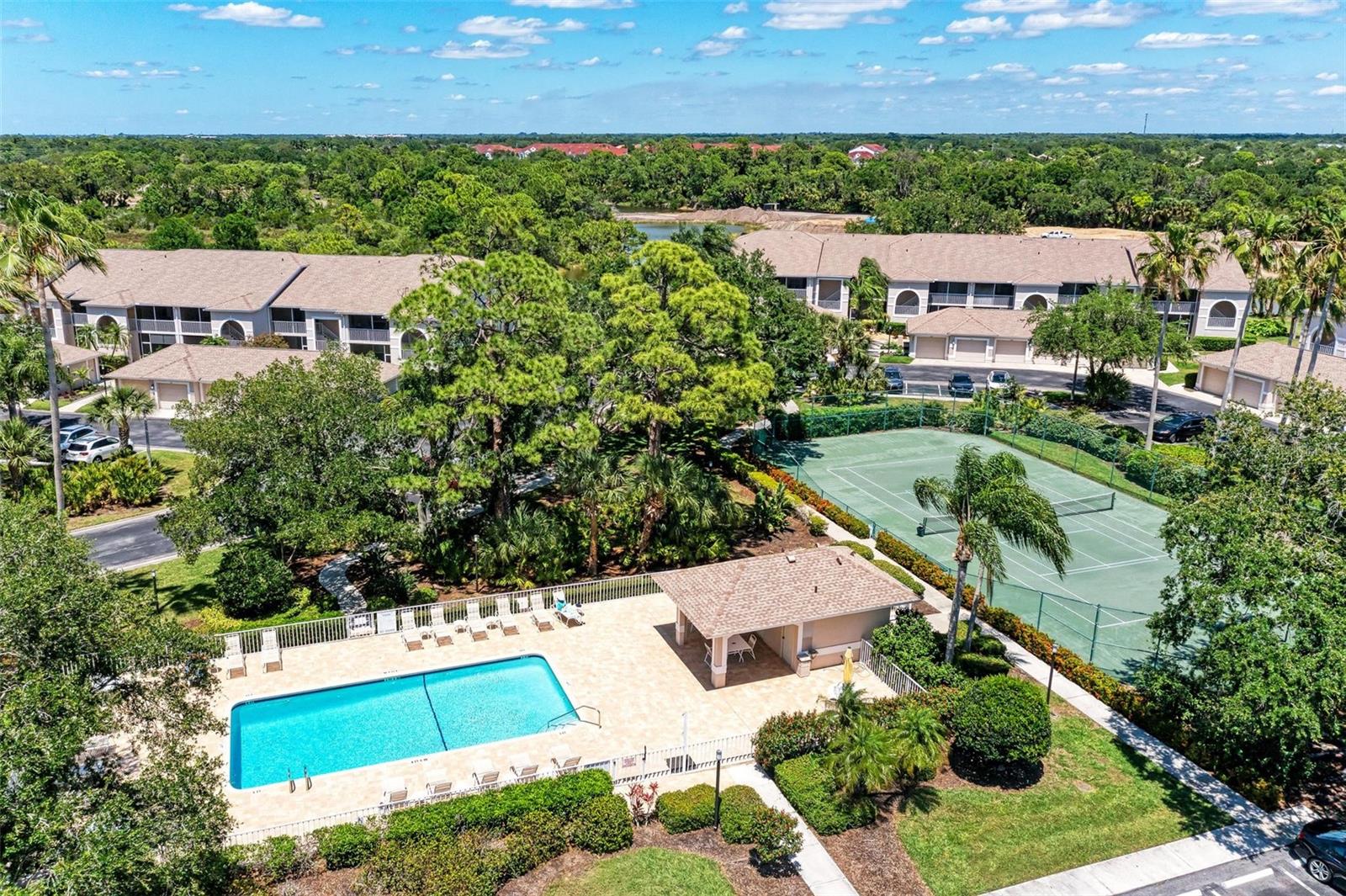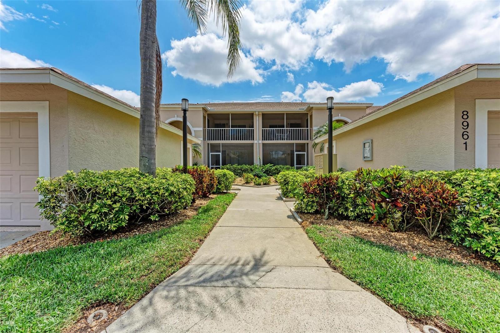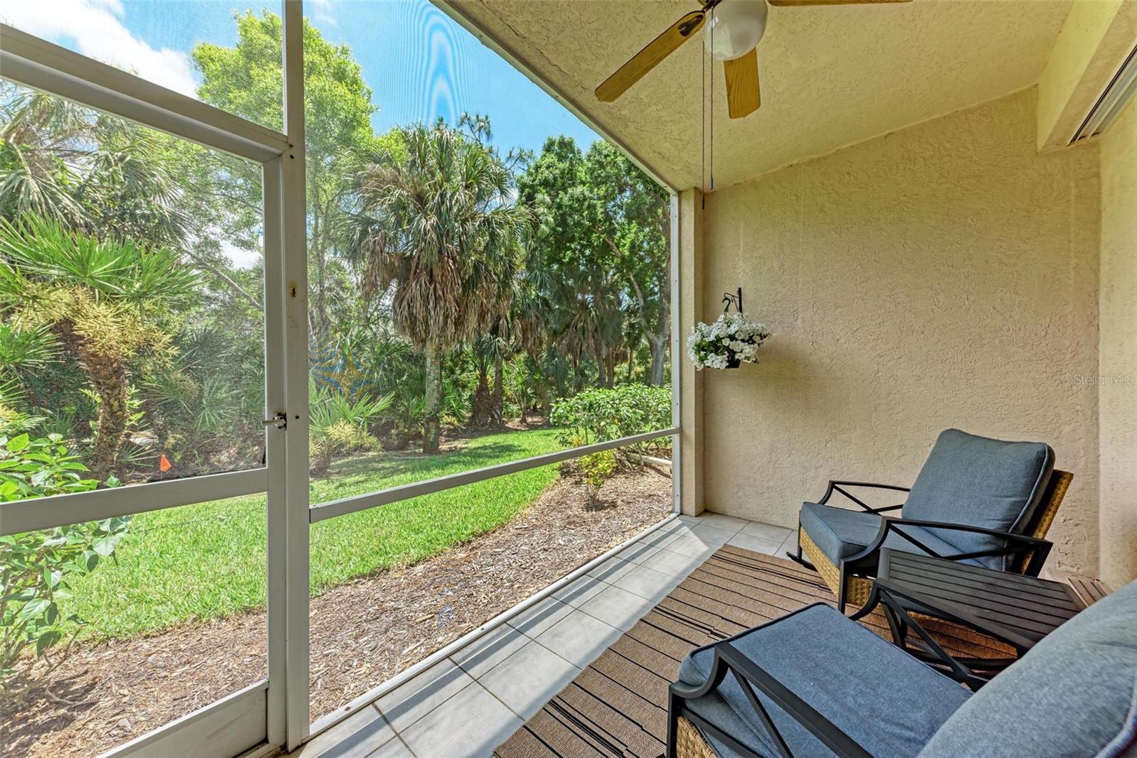 PRICE REDUCTION & READY FOR QUICK MOVE-IN! Ready for the right person, could be YOU! Offered Turn-Key. Experience the pinnacle of country club living at Stoneybrook Golf & Country Club. Enjoy the lifestyle and convenience you deserve in this ground-floor condo, complete with a bonus detached one-car garage conveniently located in front of your unit amidst lush landscaping and meticulously maintained grounds. Two covered private screened lanais, one at the front and one at the back, each with sliding glass doors to provide a tranquil retreat for seamless indoor/outdoor living. This remarkable condo is ideally situated just steps away from walking trails, a pool, tennis courts, and pickleball courts. Inside, discover a beautifully designed two-bedroom, two-bathroom split floorplan condo. The kitchen has been upgraded with Spanish Quartz Countertops, Stainless Steel Appliances, and NEW Recessed Lighting, along with convenient pull-out shelving. Start your day with a cup of coffee in the separate breakfast area/eat-in kitchen as you greet the morning. NEW engineered hardwood flooring enhances the living areas and bedrooms. Step into effortless entertainment in the expansive, luminous living space, seamlessly connected to a dining area and kitchen bar featuring a sleek built-in wine cooler. With panoramic windows offering stunning vistas of your private tropical haven, this inviting setting elevates every gathering into a memorable experience. The master suite is a haven of tranquility, with a bay window,, two walk-in closets, and a spacious bathroom with a double sink vanity and frameless glass shower door. The guest bedroom offers two twin beds in the front and is equally spacious, conveniently located next to the second bathroom. Additional highlights of this magnificent condo include a designated laundry room with a large front-load washer and dryer included, as well as a large storage closet. Newly painted color accents have been updated to evoke the Florida feel. Tasteful furnishings can be negotiated. (Master Bedroom is Virtually Staged) Enjoy access to a wealth of community amenities. Whether you're a golf enthusiast, tennis pro, or simply crave a vibrant community with abundant green space and exciting activities, Stoneybrook Golf & Country Club is the perfect place to call home. With a renowned Arthur Hills-designed 18-hole golf course, pro shop, fitness center, illuminated Har-Tru tennis courts, walking trails, bocce, pickleball, pool, spa, and a full-service restaurant offering both indoor and outdoor dining, you'll find everything you need right at your fingertips. Plus, this incredible community is situated adjacent to the picturesque Legacy Trail and just moments away from Nokomis and Siesta Beaches, Costco, shopping, and a wide array of fantastic restaurants. Call today to schedule a private showing and make your dreams a reality today.