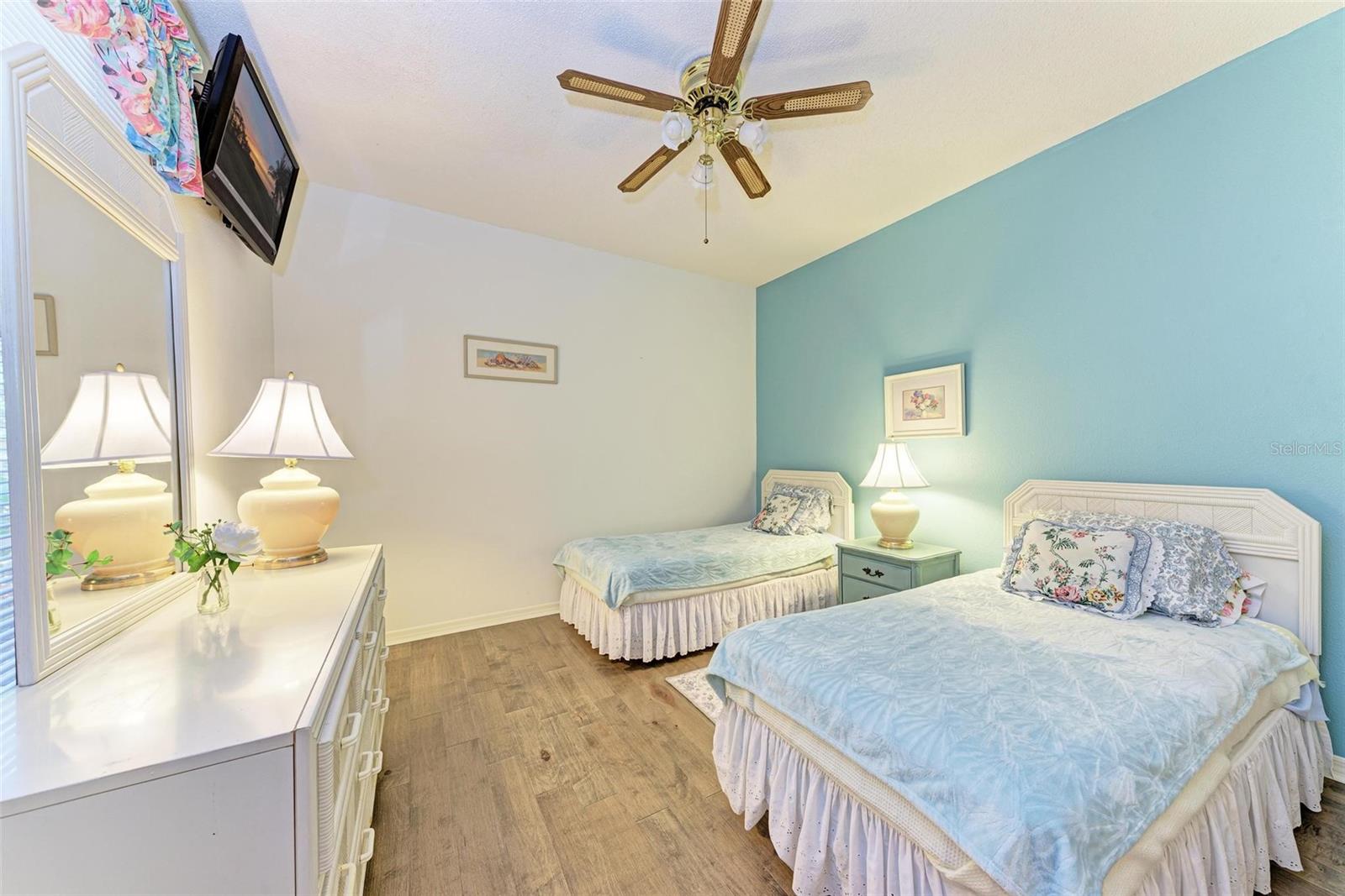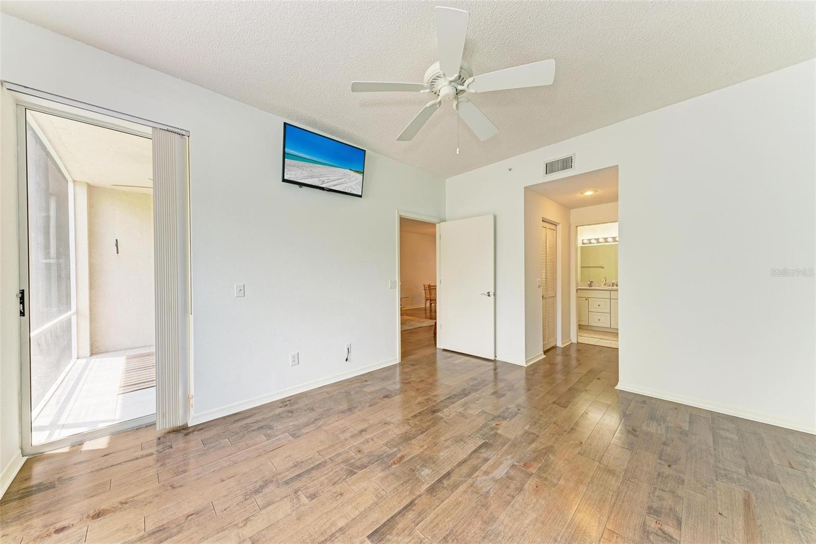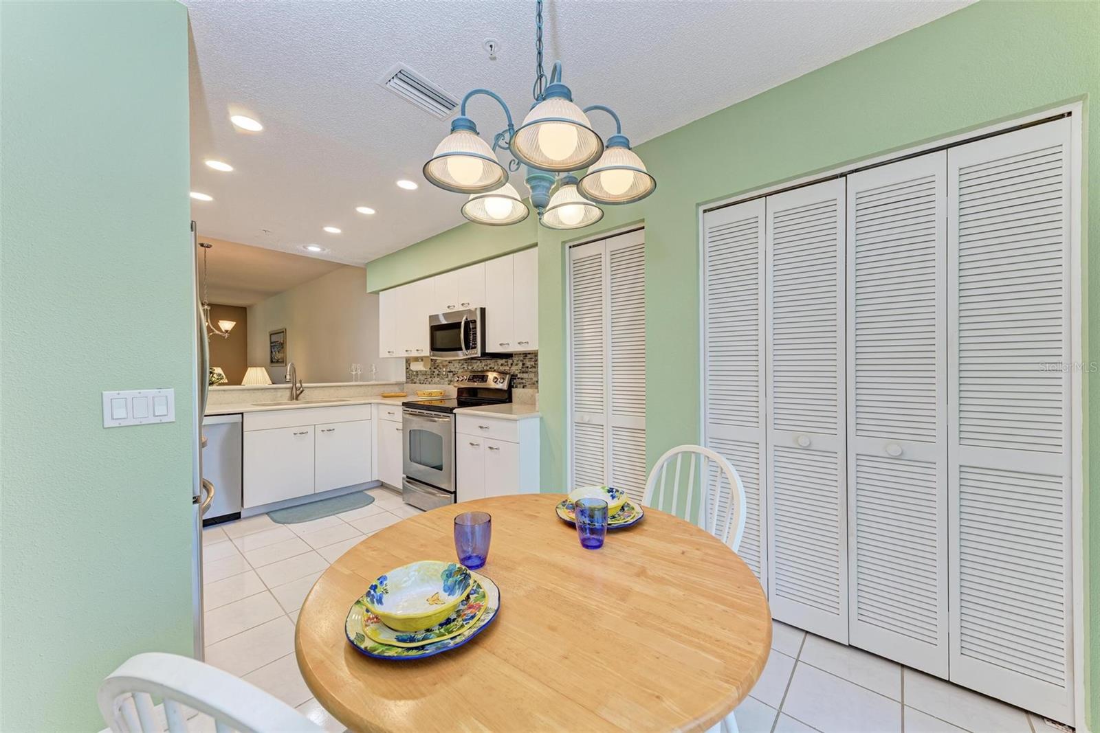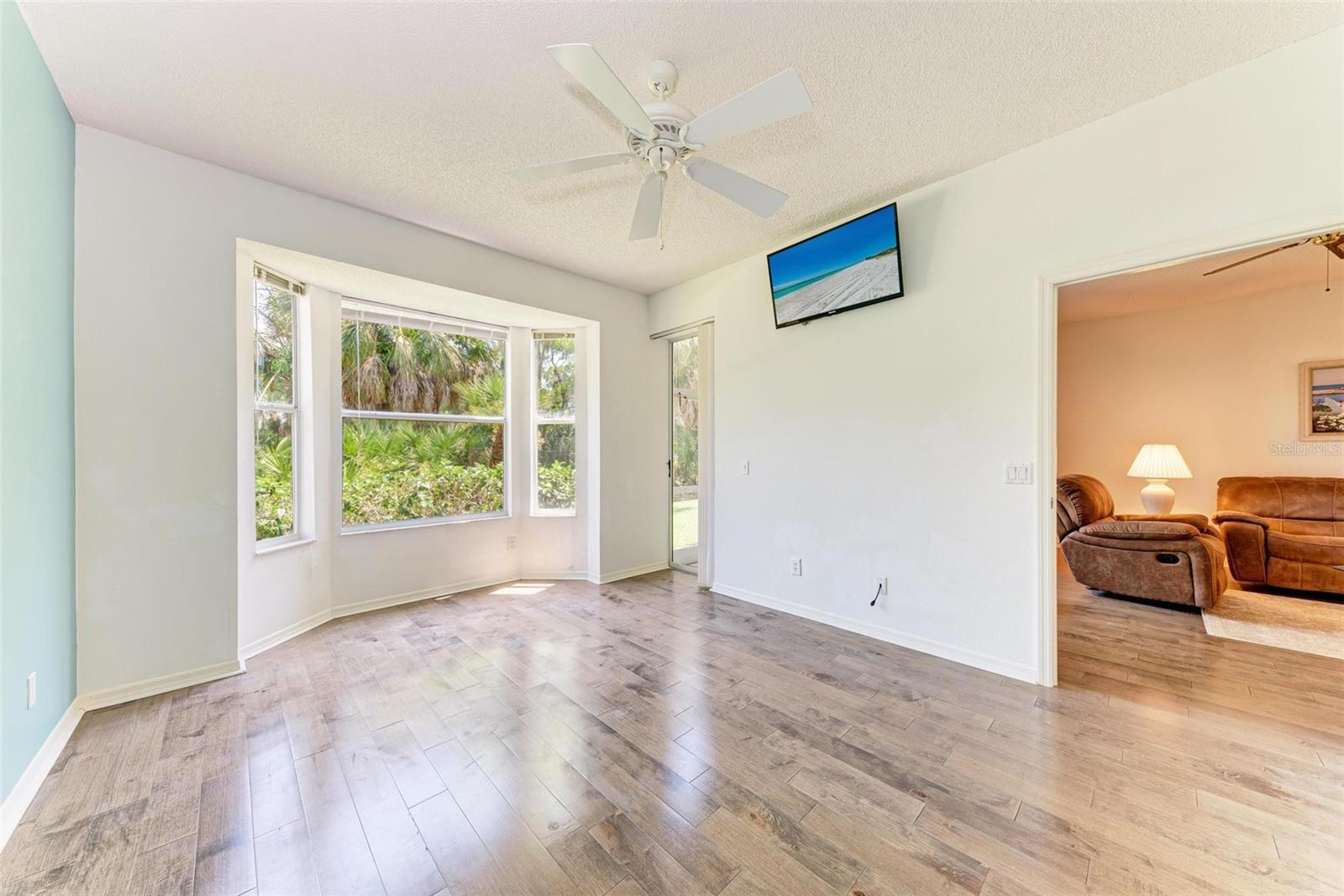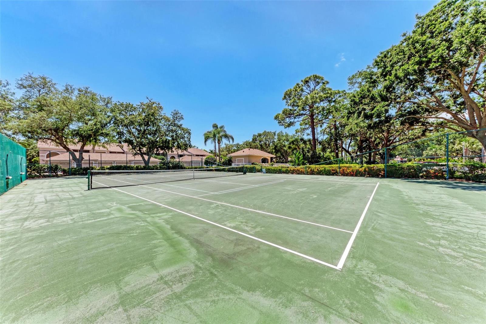 PRICE REDUCTION & READY FOR QUICK MOVE-IN! Ready for the right person, could be YOU! Offered Turn-Key. Experience the pinnacle of country club living at Stoneybrook Golf & Country Club. Enjoy the lifestyle and convenience you deserve in this ground-floor condo, complete with a bonus detached one-car garage conveniently located in front of your unit amidst lush landscaping and meticulously maintained grounds. Two covered private screened lanais, one at the front and one at the back, each with sliding glass doors to provide a tranquil retreat for seamless indoor/outdoor living. This remarkable condo is ideally situated just steps away from walking trails, a pool, tennis courts, and pickleball courts. Inside, discover a beautifully designed two-bedroom, two-bathroom split floorplan condo. The kitchen has been upgraded with Spanish Quartz Countertops, Stainless Steel Appliances, and NEW Recessed Lighting, along with convenient pull-out shelving. Start your day with a cup of coffee in the separate breakfast area/eat-in kitchen as you greet the morning. NEW engineered hardwood flooring enhances the living areas and bedrooms. Step into effortless entertainment in the expansive, luminous living space, seamlessly connected to a dining area and kitchen bar featuring a sleek built-in wine cooler. With panoramic windows offering stunning vistas of your private tropical haven, this inviting setting elevates every gathering into a memorable experience. The master suite is a haven of tranquility, with a bay window,, two walk-in closets, and a spacious bathroom with a double sink vanity and frameless glass shower door. The guest bedroom offers two twin beds in the front and is equally spacious, conveniently located next to the second bathroom. Additional highlights of this magnificent condo include a designated laundry room with a large front-load washer and dryer included, as well as a large storage closet. Newly painted color accents have been updated to evoke the Florida feel. Tasteful furnishings can be negotiated. (Master Bedroom is Virtually Staged) Enjoy access to a wealth of community amenities. Whether you're a golf enthusiast, tennis pro, or simply crave a vibrant community with abundant green space and exciting activities, Stoneybrook Golf & Country Club is the perfect place to call home. With a renowned Arthur Hills-designed 18-hole golf course, pro shop, fitness center, illuminated Har-Tru tennis courts, walking trails, bocce, pickleball, pool, spa, and a full-service restaurant offering both indoor and outdoor dining, you'll find everything you need right at your fingertips. Plus, this incredible community is situated adjacent to the picturesque Legacy Trail and just moments away from Nokomis and Siesta Beaches, Costco, shopping, and a wide array of fantastic restaurants. Call today to schedule a private showing and make your dreams a reality today.