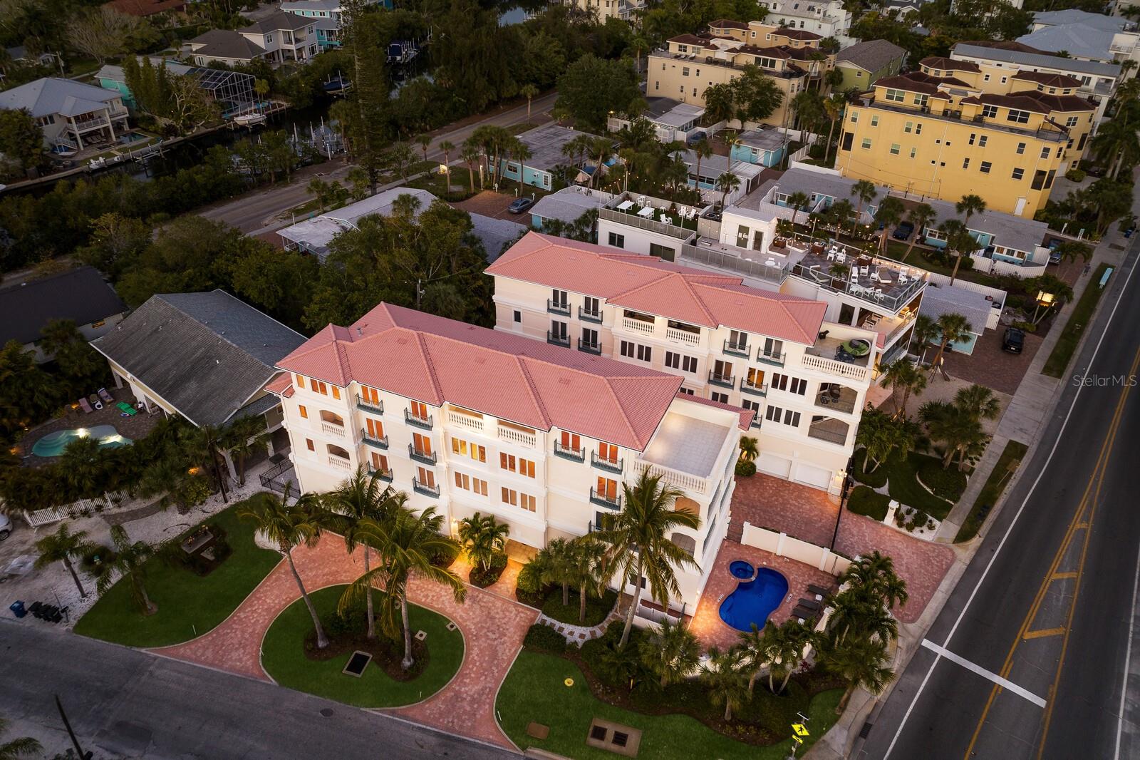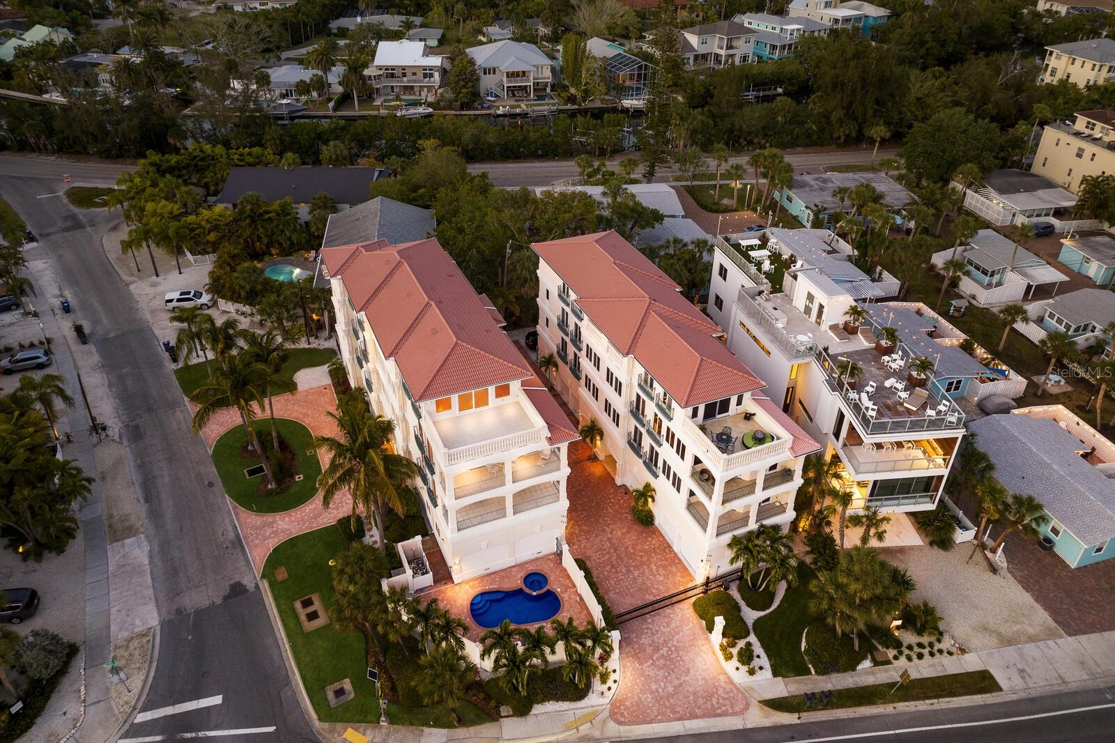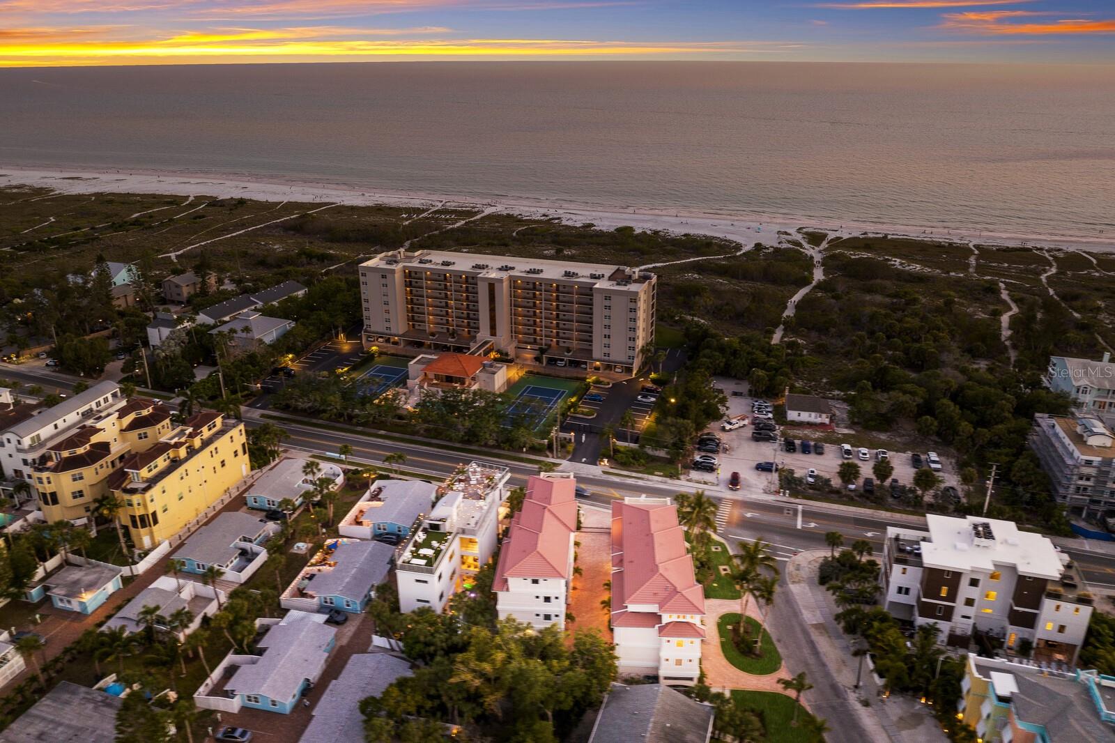 One or more photo(s) has been virtually staged. Nestled in the heart of Siesta Key village, this breathtaking two story penthouse offers a lavish retreat boasting 4,646 square feet of luxurious living space. With four opulent bedrooms, this residence provides ample space for relaxation and entertainment .As you step inside, you're greeted by an expansive interior adorned with elegant finishes and meticulous attention to detail. The top floor of the unit features and amazing primary suite with gas fireplace and a huge bonus room with a wet bar and immense patio, offering panoramic views of the Gulf of Mexico and the pristine beach below. Imagine savoring the vibrant hues of sunsets casting their golden glow over the tranquil waters from the comfort of your own private oasis. This exclusive residence boasts direct beach access, allowing you to indulge in the laid-back coastal lifestyle effortlessly. Just steps away from the sugary sands, you can immerse yourself in the warm embrace of the sun and the soothing sounds of the waves. For those seeking the perfect blend of convenience and leisure, Siesta Village's charming shops and delectable dining options are within easy reach. Whether you're strolling along the quaint streets or savoring a delicious meal at a local restaurant, the vibrant energy of the village awaits. A truly unique six-car garage provides ample space for your vehicles and watercraft. Additionally, residents can enjoy the community pool, perfect for unwinding with a refreshing swim amidst lush tropical surroundings. Convenience meets sophistication with a private elevator whisking you to the top two floors of the building, where serenity and panoramic views await. Whether you're hosting a soirée or simply enjoying a quiet evening at home, this condo offers the perfect backdrop for every occasion.