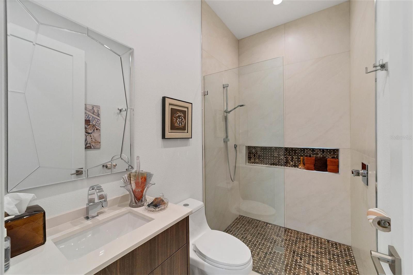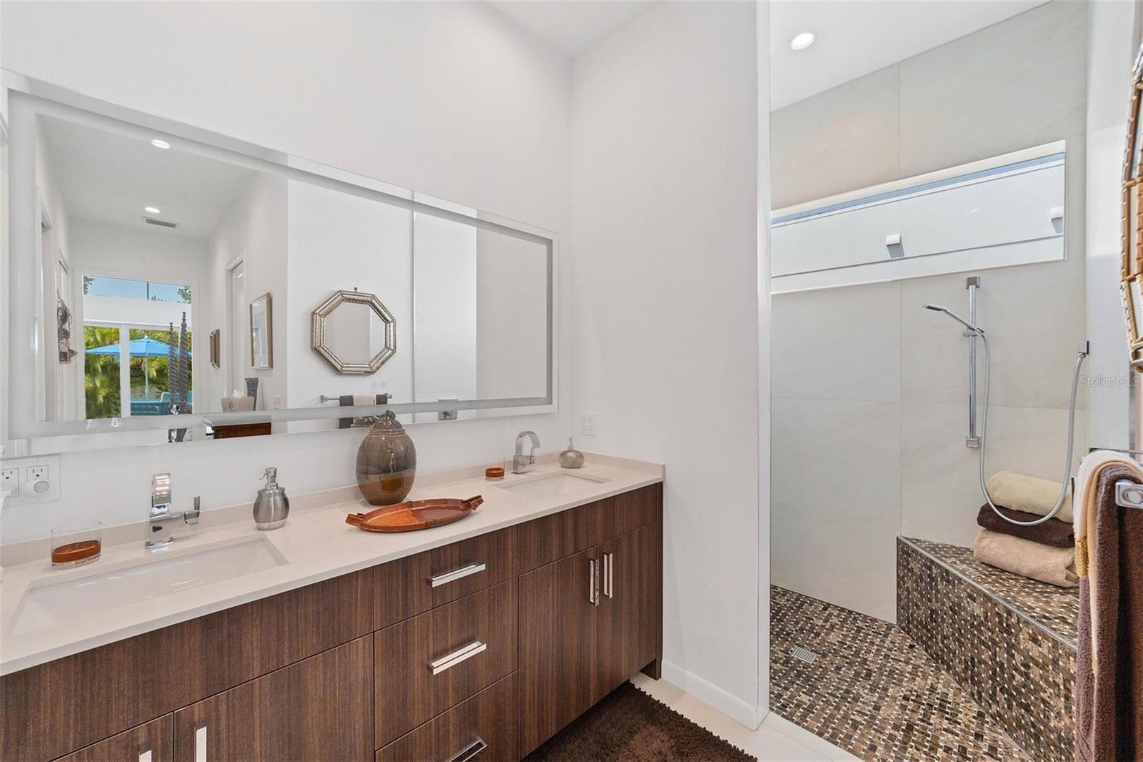 Price improvement reflects price to add a swimming pool. This Courtyard Modern home was designed and built by the current owner. The list of construction as well as designer upgrades is quite extensive. This is not a spec house. It’s a great alternative to condo. A low maintenance, hurricane-rated residence. Easy to care for, newer construction and a convenient location. The garden consists of tropical plants, hardscaping with crushed stone as well as concrete slabs for dining and sunbathing. It also features an oversized saltwater spa complete with waterfall and iridescent mosaic tiles. The outdoor kitchen is situated off the covered terrace and has an artist designed backdrop. The front courtyard with privacy wall and obscure glass gate add to the beauty of this home. You enter through ths courtyard to the ever popular great room design complete with 3 full bedrooms, an office and 2 baths. Contemporary features throughout the residence include high ceilings with led lights, modern cabinetry, quartz counters, mosaic glass tiles, porcelain floors and more. The soaring ceilings are balanced with several transom windows for architectural detailing as well as natural light. The clean, crisp design is accented by white cabinets, floors and walls. The owner has added smart home features, a whole house generator and all windows/doors are hurricane rated. This meticously maintained home is ready for a new owner. This modern space is walking distance to Southside Village…complete with Morton’s gourmet market, coffee shops, dining and boutiques. It’s just minutes to downtown Sarasota, with its lively array of restaurants, performing arts venues, galleries, boutiques, citywide cultural events and a bustling farmer’s market. A short drive away are St. Armand’s Circle, as well as the internationally known beaches of Lido Key and Siesta Key. Do not miss out on this premier residence in an unbeatable location!