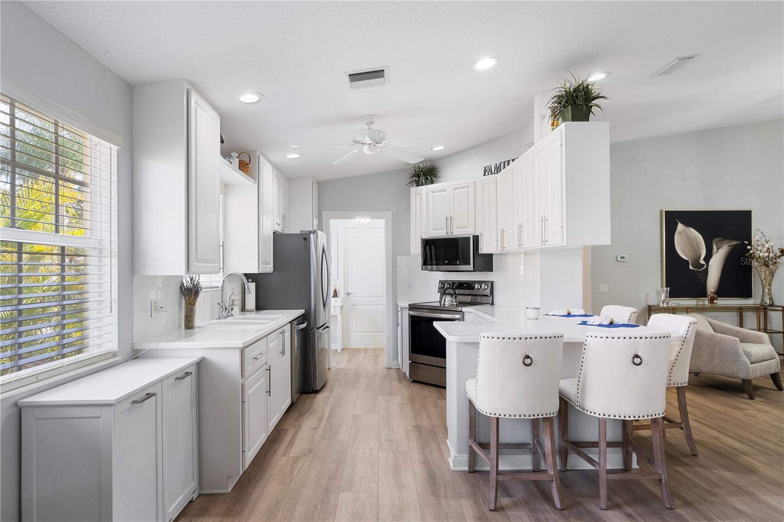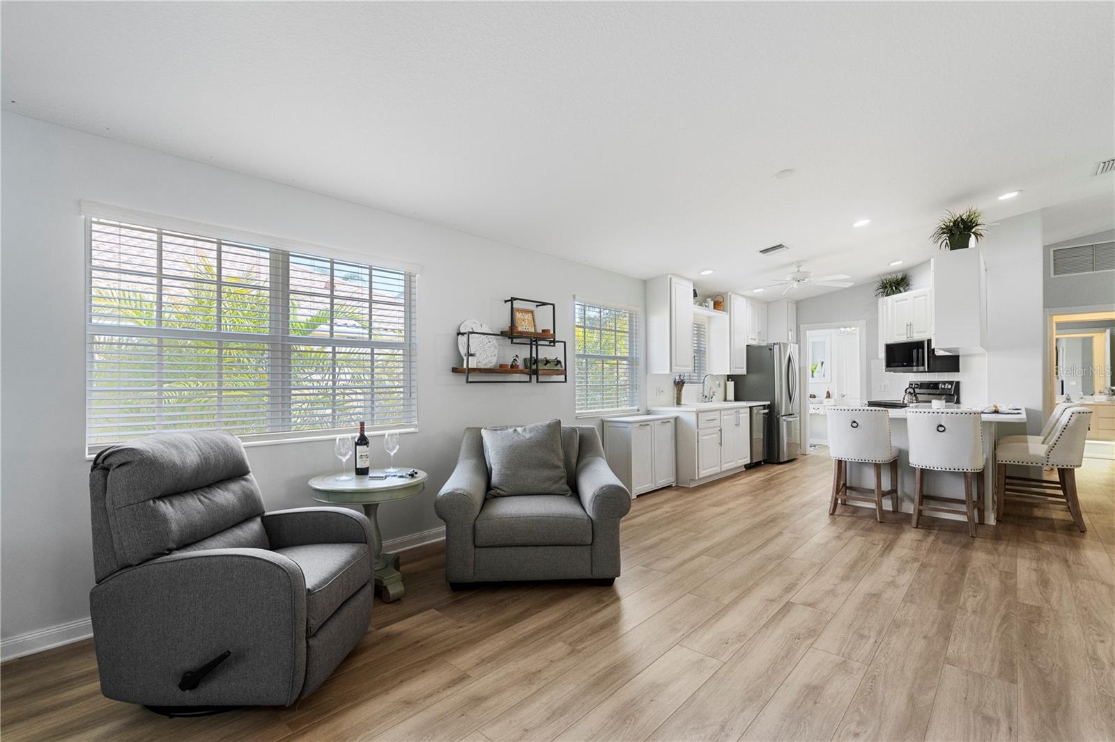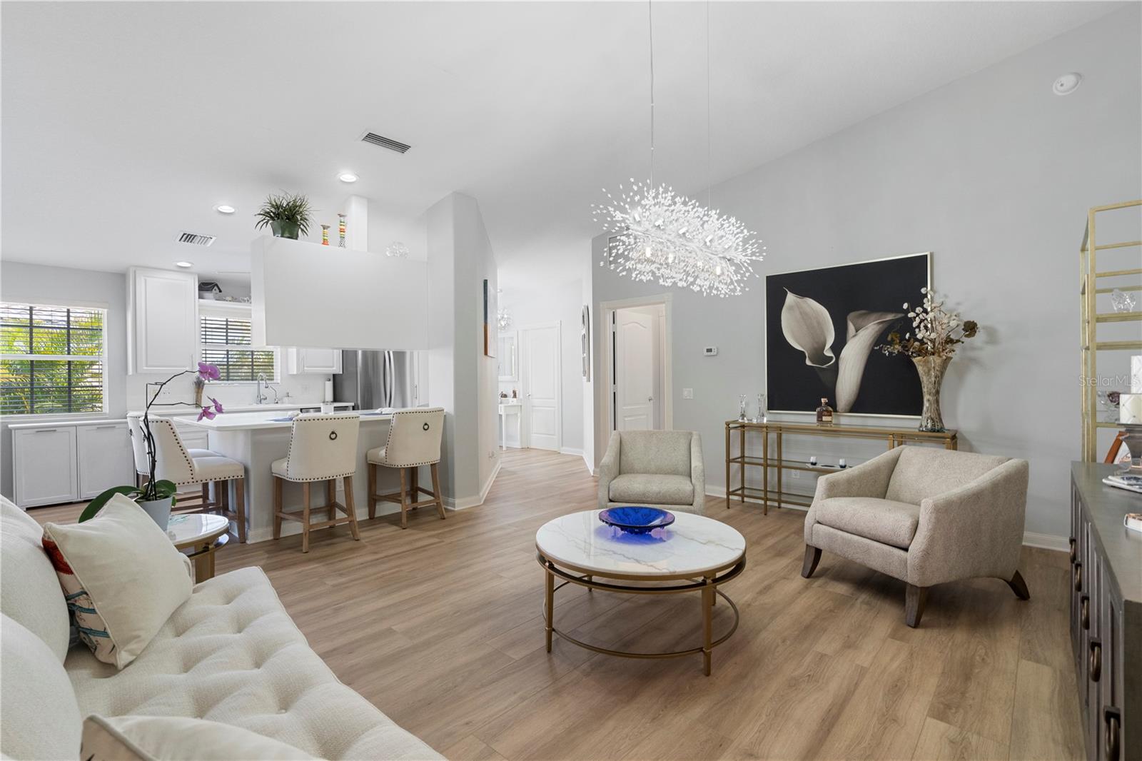 NO ISSUES FROM PREVIOUS STORM!! Beautifully remodeled 2 bedroom 2 bathroom Capri model now available in VillageWalk of Sarasota! This home has it all; brand new luxury vinyl floors throughout the home, NEW STAINLESS STEEL APPLIANCES, remote controlled privacy shades on all the sliders, new blinds on all the windows, fresh new landscaping, extended walkway on the side of the property, AND a newer AC unit! This property has been meticulously maintained and is now ready to be yours today! VillageWalk is an amenity-rich resort style community with low HOA fees that is located 20 minutes from Siesta Key beaches and St Armands circle. Other amenities in this community include a resort-style pool, a lap pool, tennis courts, pickle ball, bocce court, basketball, fitness center, clubhouse with a library, cafe and gas pumps on site! Schedule your private showings today! Agents see remarks
