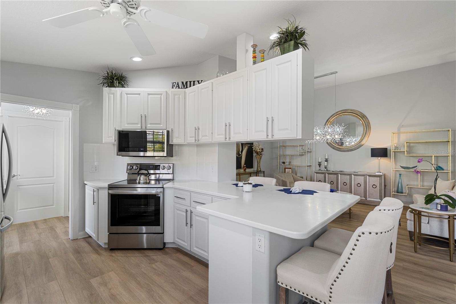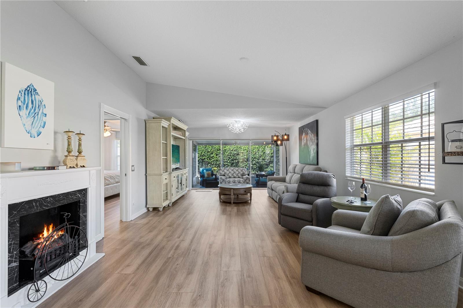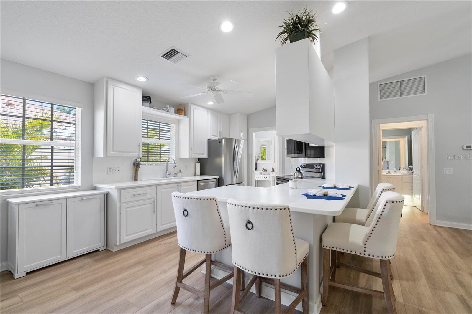 NO ISSUES FROM PREVIOUS STORM!! Beautifully remodeled 2 bedroom 2 bathroom Capri model now available in VillageWalk of Sarasota! This home has it all; brand new luxury vinyl floors throughout the home, NEW STAINLESS STEEL APPLIANCES, remote controlled privacy shades on all the sliders, new blinds on all the windows, fresh new landscaping, extended walkway on the side of the property, AND a newer AC unit! This property has been meticulously maintained and is now ready to be yours today! VillageWalk is an amenity-rich resort style community with low HOA fees that is located 20 minutes from Siesta Key beaches and St Armands circle. Other amenities in this community include a resort-style pool, a lap pool, tennis courts, pickle ball, bocce court, basketball, fitness center, clubhouse with a library, cafe and gas pumps on site! Schedule your private showings today! Agents see remarks