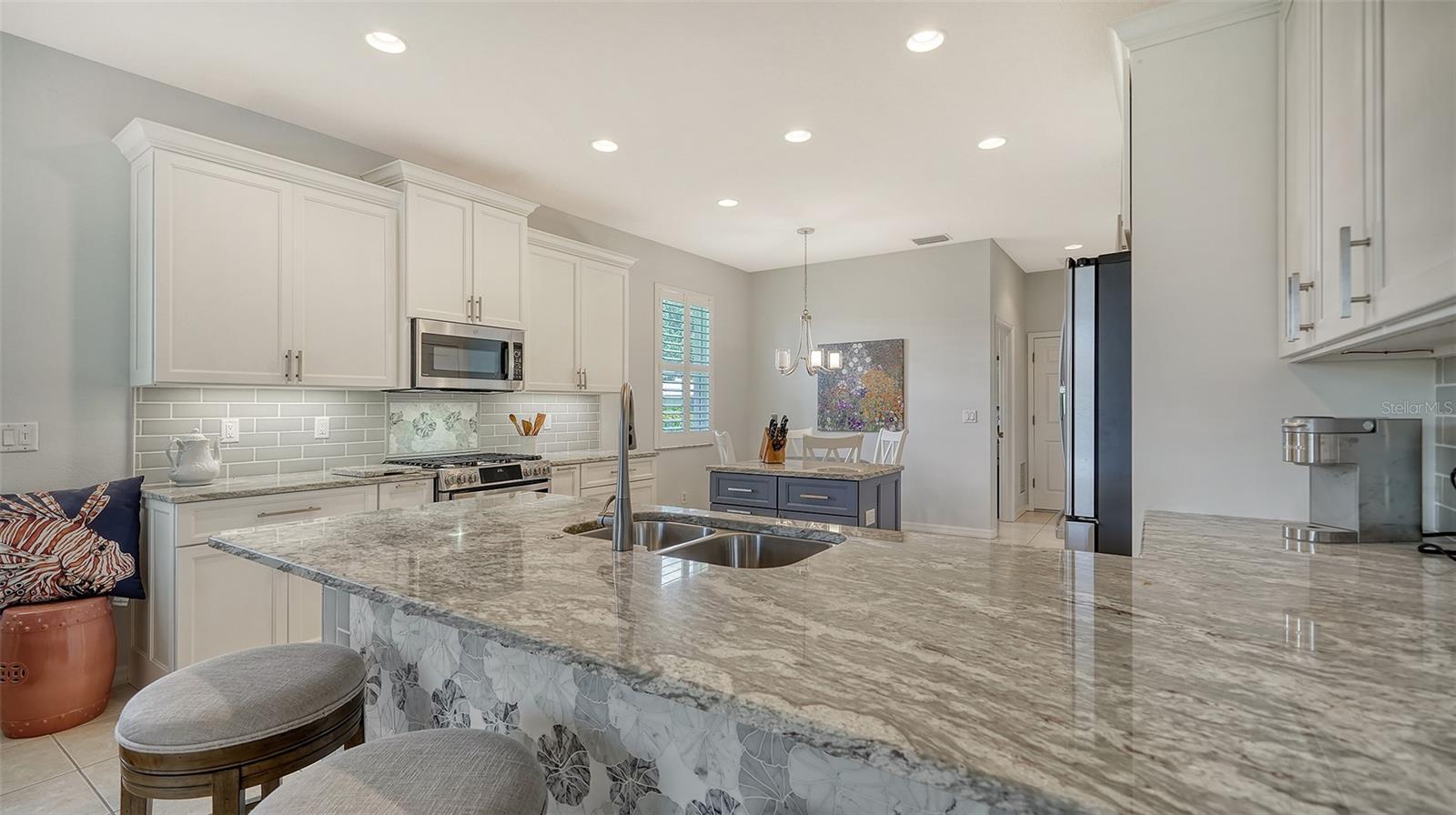 Welcome to your dream home in the prestigious Palmer Ranch community of The Hamptons! This completely renovated 4-bedroom, 2-bathroom residence offers serene pond views in a peaceful neighborhood, perfect for those seeking tranquility and elegance. Palmer Ranch of Sarasota, FL is a community of over 90 subdivisions. Located south of Clark Rd, and covering approximately 60 square miles between the I-75 and Tamiami Trail, Palmer Ranch is called home by over 20,000 residents. Located just minutes from the county’s renowned beaches, cultural, business and civic centers, the Hamptons is home to 188 residents. From the moment you arrive, the home's excellent curb appeal will captivate you. The leaded glass doors open to a beautifully updated and spacious interior where no expense has been spared. The entire house has undergone meticulous renovations, including all bathrooms, kitchen, appliances, flooring, and countertops. The kitchen, updated in 2021, features top-of-the-line appliances and exquisite granite countertops, while the master bathroom, renovated in 2023, boasts luxurious quartz counters and modern fixtures. This home is not only aesthetically pleasing but also highly functional. The cement tile roof, hurricane shutters for every window, door, and slider, and plantation shutters throughout ensure safety and comfort. Additional features include a utility sink in the laundry room, extra storage above the garage, and a sprinkler system that uses reclaimed water. The kitchen is a chef’s delight with its custom tile-finished bar seating area and beautiful backsplash. The completely remodeled bathrooms feature updated tile showers, high-end mirrors, and upgraded fixtures, offering a spa-like experience at home. The master closet and kitchen pantry, expertly built out by California Closets, provide ample storage space. Residents of the Hamptons enjoy a community heated pool and easy access to a wealth of amenities, including shopping, dining, parks, and schools. The Legacy Trail, quick access to I-75, downtown Sarasota, and the world-famous Siesta Key Beach are all within reach, making this location truly unbeatable. This home is ideal for both vacation and year-round living, offering great views and outdoor space in a quiet and serene setting. With a new AC and heating system installed in 2021, a tankless water heater, and natural gas stove, AC unit, and dryer, this house is not only beautiful but also energy-efficient and reliable. Importantly, the house has never flooded, providing peace of mind for the future. Move in and start enjoying the year-round paradise that is Florida's Gulf Coast. This home presents an incredible opportunity to live in luxury and comfort in one of the most sought-after areas of Palmer Ranch.