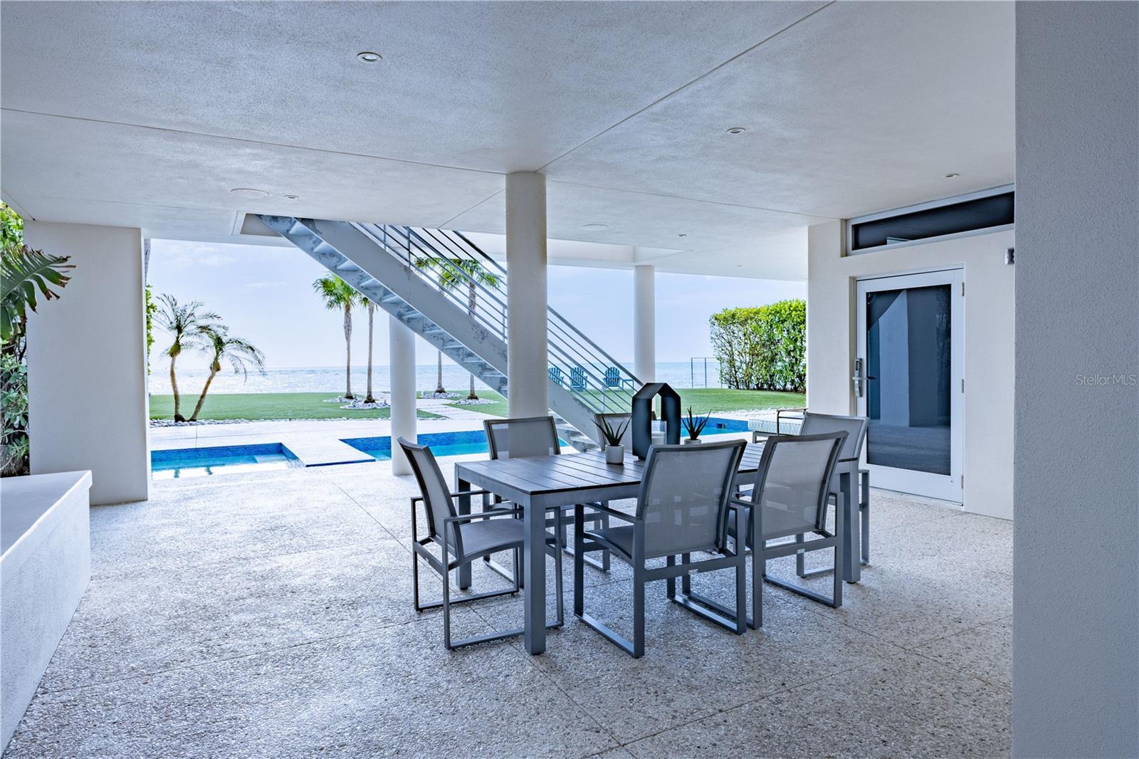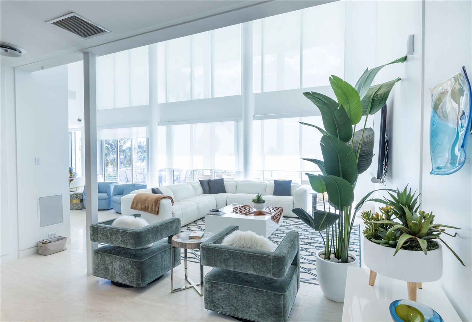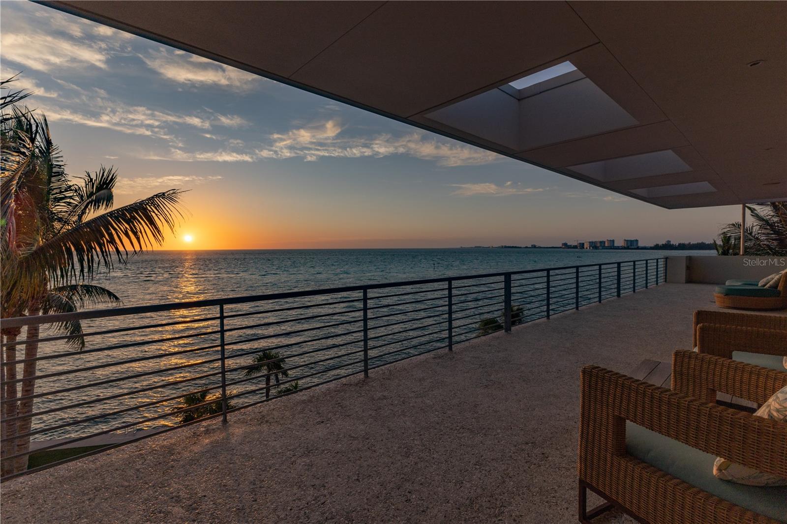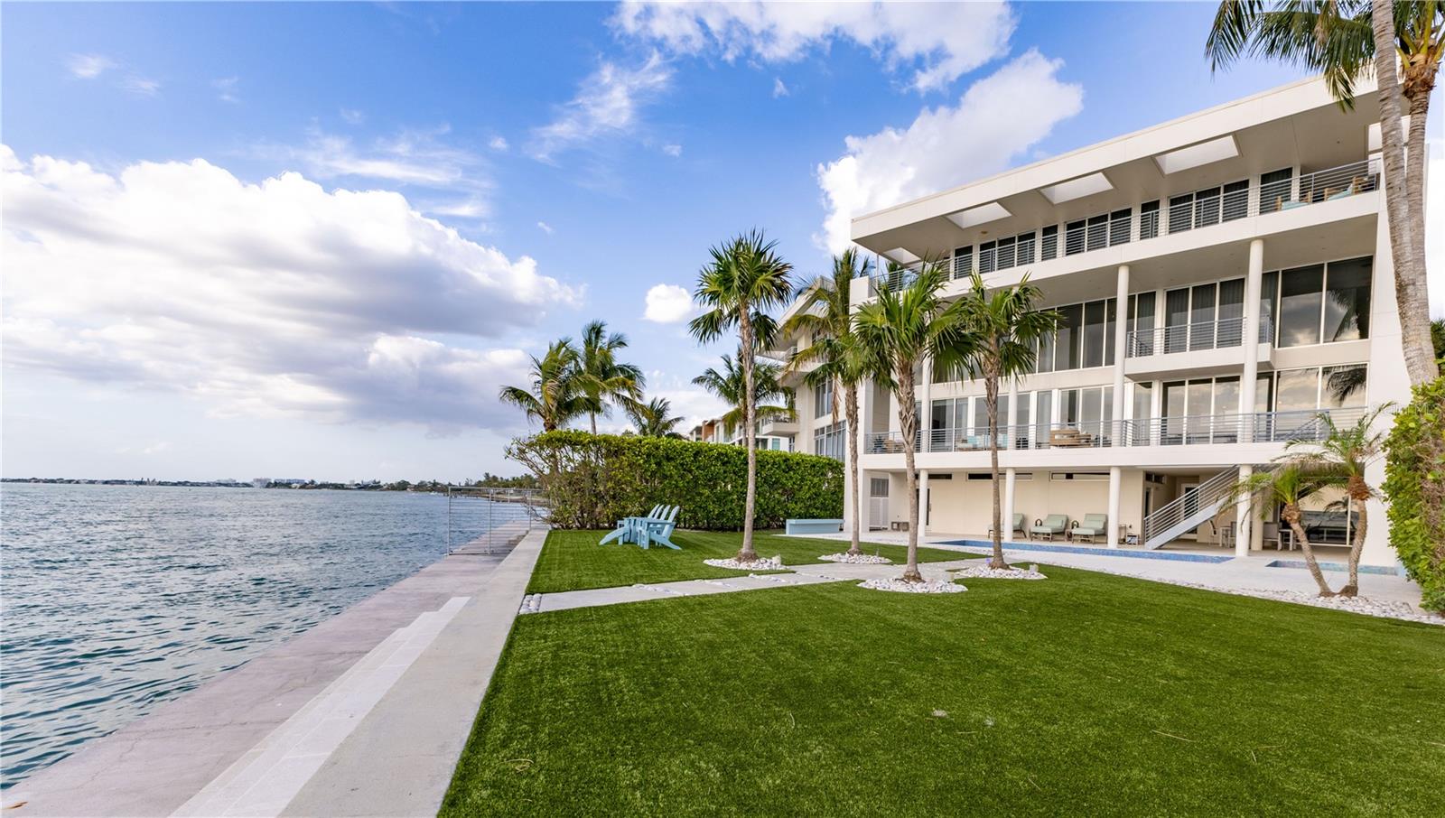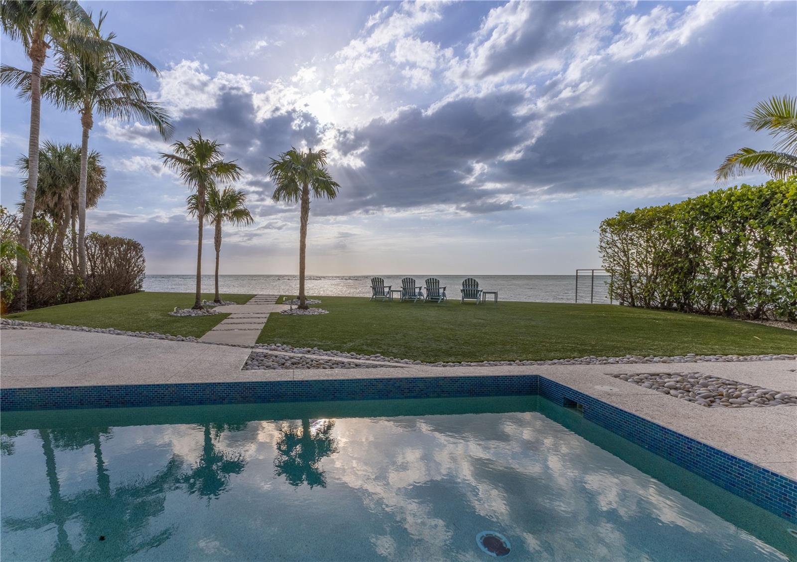 This is a rare opportunity to own a Siesta Key modern gem directly on Big Pass with panoramic sunset views of the Gulf of Mexico. Enjoy the expert design work of renowned Architect, Guy Peterson, executed with master craftsmanship in this 4 bedroom, 4.5 bath home in a private, gated enclave of two modern masterpieces just steps to Siesta Key Village. Each room enjoys unmatched, panoramic views of the blue waters of the Gulf of Mexico by day and unbeatable sunsets and sparkling lights of the Lido Key skyline in the evenings. Enjoy a fisherman's paradise from the expansive 89 feet of gulf front reinforced seawall or just relax and enjoy the daily show of dolphins and manatees. Located on a beautiful oceeanfront lot of over 11,000 sf which is secured by a private gate, walls and fencing. A custom water fall, large jacuzzi and dramatic pool create an oasis for relaxing and enjoying all the beauty Siesta Key has to offer. A three (3) car climate controlled garage offers plenty of additional space for convertibles, golf carts and bikes fitting the relaxed island life. Potential investment opportunities as a short term weekly rental or venue due to special zoning as RMF3 - RESIDENTIAL, MULTI-FAMILY. This location does not carry many of the rental restrictions for other properties on Siesta Key. You can own this home as your own piece of paradise and make rental income at the same time. The home features worlds of outdoor living space including a large Gulf front lawn and expansive walkways surrounding a luscious and inviting pool and spa. Enjoy the outdoors in any weather on the large, covered patios, perfect for grilling come rain or shine. Enter on the ground level to the sounds of a tranquil circulating pool that sets the tone of the entire home. Upstairs via steps or an elevator, you'll enjoy breathtaking, sweeping views of the Gulf and Big Pass, wide open living space with wood floors and a Gourmet Kitchen featuring high-end stainless-steel appliances like the Miele 6 burner gas stove, Miele oven, Sub-Zero refrigerator and sleek, Italian cabinetry. There's a wonderful wet bar and fireplace for at home entertaining. The Owner's Retreat encompasses the top floor with a full-length balcony and wraparound views. This amazing retreat offers privacy and sophistication coupled with proximity to the hum of Siesta Key Village when you're in the mood to socialize. Located just north of Siesta Key Village with a short walk to all of the fun restaurants and amenities. Listing Broker is also the owner of the property.