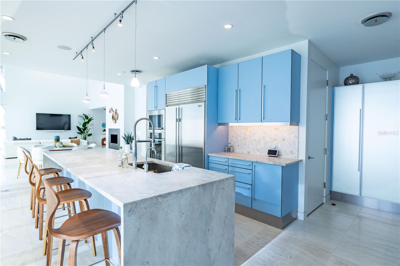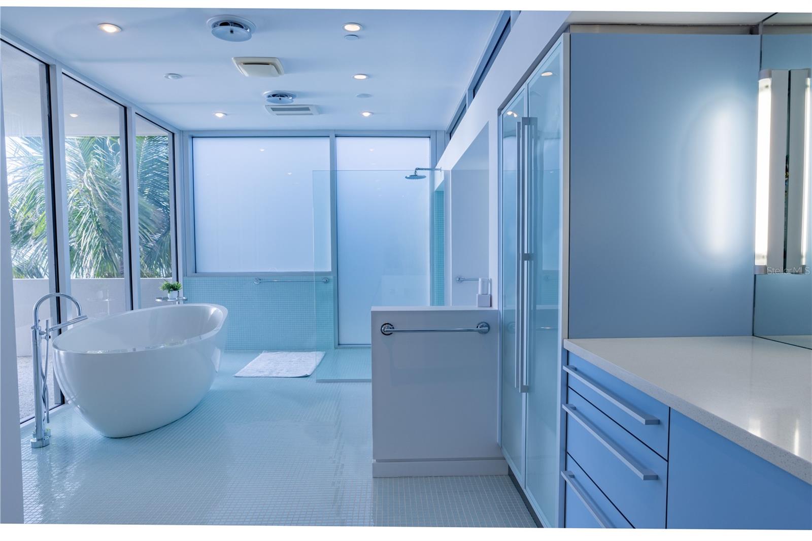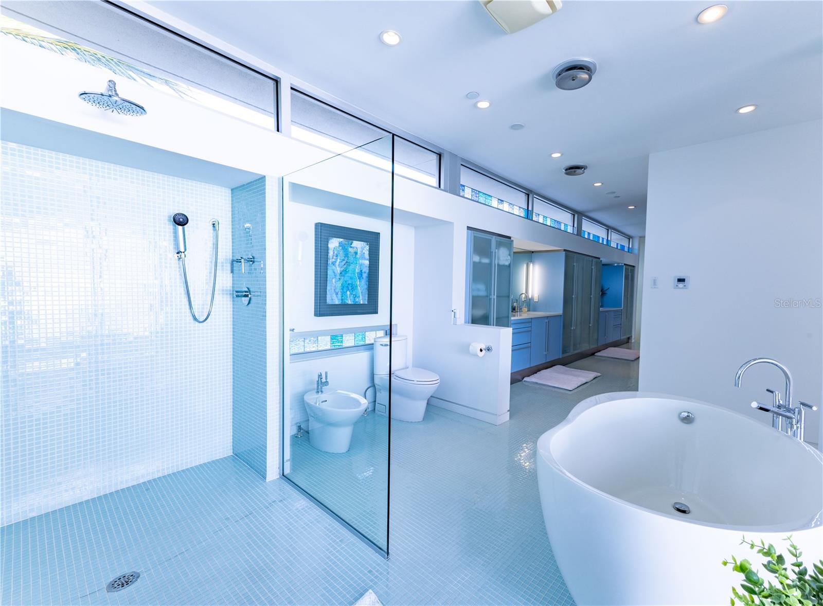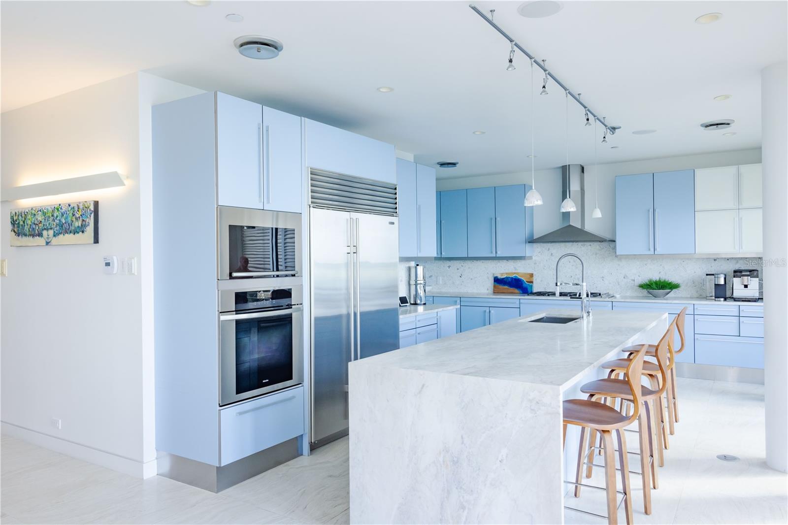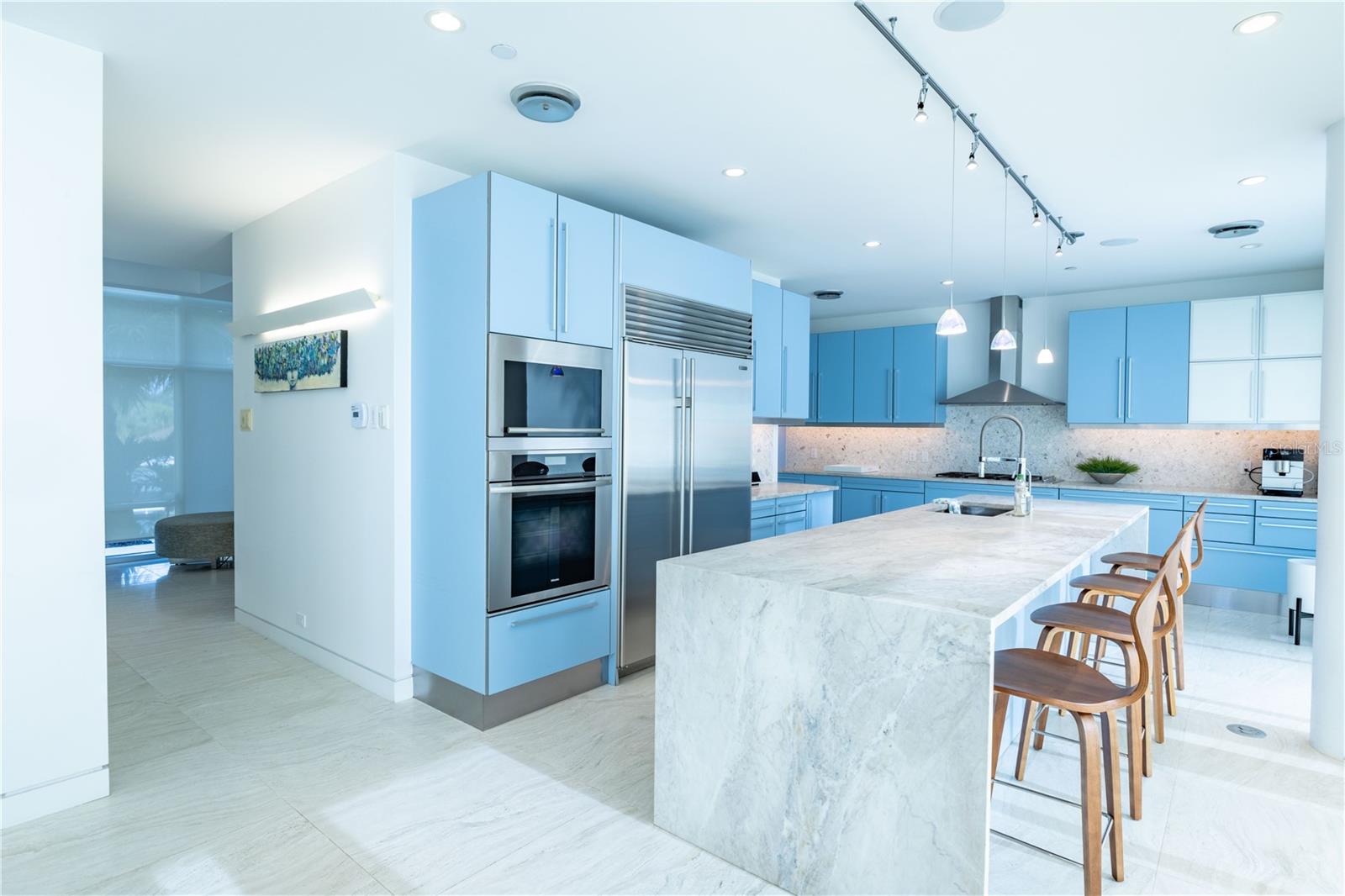 This is a rare opportunity to own a Siesta Key modern gem directly on Big Pass with panoramic sunset views of the Gulf of Mexico. Enjoy the expert design work of renowned Architect, Guy Peterson, executed with master craftsmanship in this 4 bedroom, 4.5 bath home in a private, gated enclave of two modern masterpieces just steps to Siesta Key Village. Each room enjoys unmatched, panoramic views of the blue waters of the Gulf of Mexico by day and unbeatable sunsets and sparkling lights of the Lido Key skyline in the evenings. Enjoy a fisherman's paradise from the expansive 89 feet of gulf front reinforced seawall or just relax and enjoy the daily show of dolphins and manatees. Located on a beautiful oceeanfront lot of over 11,000 sf which is secured by a private gate, walls and fencing. A custom water fall, large jacuzzi and dramatic pool create an oasis for relaxing and enjoying all the beauty Siesta Key has to offer. A three (3) car climate controlled garage offers plenty of additional space for convertibles, golf carts and bikes fitting the relaxed island life. Potential investment opportunities as a short term weekly rental or venue due to special zoning as RMF3 - RESIDENTIAL, MULTI-FAMILY. This location does not carry many of the rental restrictions for other properties on Siesta Key. You can own this home as your own piece of paradise and make rental income at the same time. The home features worlds of outdoor living space including a large Gulf front lawn and expansive walkways surrounding a luscious and inviting pool and spa. Enjoy the outdoors in any weather on the large, covered patios, perfect for grilling come rain or shine. Enter on the ground level to the sounds of a tranquil circulating pool that sets the tone of the entire home. Upstairs via steps or an elevator, you'll enjoy breathtaking, sweeping views of the Gulf and Big Pass, wide open living space with wood floors and a Gourmet Kitchen featuring high-end stainless-steel appliances like the Miele 6 burner gas stove, Miele oven, Sub-Zero refrigerator and sleek, Italian cabinetry. There's a wonderful wet bar and fireplace for at home entertaining. The Owner's Retreat encompasses the top floor with a full-length balcony and wraparound views. This amazing retreat offers privacy and sophistication coupled with proximity to the hum of Siesta Key Village when you're in the mood to socialize. Located just north of Siesta Key Village with a short walk to all of the fun restaurants and amenities. Listing Broker is also the owner of the property.