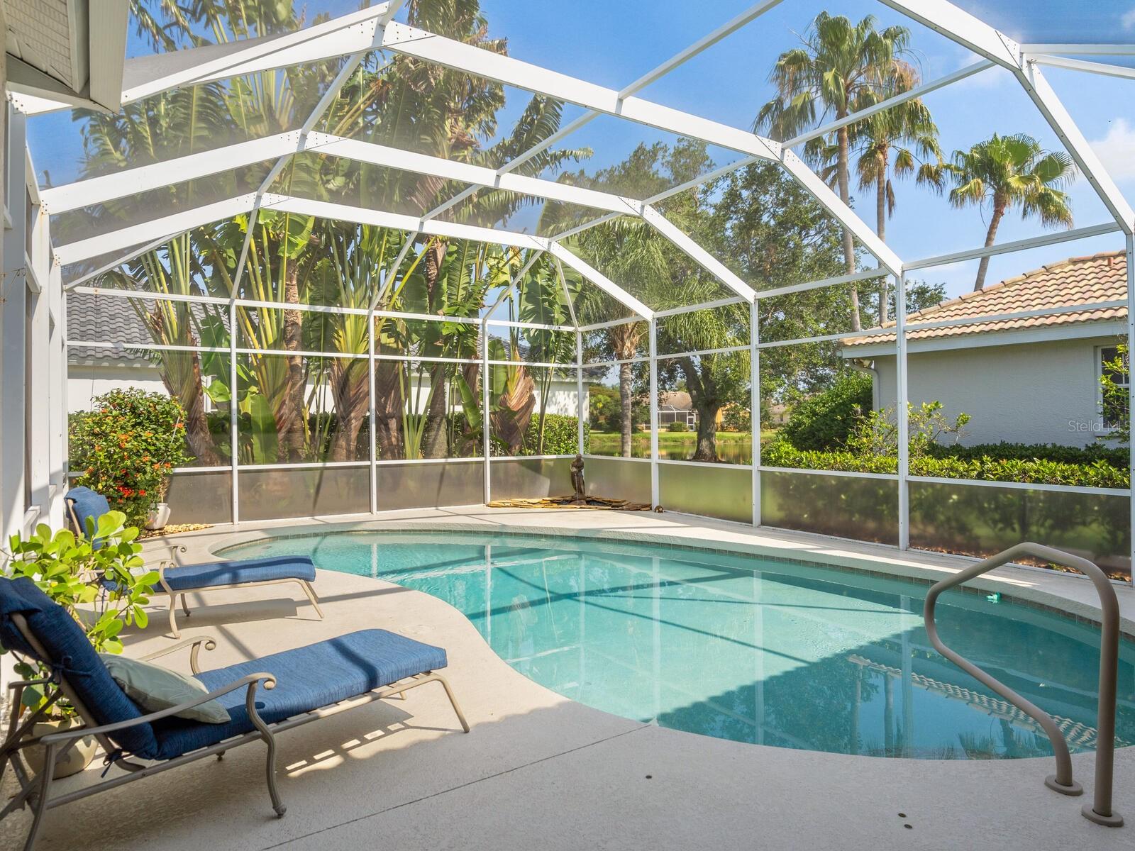 Visit this lovely pool home in Turtle Rock at the heart of Palmer Ranch today! You will be welcomed by a comfortable Living/Dining Room, updated eat in kitchen with breakfast bar off the Family Room. The primary bedroom is blessed with En Suite bathroom, having a Hydro tub and separate shower. There are two guest bedrooms plus you will find a generous office/den. A large landscaped yard surrounds the inviting pool with lakeview. New roof being installed at seller's expense. Let's not leave out the incredibly beautiful community of Turtle Rock with its numerous lakes, nature preserves, mature trees, bike lanes and 9 miles of scenic walking trails. The Community is also blessed with a geothermal heated pool, newly renovated Clubhouse, tennis and pickleball courts and a very active social calendar should you wish to participate. Entry is through the north and south security guarded gates 24/7. Shopping, entertainment, restaurants, YMCA, beaches and the Legacy Trail (downtown Sarasota to Venice) are all right here. Excellent schools. All furnishings available. This would be a wonderful home base to engage in the Florida lifestyle.