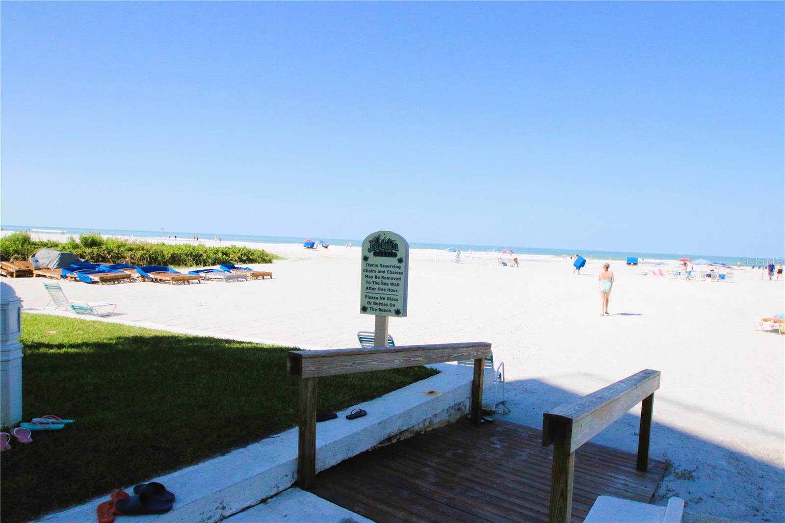 Rarely available updated 2 bedroom/2 bath income producing Siesta Key gem! Turnkey ready for occupancy as your own island lifestyle retreat or a lucrative rental investment. Its perfectly located on the beach/gulf side. Going out the back door takes you to a private path to stroll directly to Jamaica Royale’s exclusive Siesta Key beach entrance where you can soak up the sun, bask in the warm waters of the Gulf or take in the beauty of the Siesta Key sunsets. The complex has 3 heated pools, shuffleboard, gas grills, tiki huts and lots of green space to relax and enjoy the key life style. Your private patio serves to further enhance the Siesta Key experience where you can dine or unwind after a day on the beach. Inside is light and bright with a flowing open floor plan that boasts modern coastal style with distressed driftwood furniture, wood plantation blinds throughout, all wood beveled shaker cabinets, sparkling quartz countertop with a mosaic backsplash, newer appliances and country ash luxury vinyl flooring. Bathrooms have been remodeled with new tile showers, pendant lighting and fixtures. The unit is equipped with a full size in unit washer and dryer. To add to the convenience is the two deeded carport parking spaces right outside the front door so no parking hassle. In addition to being down the path from the #1 Beach, you are a couple miles from Siesta Key village shopping, dining & entertainment. Downtown Sarasota, St Armands Circle, University Town Center are just a short car ride away. With reservations in place for the summer and upcoming season, you can self manage or there is an onsite management team that can make your vacation rental ownership experience profitable & trouble free. Check out this great opportunity to own the island lifestyle.