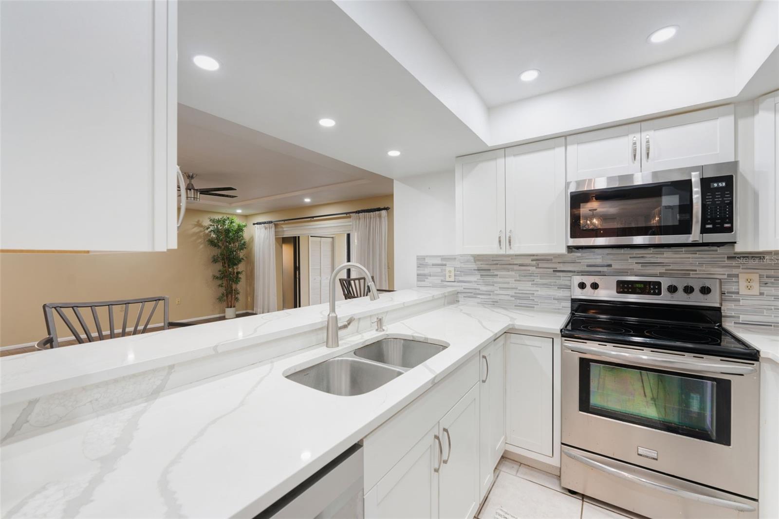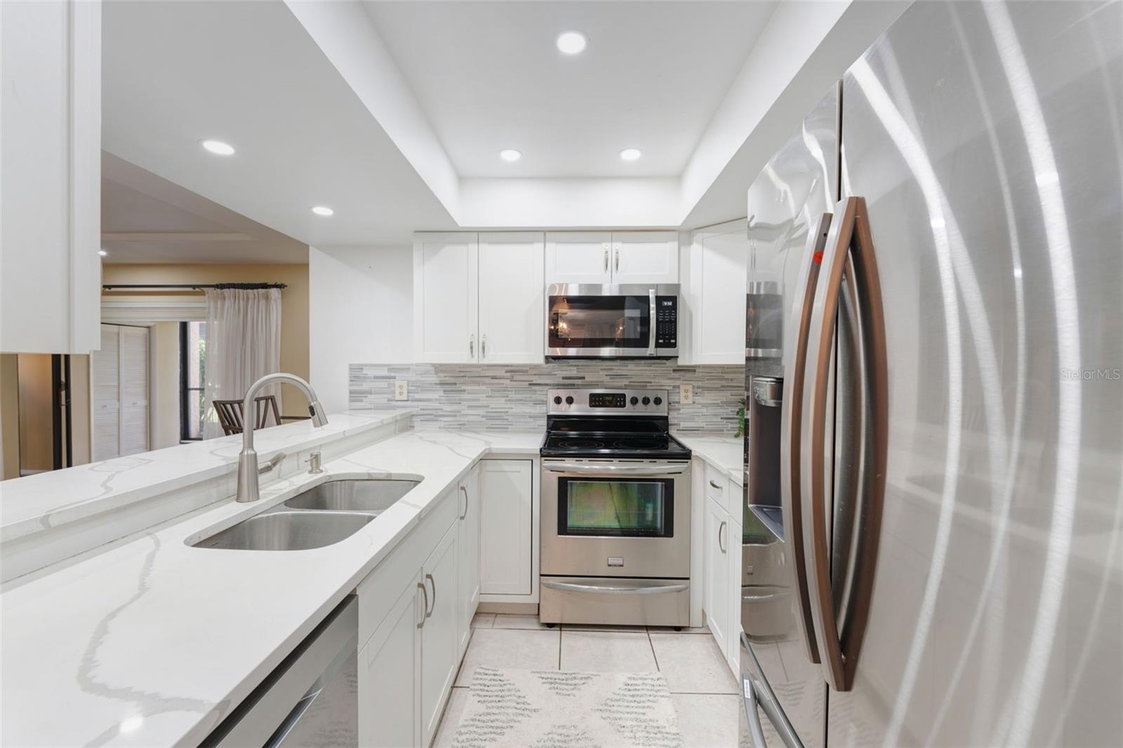 Welcome to the serene Terraces of Forest Lakes! Discover the epitome of modern comfort in this beautifully updated two-bedroom, two-bathroom condo at 2347 Beneva Ter #2251. Boasting recently updated kitchen cabinets, pristine quartz countertops, and sleek ceramic tile flooring, this home offers a luxurious living experience. The home is complete with stainless steel appliances and a full size washer/dryer set. Enjoy the fresh, contemporary feel provided by the removal of popcorn ceilings, stylish recessed lighting, and chic new ceiling fans. The sun-drenched enclosed lanai creates an inviting atmosphere for relaxation or entertaining. Located just moments from downtown Sarasota, this condo offers unparalleled access to stunning beaches, vibrant shopping, the Arts District, and the Legacy Trail. The low HOA fees ensures hassle-free living by covering water, trash, maintenance exterior, cable tv & landscaping, allowing you more time to enjoy your new home and wonderful surroundings.