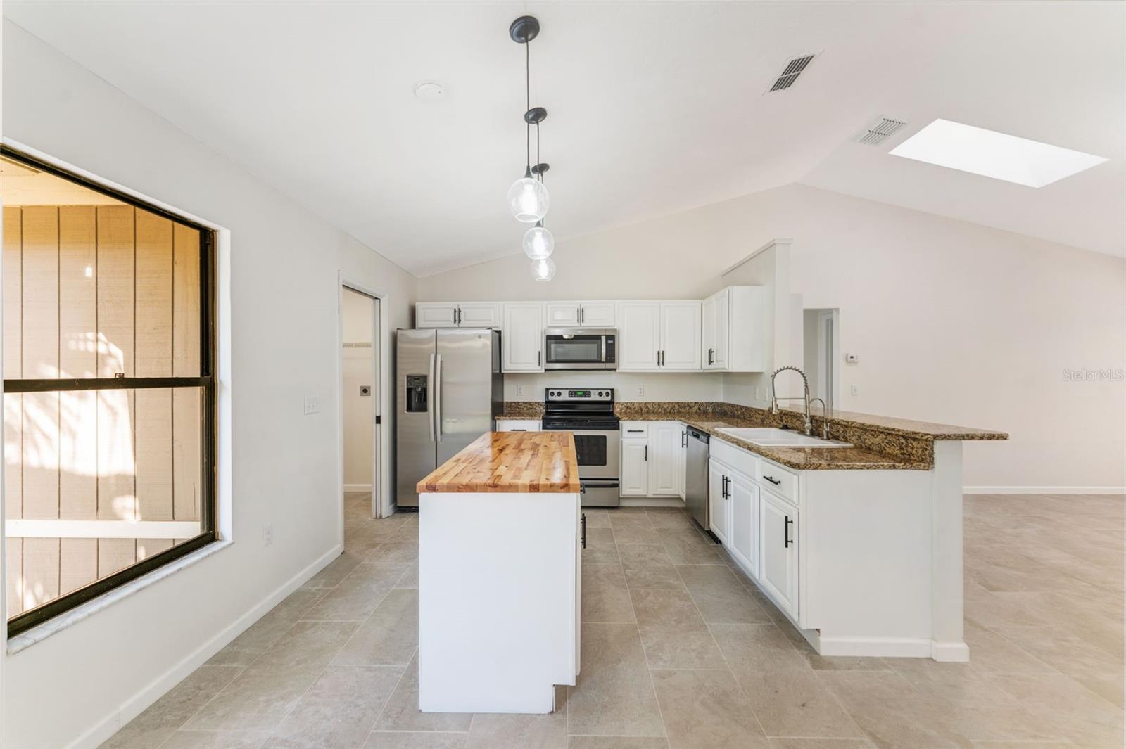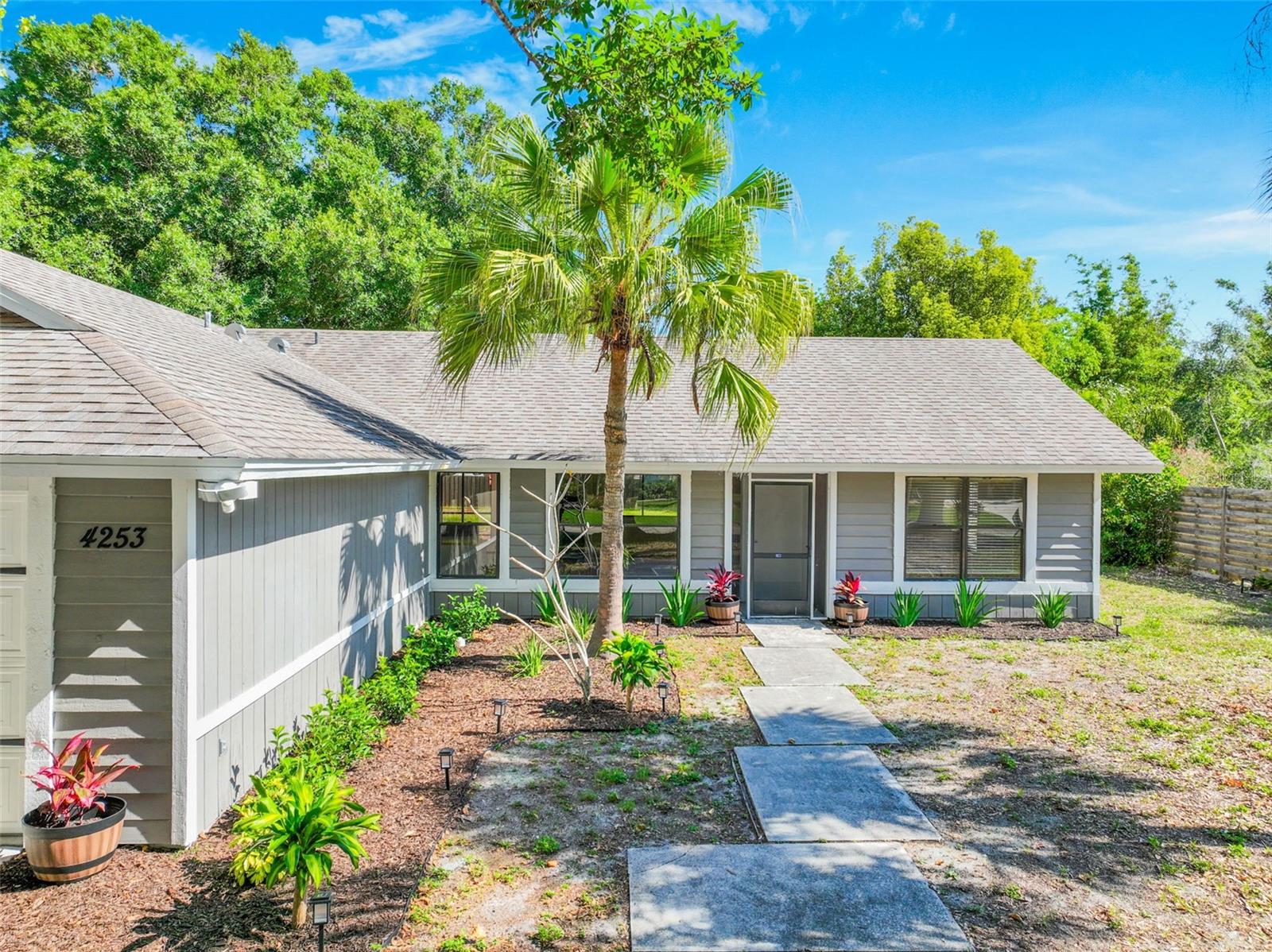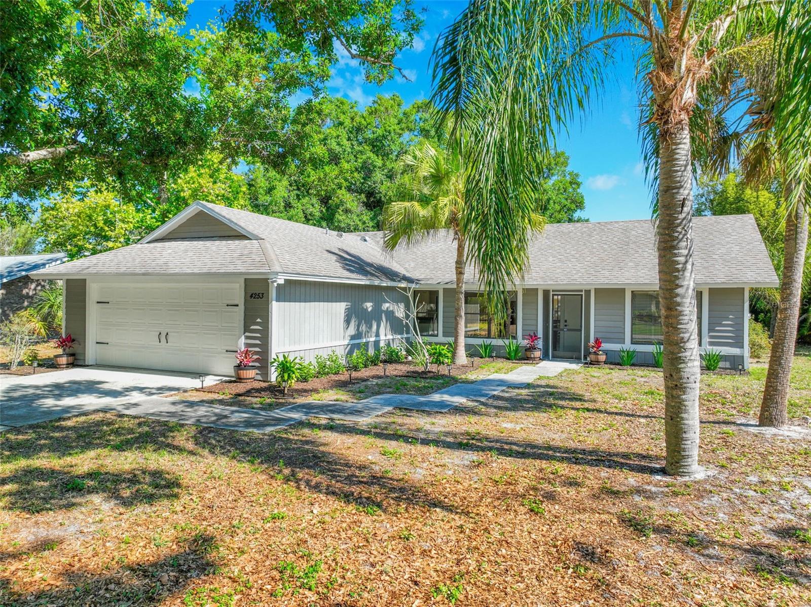 Welcome to your dream home at 4253 Prairie View Dr S, Sarasota, FL – where modern updates meet spacious comfort in a serene setting. This beauty sits on a generous .51-acre lot, with room to add a large pool, ensuring peaceful living. Boasting a bright and open layout with a lofty vaulted ceiling accented by skylights, this home is designed to bask in natural light. The heart of this house is its vibrant kitchen, featuring a breakfast bar, sleek granite countertops, and an island with a charming butcher block top - perfect for the inspired home chef. Large windows and a wall of sliders blend indoor comfort with outdoor relaxation on your lanai, adorned with exquisite Spanish tiles. This move-in-ready home offers 3 generous-sized bedrooms and 2 baths, including an en suite with an extended tiled shower under a skylight. The floorplan thoughtfully separates bedrooms for privacy, and the living space is warmed by a cozy wood-burning fireplace. 15"x13" tiles can be found throughout the home. Another bonus is the extra space with the extended garage. Centrally located, this property offers the best of Sarasota’s lifestyle, with easy access to top-rated schools, dining, shopping, and pristine beaches. This home isn’t just a place to live; it's a haven for making memories that last a lifetime.