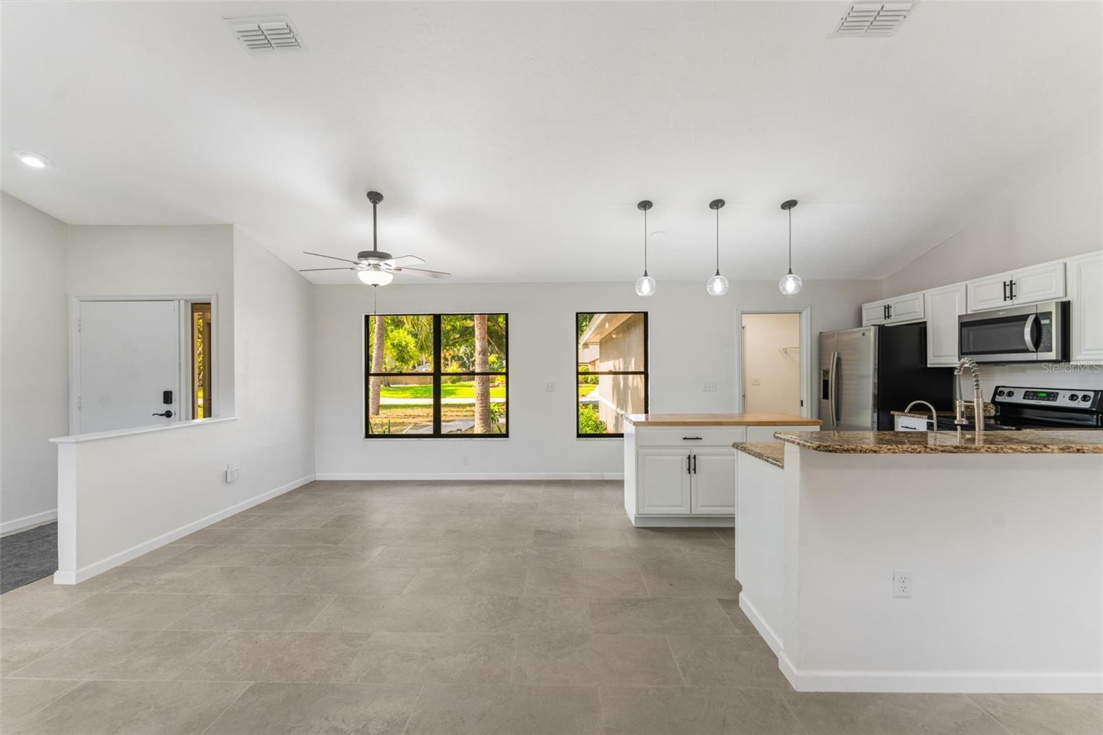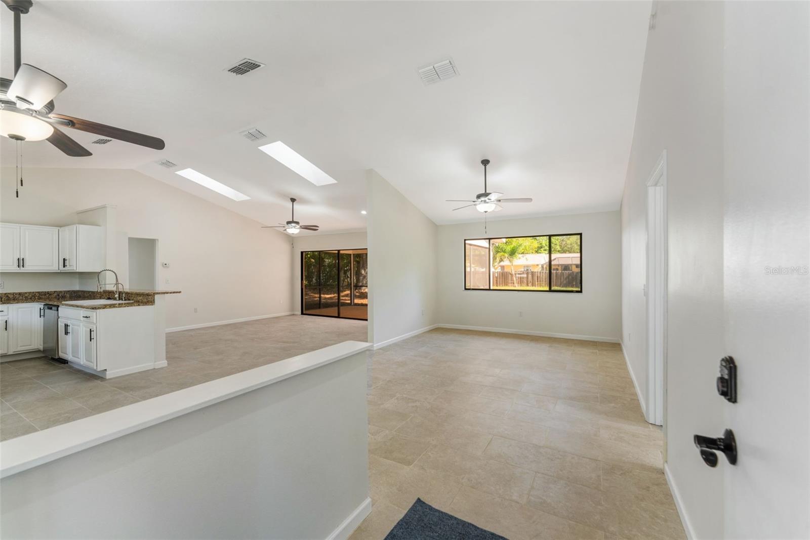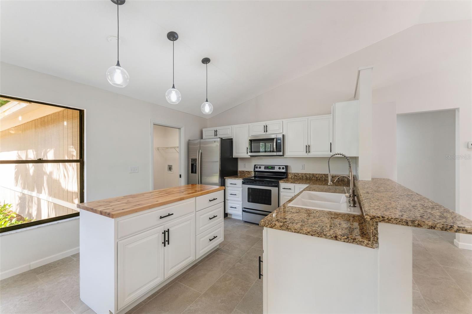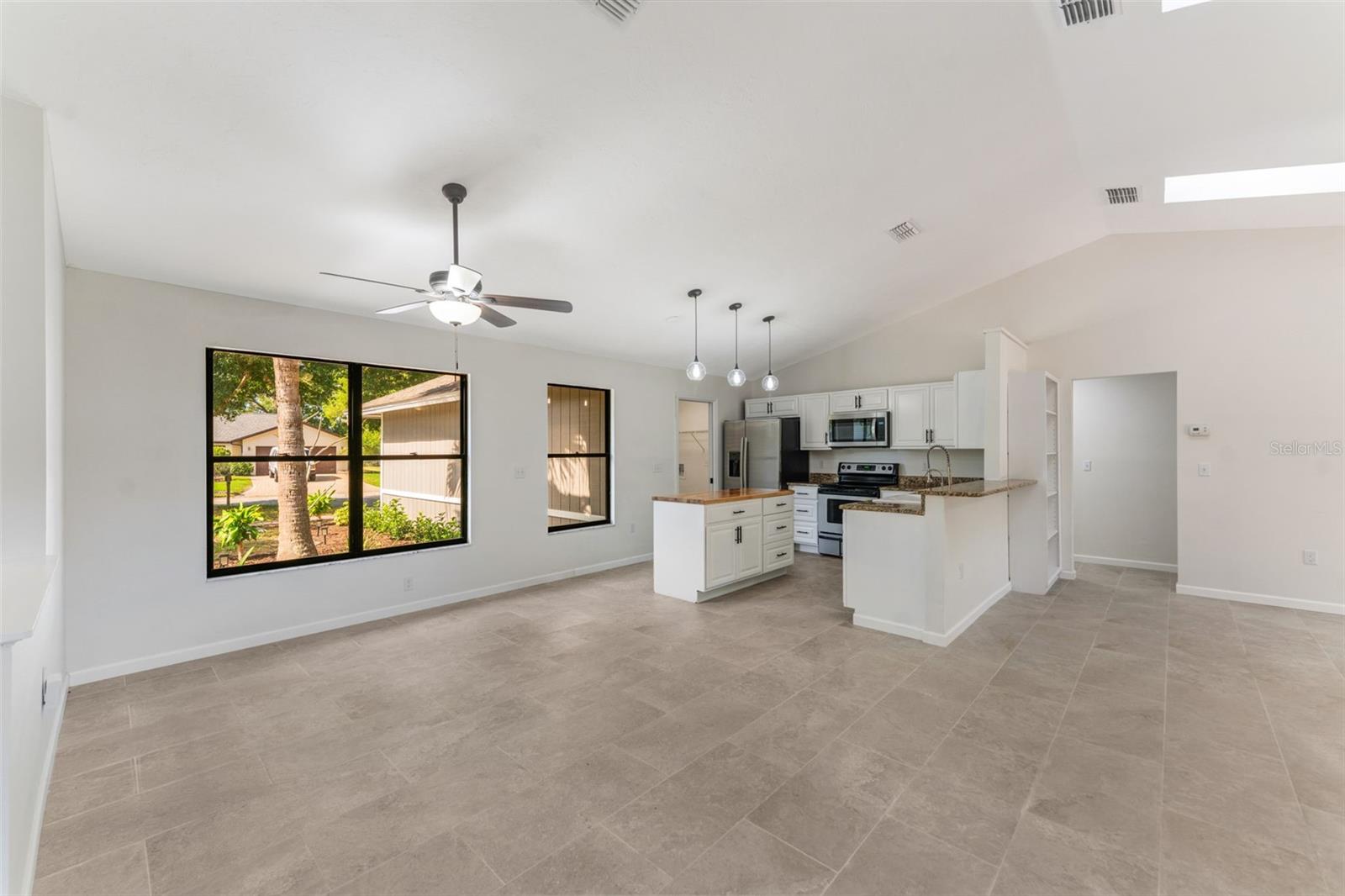 Welcome to your dream home at 4253 Prairie View Dr S, Sarasota, FL – where modern updates meet spacious comfort in a serene setting. This beauty sits on a generous .51-acre lot, with room to add a large pool, ensuring peaceful living. Boasting a bright and open layout with a lofty vaulted ceiling accented by skylights, this home is designed to bask in natural light. The heart of this house is its vibrant kitchen, featuring a breakfast bar, sleek granite countertops, and an island with a charming butcher block top - perfect for the inspired home chef. Large windows and a wall of sliders blend indoor comfort with outdoor relaxation on your lanai, adorned with exquisite Spanish tiles. This move-in-ready home offers 3 generous-sized bedrooms and 2 baths, including an en suite with an extended tiled shower under a skylight. The floorplan thoughtfully separates bedrooms for privacy, and the living space is warmed by a cozy wood-burning fireplace. 15"x13" tiles can be found throughout the home. Another bonus is the extra space with the extended garage. Centrally located, this property offers the best of Sarasota’s lifestyle, with easy access to top-rated schools, dining, shopping, and pristine beaches. This home isn’t just a place to live; it's a haven for making memories that last a lifetime.