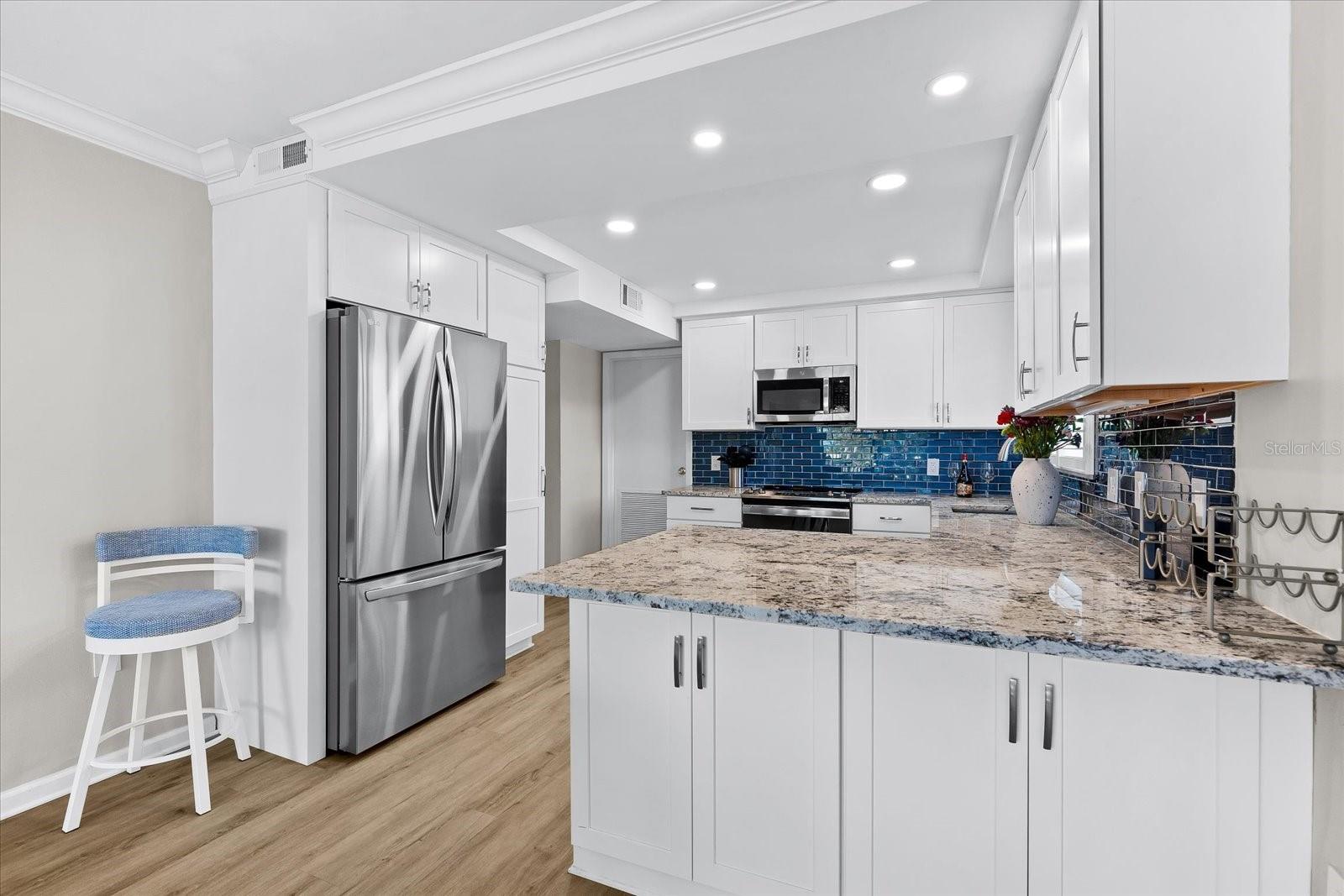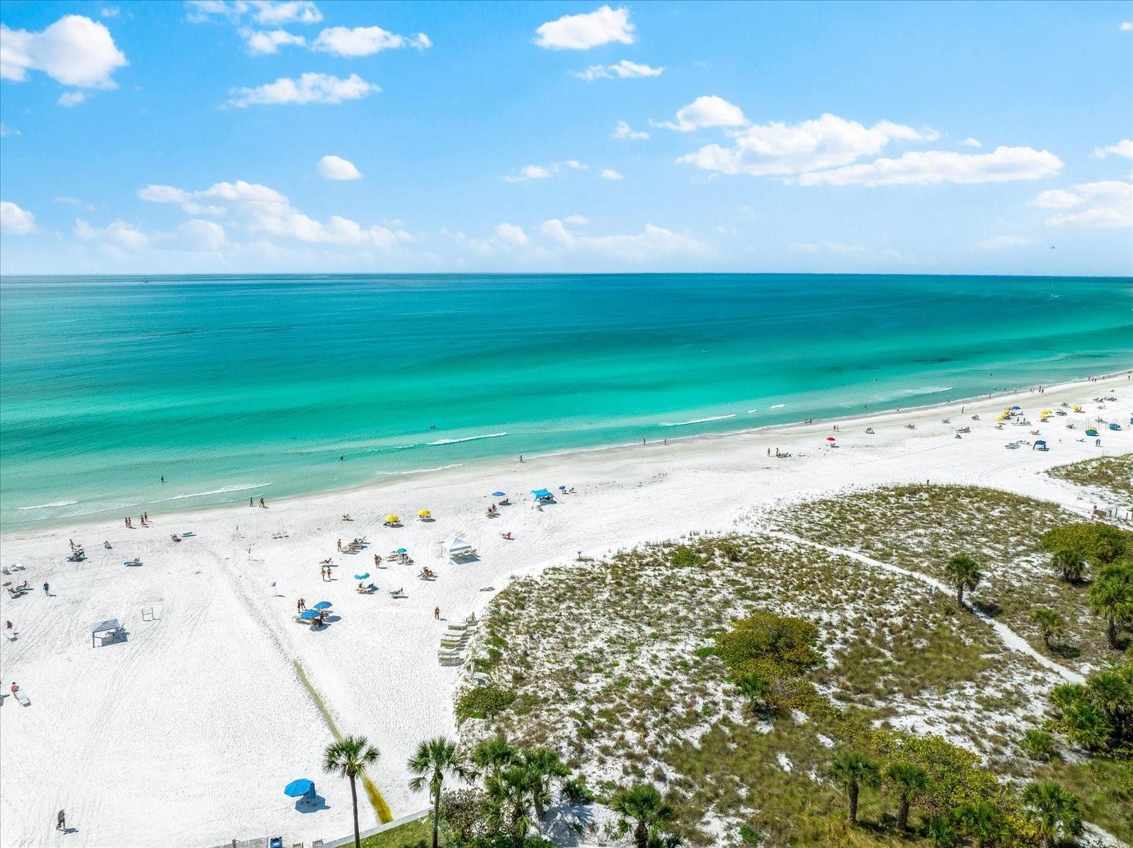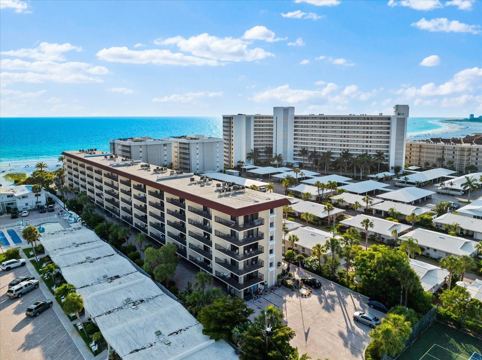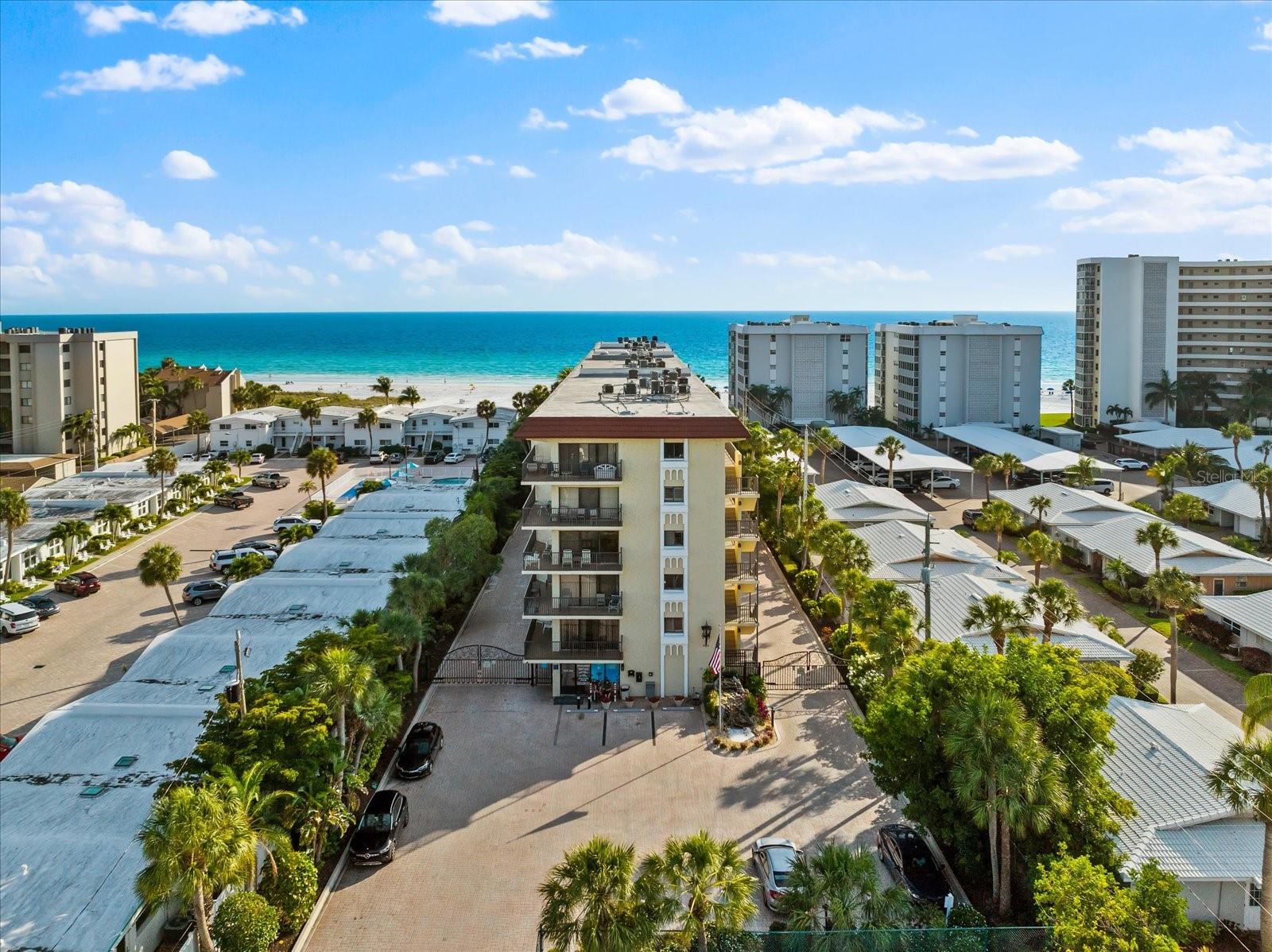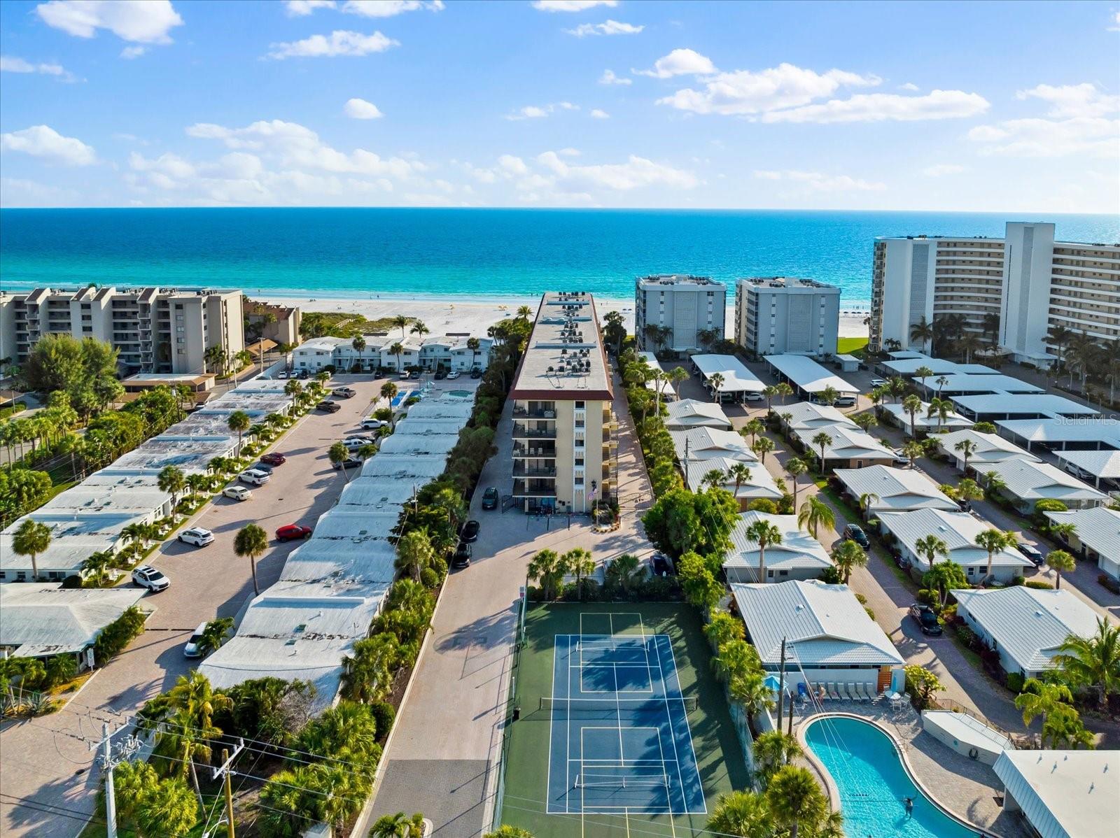 PRICE IMPROVEMENT OF $50,000!! Step into the epitome of beachfront luxury with this expansive two-bedroom condo nestled on the sought-after sands of Crescent Beach in Siesta Key. Recently remodeled, this first-floor end unit in the prestigious El Presidente complex exudes elegance and modernity. The open floor plan is highlighted by premium granite countertops in both the kitchen and bathrooms, complemented by new, stylish flooring throughout. Fully furnished and turnkey ready, this condo includes all the essentials and luxuries for immediate enjoyment, featuring a recently updated electric panel, a new AC system installed in 2021, and the latest appliances and water heater updated in 2022. This property not only offers a serene escape with its private beach access but also provides abundant recreational facilities including a tennis court, a pickleball area, and a state-of-the-art fitness room. The heated swimming pool is an inviting oasis, perfect for unwinding or enjoying leisurely days soaking in the sun against the backdrop of the Gulf of Mexico’s sparkling blue waters. El Presidente stands out as a prime investment opportunity, boasting the flexibility of weekly rentals and the convenience of professional on-site management, making it a highly attractive option for generating significant rental income. The gated complex ensures privacy and exclusivity, enhancing the desirability for potential renters and providing peace of mind for owners. The location of this condo offers unparalleled access to Siesta Key’s amenities. It is ideally positioned near the south bridge, allowing for easy entry and exit from the island. A short stroll away, Siesta Key Village offers vibrant dining and shopping experiences, while downtown Sarasota is just a drive away, rich with cultural attractions such as the Ringling Museum of Art and the Sarasota Opera House. Offering both a luxurious retreat and a wise investment, this condo at El Presidente encapsulates the very best of Florida’s Gulf Coast lifestyle. Here, every detail is tailored for comfort, convenience, and class, making it a perfect choice for those seeking a home that promises both personal enjoyment and potential income. Call today for your private showing.