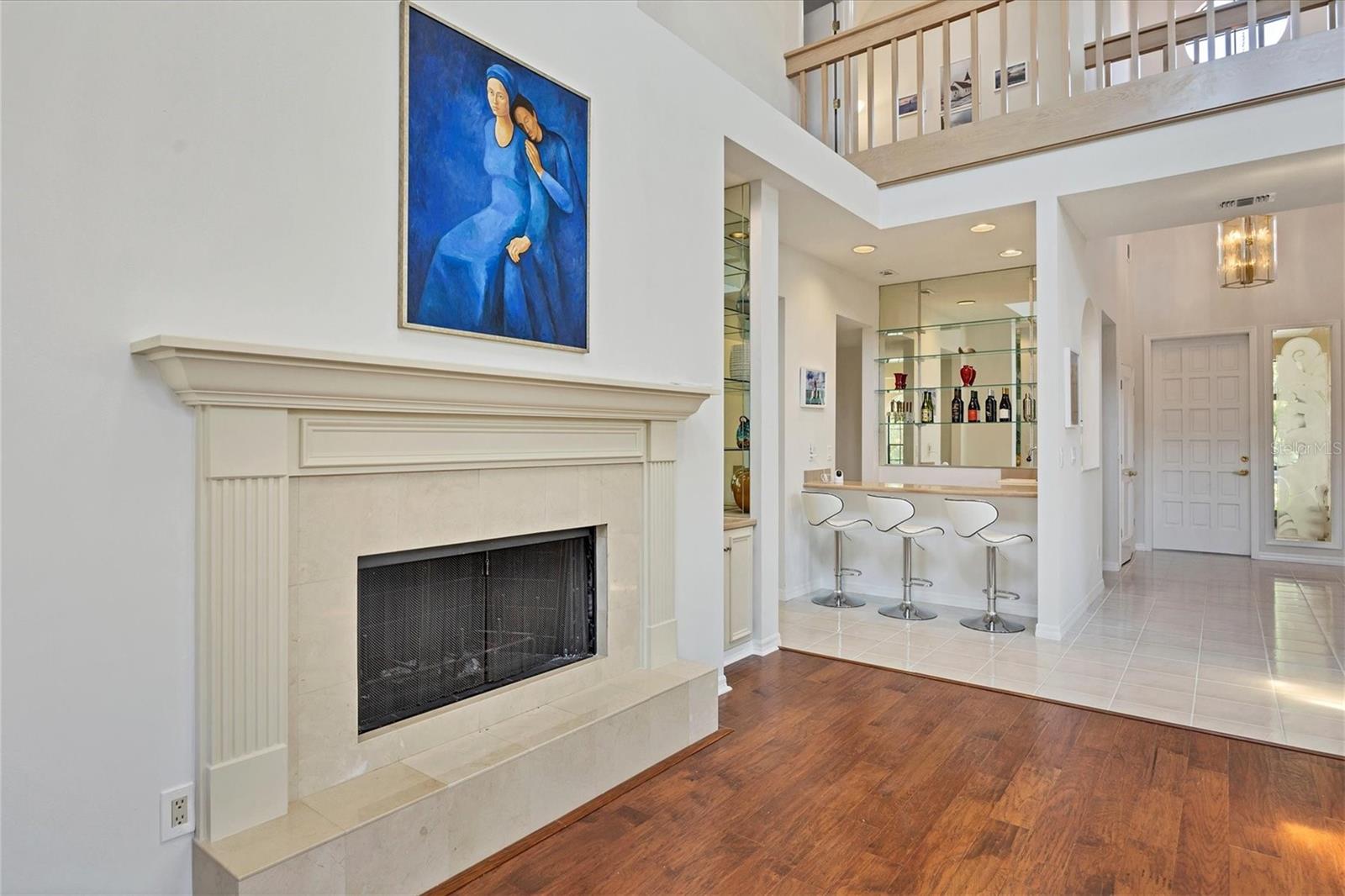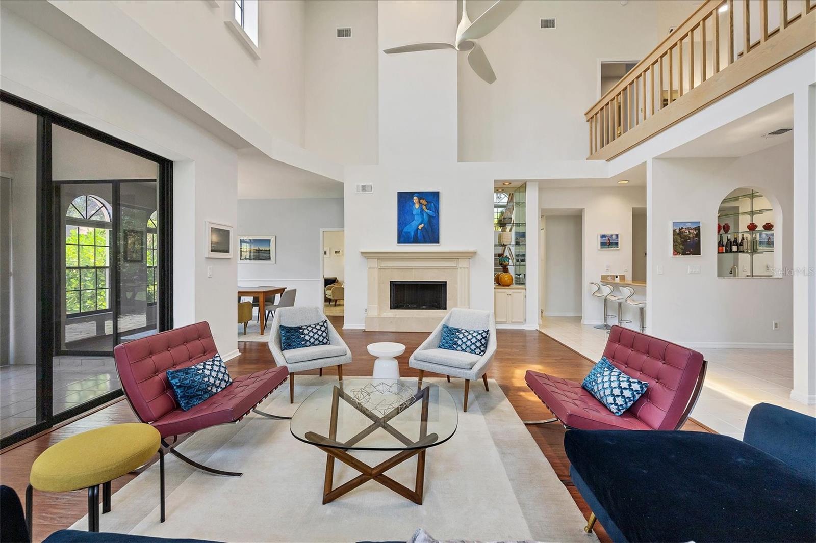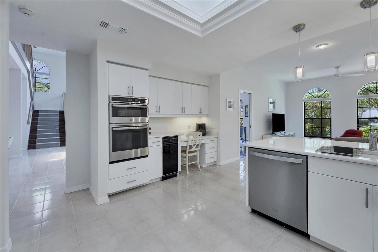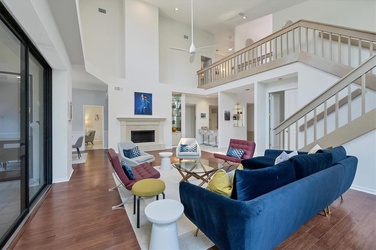 It’s Florida living at its best! Experience the wow factor when stepping through the front door of this stunning villa nestled within the prestigious Prestancia community. This sought-after home in Villa D’Este features a sunny open floor plan with soaring ceilings, a natural fireplace, a dining room, and a great room with a wet bar that is perfect for entertaining. Spread out in this spacious three-bedroom, three-bath home that boasts large rooms and two primary suites to relax in with new custom-finished walk-in closets and ensuite baths. The first floor features two bedrooms for easy living. A stairway with a new custom runner leads to a loft area and a private second primary bedroom suite. The large cook’s kitchen with newer stainless steel appliances, Corian countertops, and white cabinets complements the airy décor of the attached family room. Indoor-outdoor living is a breeze with the sliding glass doors that lead to the lanai overlooking the semi-private new patio which is just steps to the tranquil pool. The freshly painted two-car garage with custom-finished floor leads to the laundry room with a new washer and dryer. Two new air conditioning units and R40 insulation in the attics. Enjoy all of the amenities of living in this prestigious gated community including optional membership at TPC Prestancia Golf Club featuring two 18-hole courses. See the Matterport link for the floor plan and 360 view of every room.