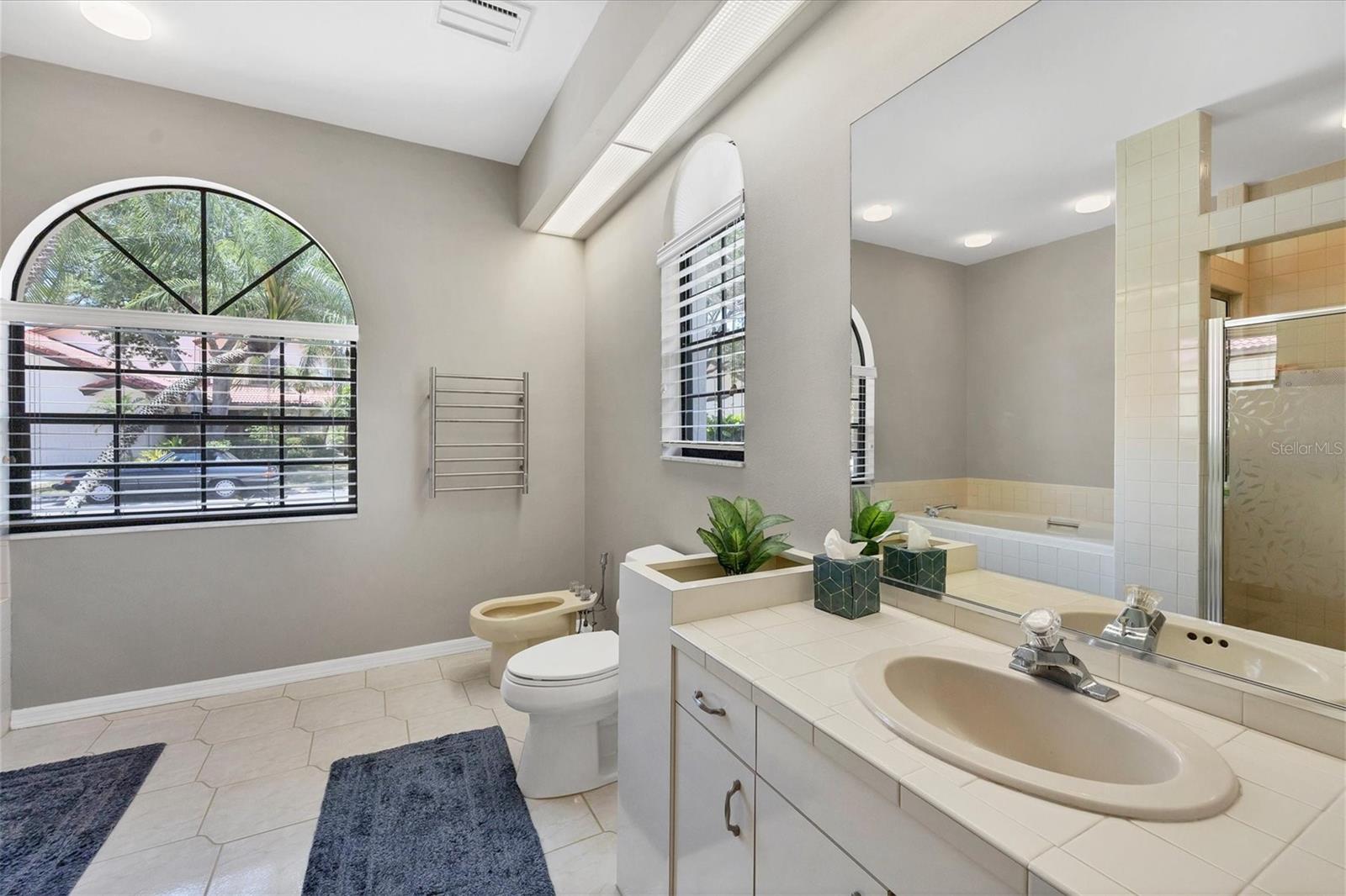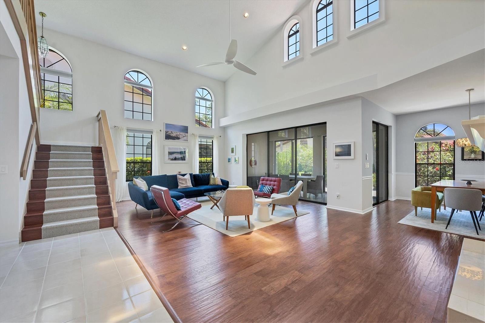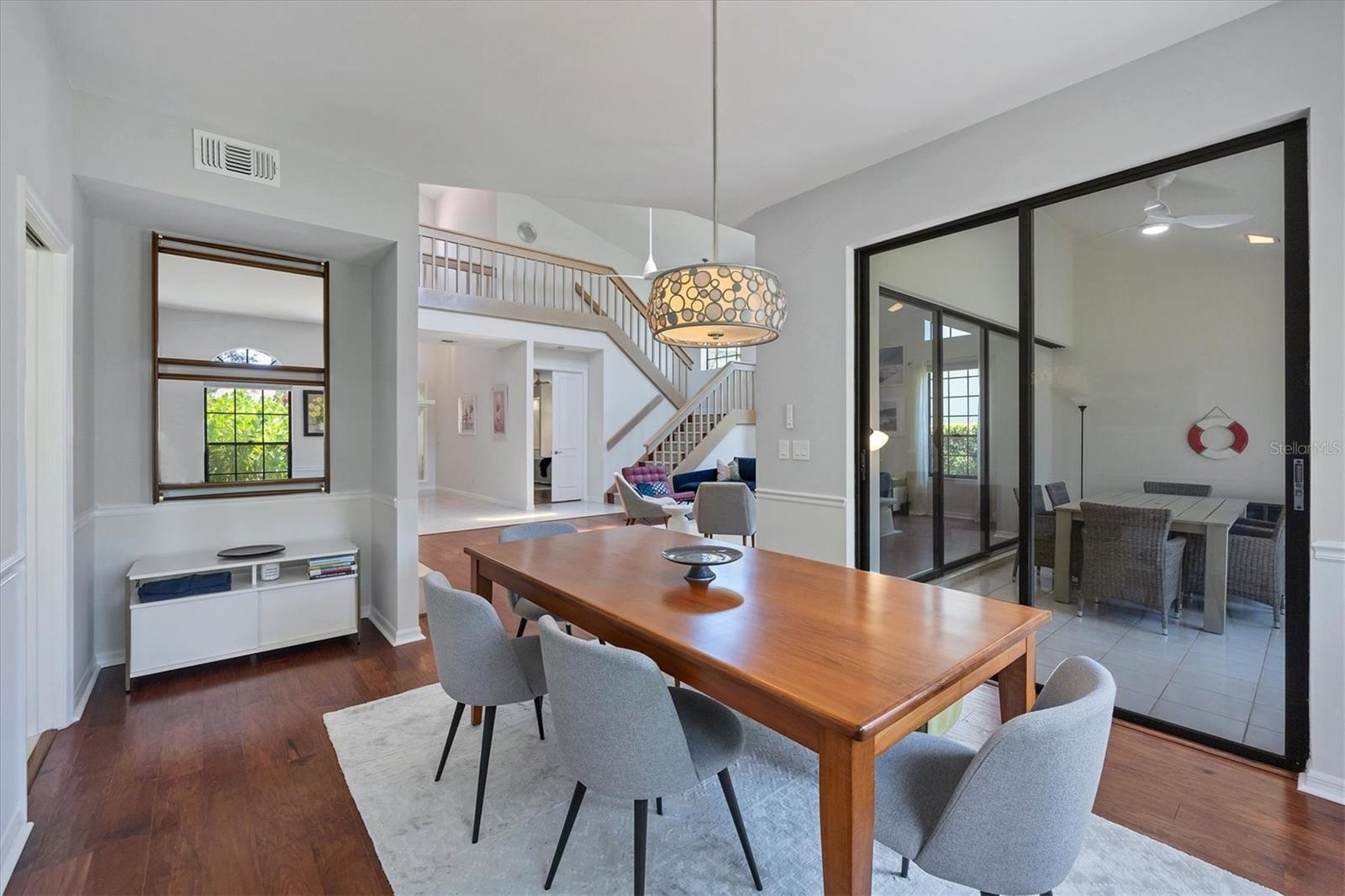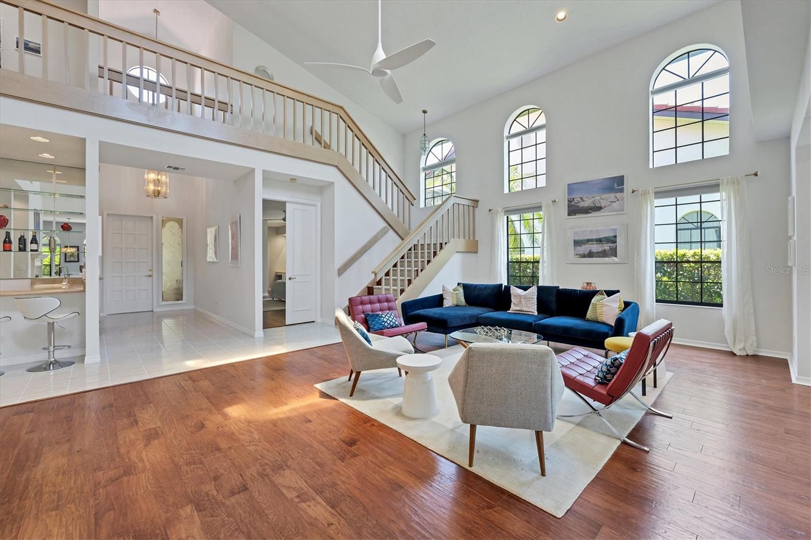 It’s Florida living at its best! Experience the wow factor when stepping through the front door of this stunning villa nestled within the prestigious Prestancia community. This sought-after home in Villa D’Este features a sunny open floor plan with soaring ceilings, a natural fireplace, a dining room, and a great room with a wet bar that is perfect for entertaining. Spread out in this spacious three-bedroom, three-bath home that boasts large rooms and two primary suites to relax in with new custom-finished walk-in closets and ensuite baths. The first floor features two bedrooms for easy living. A stairway with a new custom runner leads to a loft area and a private second primary bedroom suite. The large cook’s kitchen with newer stainless steel appliances, Corian countertops, and white cabinets complements the airy décor of the attached family room. Indoor-outdoor living is a breeze with the sliding glass doors that lead to the lanai overlooking the semi-private new patio which is just steps to the tranquil pool. The freshly painted two-car garage with custom-finished floor leads to the laundry room with a new washer and dryer. Two new air conditioning units and R40 insulation in the attics. Enjoy all of the amenities of living in this prestigious gated community including optional membership at TPC Prestancia Golf Club featuring two 18-hole courses. See the Matterport link for the floor plan and 360 view of every room.
