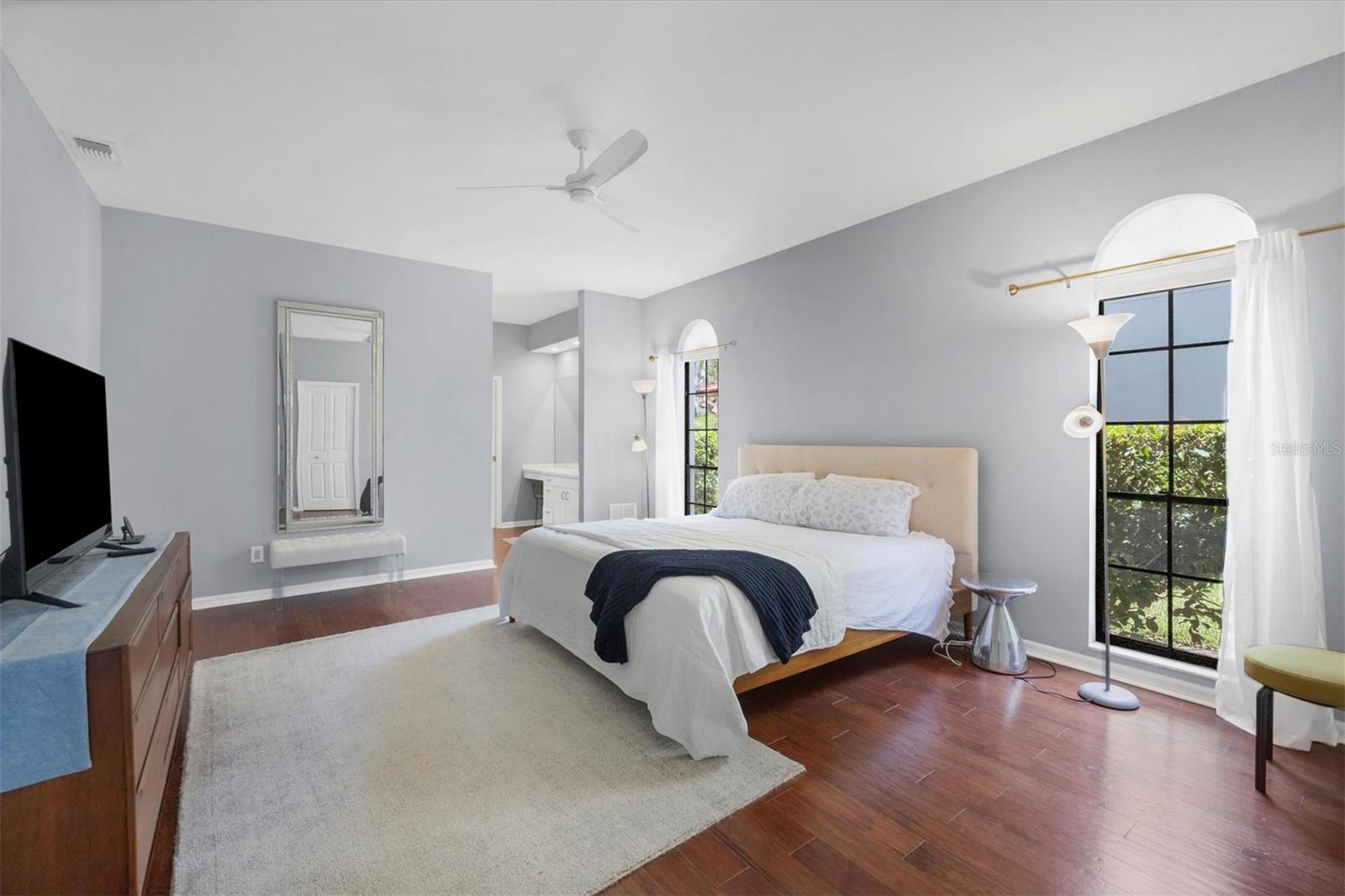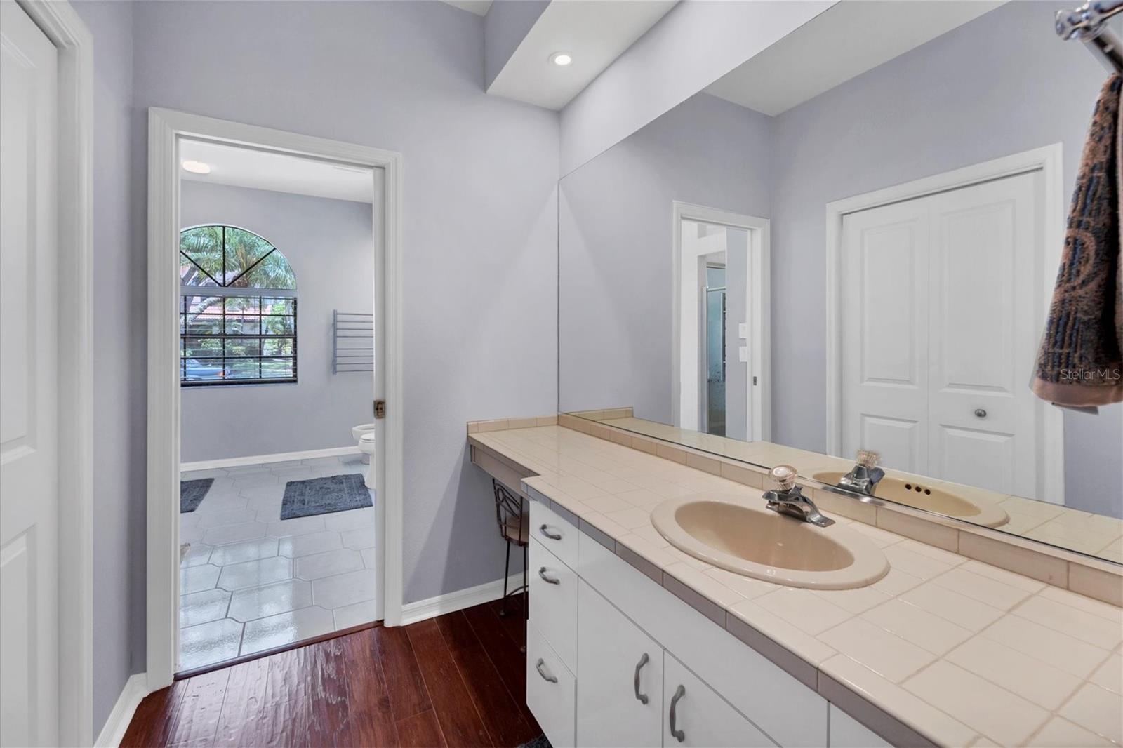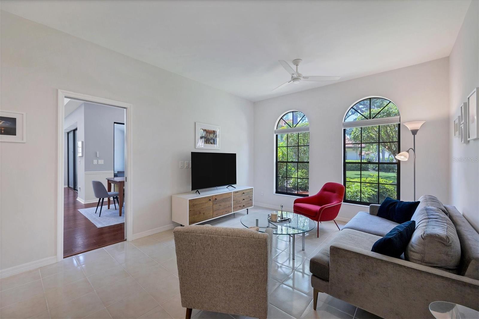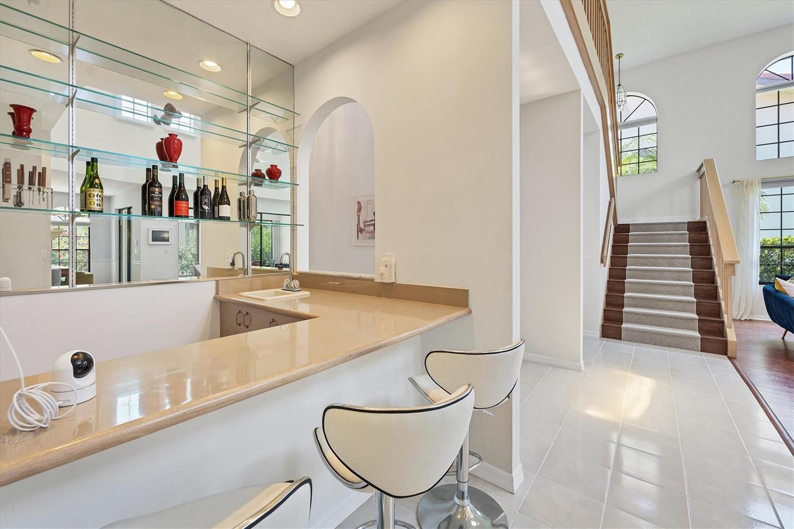 It’s Florida living at its best! Experience the wow factor when stepping through the front door of this stunning villa nestled within the prestigious Prestancia community. This sought-after home in Villa D’Este features a sunny open floor plan with soaring ceilings, a natural fireplace, a dining room, and a great room with a wet bar that is perfect for entertaining. Spread out in this spacious three-bedroom, three-bath home that boasts large rooms and two primary suites to relax in with new custom-finished walk-in closets and ensuite baths. The first floor features two bedrooms for easy living. A stairway with a new custom runner leads to a loft area and a private second primary bedroom suite. The large cook’s kitchen with newer stainless steel appliances, Corian countertops, and white cabinets complements the airy décor of the attached family room. Indoor-outdoor living is a breeze with the sliding glass doors that lead to the lanai overlooking the semi-private new patio which is just steps to the tranquil pool. The freshly painted two-car garage with custom-finished floor leads to the laundry room with a new washer and dryer. Two new air conditioning units and R40 insulation in the attics. Enjoy all of the amenities of living in this prestigious gated community including optional membership at TPC Prestancia Golf Club featuring two 18-hole courses. See the Matterport link for the floor plan and 360 view of every room.