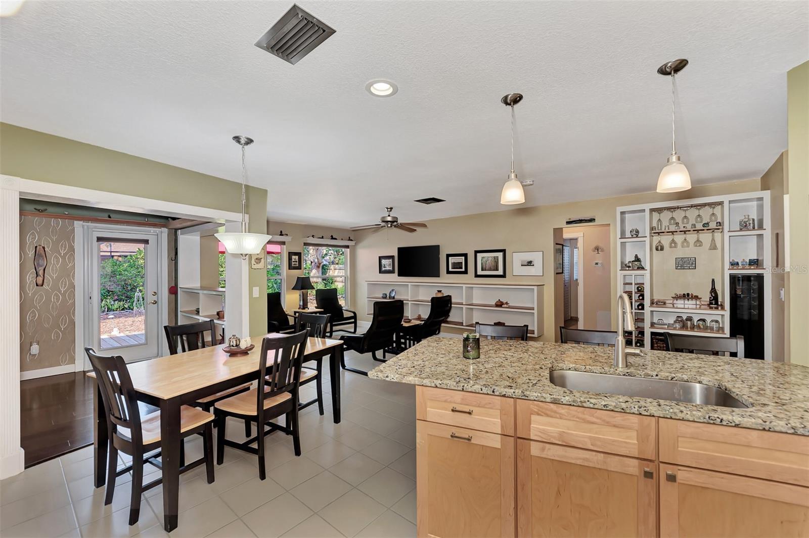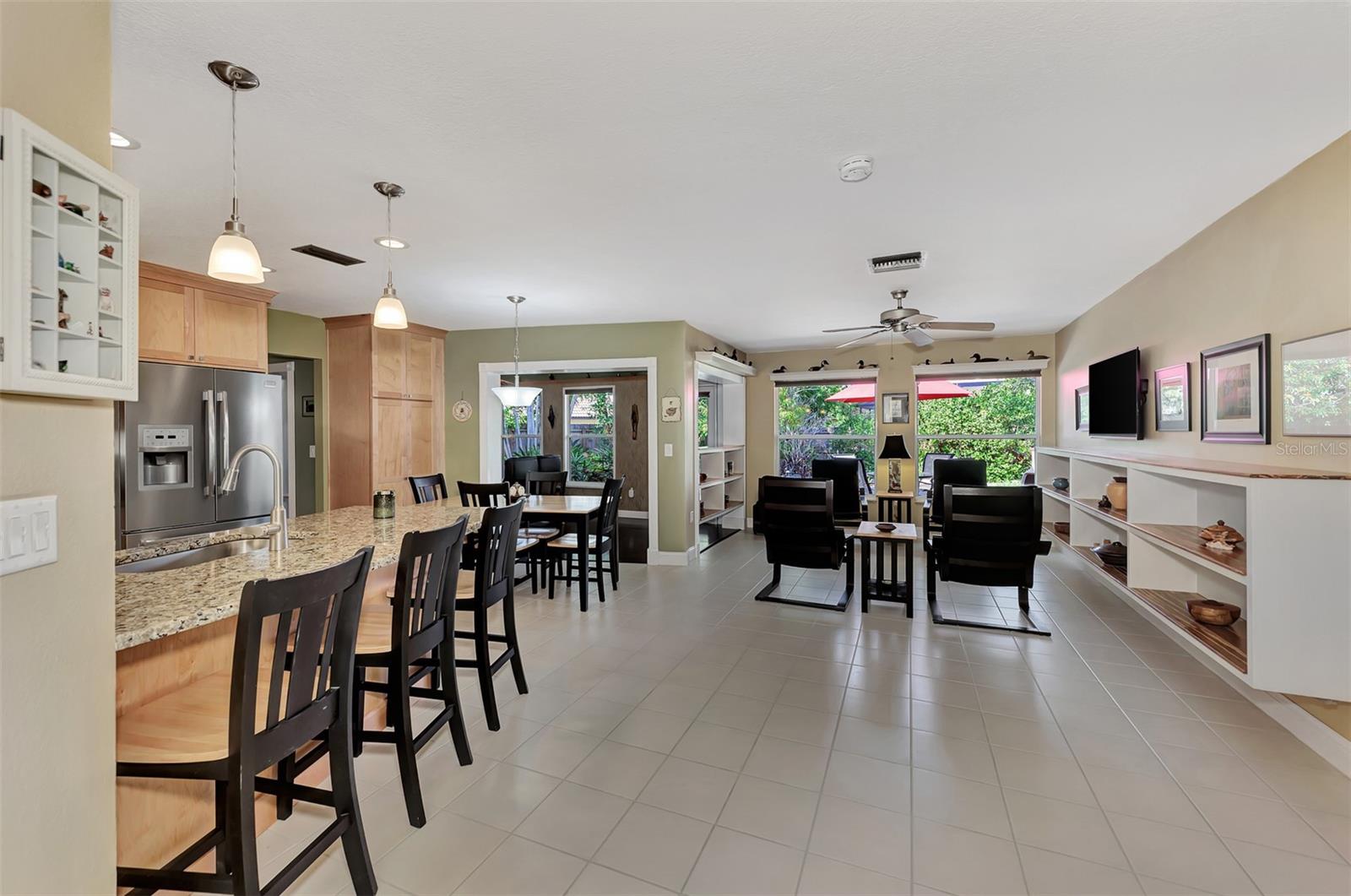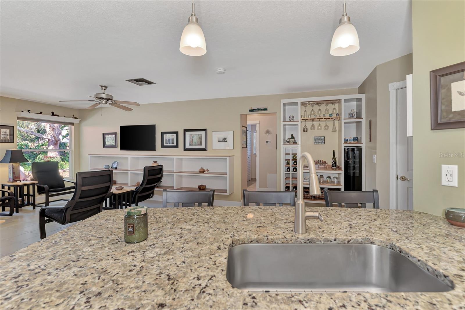 Location, location, location! This beautifully maintained quiet Cul-de-Sac home in the desirable Center Gate area is fully updated and ready for you! Move right in and start cooking in your new updated kitchen. This home is well laid out for entertaining inside and out. The dry bar in the family room has under cabinet lighting and a wine refrigerator. The open concept kitchen has stainless steel appliances and granite counter tops. The solid wood maple cabinetry has soft close doors and drawers. There are many lighting options in the kitchen and all are dimmable, including the under cabinet lighting. The breakfast bar adds additional seating to this eat-in kitchen. There is a primary bedroom with an en suite bath with double granite vanities and a walk in shower. There are two additional bedrooms and a full bathroom with a no barrier tile shower. There is a separate entry foyer, living room with dining room. The Florida room has a Dimplex electric fireplace to keep you cozy and built in bookshelves. The laundry room has a high vanity with granite top and is right off the garage. The roof is 2017 and the warranty transfers to the new owner. The utilities are underground. The garage has a 220v sub panel which is great for charging your EV or for your workshop, it also has wood cabinets and heavy duty shelving for storage. The property has a private and nicely landscaped fenced backyard with a large deck which is prewired with 220v power for a spa or pool. Minutes to shopping and recreation. As-is sale.