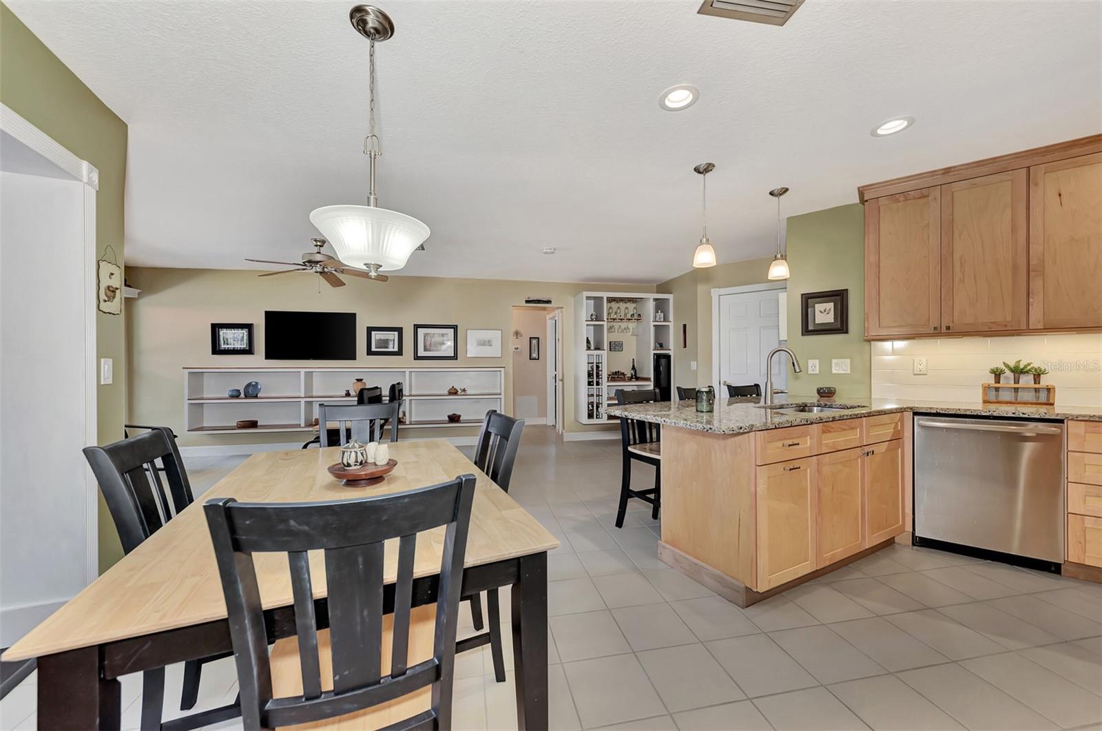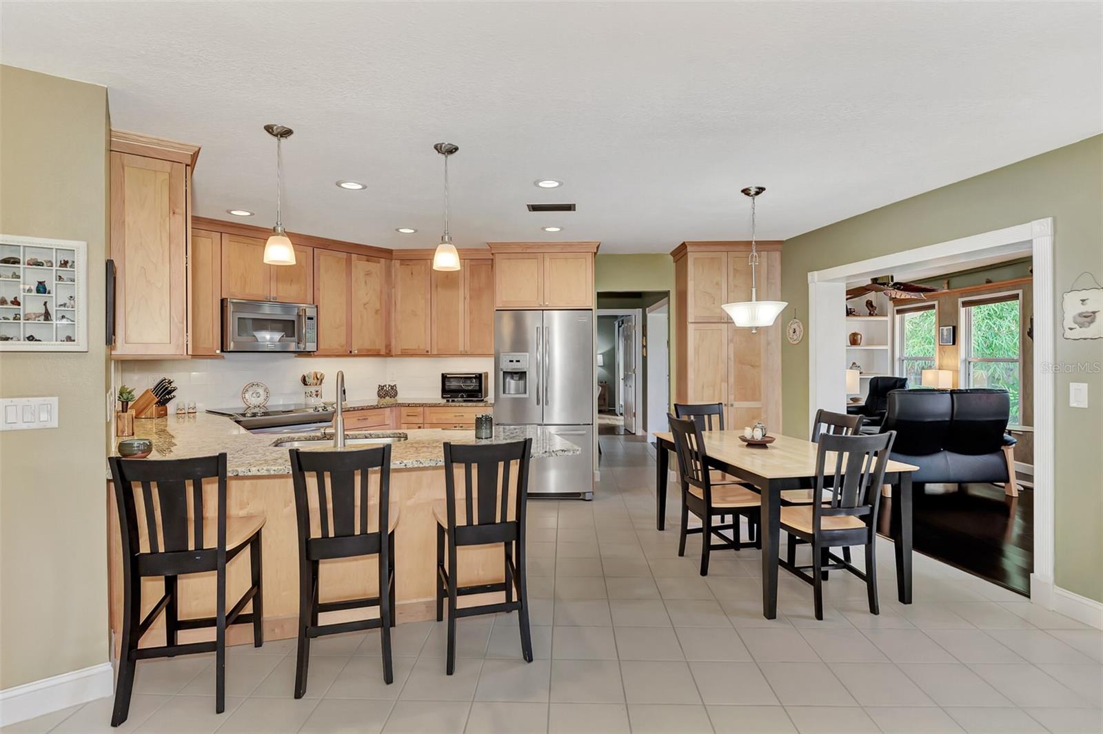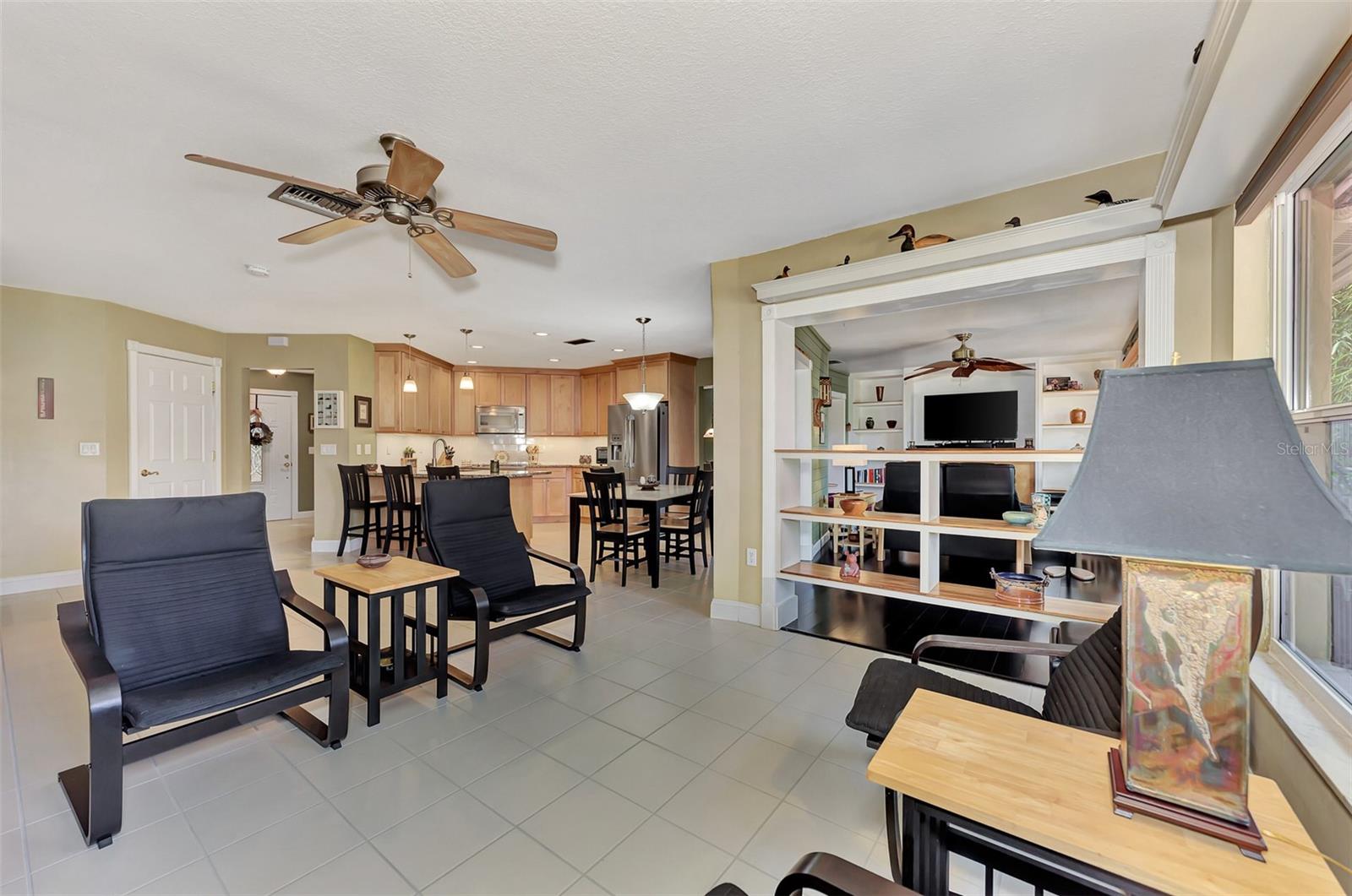 Location, location, location! This beautifully maintained quiet Cul-de-Sac home in the desirable Center Gate area is fully updated and ready for you! Move right in and start cooking in your new updated kitchen. This home is well laid out for entertaining inside and out. The dry bar in the family room has under cabinet lighting and a wine refrigerator. The open concept kitchen has stainless steel appliances and granite counter tops. The solid wood maple cabinetry has soft close doors and drawers. There are many lighting options in the kitchen and all are dimmable, including the under cabinet lighting. The breakfast bar adds additional seating to this eat-in kitchen. There is a primary bedroom with an en suite bath with double granite vanities and a walk in shower. There are two additional bedrooms and a full bathroom with a no barrier tile shower. There is a separate entry foyer, living room with dining room. The Florida room has a Dimplex electric fireplace to keep you cozy and built in bookshelves. The laundry room has a high vanity with granite top and is right off the garage. The roof is 2017 and the warranty transfers to the new owner. The utilities are underground. The garage has a 220v sub panel which is great for charging your EV or for your workshop, it also has wood cabinets and heavy duty shelving for storage. The property has a private and nicely landscaped fenced backyard with a large deck which is prewired with 220v power for a spa or pool. Minutes to shopping and recreation. As-is sale.