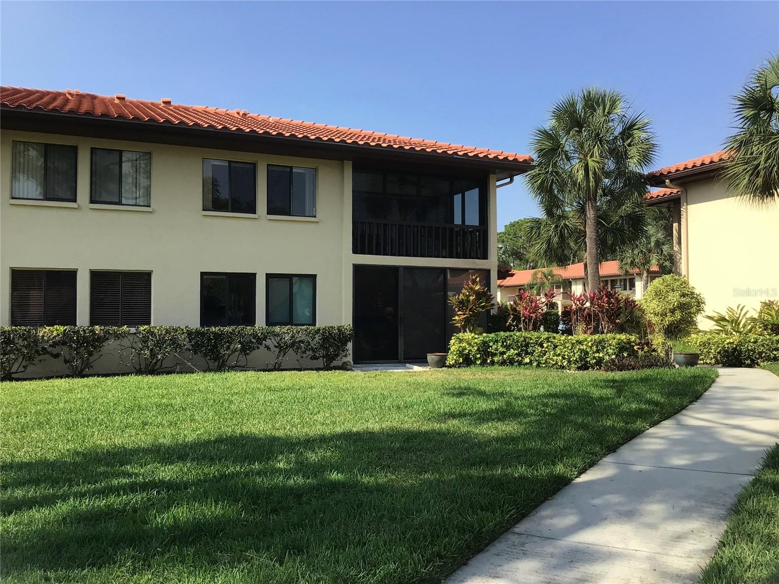 This End Unit condo in Village Lake is the "real deal" !!!! with expansive views of the community including the best "heated" pool in The Meadows, a lake resplendent with turtle and various Florida waterfowl, and the "garden feel" of the lushly landscaped courtyard. The interior features a glass-enclosed lanai, tankless water heater, light laminate flooring, an abundance of natural lighting throughout, and in-closet lighting............ A new washer and dryer, new garbage disposal, new control board and oven thermostat for the electric range, and a premium extended warranty on the AC unit all add additional VALUE to this meticulously maintained condo. Village Lake is a treasured community within ...........The Meadows and has LOW maintenance fees. The Meadows Community Association offers several optional golf, fitness, and social memberships, as well as a library, fitness center, miles of hike and bike trails, pickle ball courts, tennis courts, a dog park, butterfly park and savory dining choices.