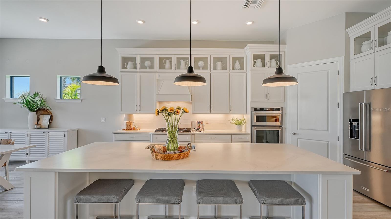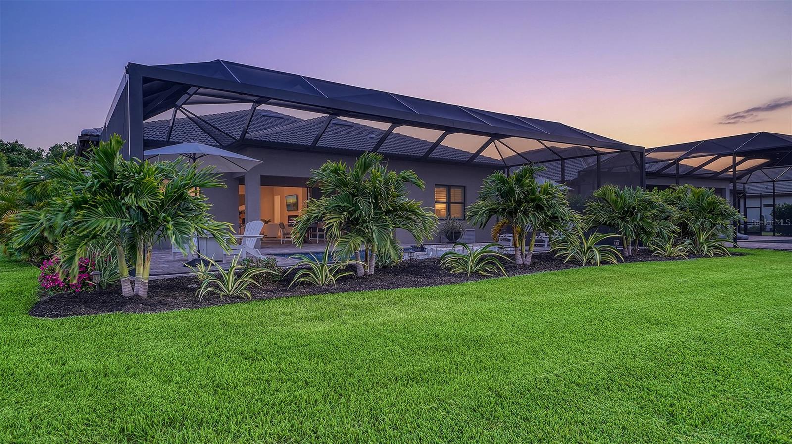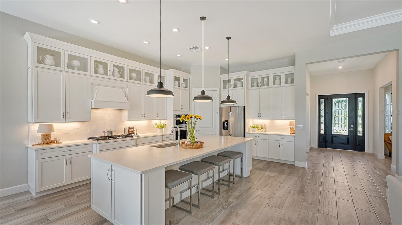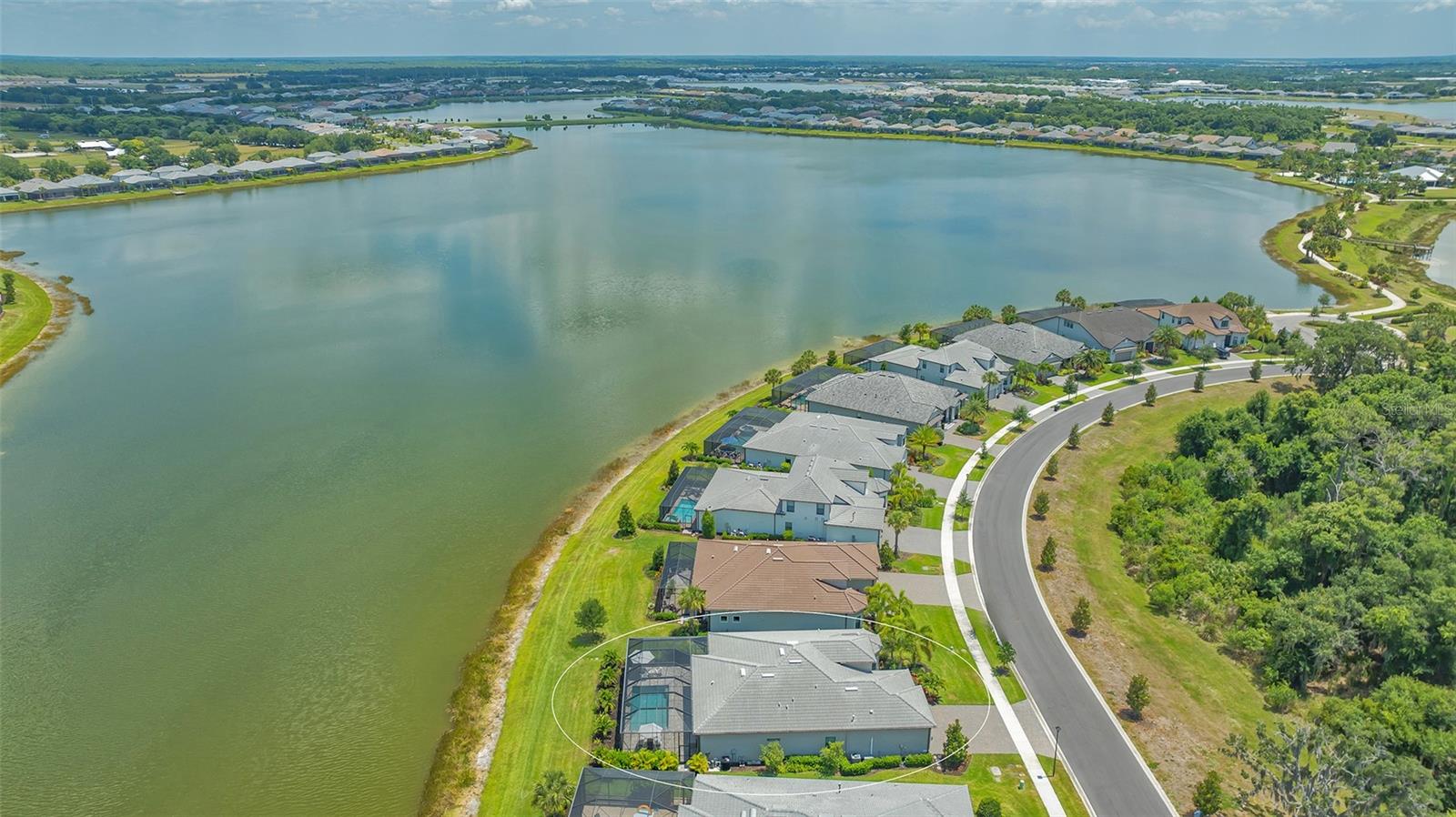 Welcome to the coveted Florida lifestyle at Shoreview Community at Waterside Place. Off the beaten path of the main entrance, 716 Sigsbee Loop is uniquely nestled on the peaceful banks of gently flowing Middle Teal Lake, and at the same time graciously positioned opposite one of Shoreview’s beautiful nature preserves. Custom 3 bedrooms, 3 full bathrooms – This 2021 “Pinnacle” model shows like a new home! Step inside to a spacious open floor plan. Fully tiled throughout, and using a neutral palate, this light and airy home exudes a relaxed, casual elegance. The Pinnacle features a 12’ coffered ceiling gathering room, a dining area with opulent palm and water views, and a well-appointed kitchen - where all 3 meet, for the perfect entertainment area! The kitchen boasts white, stacked cabinets with glass doors, upgraded KitchenAid appliances, a massive island, and large custom walk-in pantry. Overlooking Middle Teal Lake are triple sliding glass doors opening from the gathering room, which have a built-in linear fireplace. Enjoy the panoramic view from the lovely partially covered open lanai, overlooking the sparkling and lit saltwater pool and waterfall. The Primary owner’s suite, with a 12’ ceiling tray, overlooks the lake and pool, also has an extended shower, private linen closet, private en-suite bath and expansive custom walk-in closet. Two additional bedrooms have walk-in closets, one with en-suite bath and the study/flex room is off the foyer. Enter a finished laundry room featuring a stainless sink, custom built-ins and a sliding barn door with easy access to the 3-car air-conditioned and epoxied garage. Shoreview is a maintenance free community, so your lawn-care is included in your HOA as well as ALL the amenities here; clubhouse, tennis, pickleball, fitness center, kayak launch and MORE! Be sure to ask for the home and community features sheet. Bike, golf cart, or take Shoreviews Water Taxi to breathtaking sunsets minutes away at Waterside Plaza on Kingfisher Lake. Shoreview is conveniently located near shopping, dining, great schools, beaches and Sarasota Int’l Airport, making it one of Sarasota’s most sought after, new neighborhoods. Call for your personal tour today!