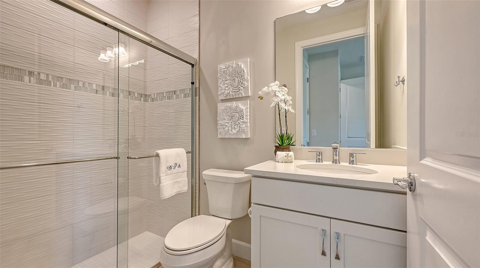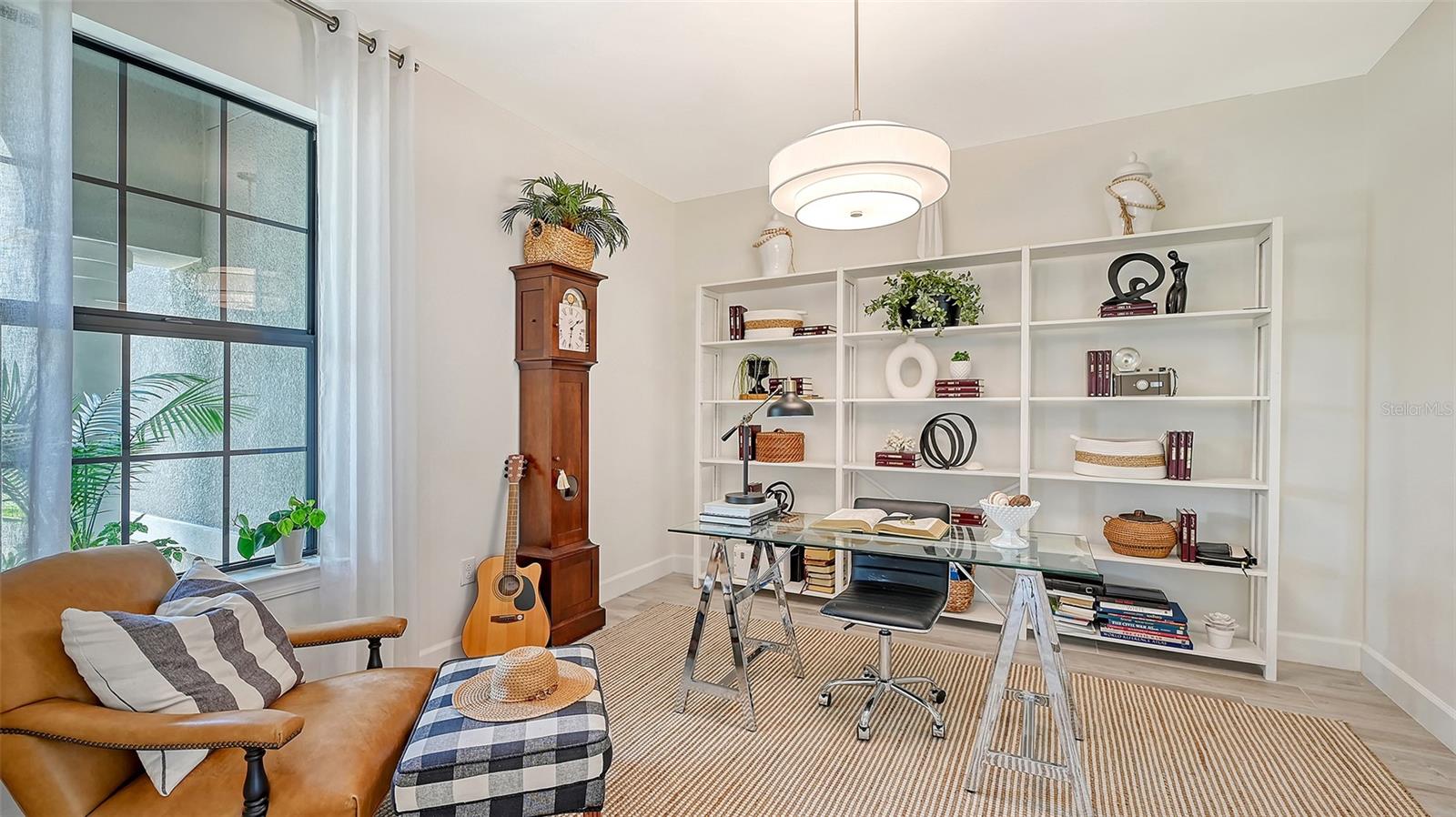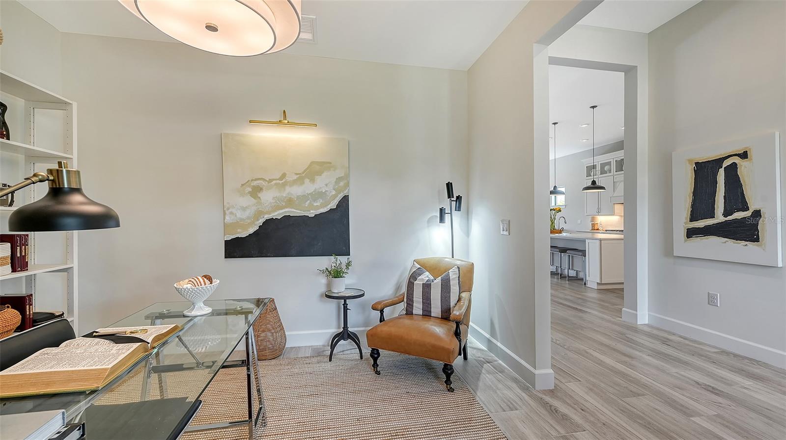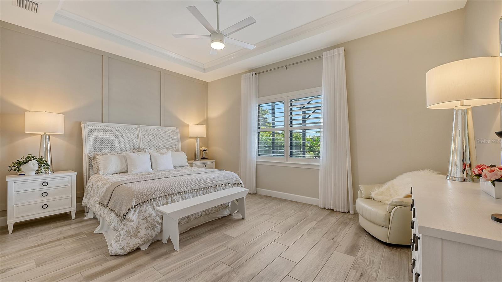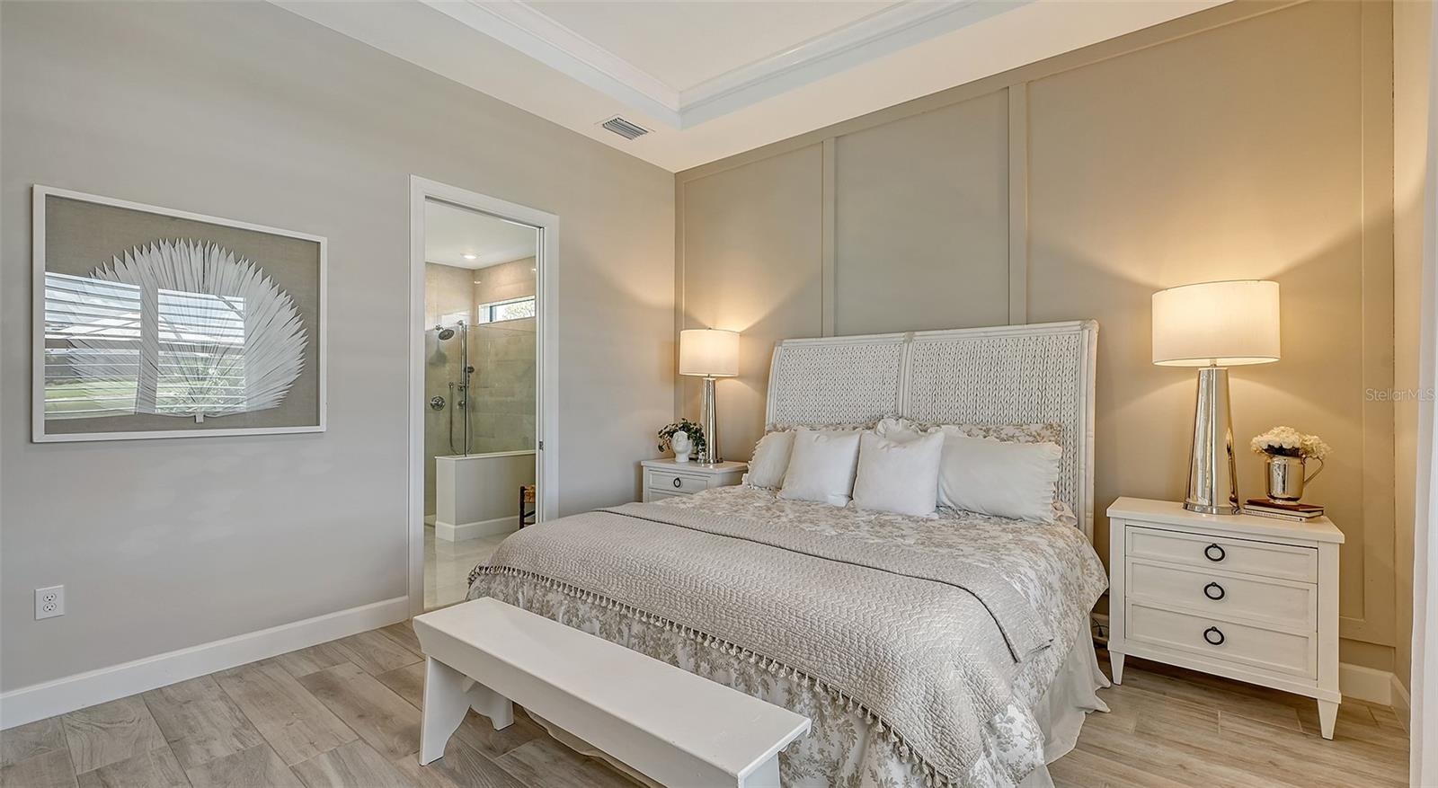 Welcome to the coveted Florida lifestyle at Shoreview Community at Waterside Place. Off the beaten path of the main entrance, 716 Sigsbee Loop is uniquely nestled on the peaceful banks of gently flowing Middle Teal Lake, and at the same time graciously positioned opposite one of Shoreview’s beautiful nature preserves. Custom 3 bedrooms, 3 full bathrooms – This 2021 “Pinnacle” model shows like a new home! Step inside to a spacious open floor plan. Fully tiled throughout, and using a neutral palate, this light and airy home exudes a relaxed, casual elegance. The Pinnacle features a 12’ coffered ceiling gathering room, a dining area with opulent palm and water views, and a well-appointed kitchen - where all 3 meet, for the perfect entertainment area! The kitchen boasts white, stacked cabinets with glass doors, upgraded KitchenAid appliances, a massive island, and large custom walk-in pantry. Overlooking Middle Teal Lake are triple sliding glass doors opening from the gathering room, which have a built-in linear fireplace. Enjoy the panoramic view from the lovely partially covered open lanai, overlooking the sparkling and lit saltwater pool and waterfall. The Primary owner’s suite, with a 12’ ceiling tray, overlooks the lake and pool, also has an extended shower, private linen closet, private en-suite bath and expansive custom walk-in closet. Two additional bedrooms have walk-in closets, one with en-suite bath and the study/flex room is off the foyer. Enter a finished laundry room featuring a stainless sink, custom built-ins and a sliding barn door with easy access to the 3-car air-conditioned and epoxied garage. Shoreview is a maintenance free community, so your lawn-care is included in your HOA as well as ALL the amenities here; clubhouse, tennis, pickleball, fitness center, kayak launch and MORE! Be sure to ask for the home and community features sheet. Bike, golf cart, or take Shoreviews Water Taxi to breathtaking sunsets minutes away at Waterside Plaza on Kingfisher Lake. Shoreview is conveniently located near shopping, dining, great schools, beaches and Sarasota Int’l Airport, making it one of Sarasota’s most sought after, new neighborhoods. Call for your personal tour today!